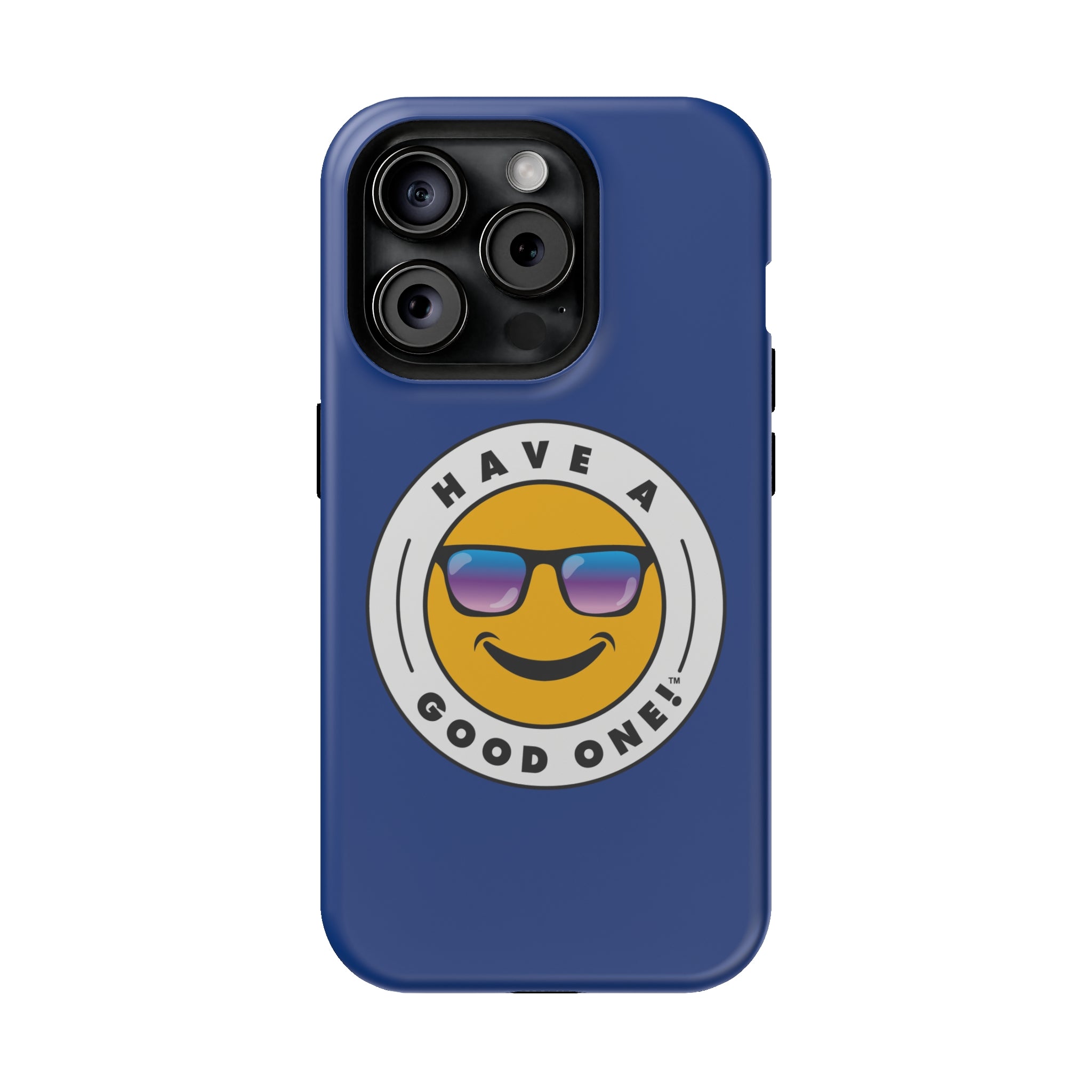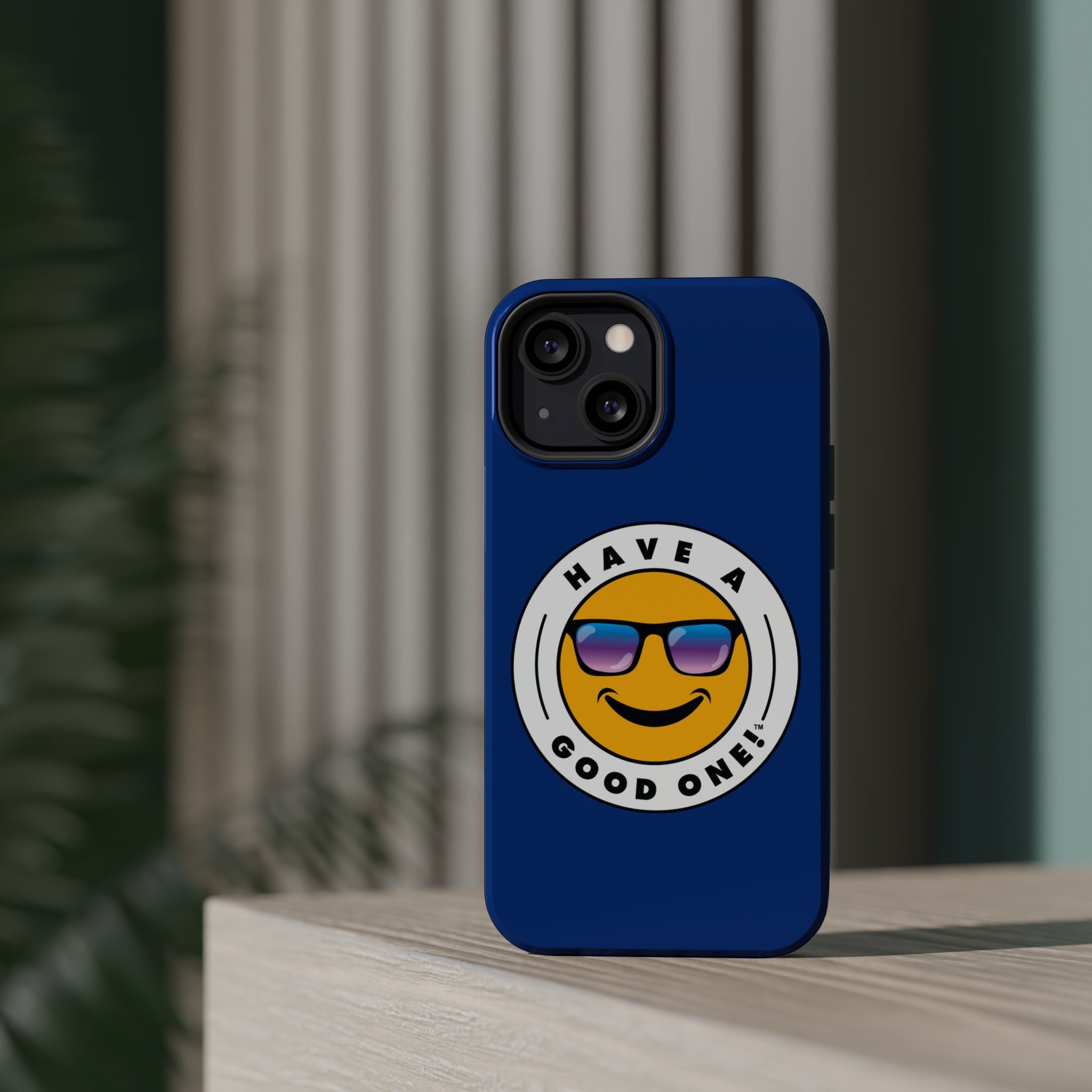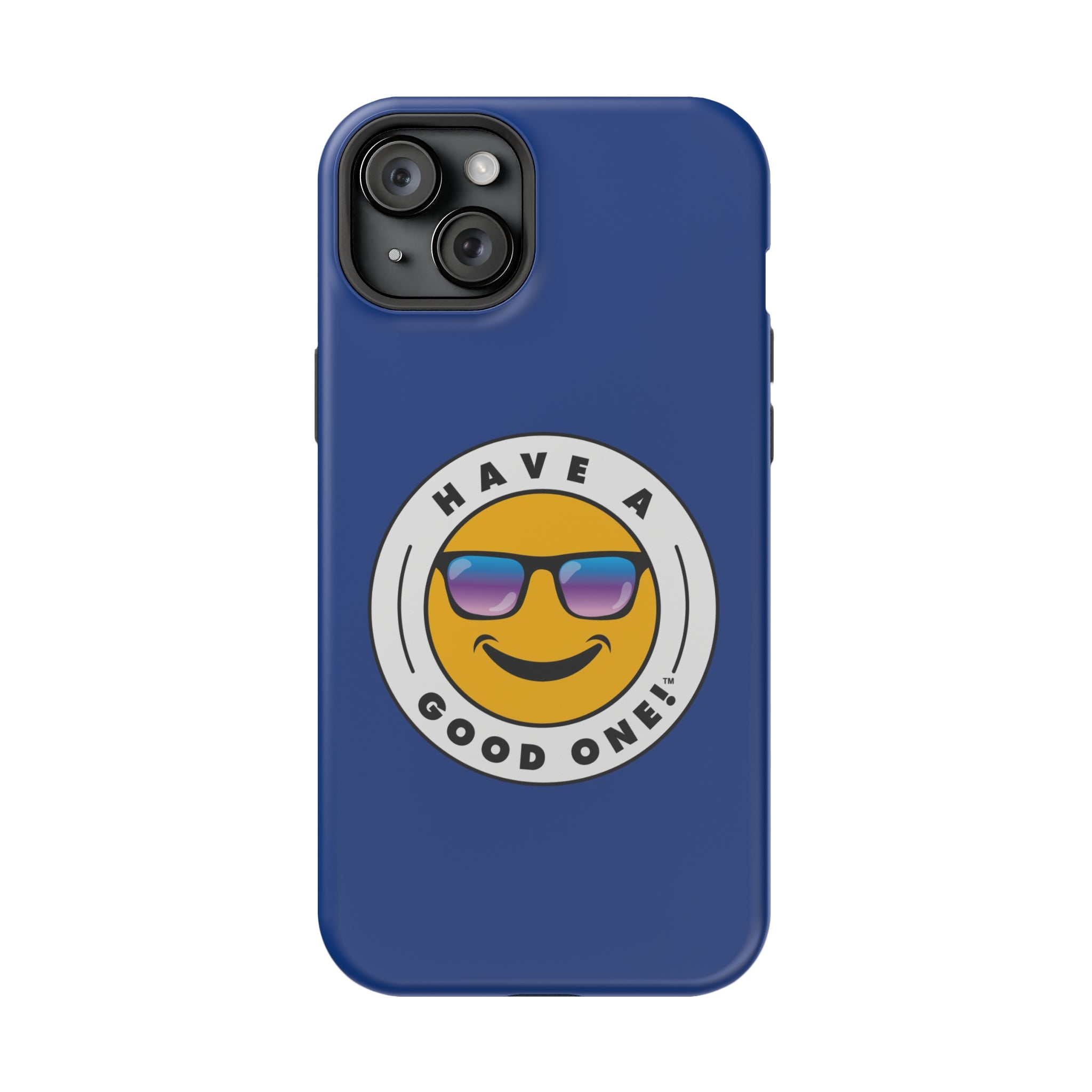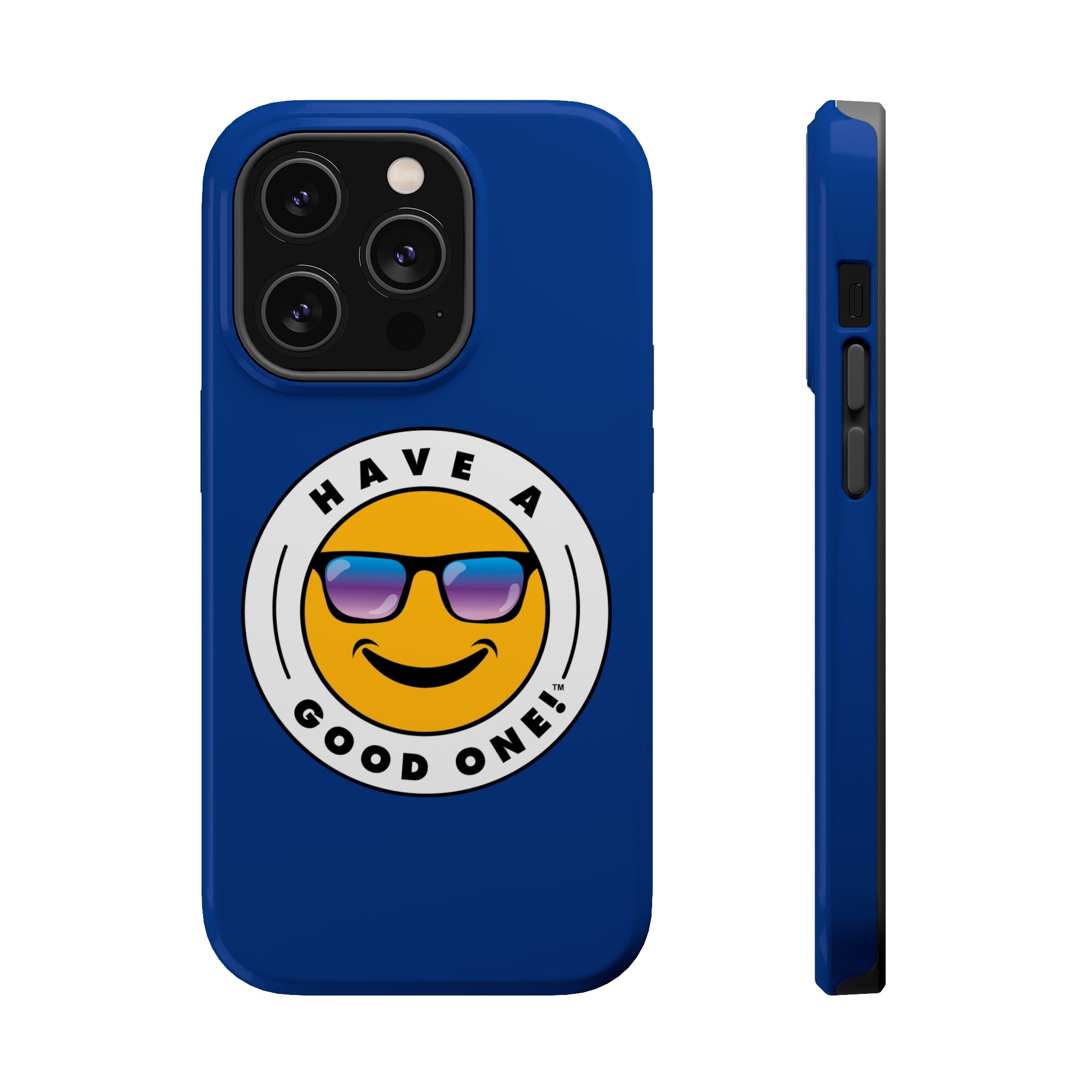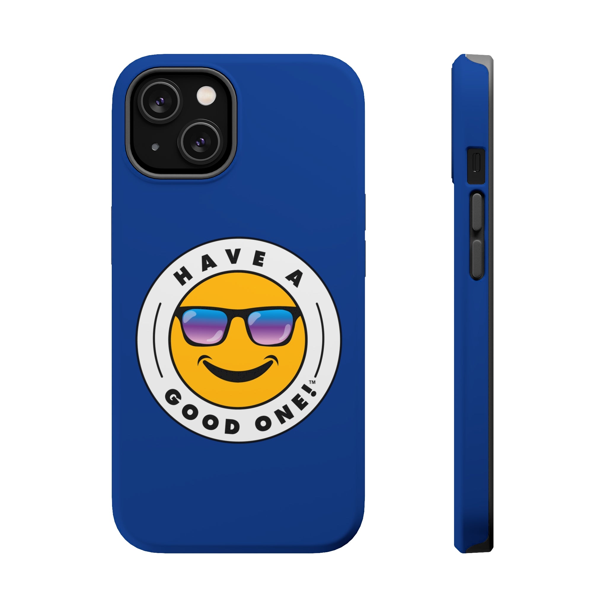 Fun On The Run MagSafe Tough Phone Case - Dark Blue Color With Blue Purple Have a Good One! Logo