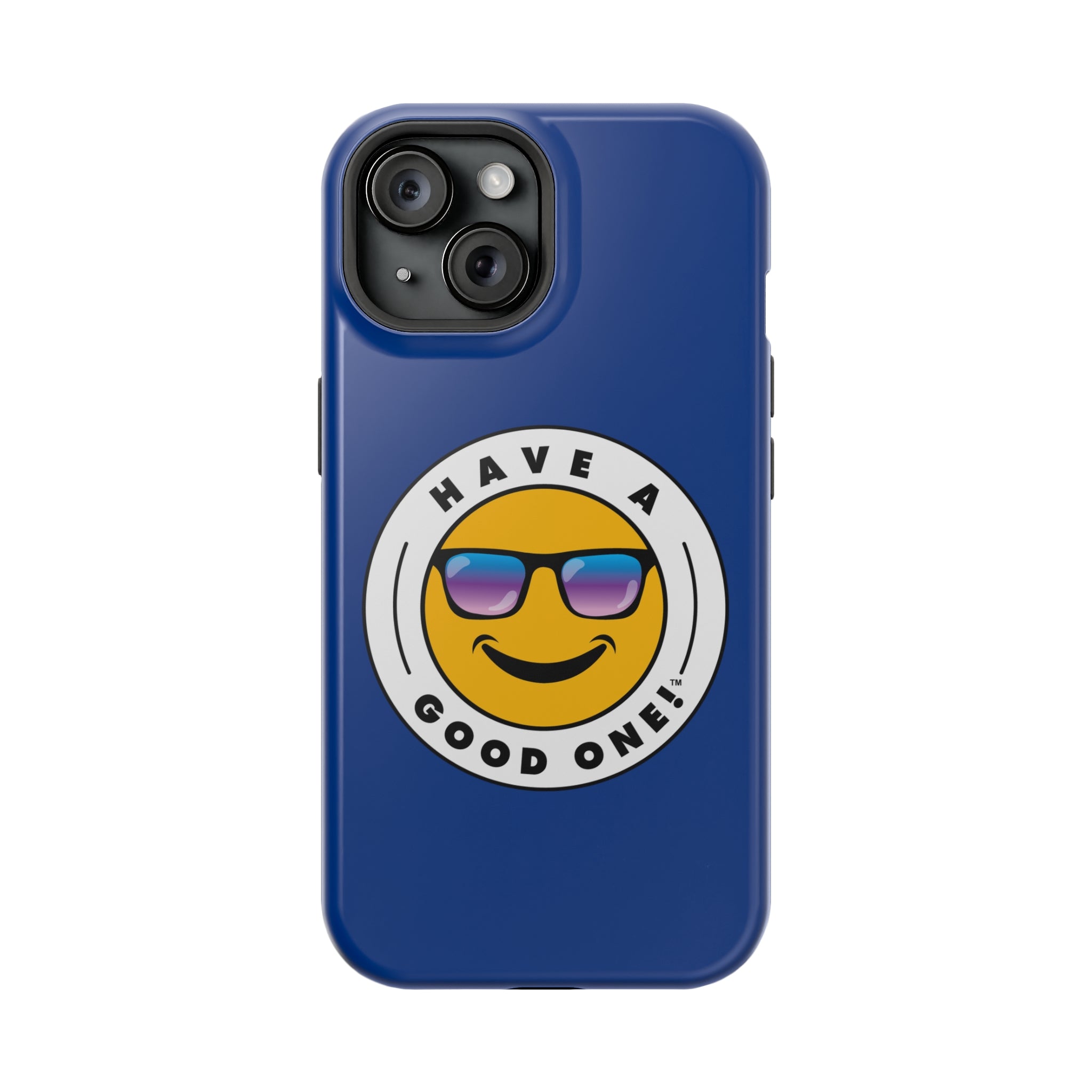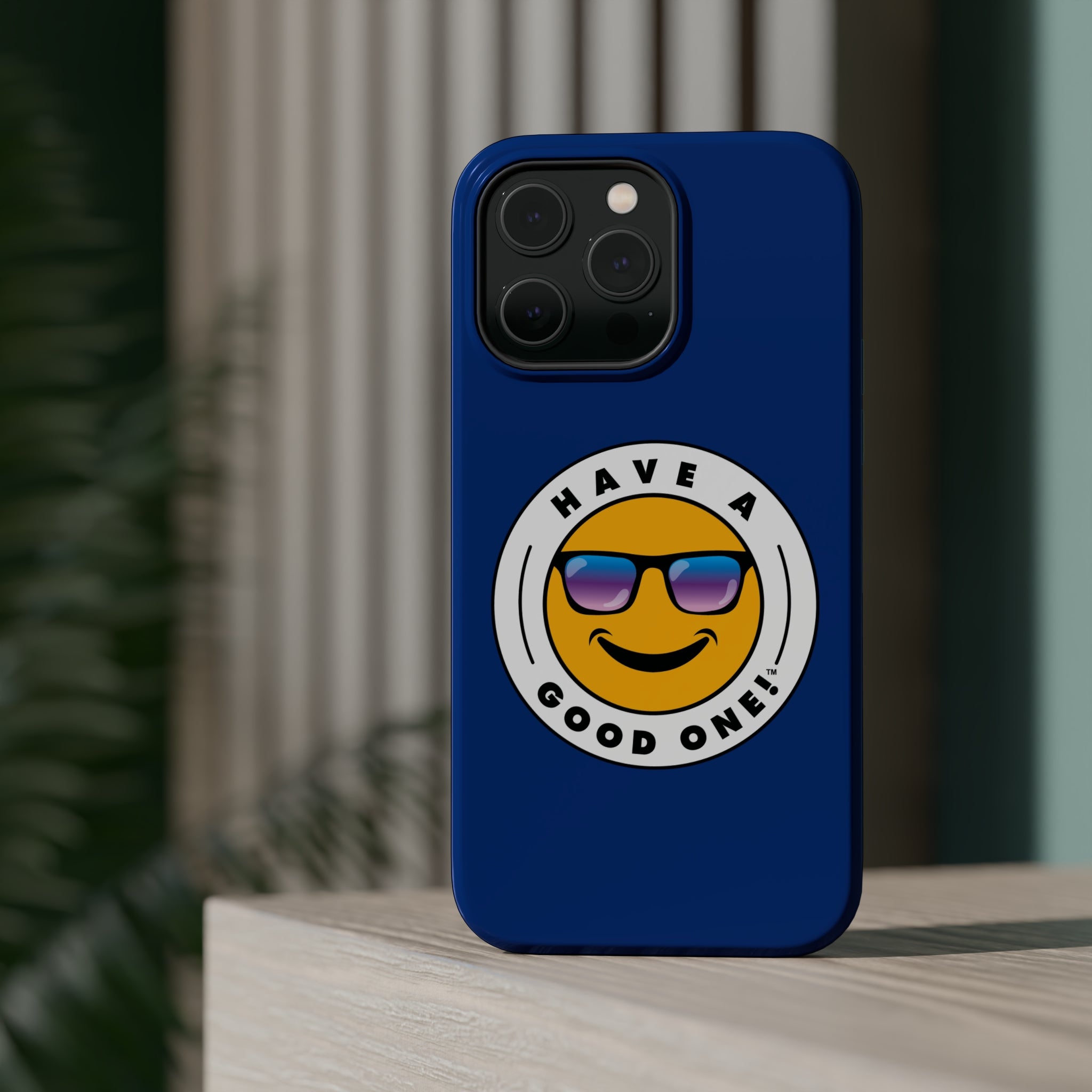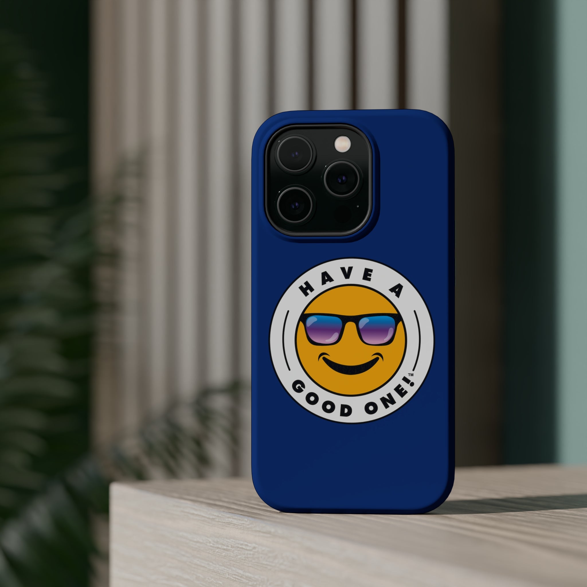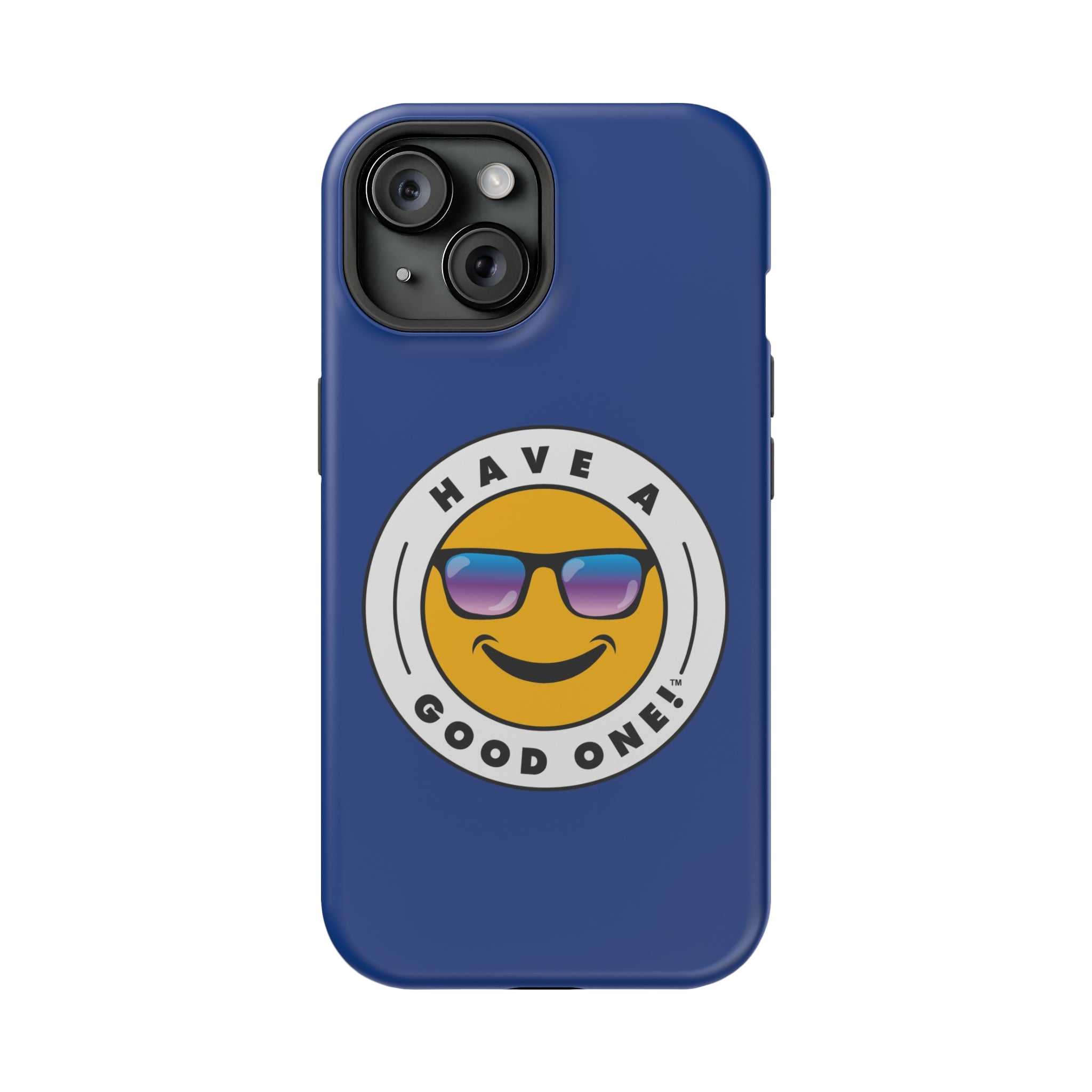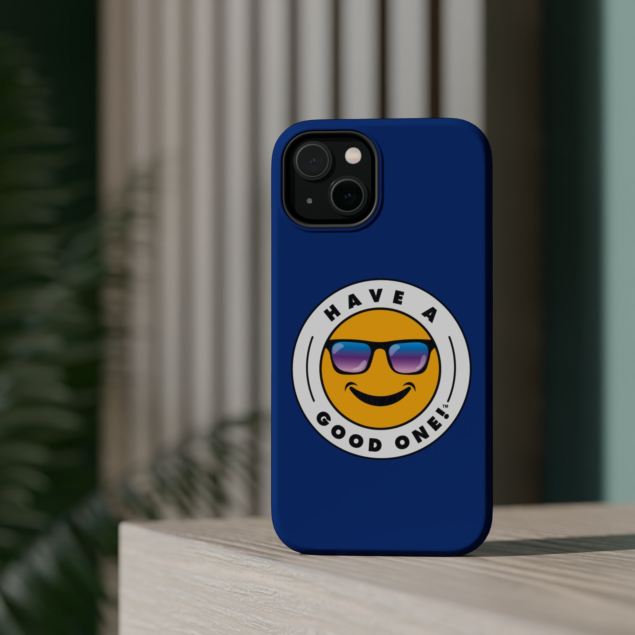 Fun On The Run MagSafe Tough Phone Case - Dark Blue Color With Blue Purple Have a Good One! Logo
