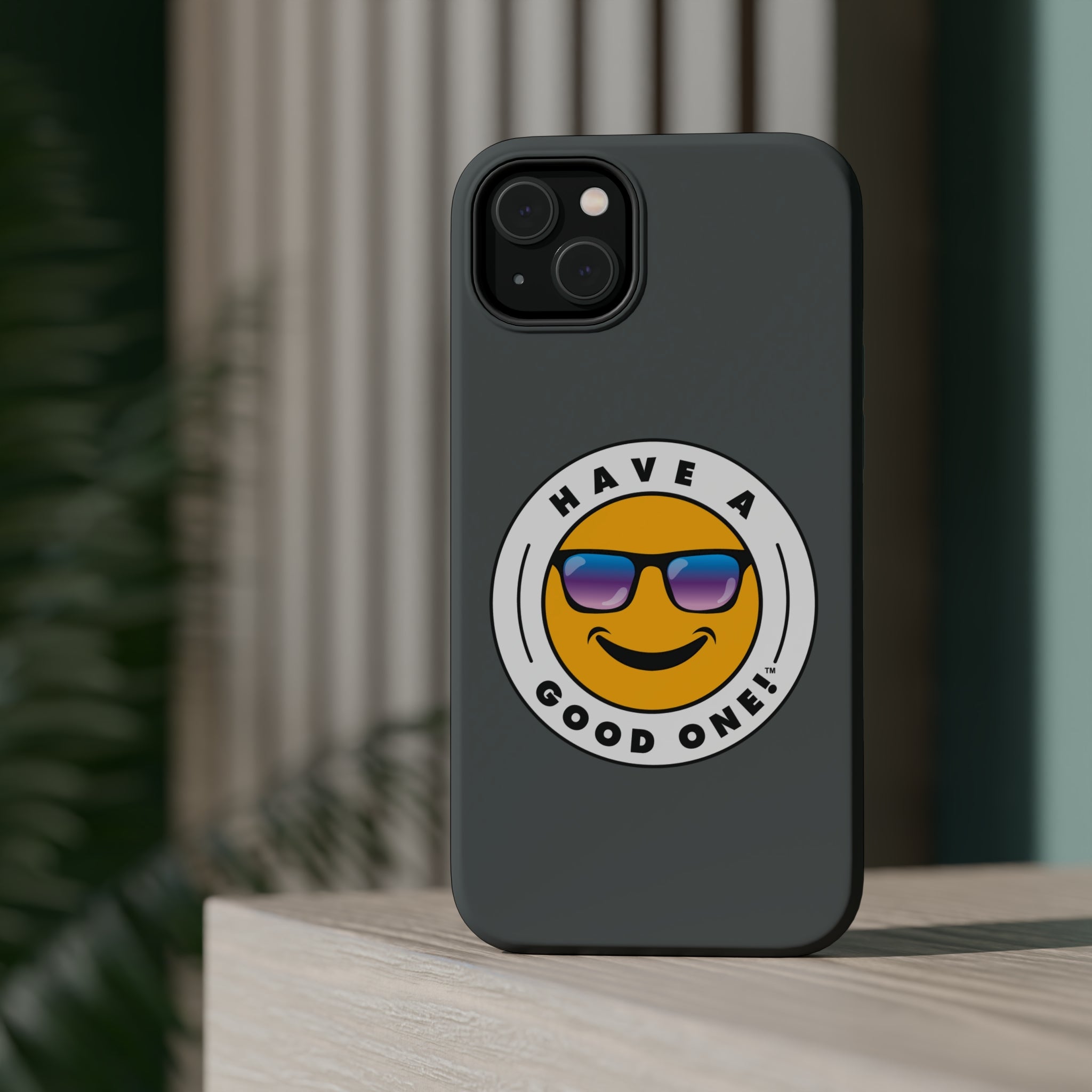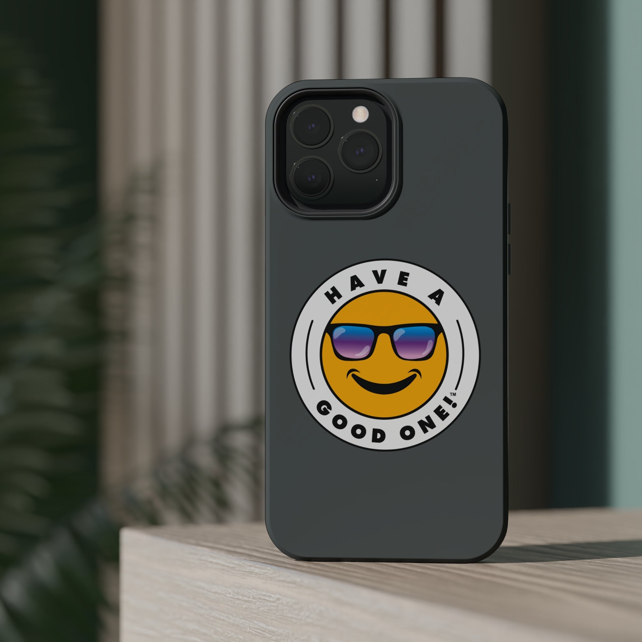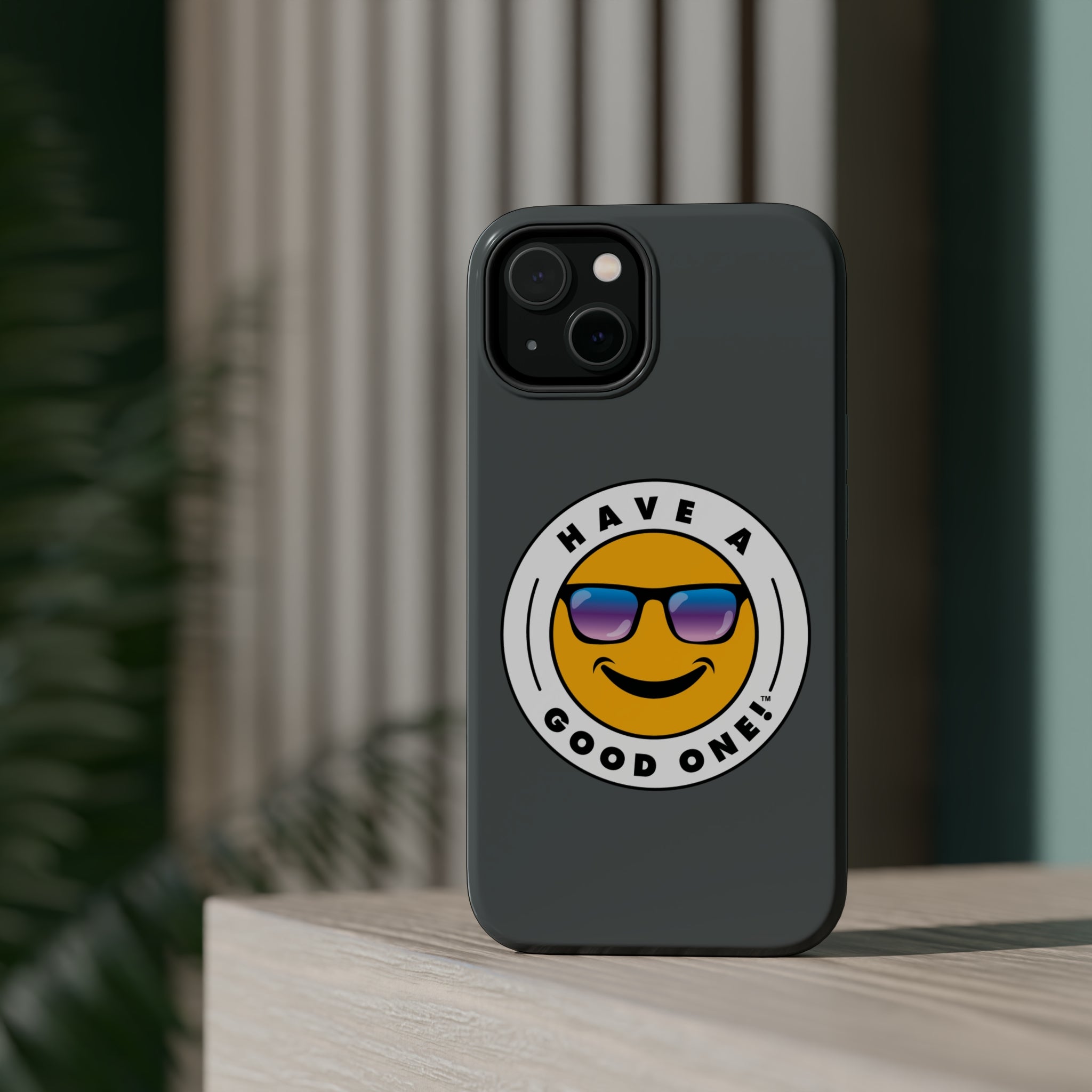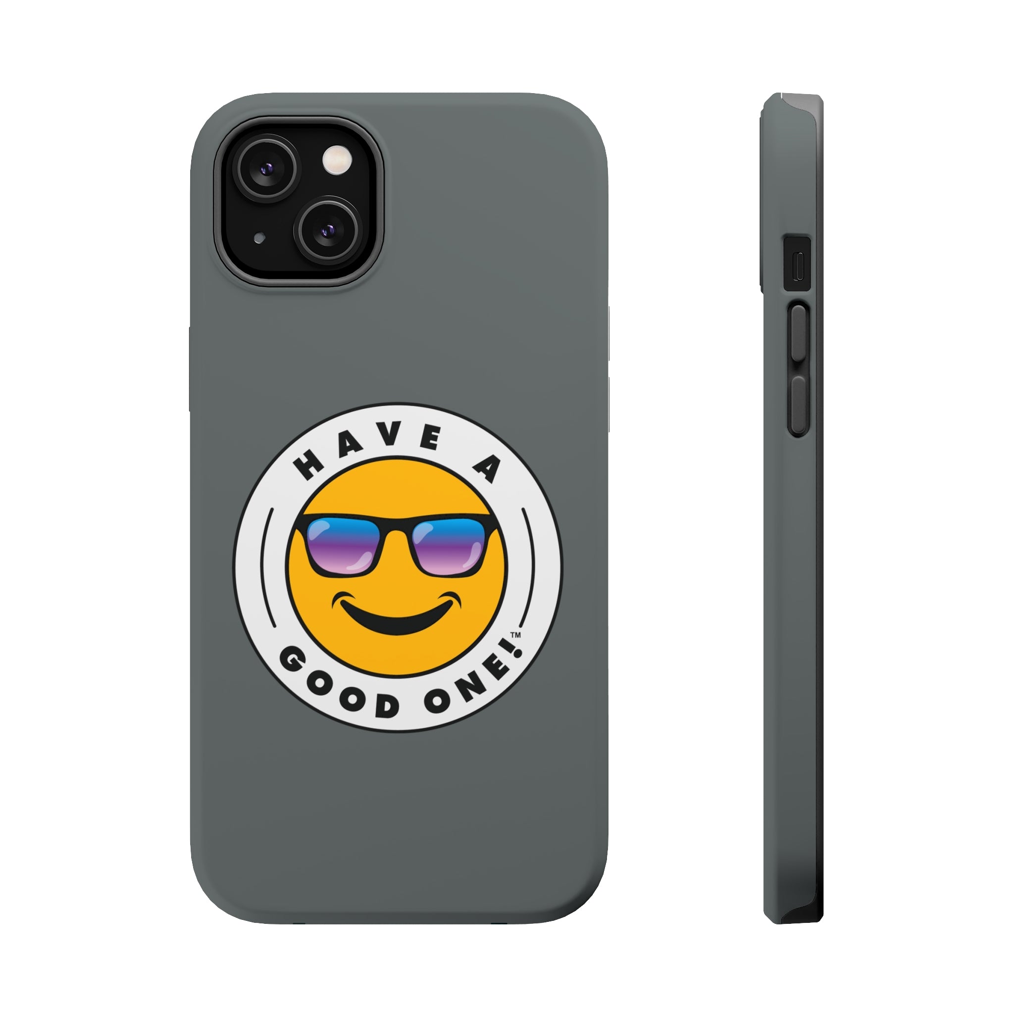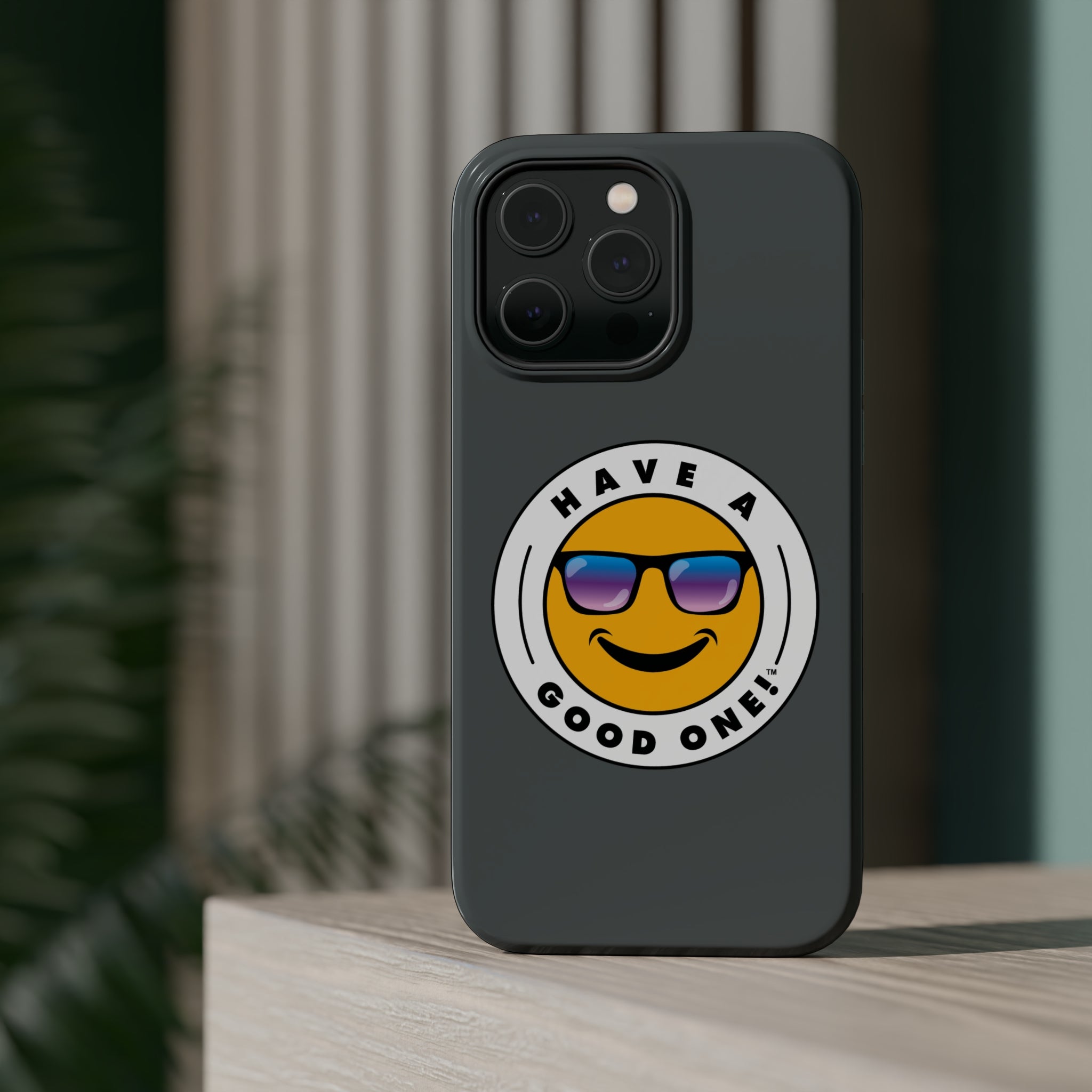 Have fun on the run with our Have A Good One phone cases! Wherever you go this phone case is sure to brighten your day and bring a smile to your face! This is where aesthetics meet function with our MagSafe case. This case delivers impeccable phone protection thanks to its durable, flexible, impact-resistant nature. It has an outer polycarbonate shell and inner black lining to protect against scratches and minor bumps. Each case comes with an embedded magnet to enhance compatibility with Apple MagSafe accessories. The case is available in glossy or matte finish so you can select which one you prefer. We have all of the popular sizes so you are sure to find the best fit for your phone. Lots of vibrant and fun colors to choose from which will surely make you feel the Have A Good One vibe every time you use it!