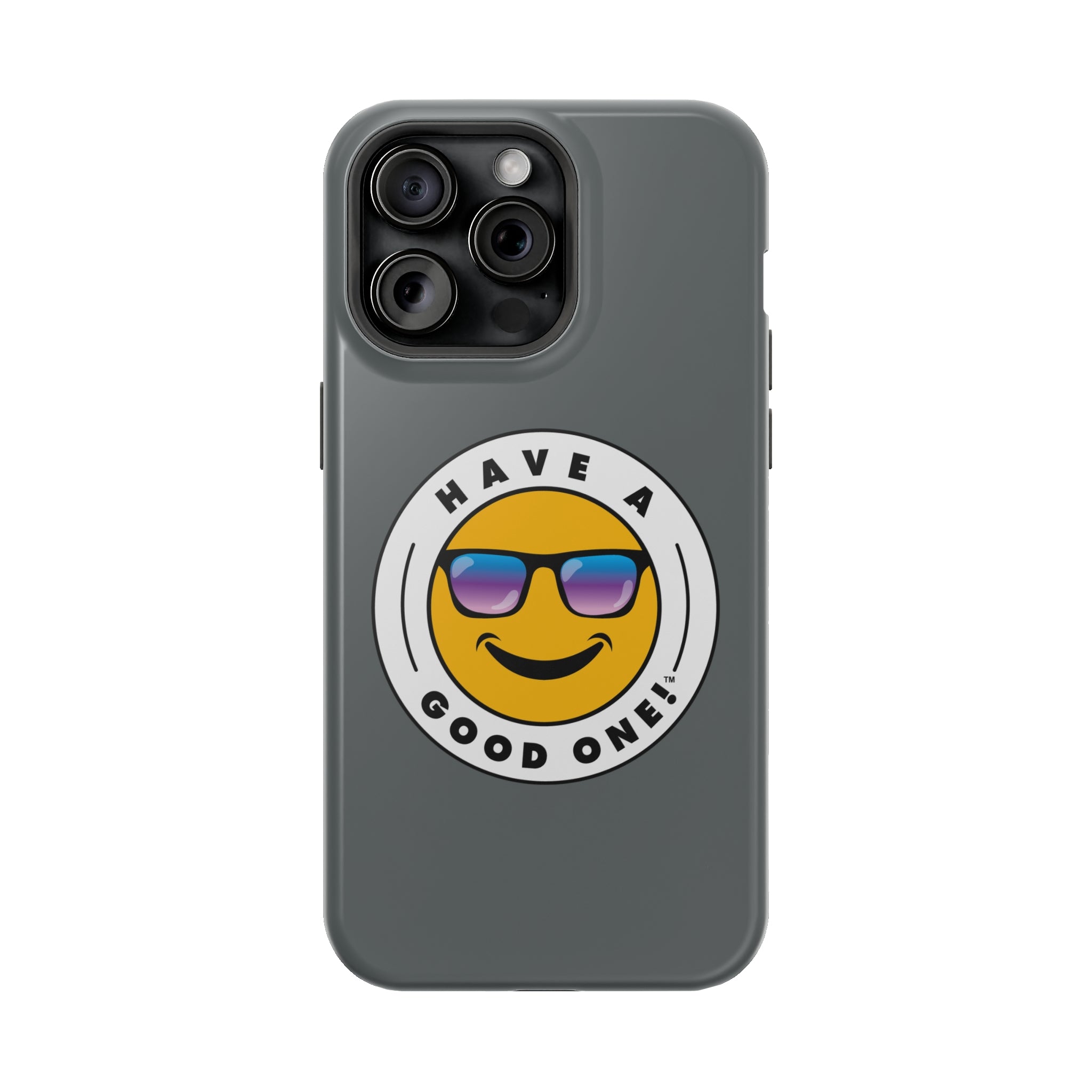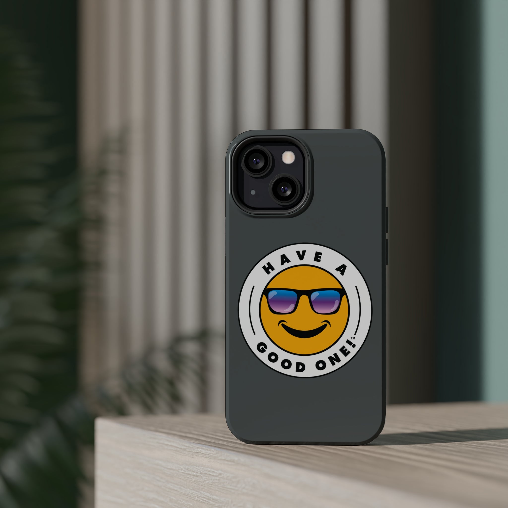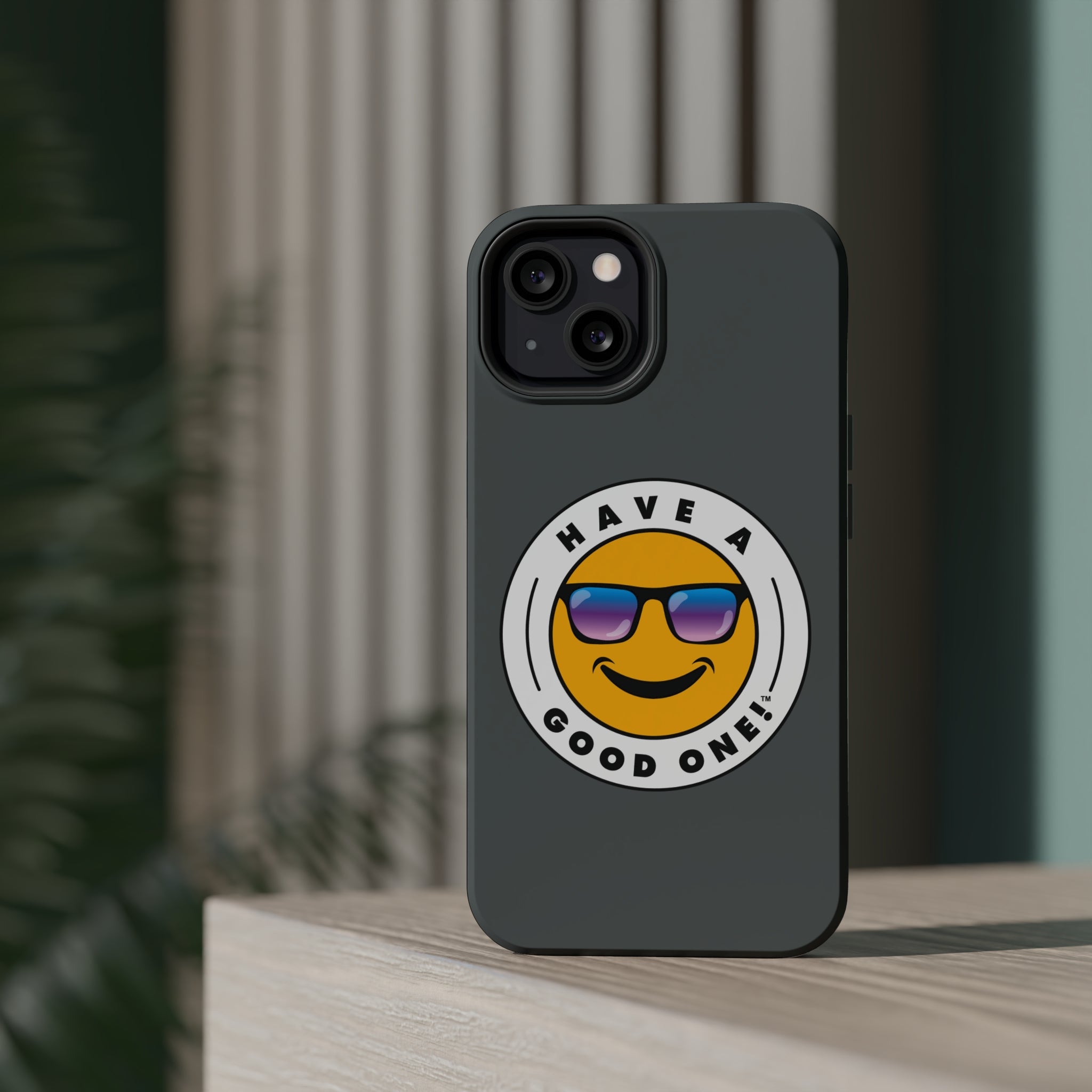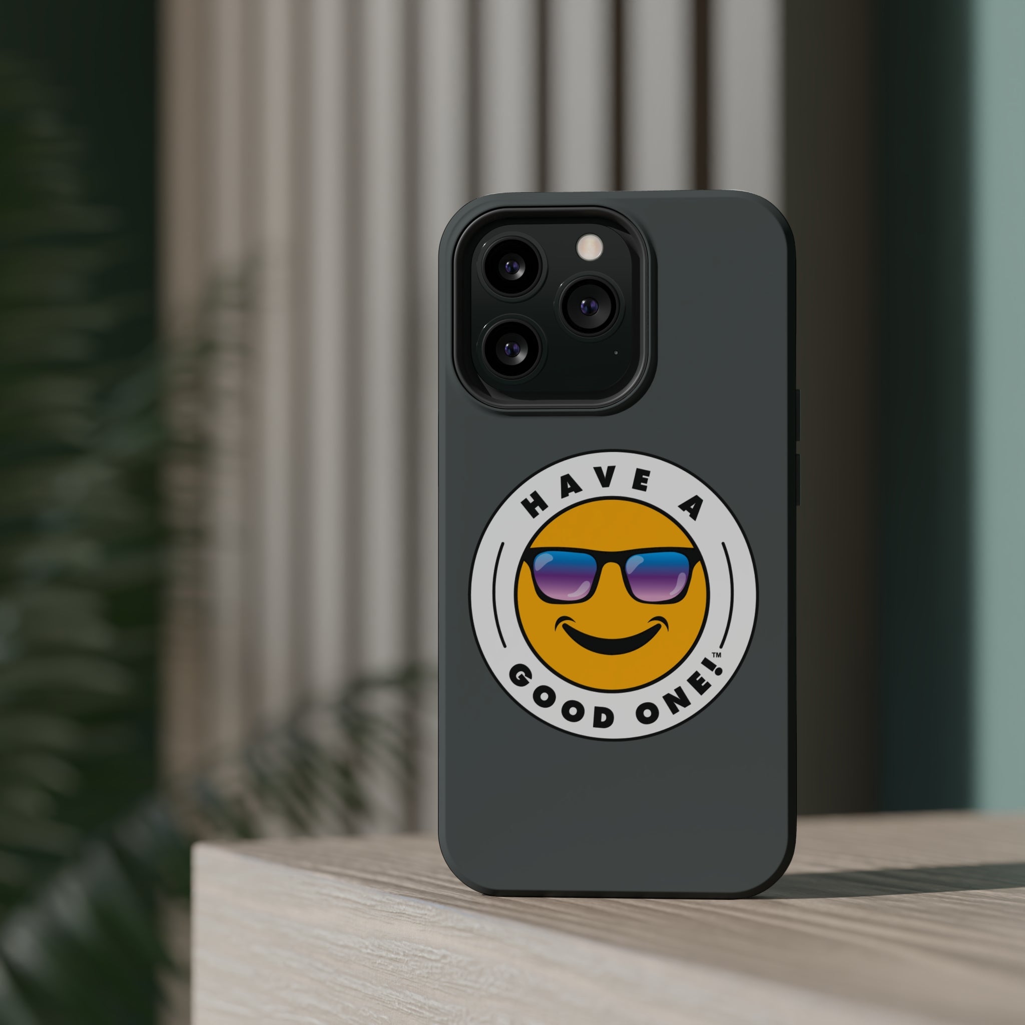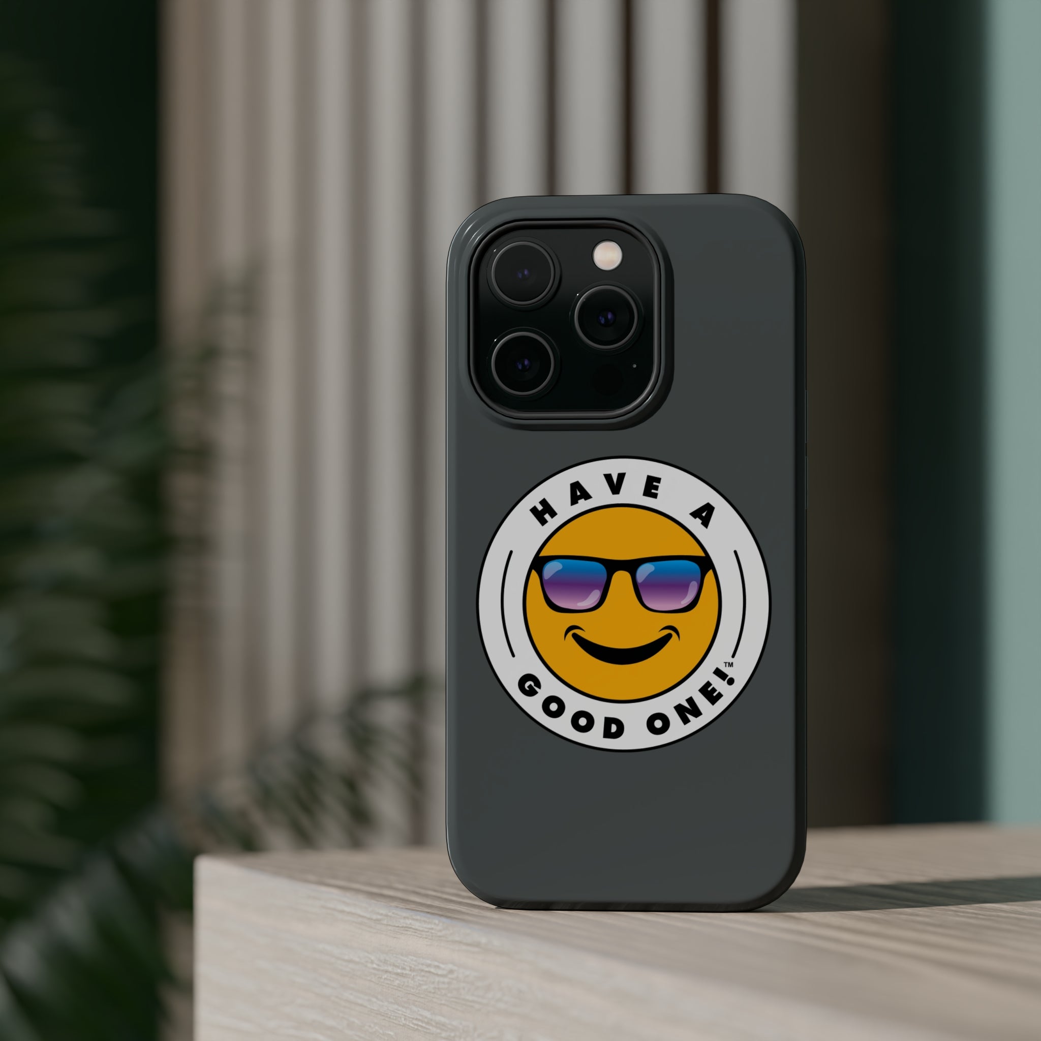 Have fun on the run with our Have A Good One phone cases! Wherever you go this phone case is sure to brighten your day and bring a smile to your face! This is where aesthetics meet function with our MagSafe case. This case delivers impeccable phone protection thanks to its durable, flexible, impact-resistant nature. It has an outer polycarbonate shell and inner black lining to protect against scratches and minor bumps. Each case comes with an embedded magnet to enhance compatibility with Apple MagSafe accessories. The case is available in glossy or matte finish so you can select which one you prefer. We have all of the popular sizes so you are sure to find the best fit for your phone. Lots of vibrant and fun colors to choose from which will surely make you feel the Have A Good One vibe every time you use it!