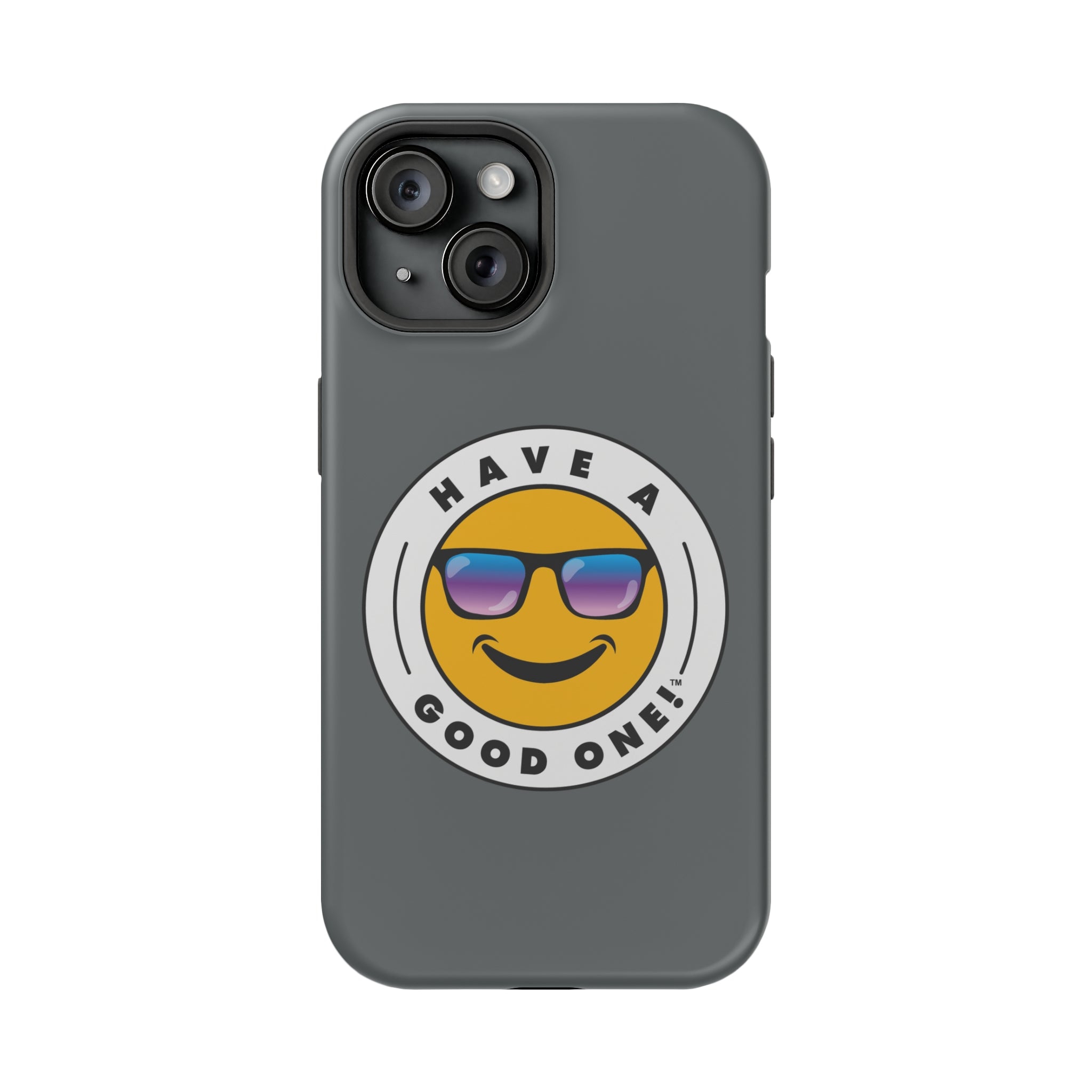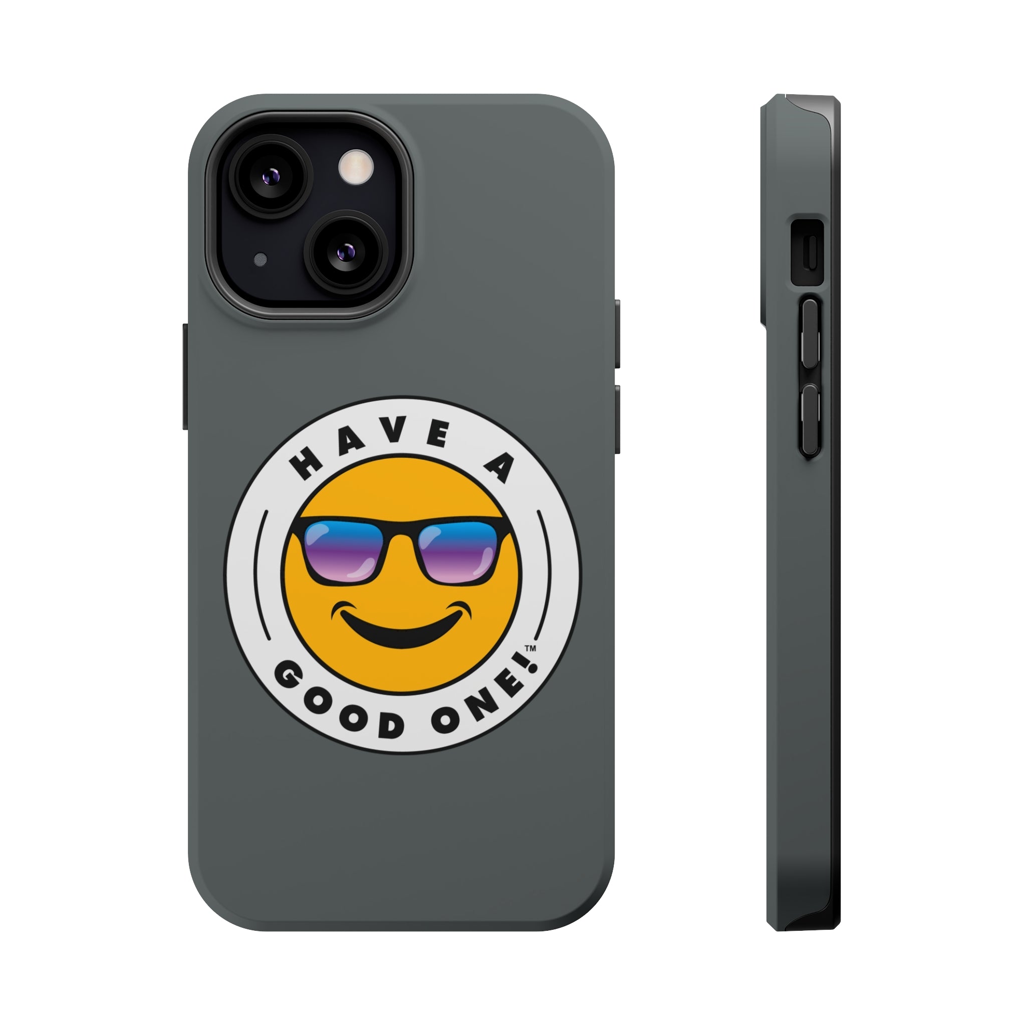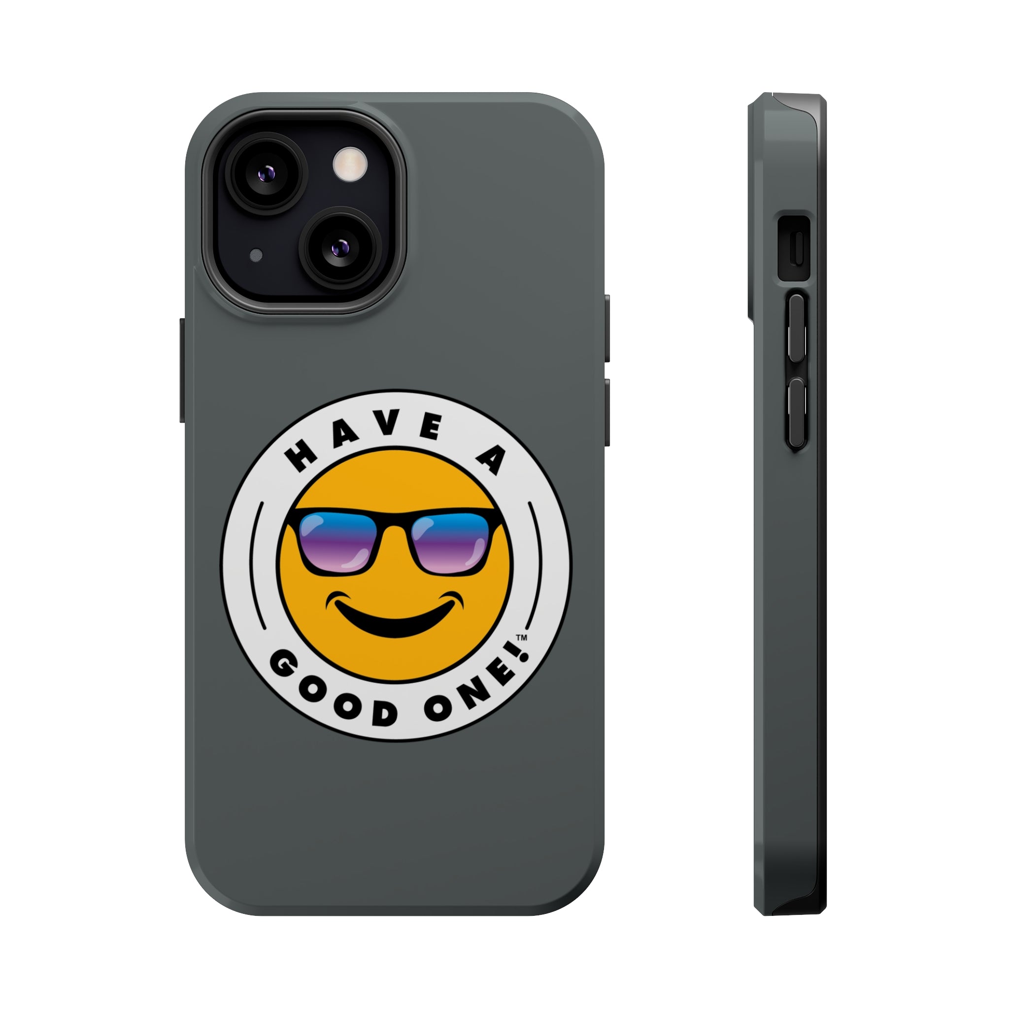 Fun On The Run MagSafe Tough Phone Case - Dark Grey Color With Blue Purple Have a Good One! Logo