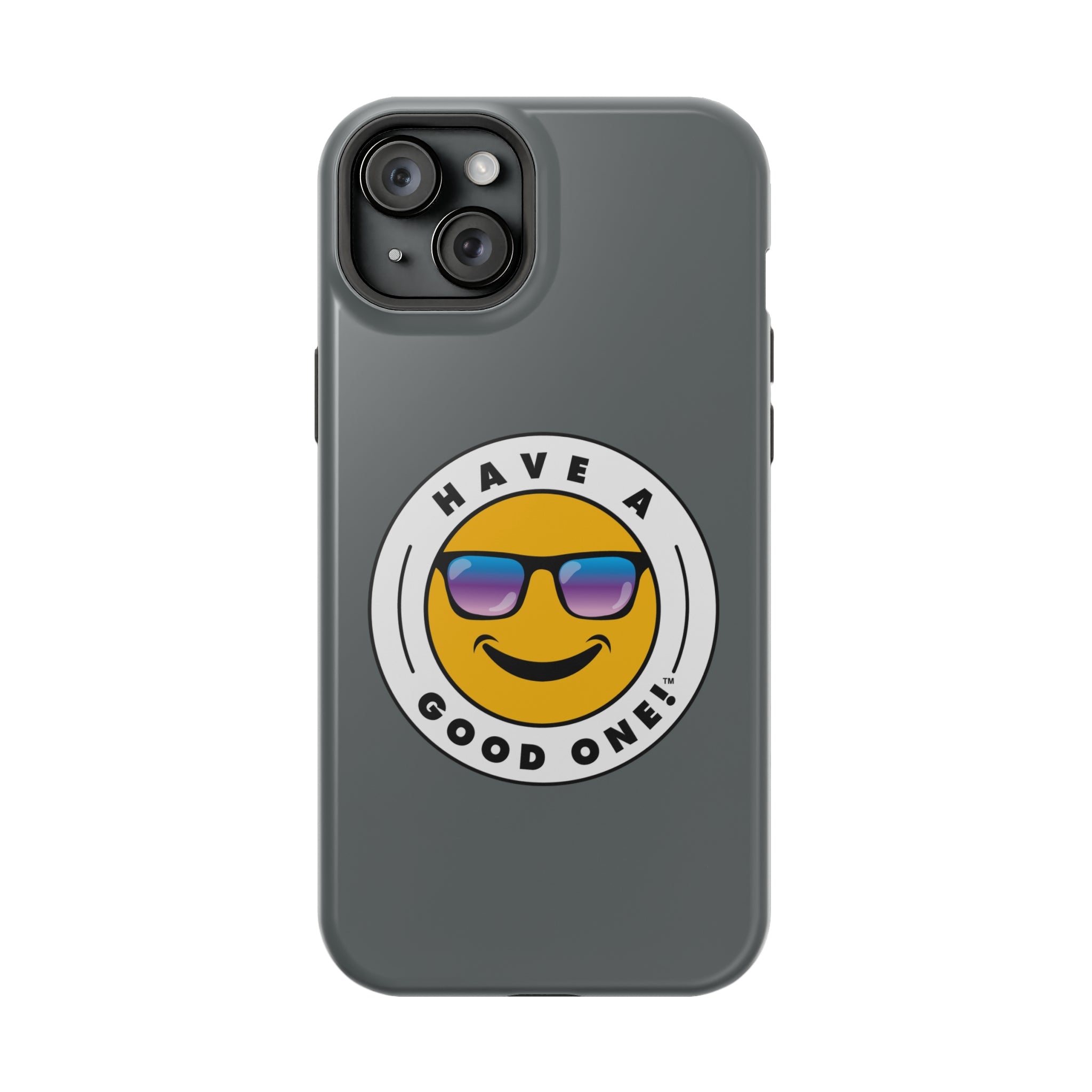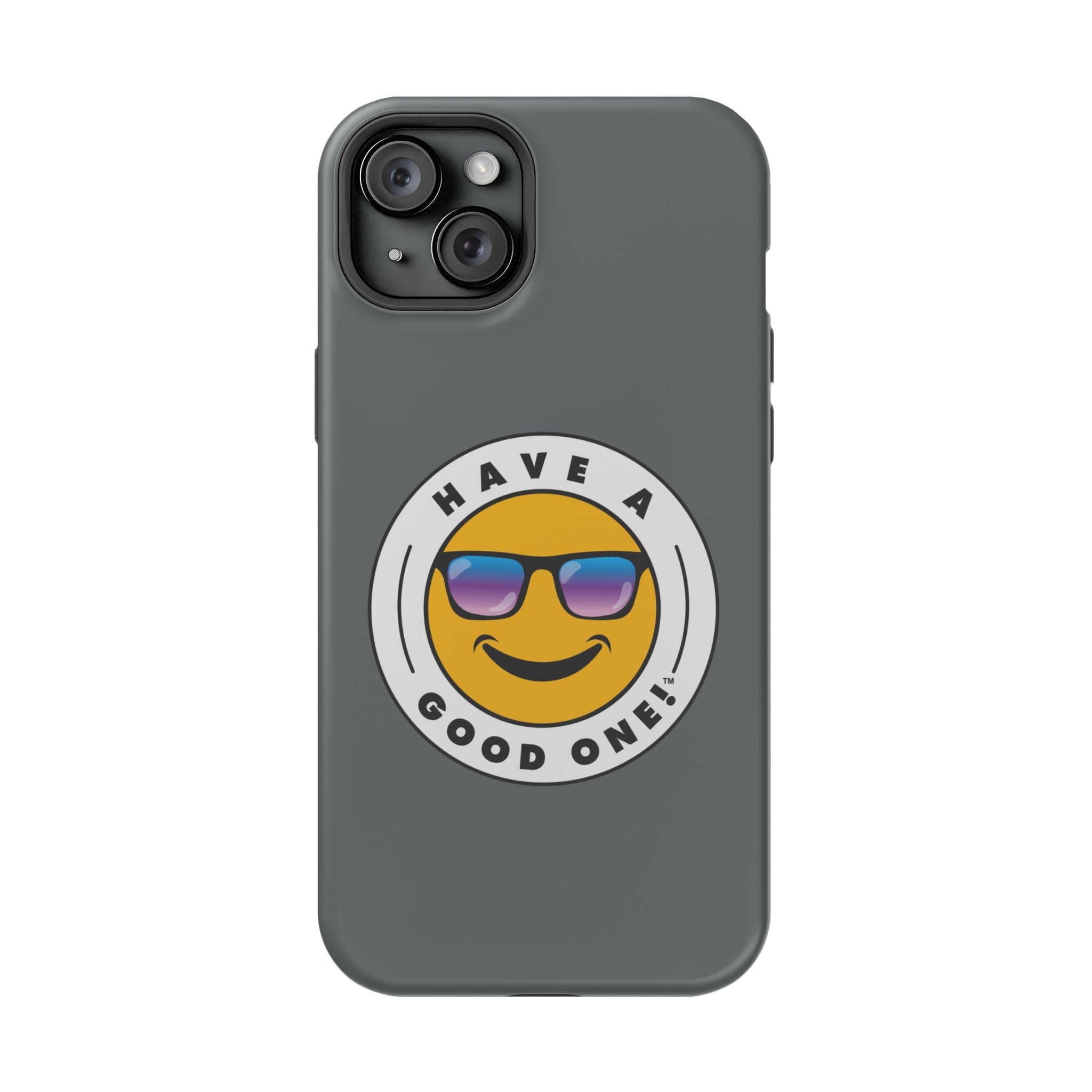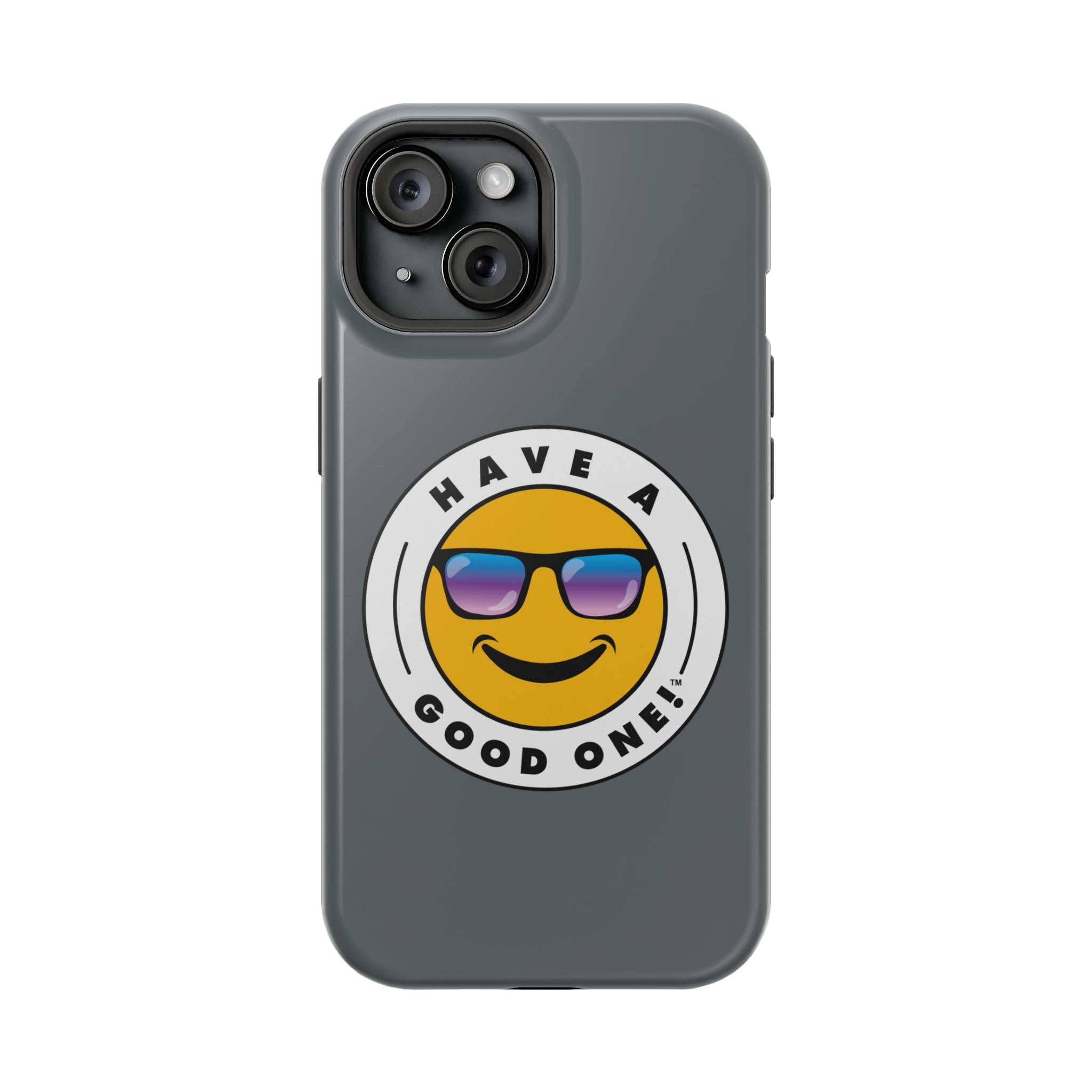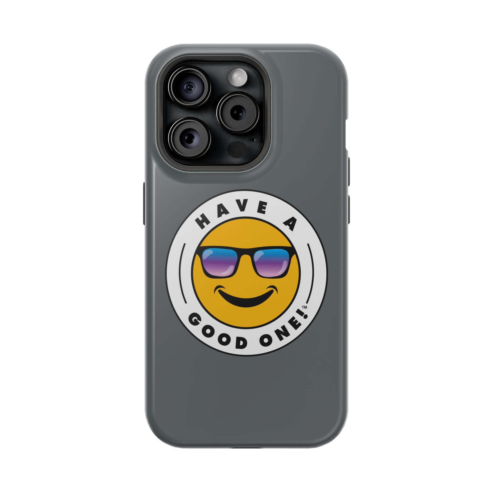 Fun On The Run MagSafe Tough Phone Case - Dark Grey Color With Blue Purple Have a Good One! Logo