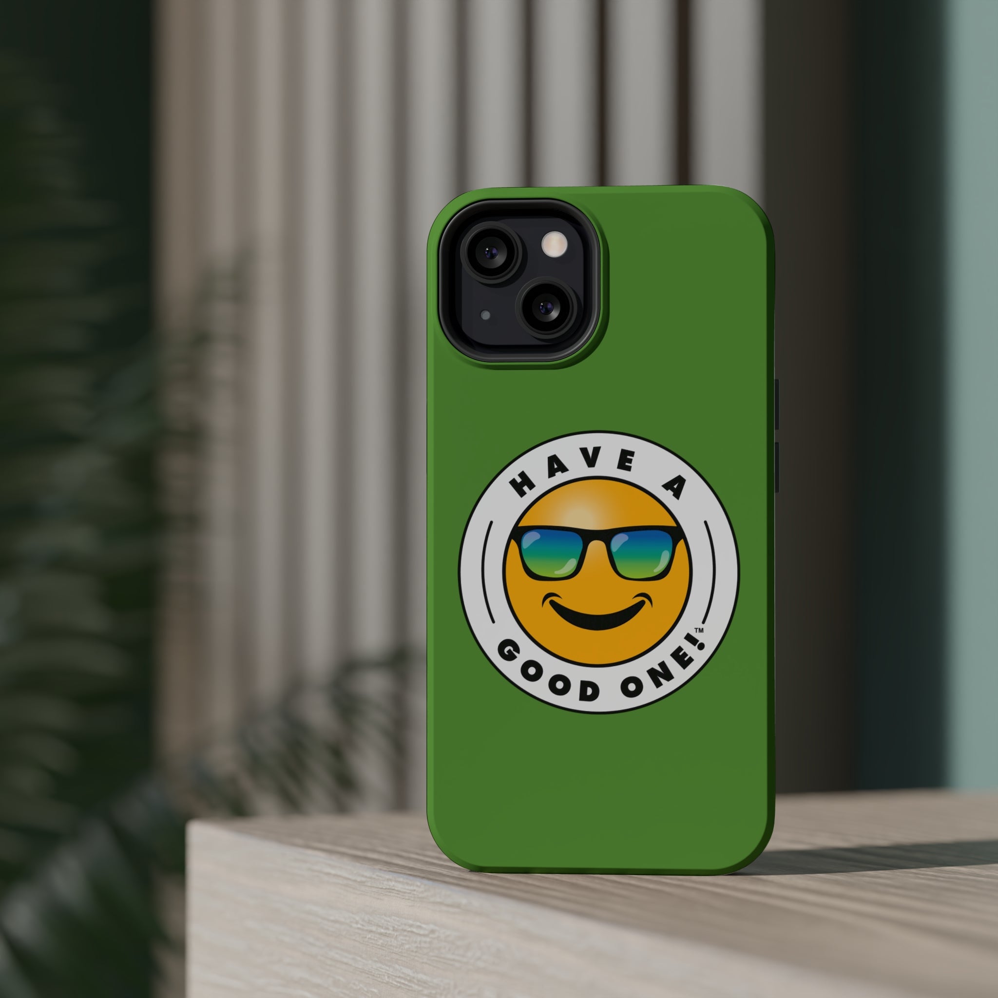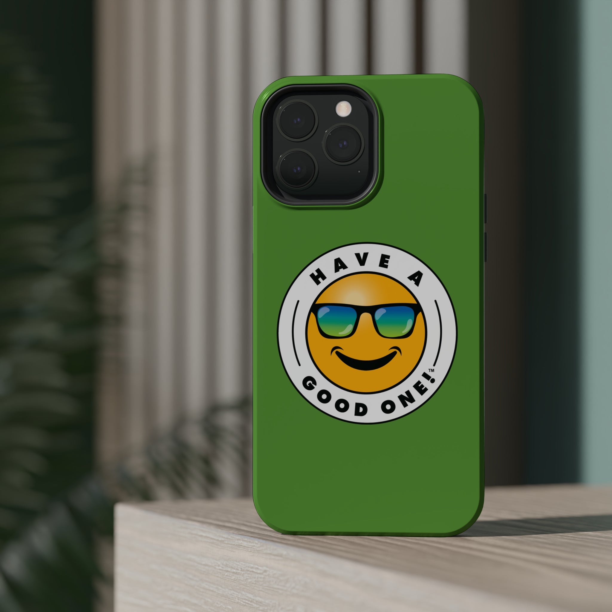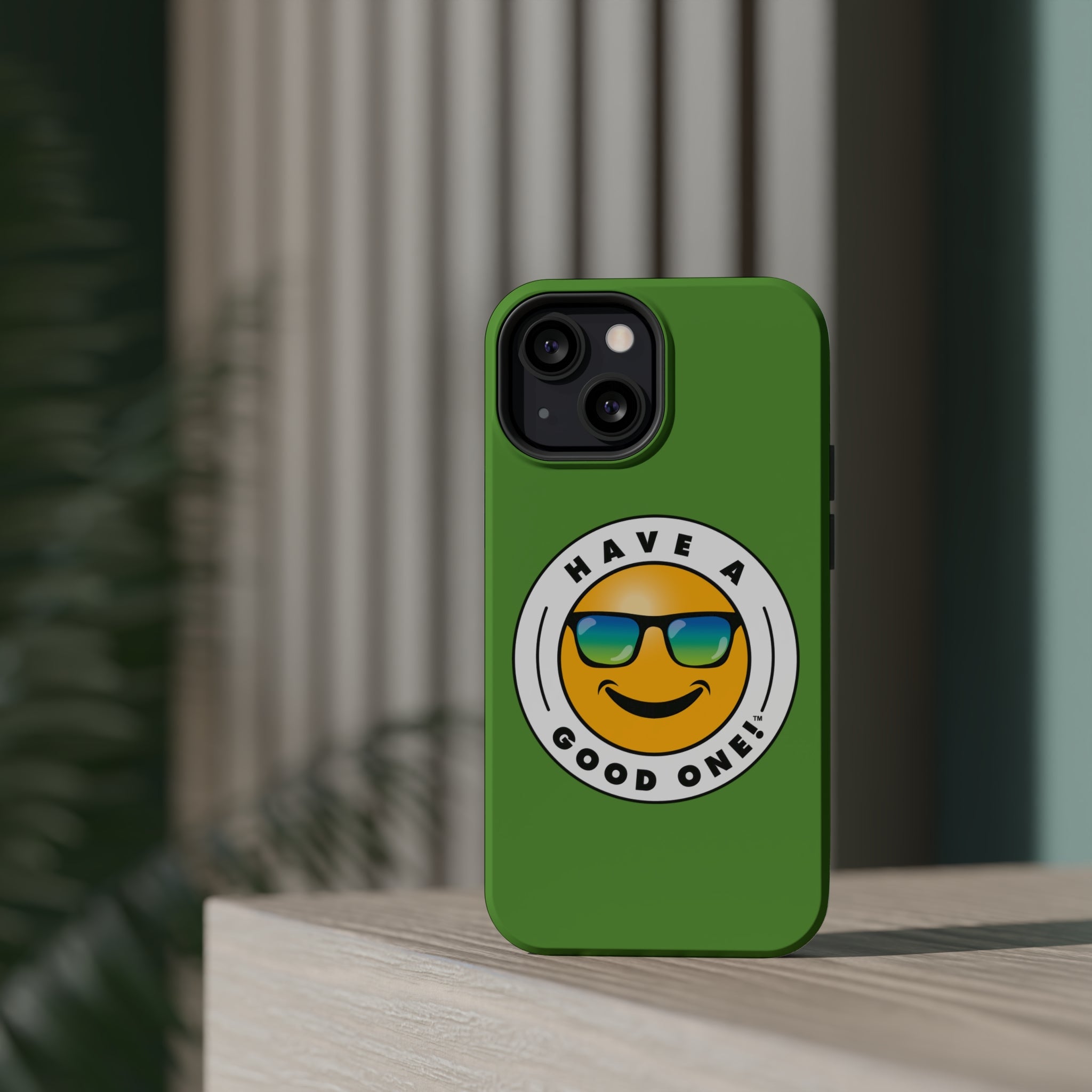 Fun On The Run MagSafe Tough Phone Case - Green Color With Blue Green Have a Good One! Logo