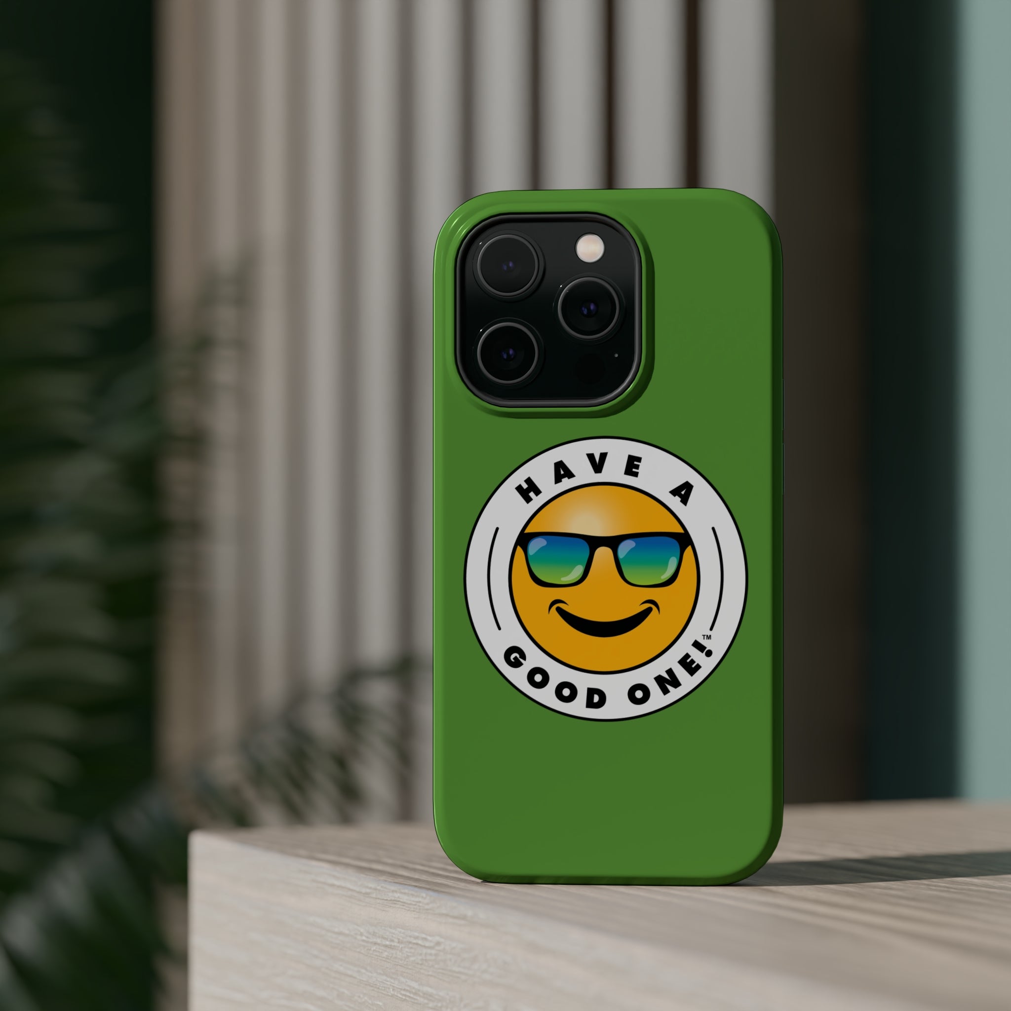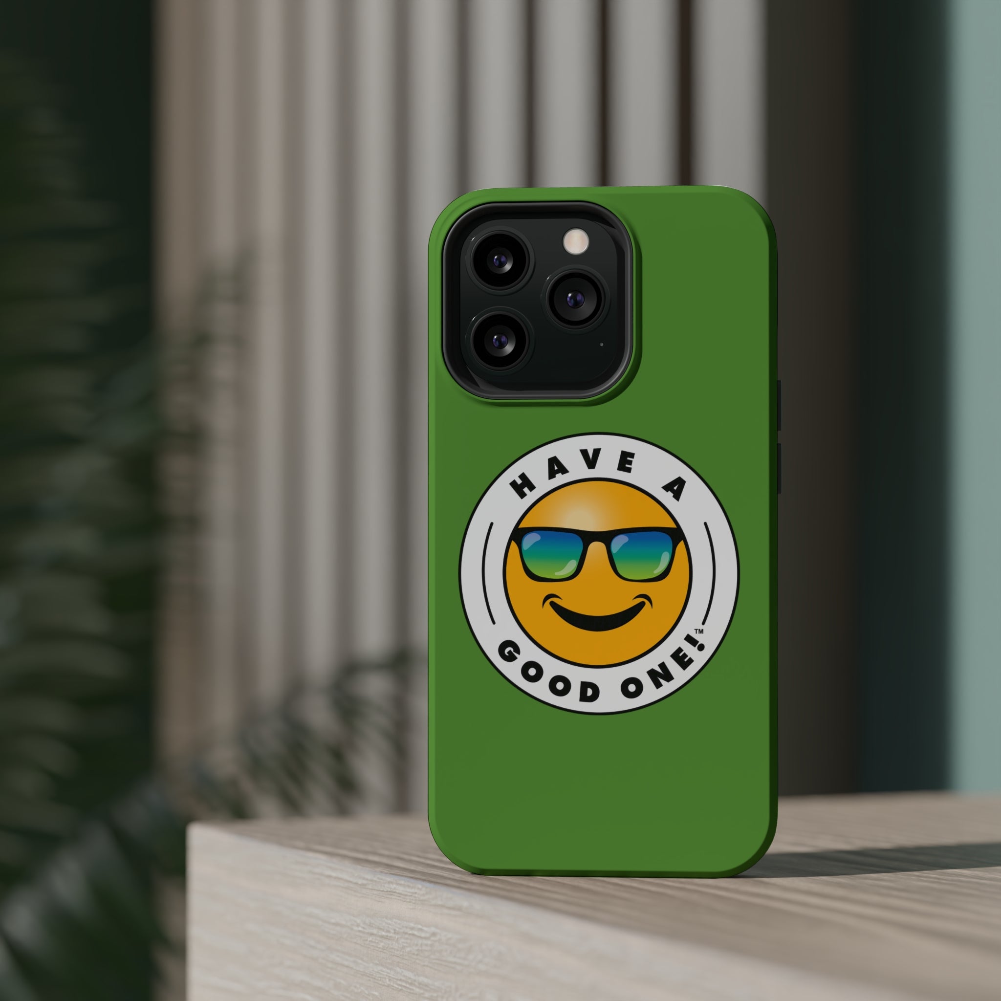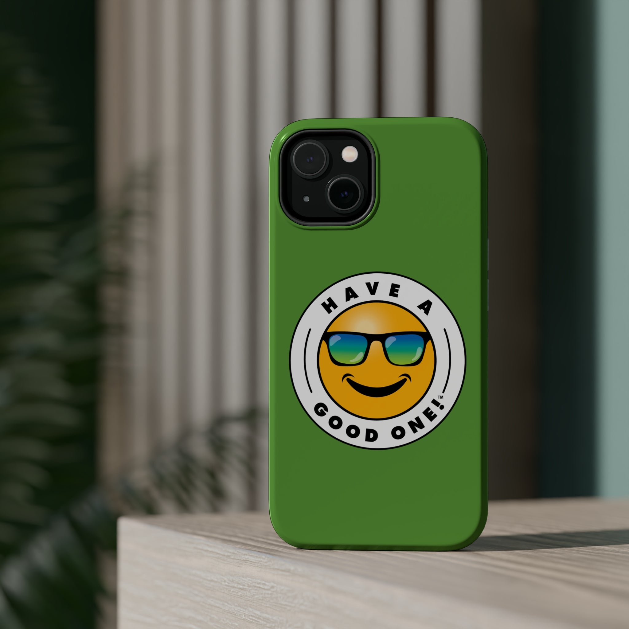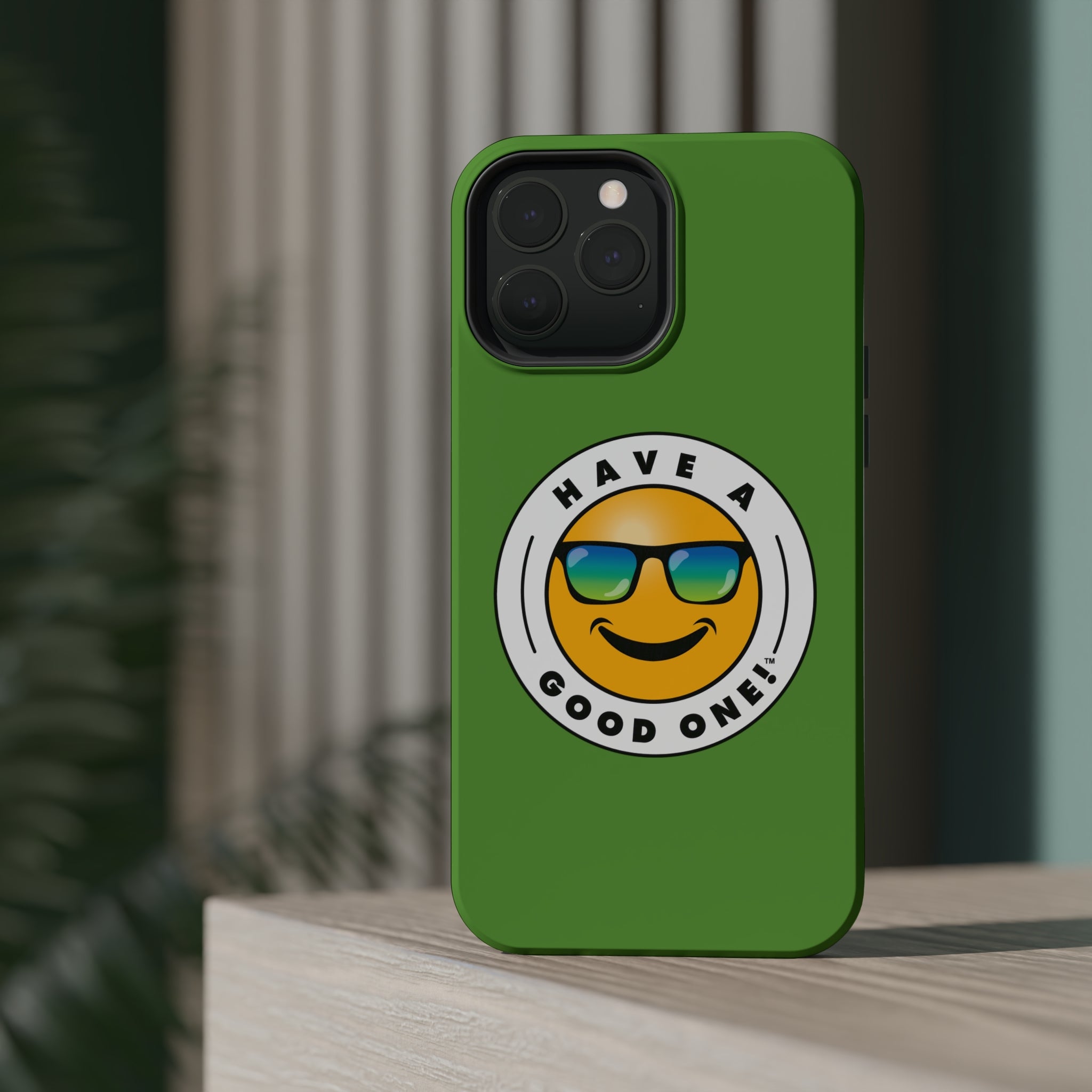 Fun On The Run MagSafe Tough Phone Case - Green Color With Blue Green Have a Good One! Logo