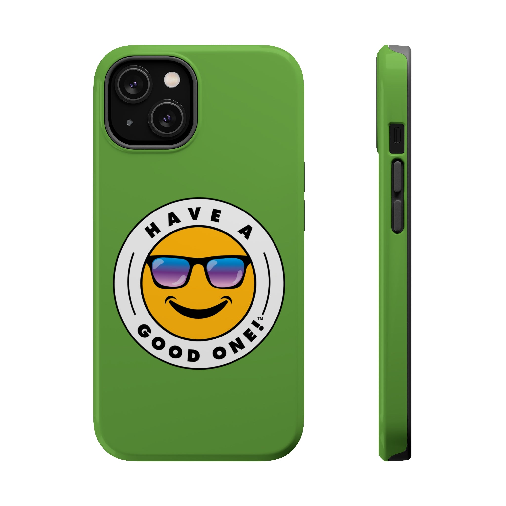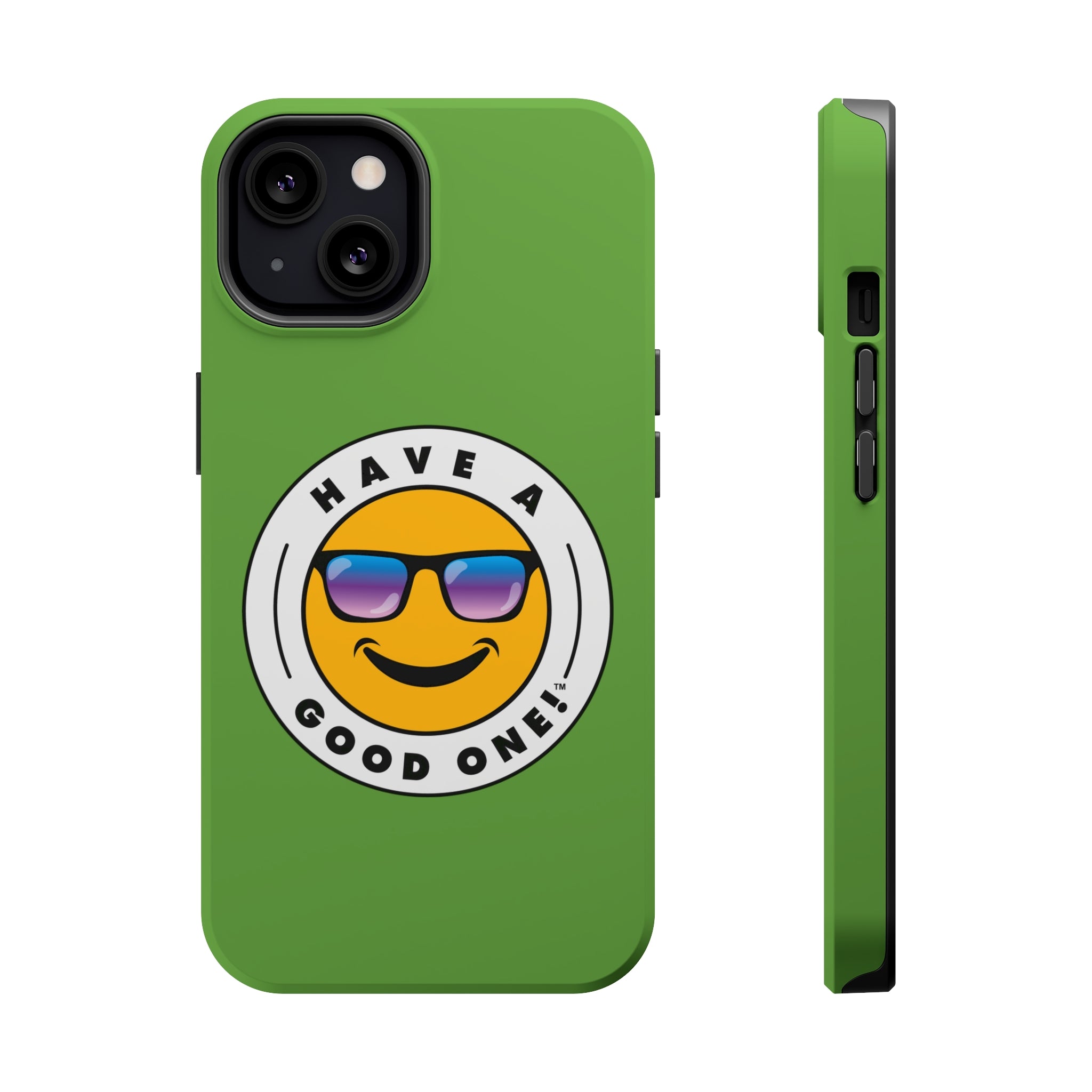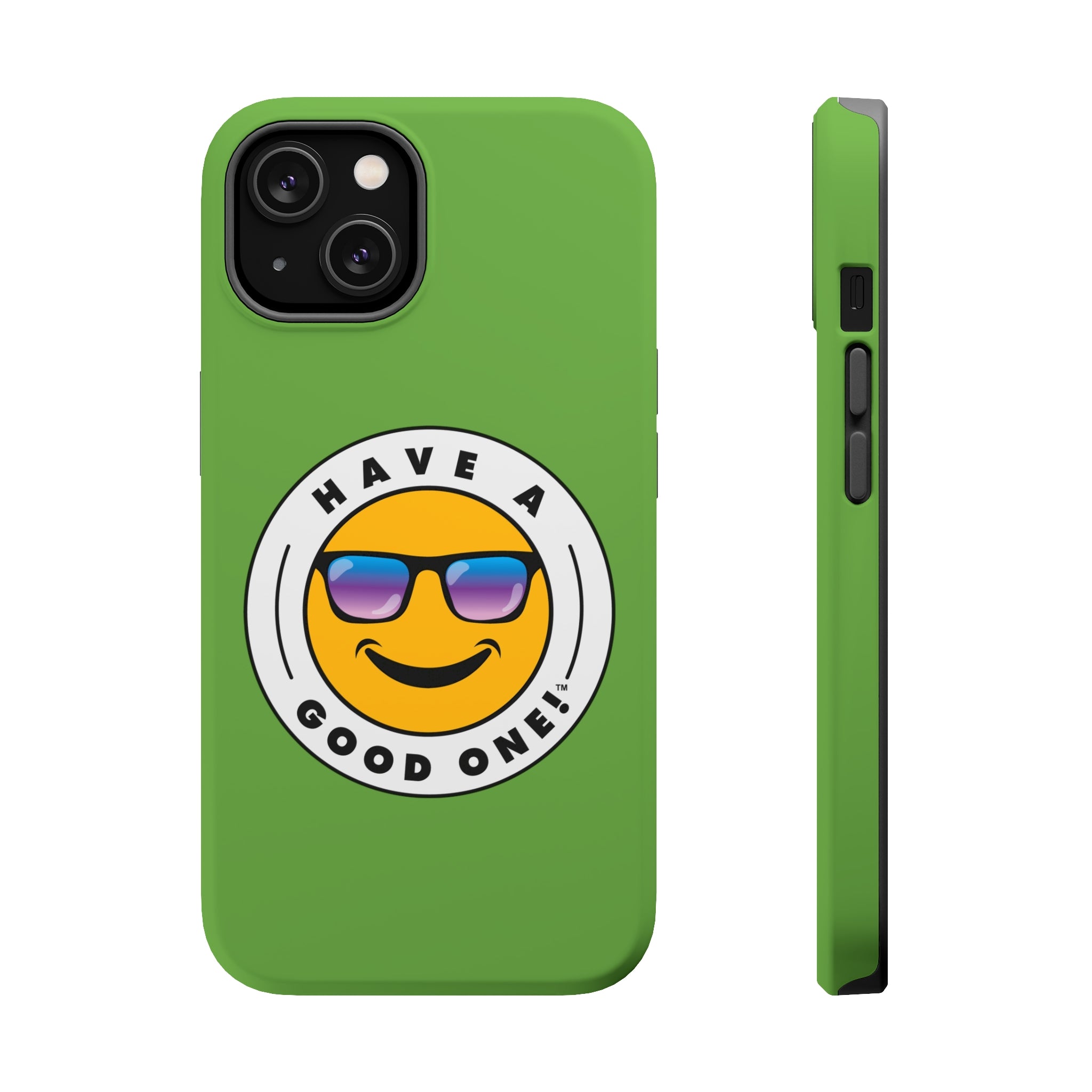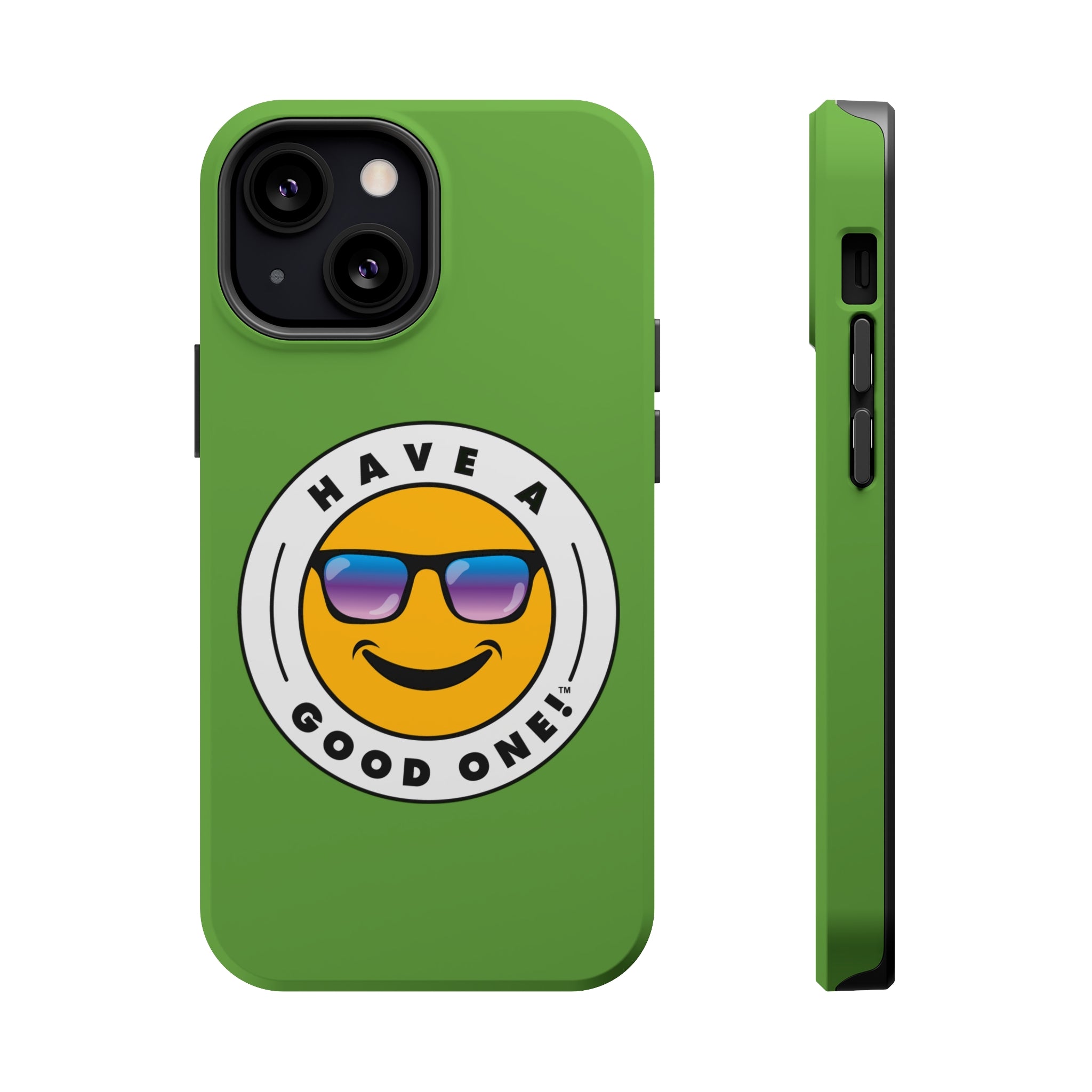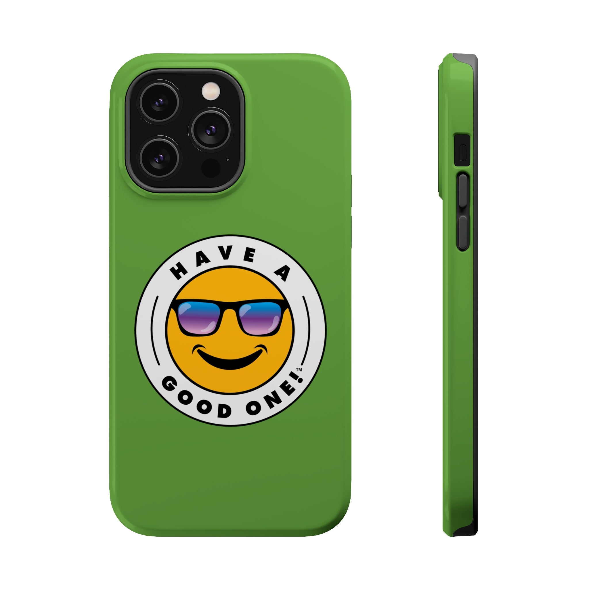 Fun On The Run MagSafe Tough Phone Case - Green Color With Blue Purple Have a Good One! Logo
