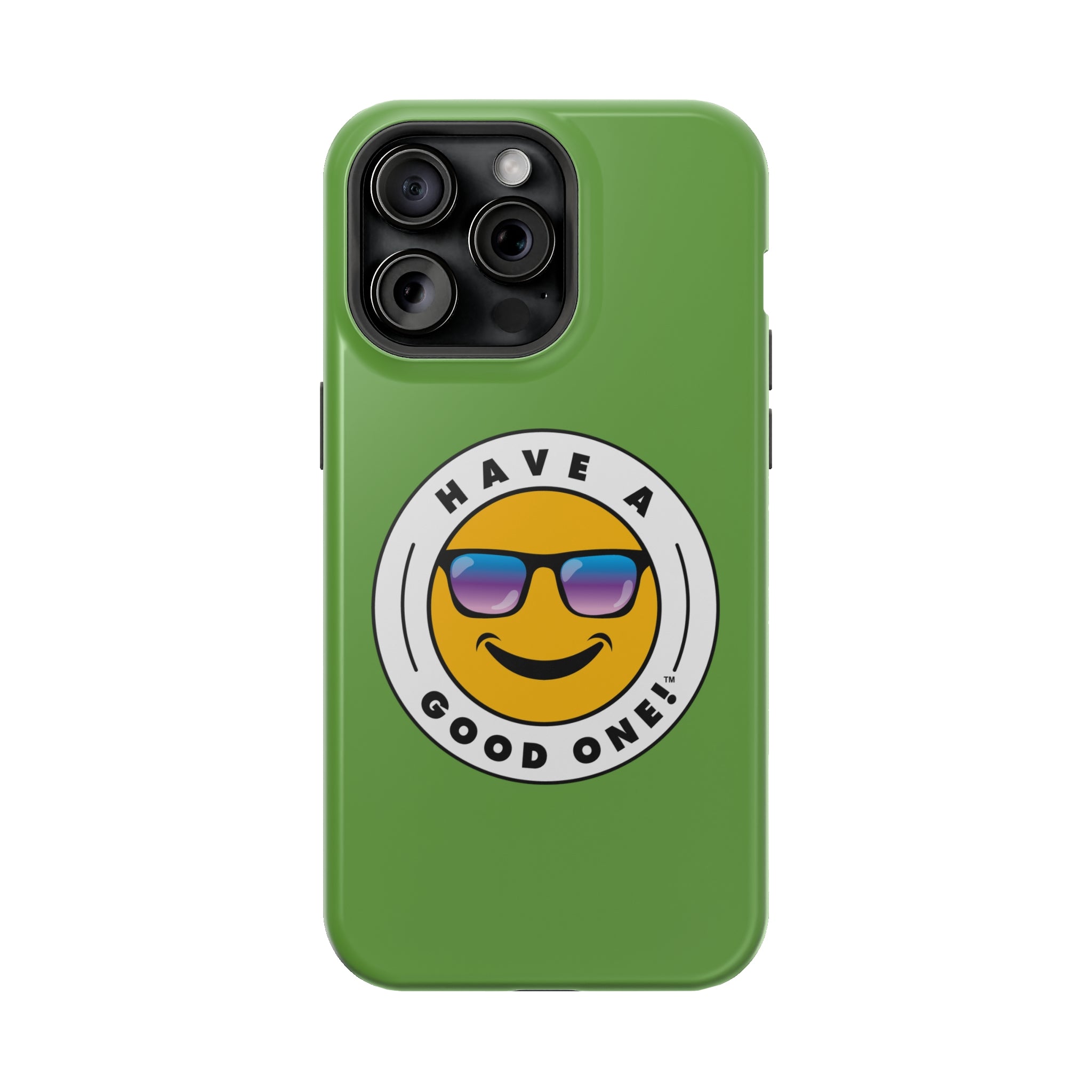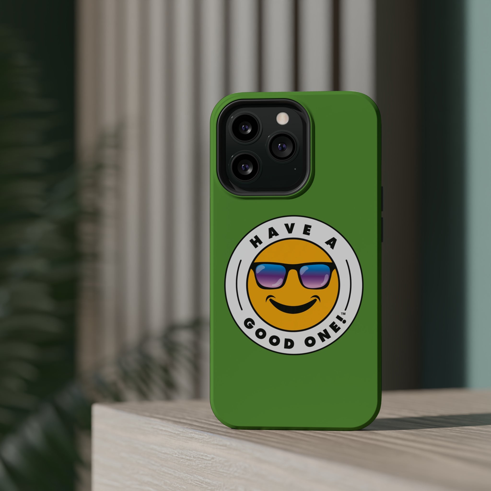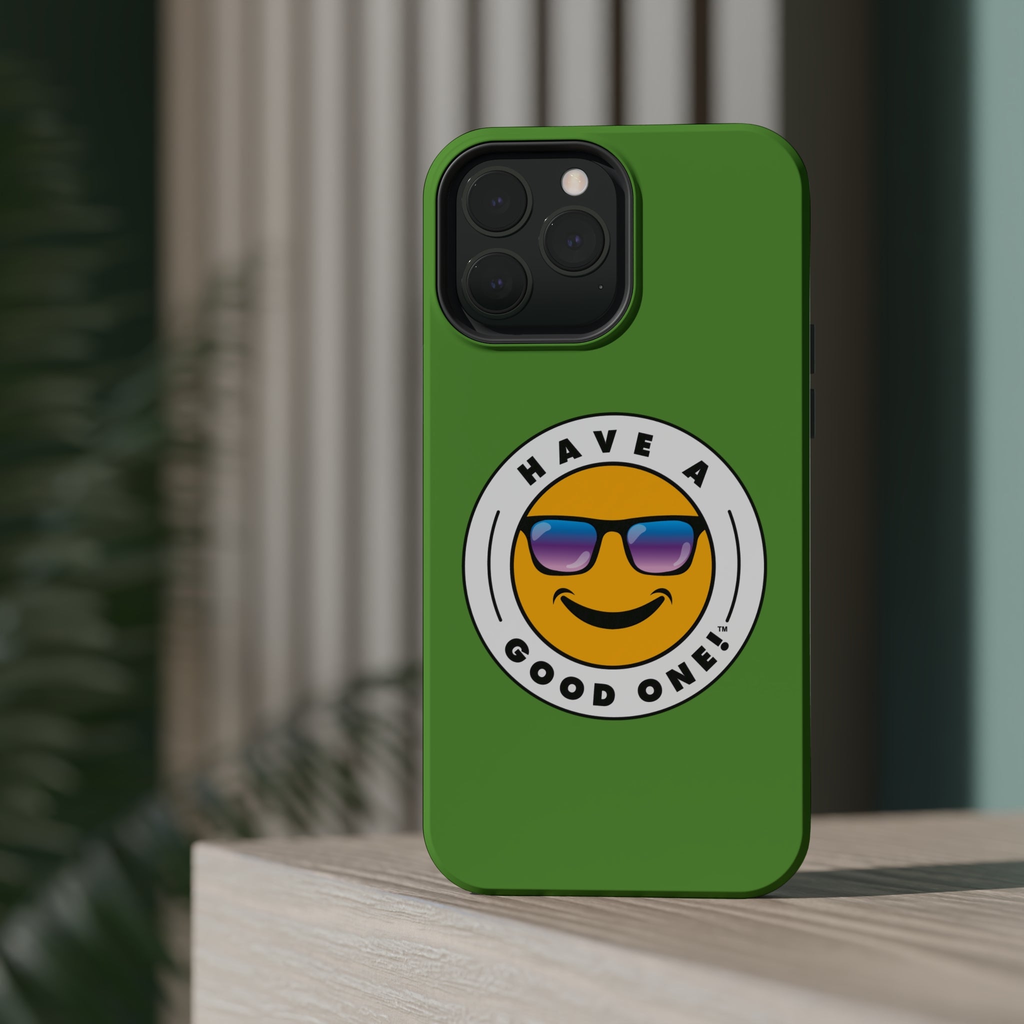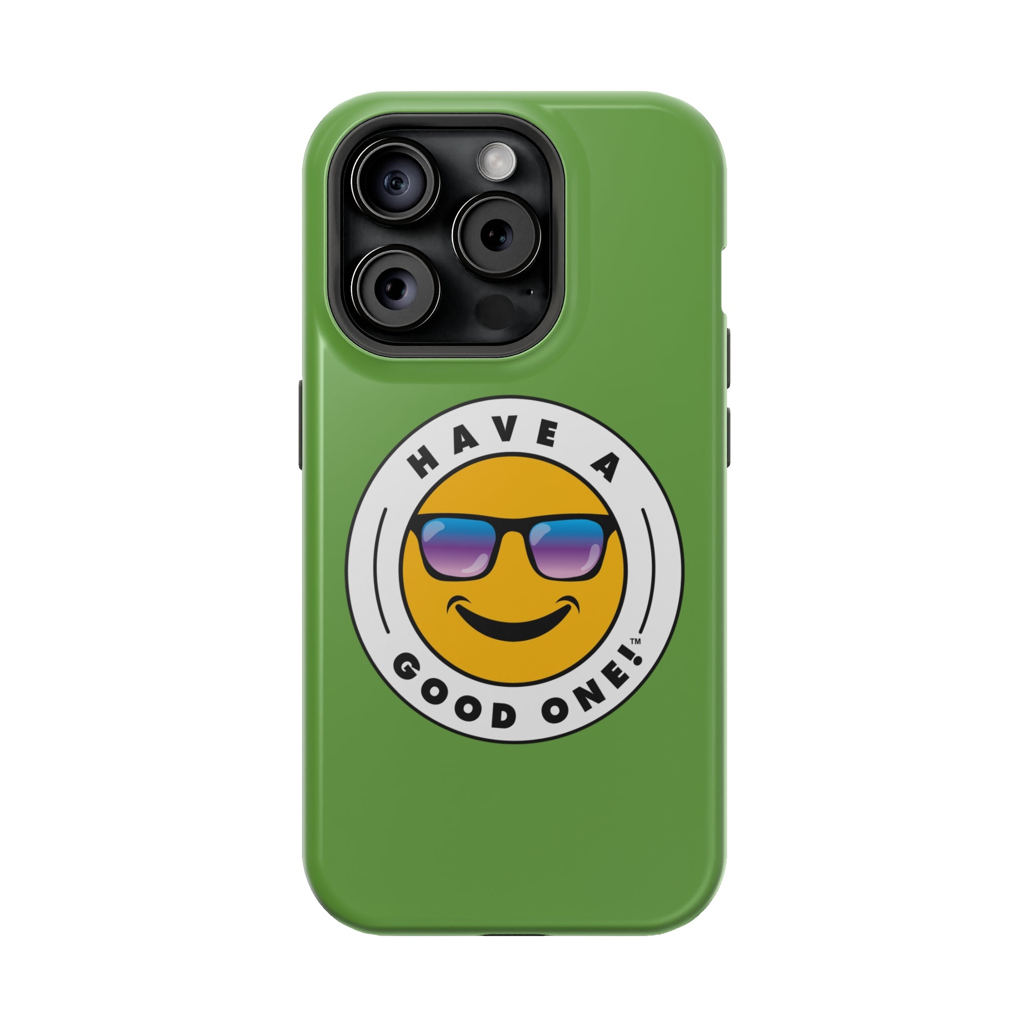 Fun On The Run MagSafe Tough Phone Case - Green Color With Blue Purple Have a Good One! Logo