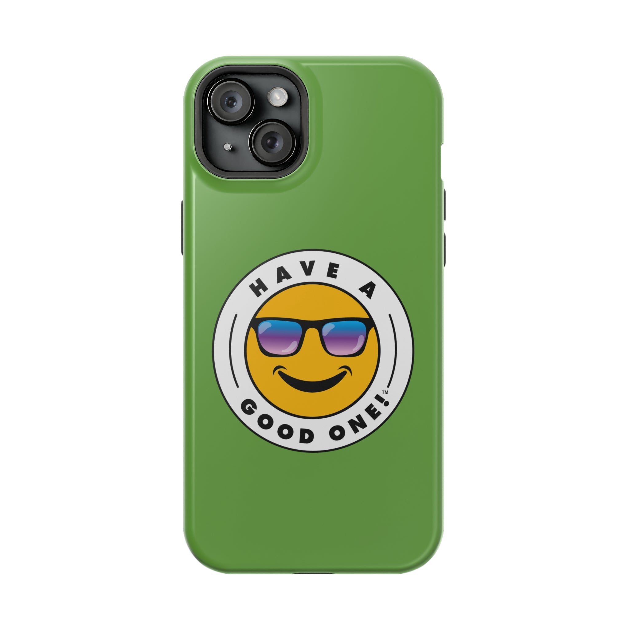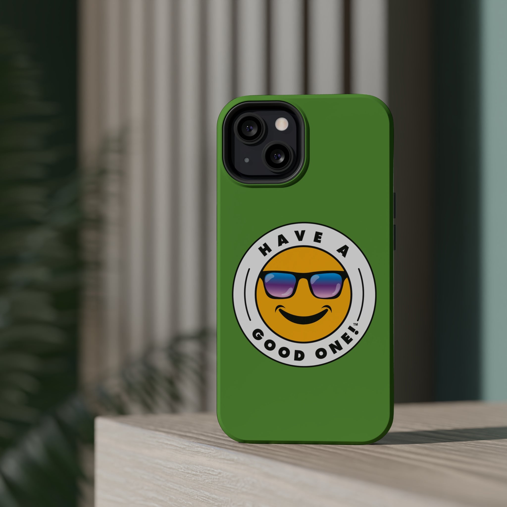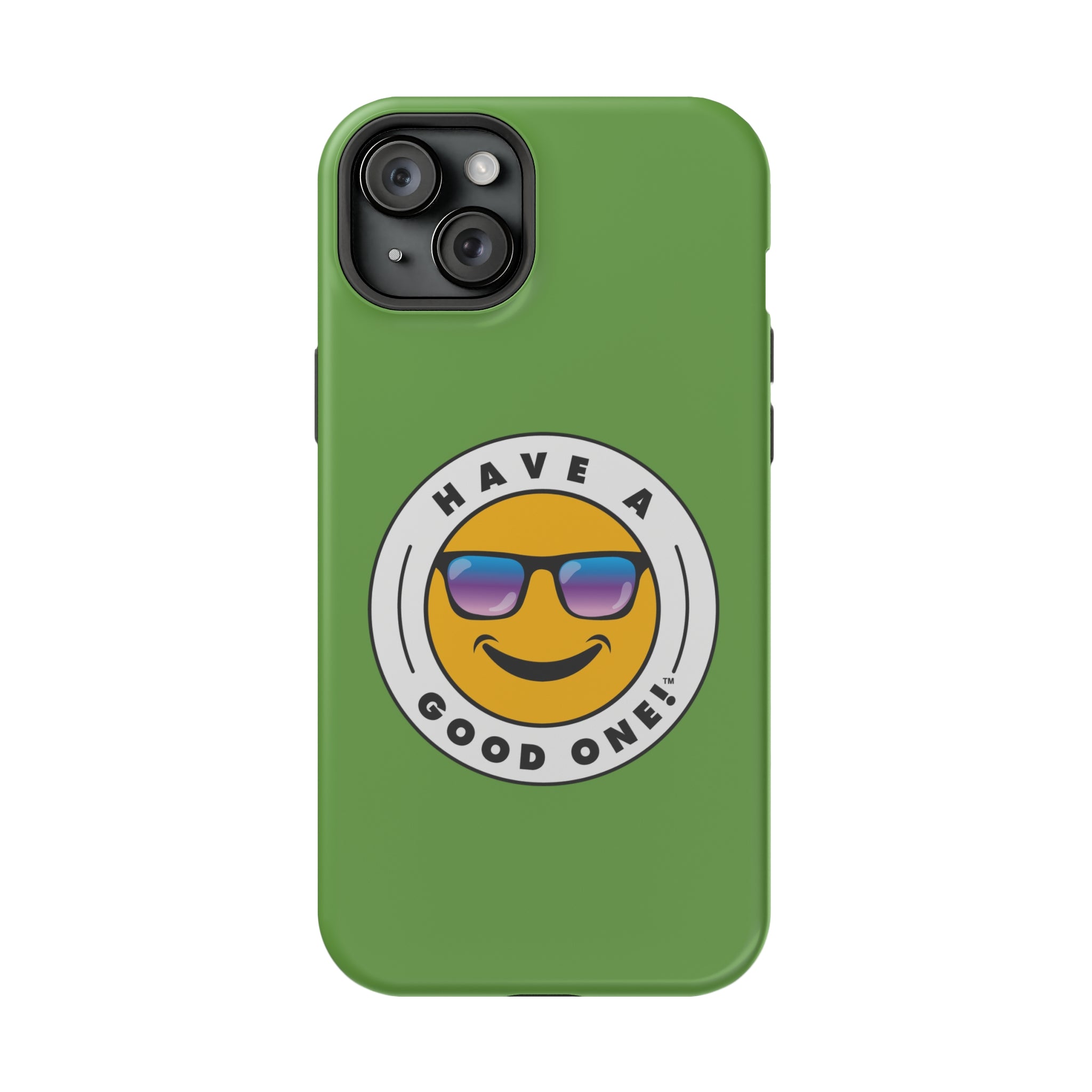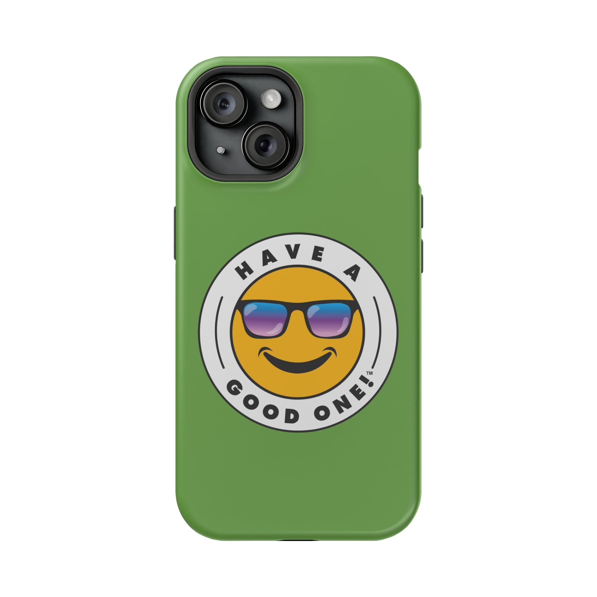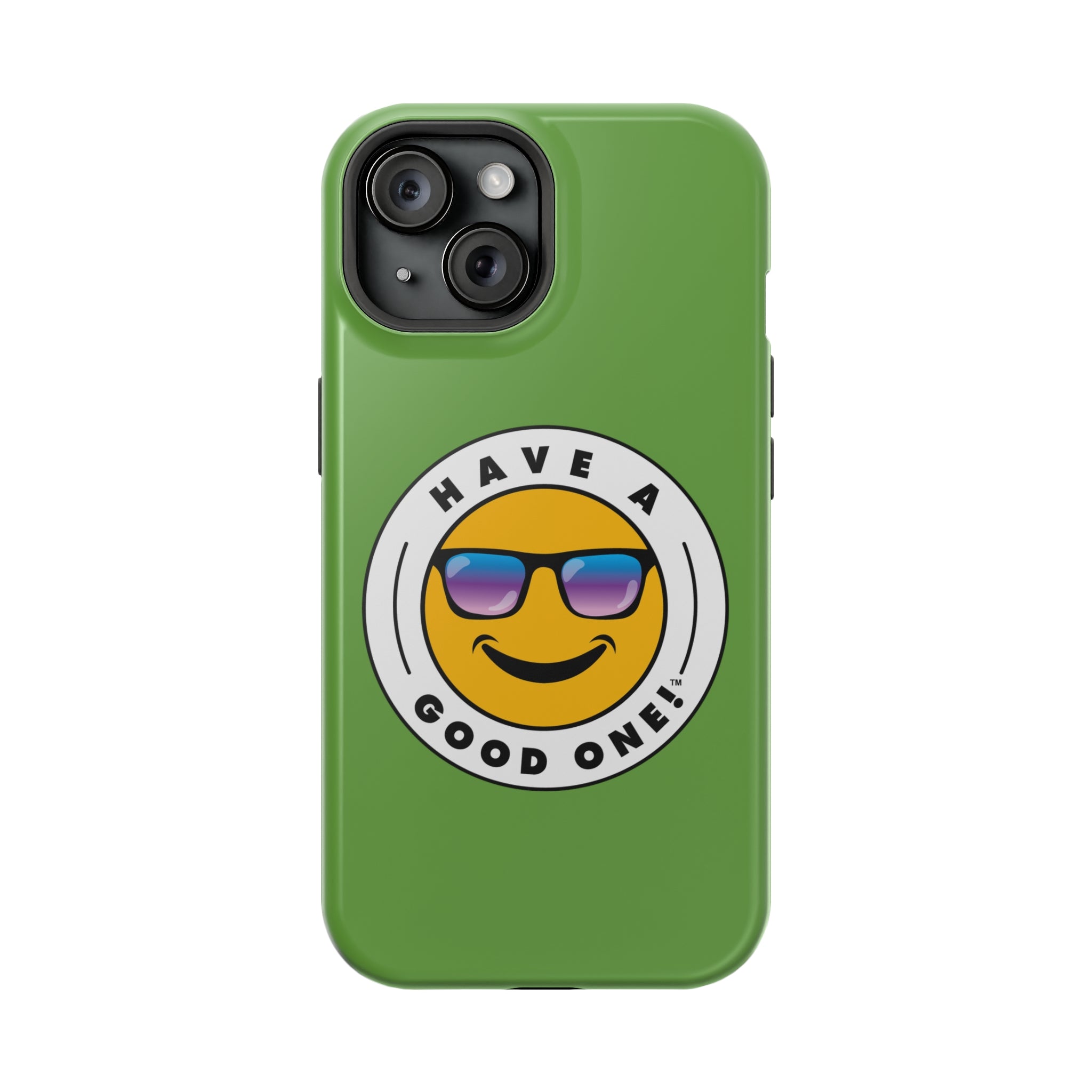 Fun On The Run MagSafe Tough Phone Case - Green Color With Blue Purple Have a Good One! Logo
