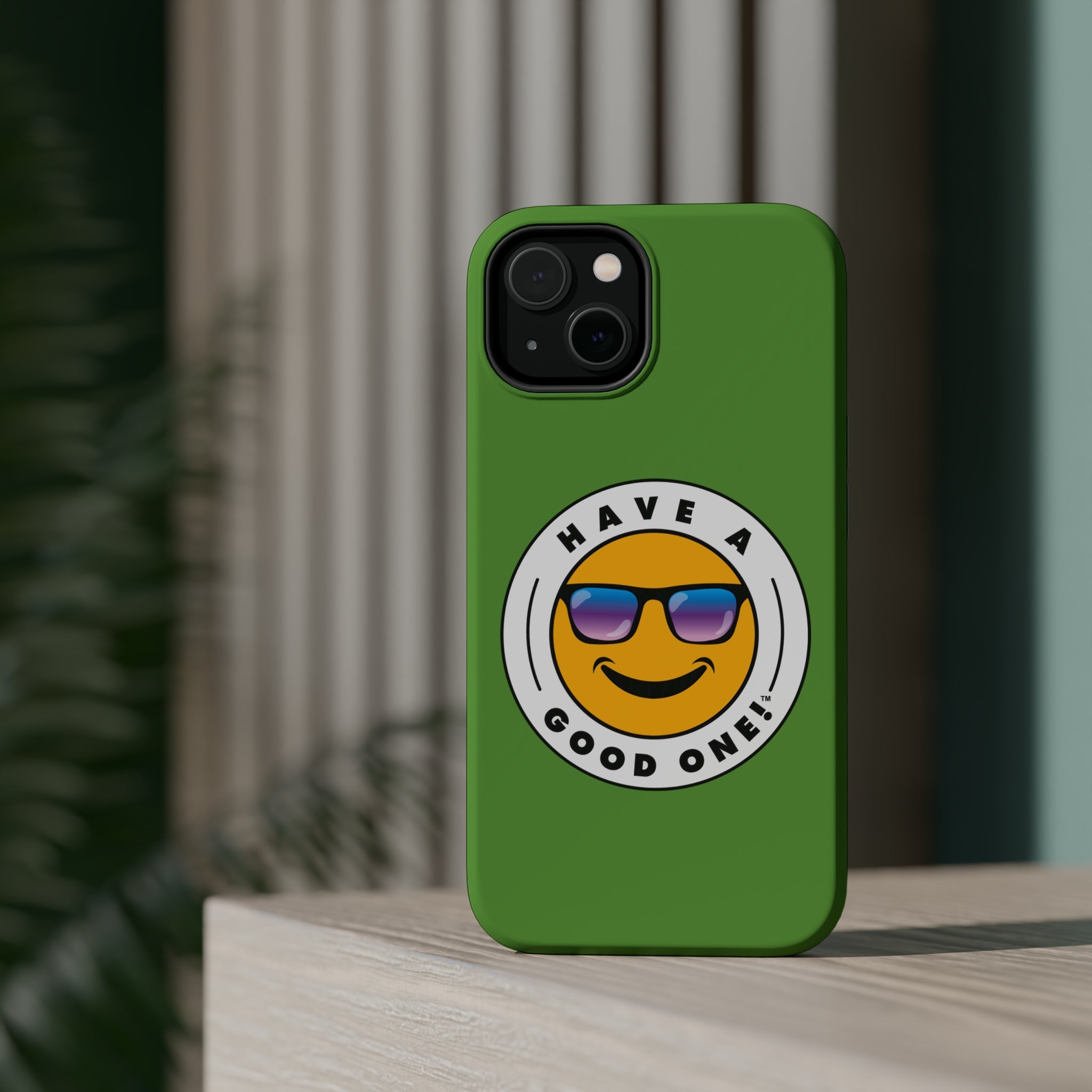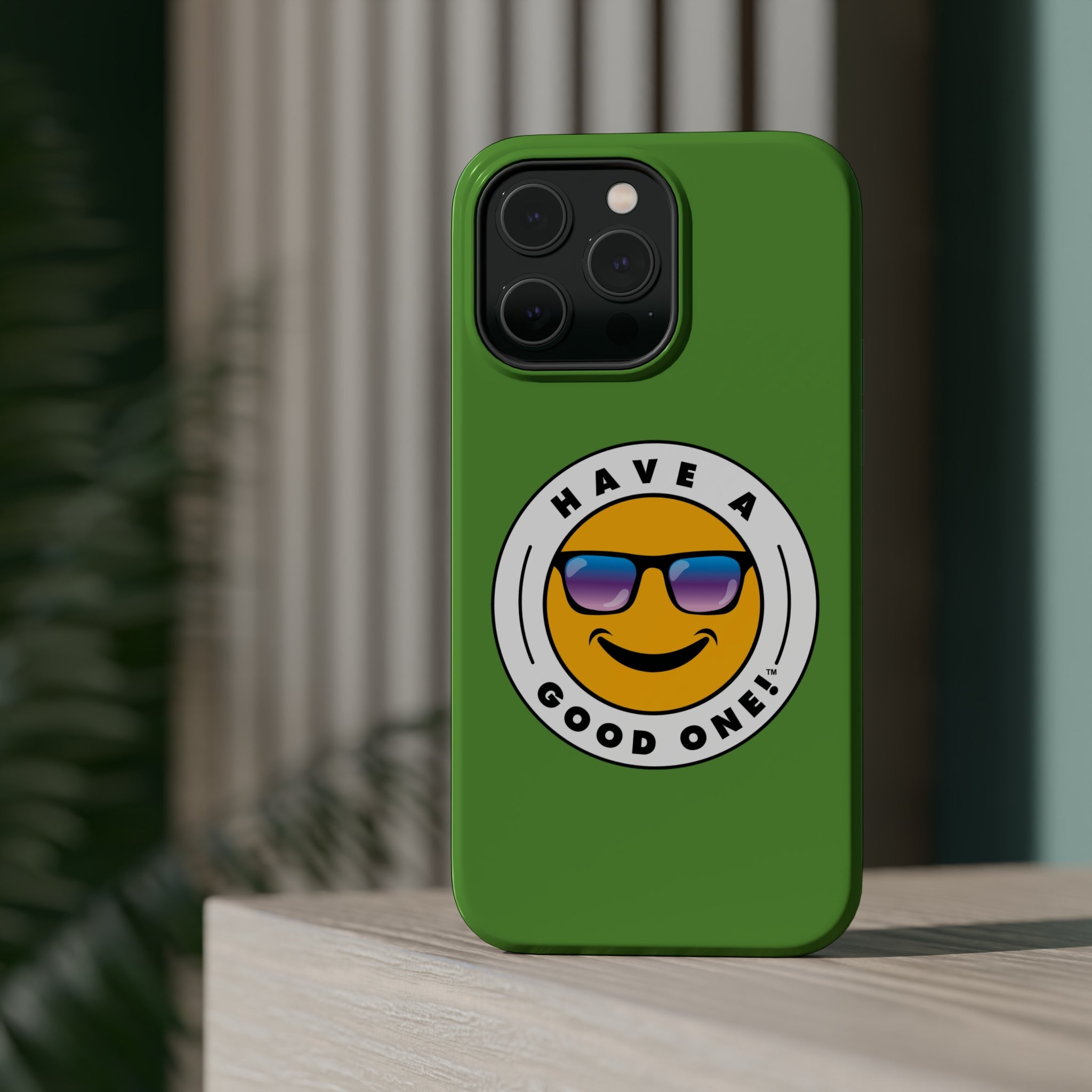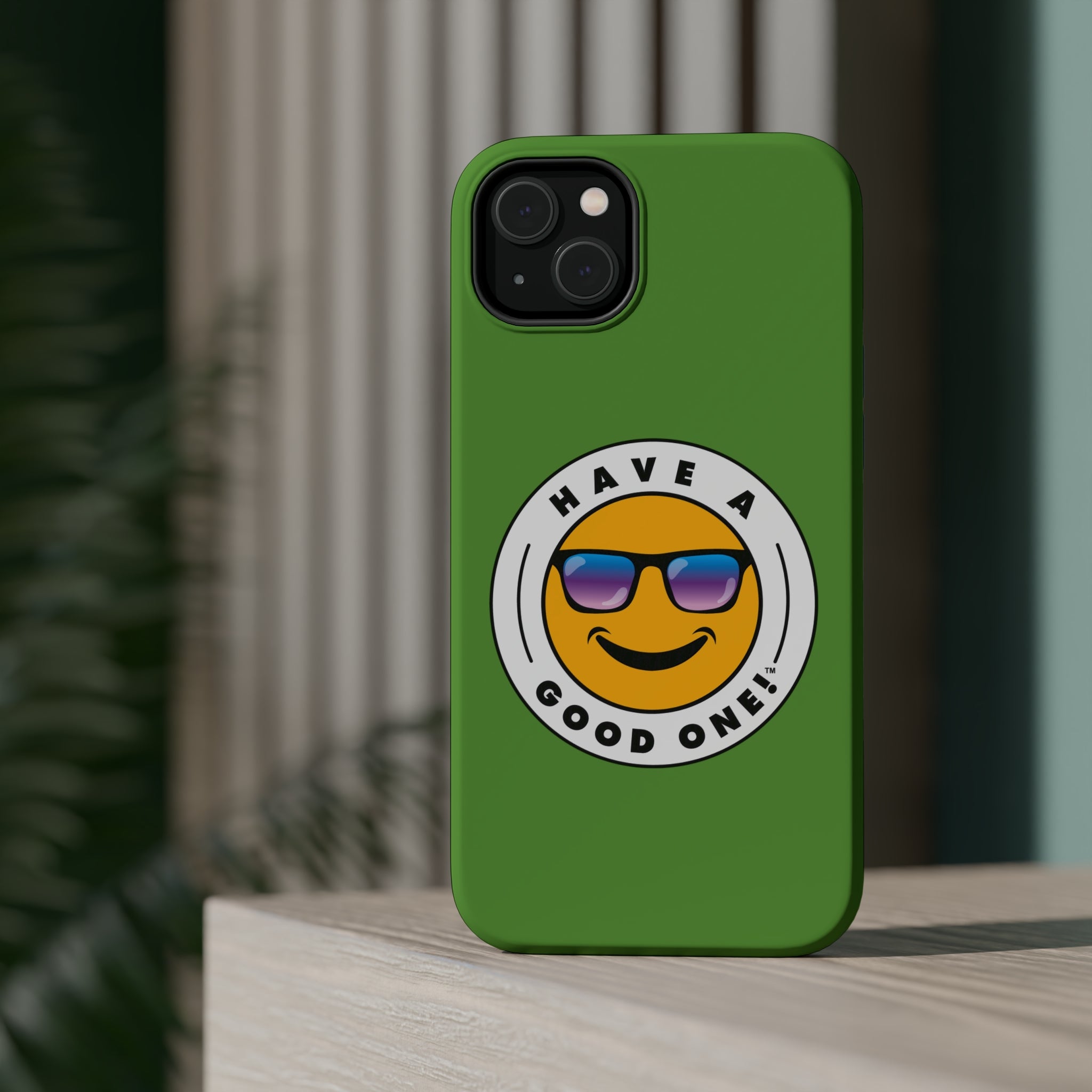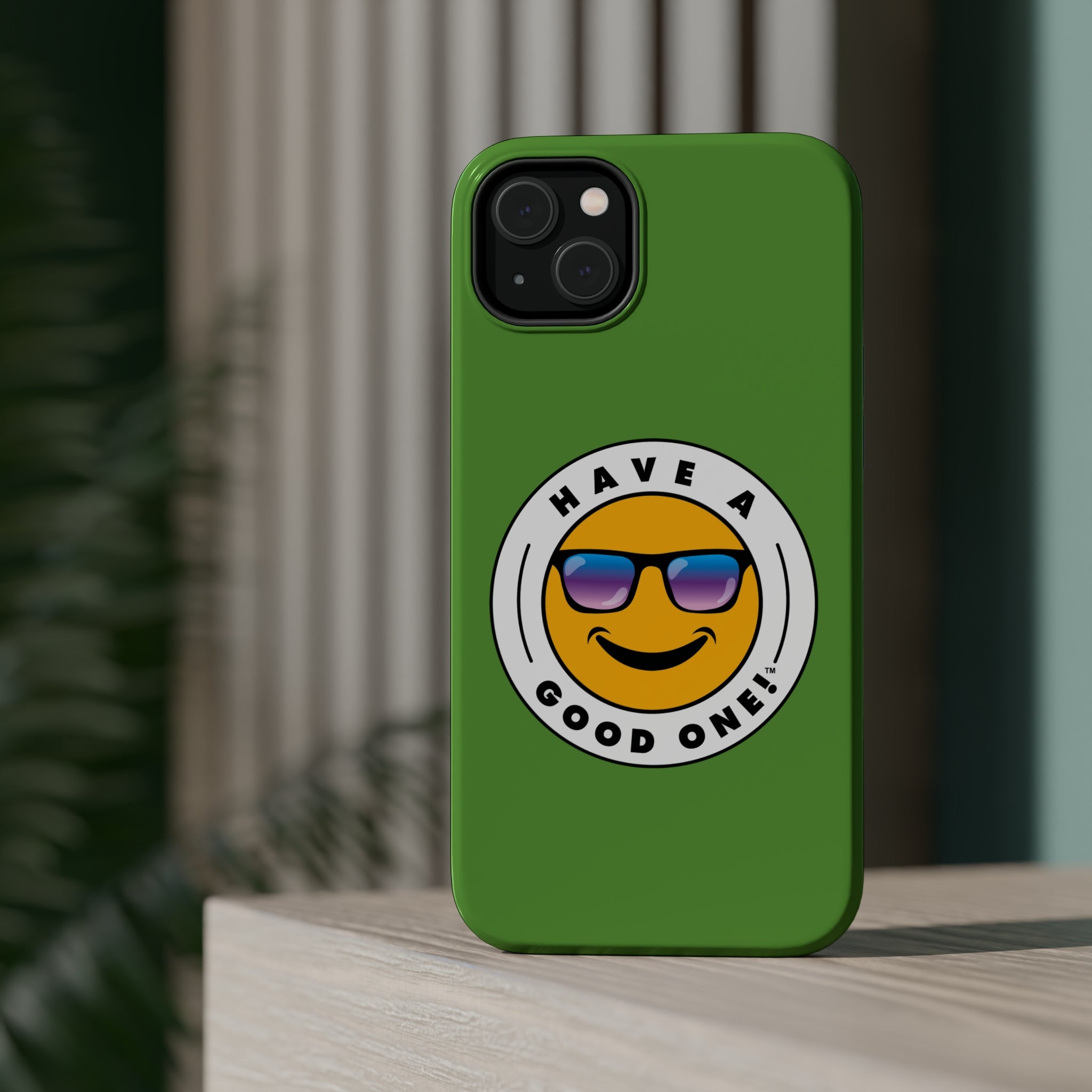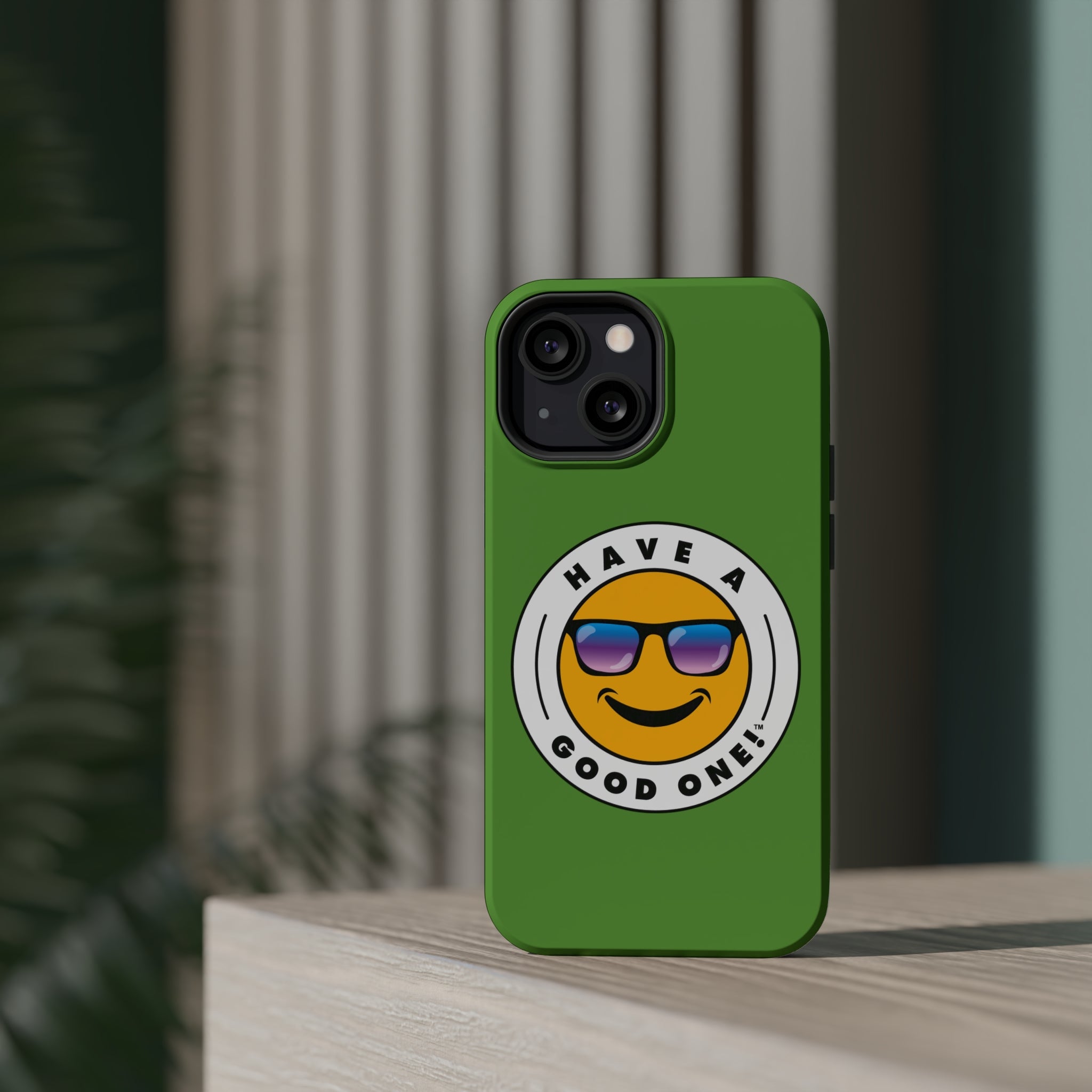 Fun On The Run MagSafe Tough Phone Case - Green Color With Blue Purple Have a Good One! Logo