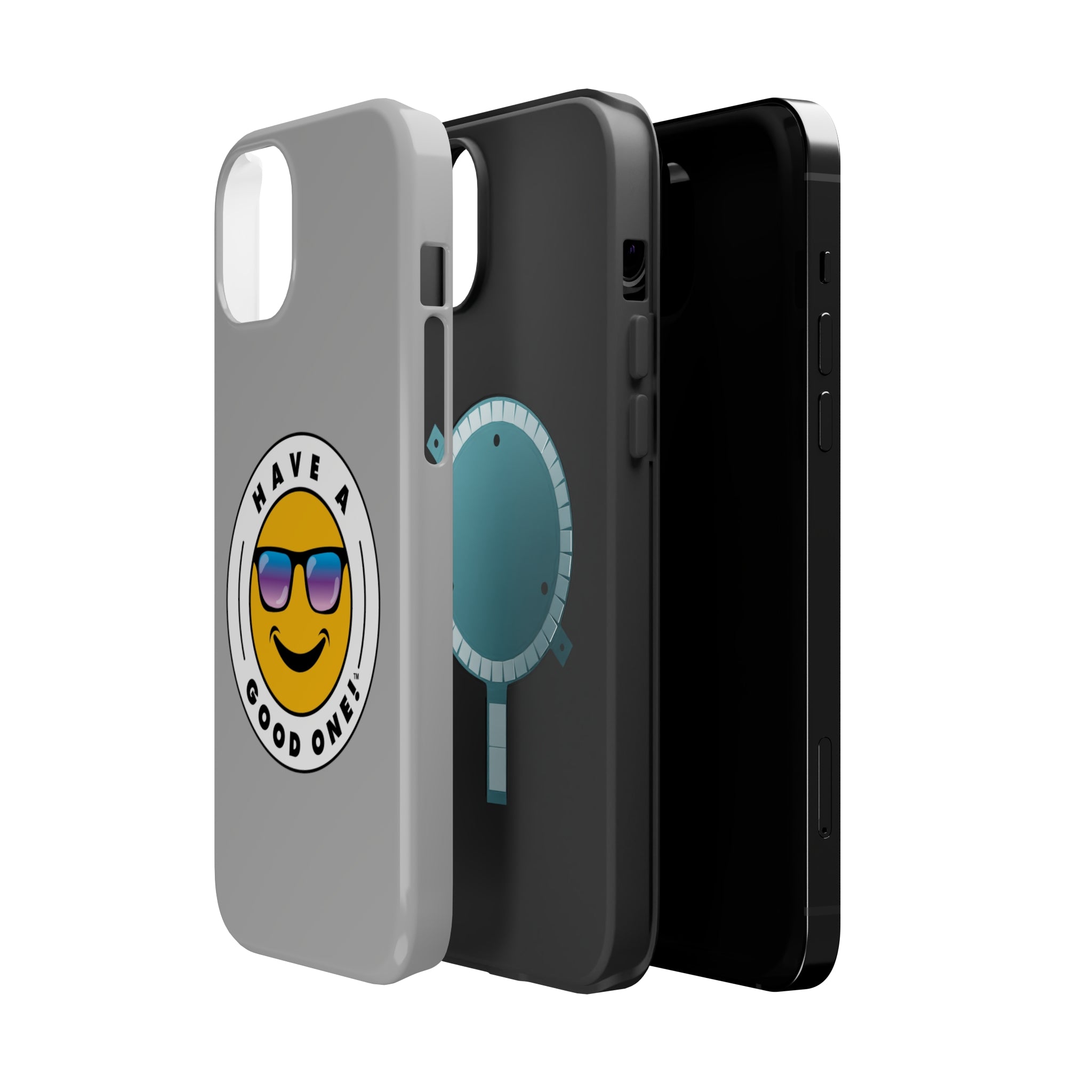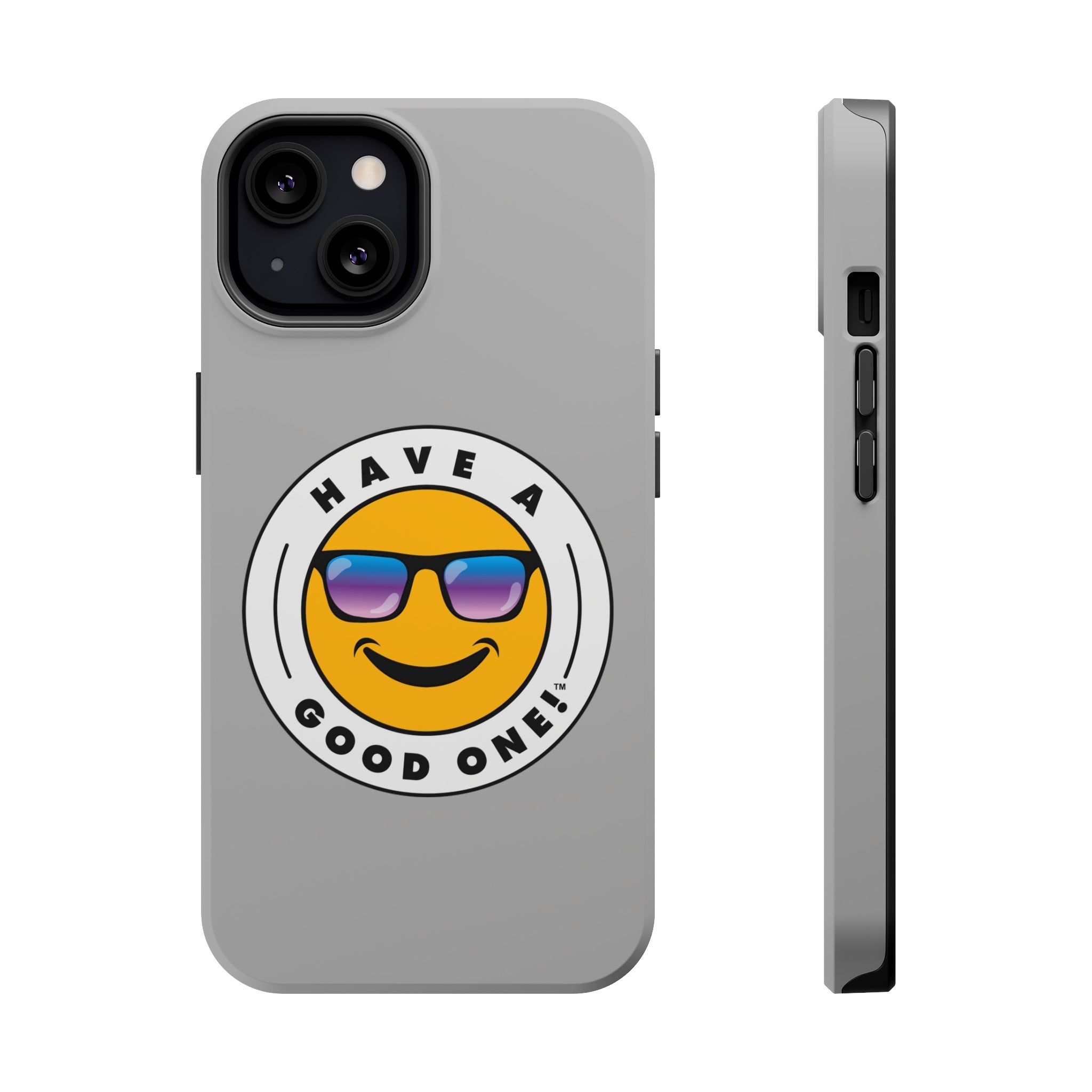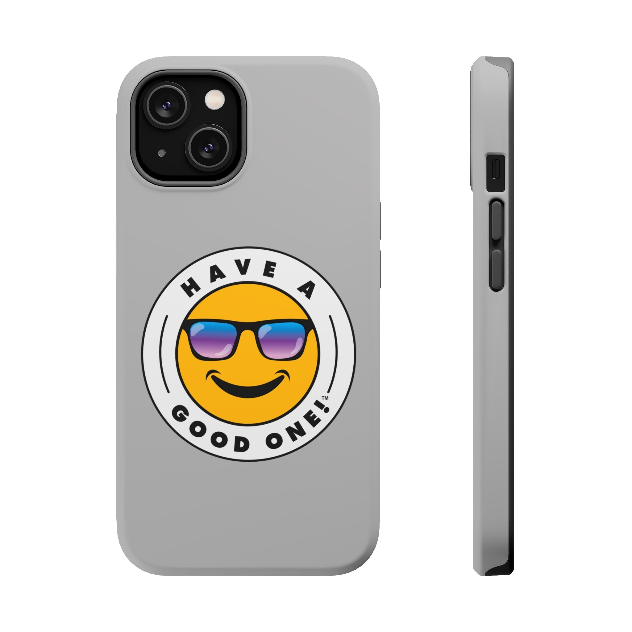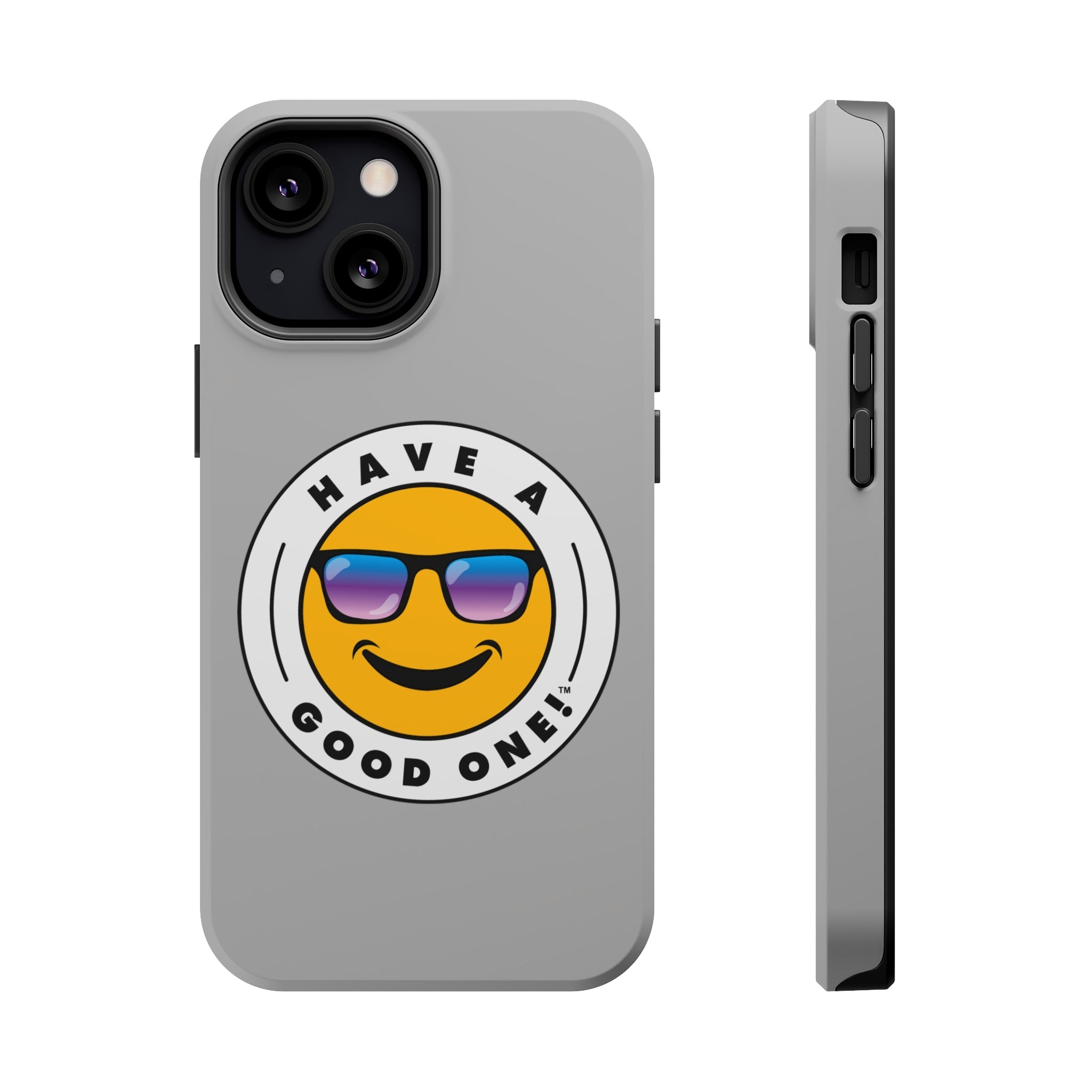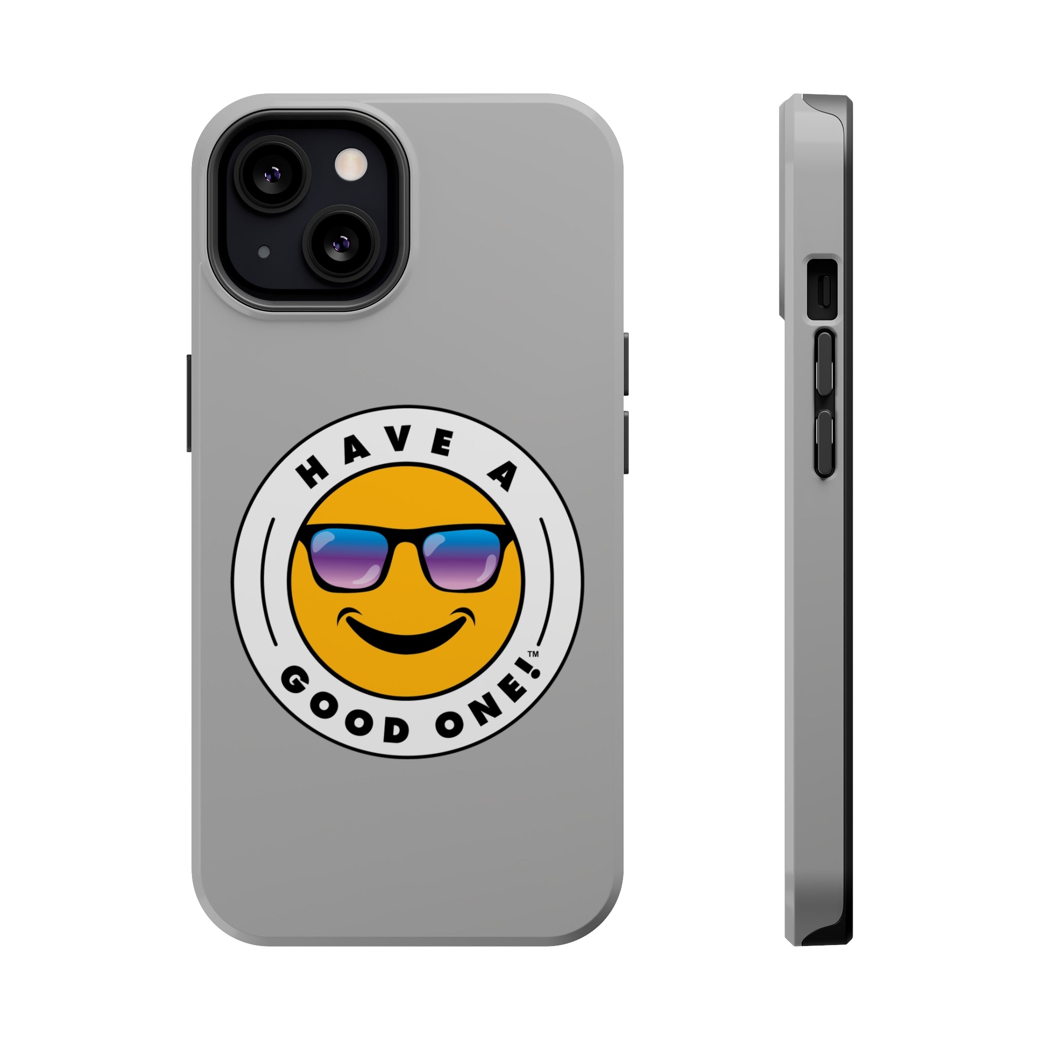 Fun On The Run MagSafe Tough Phone Case - Light Grey Color With Blue Purple Have a Good One! Logo