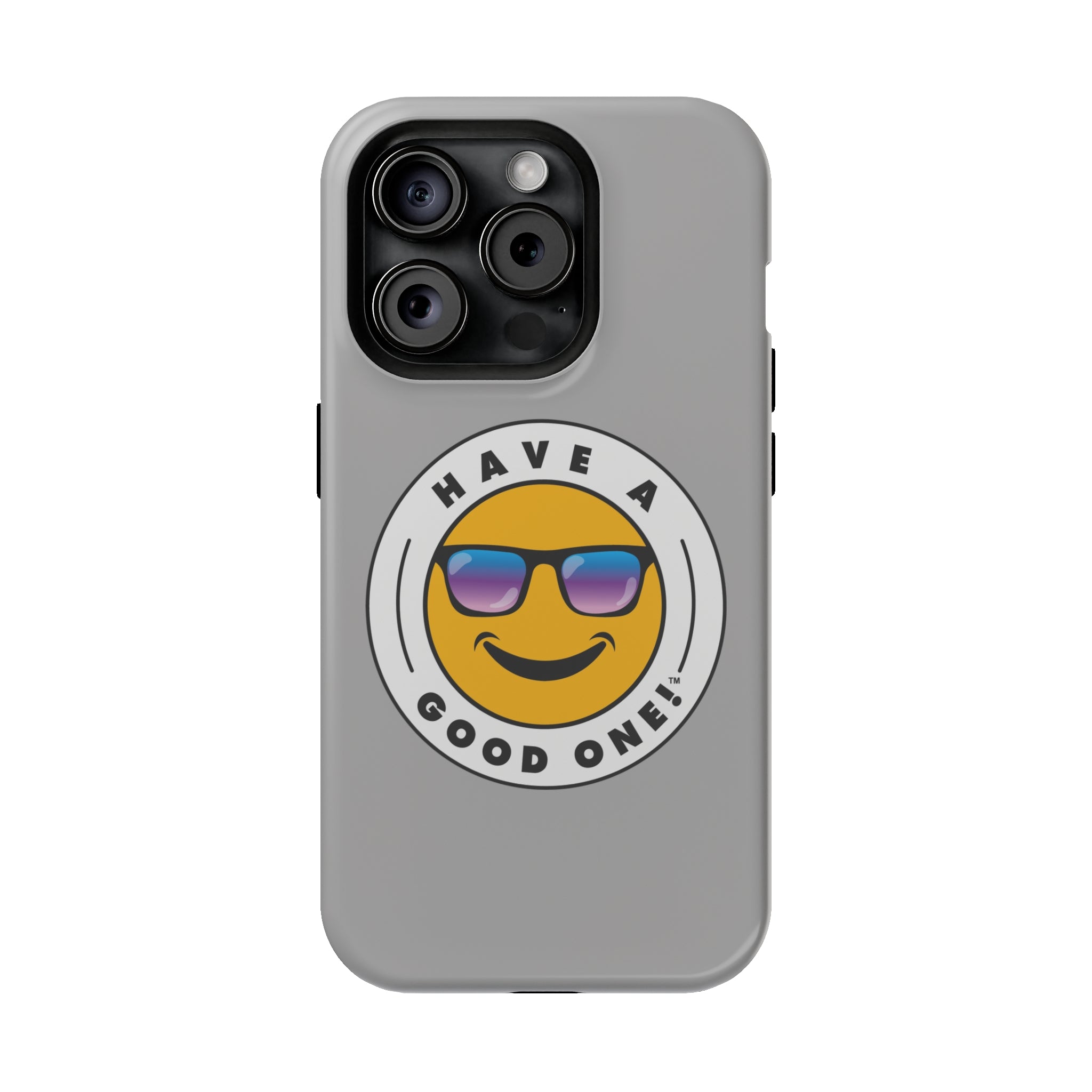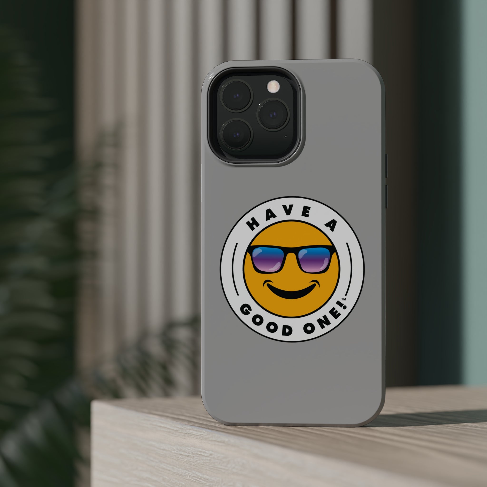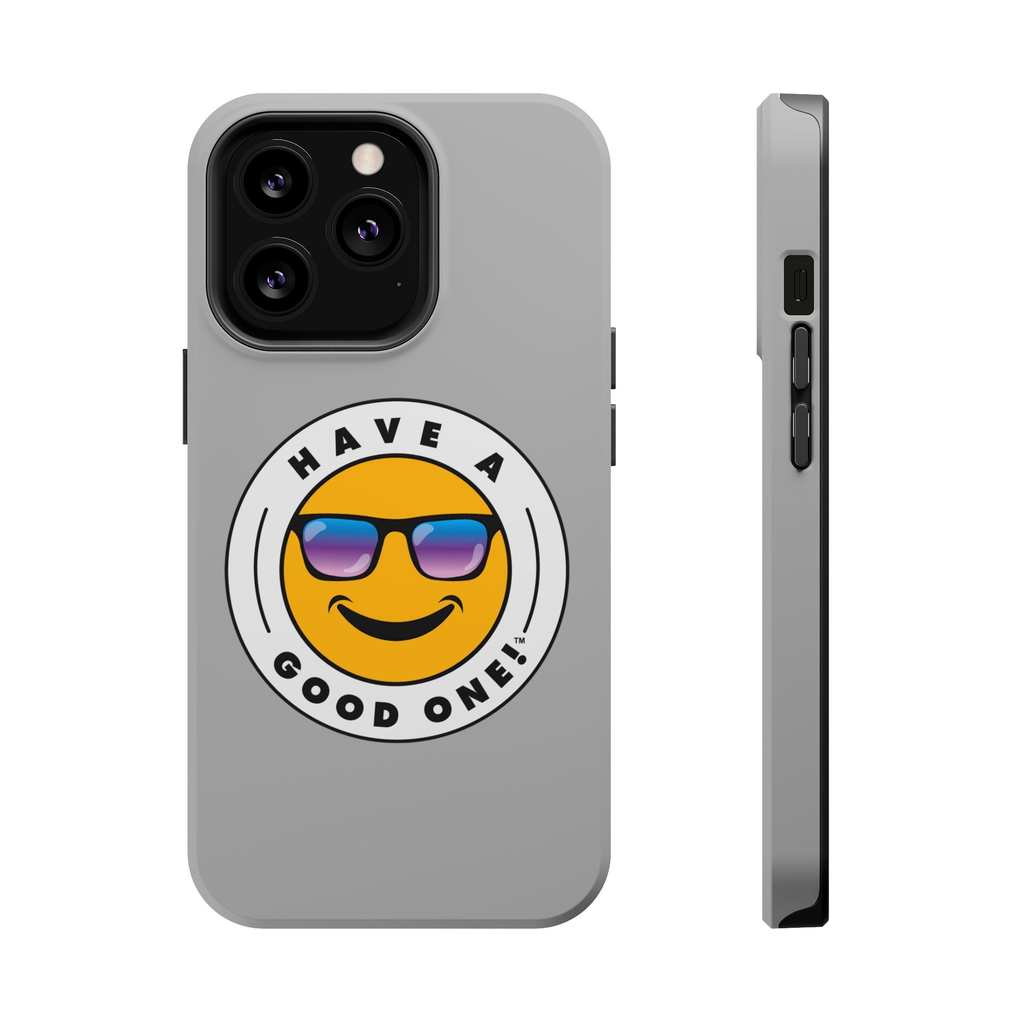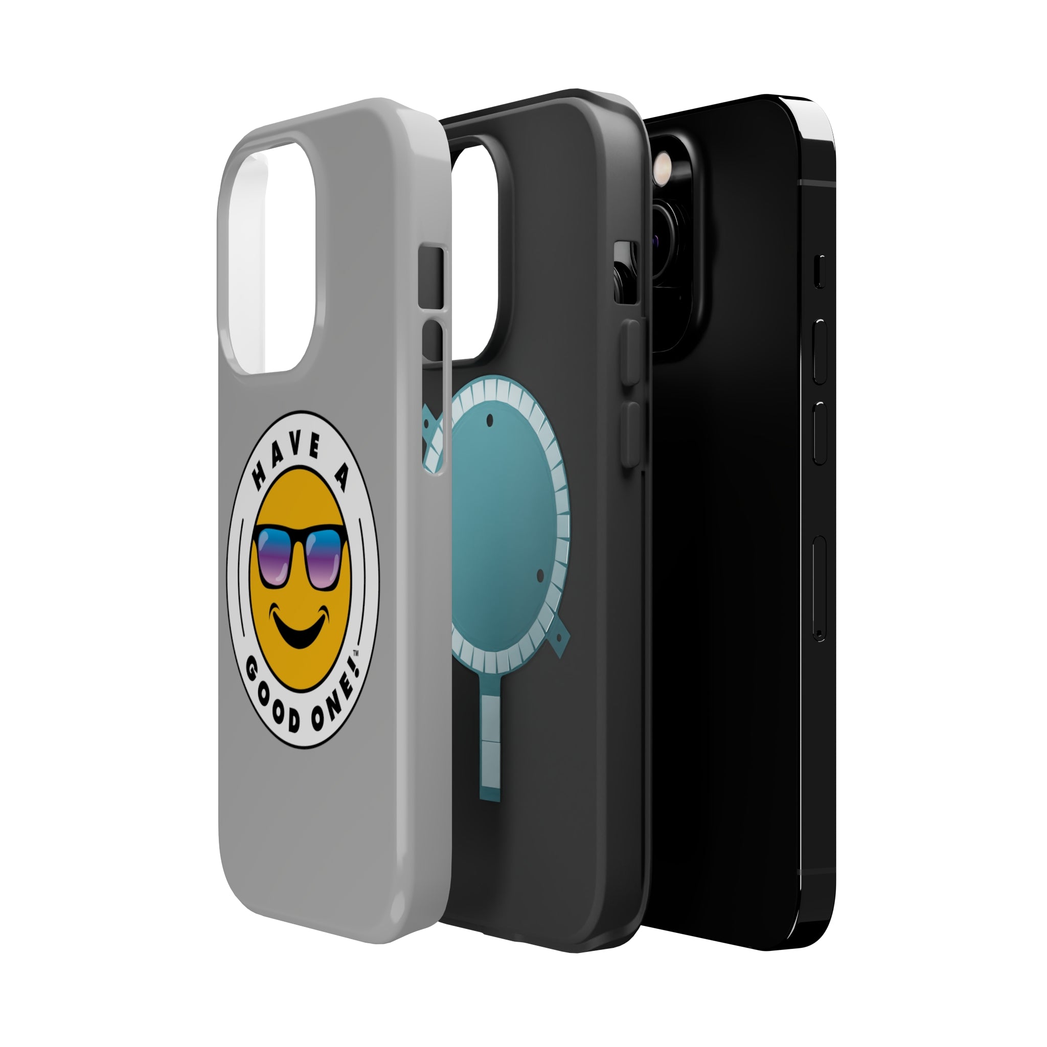 Fun On The Run MagSafe Tough Phone Case - Light Grey Color With Blue Purple Have a Good One! Logo