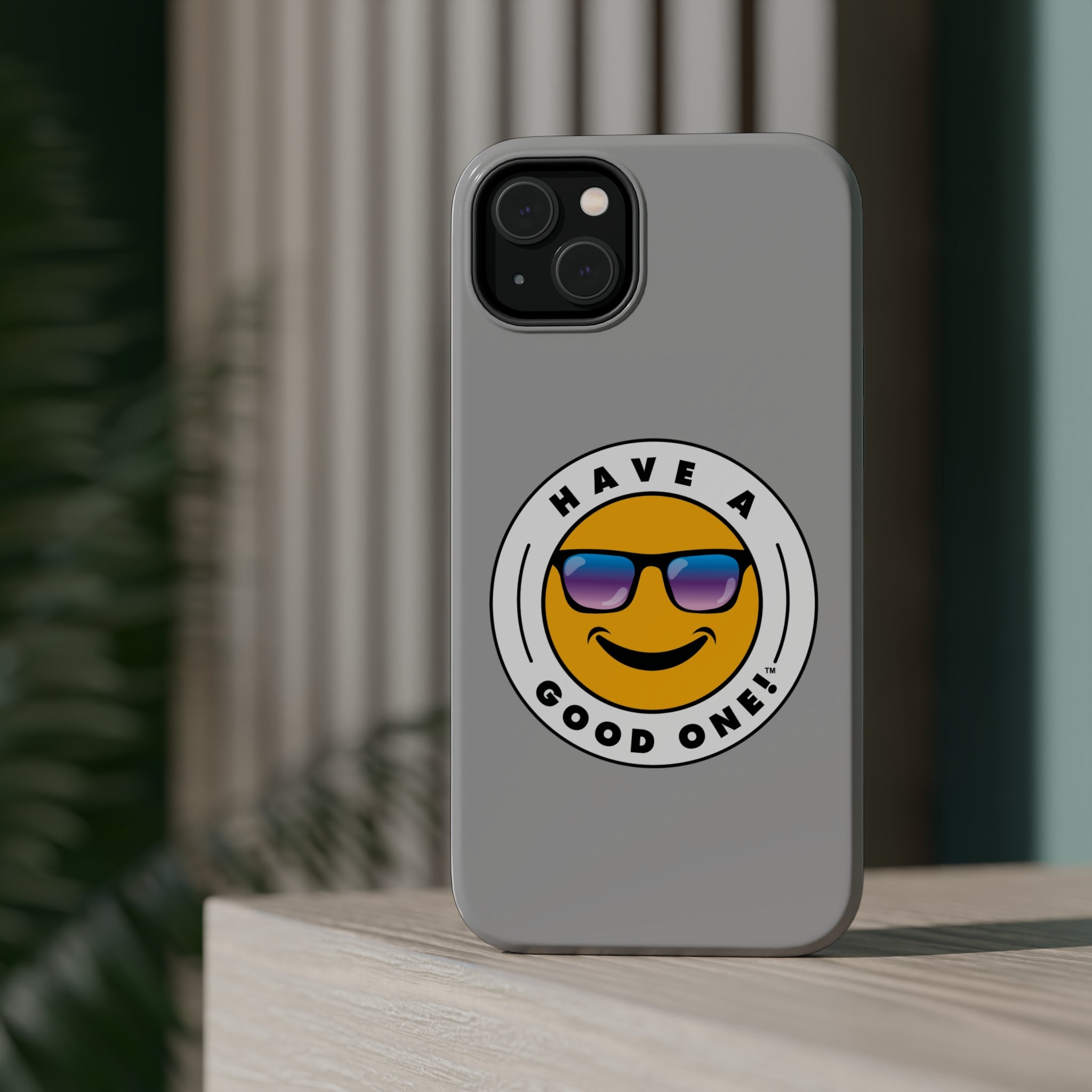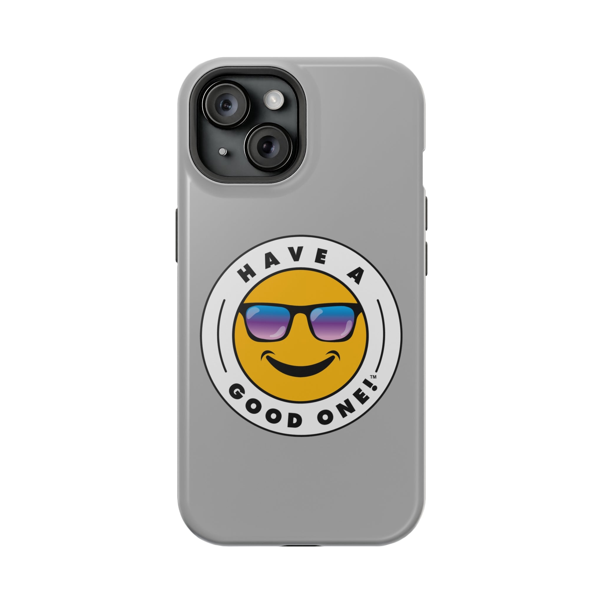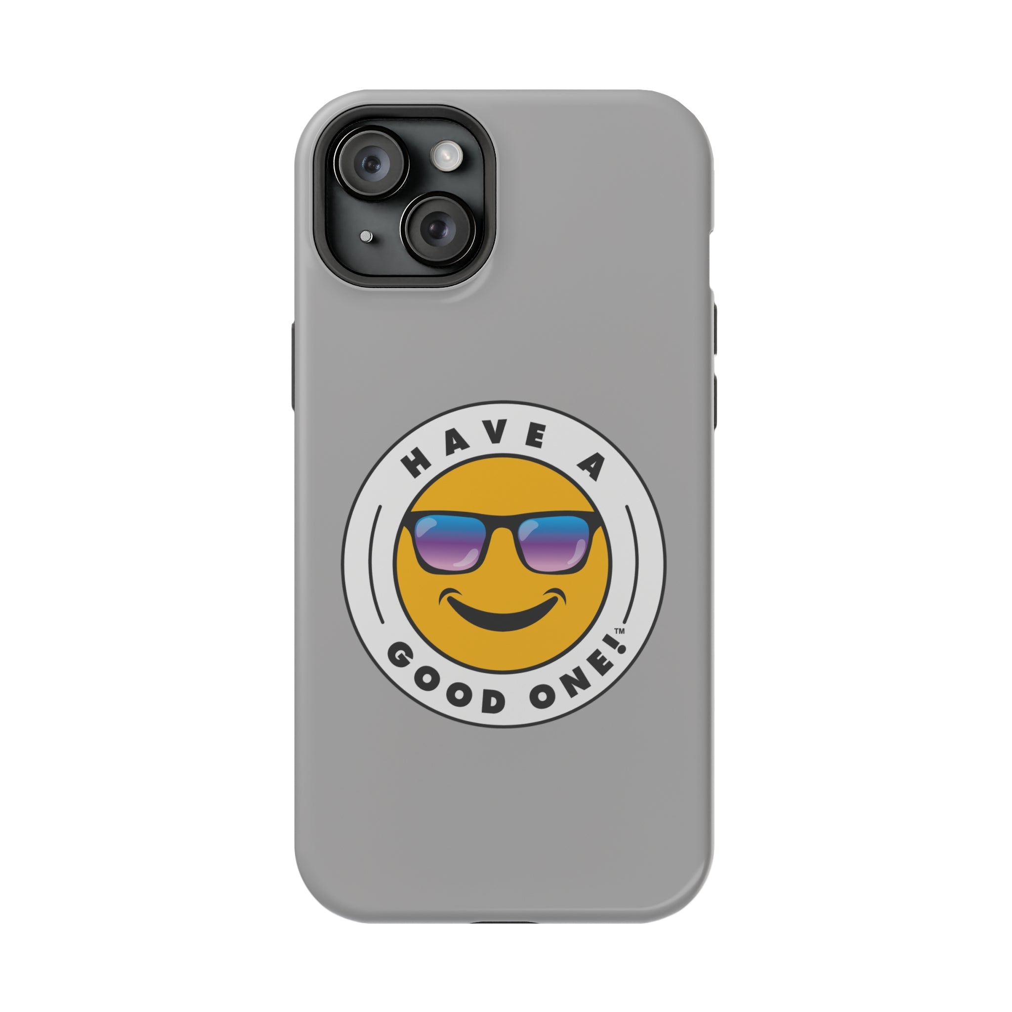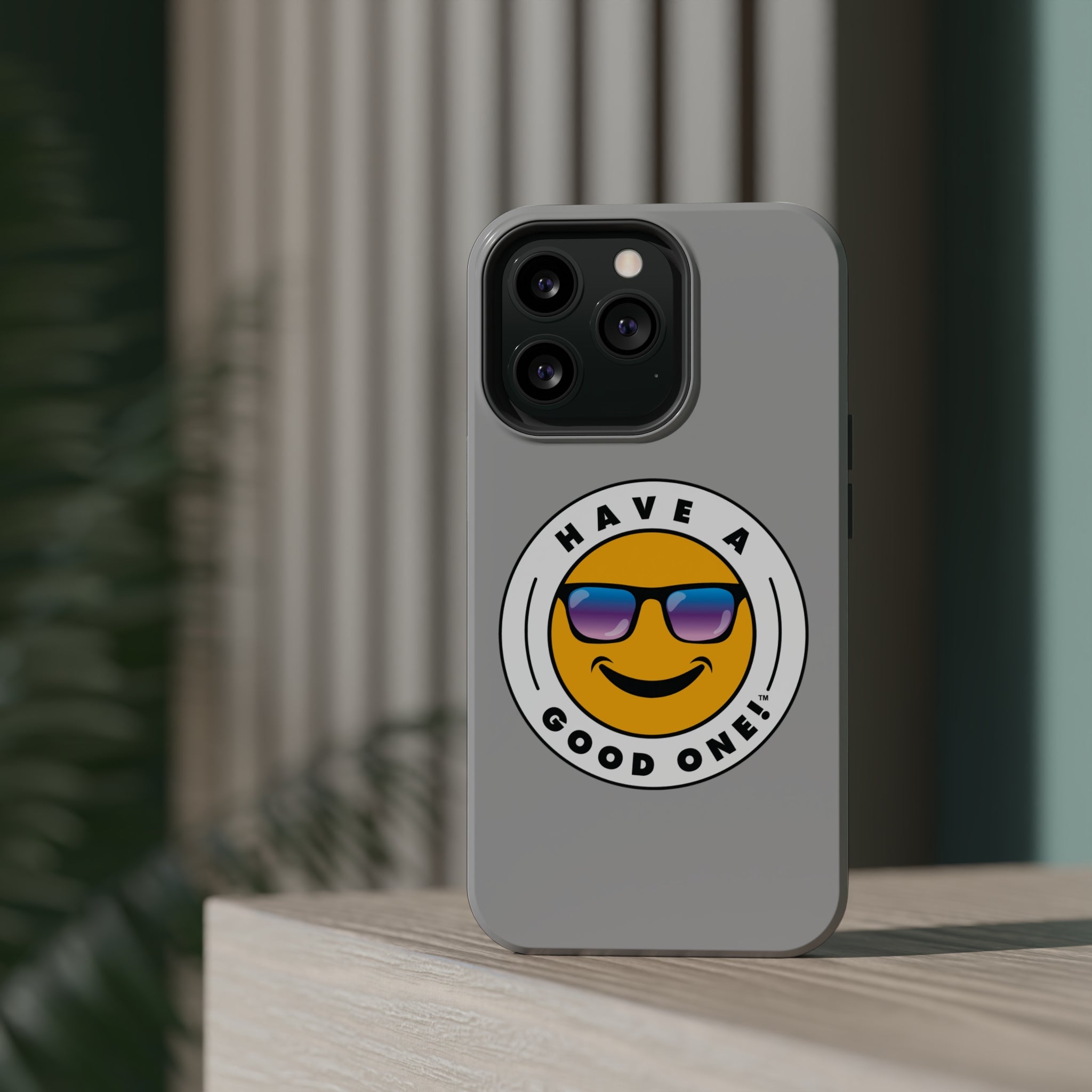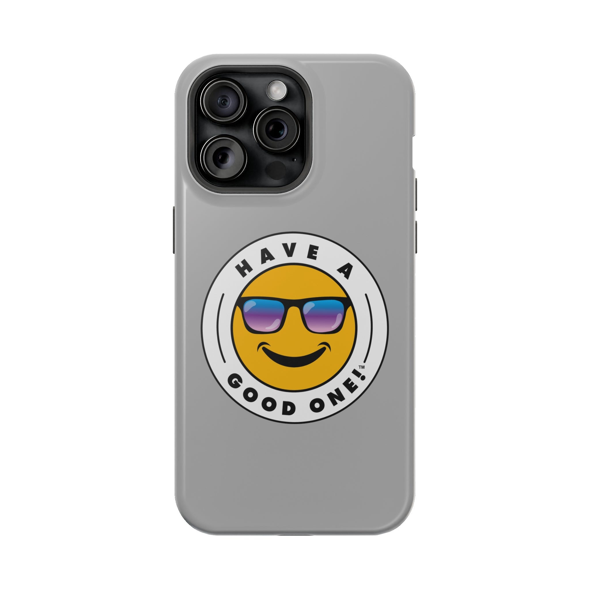 Fun On The Run MagSafe Tough Phone Case - Light Grey Color With Blue Purple Have a Good One! Logo