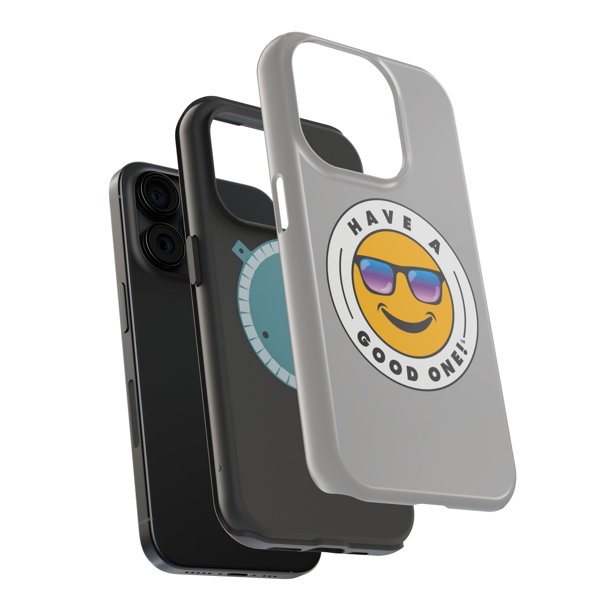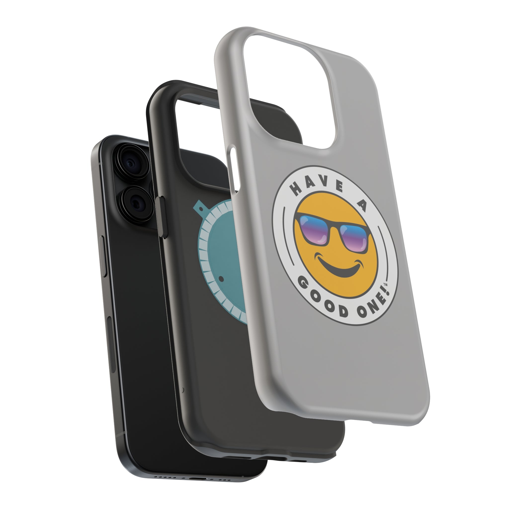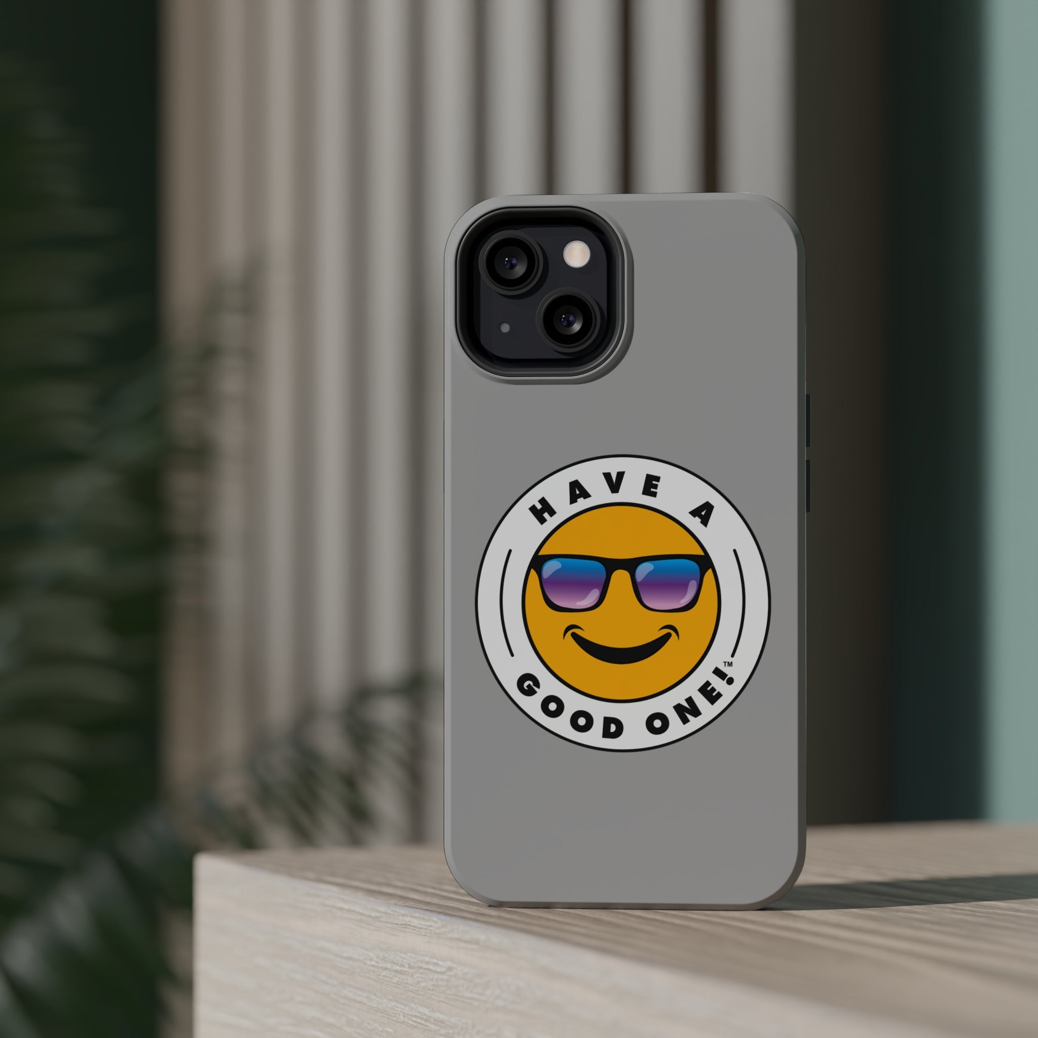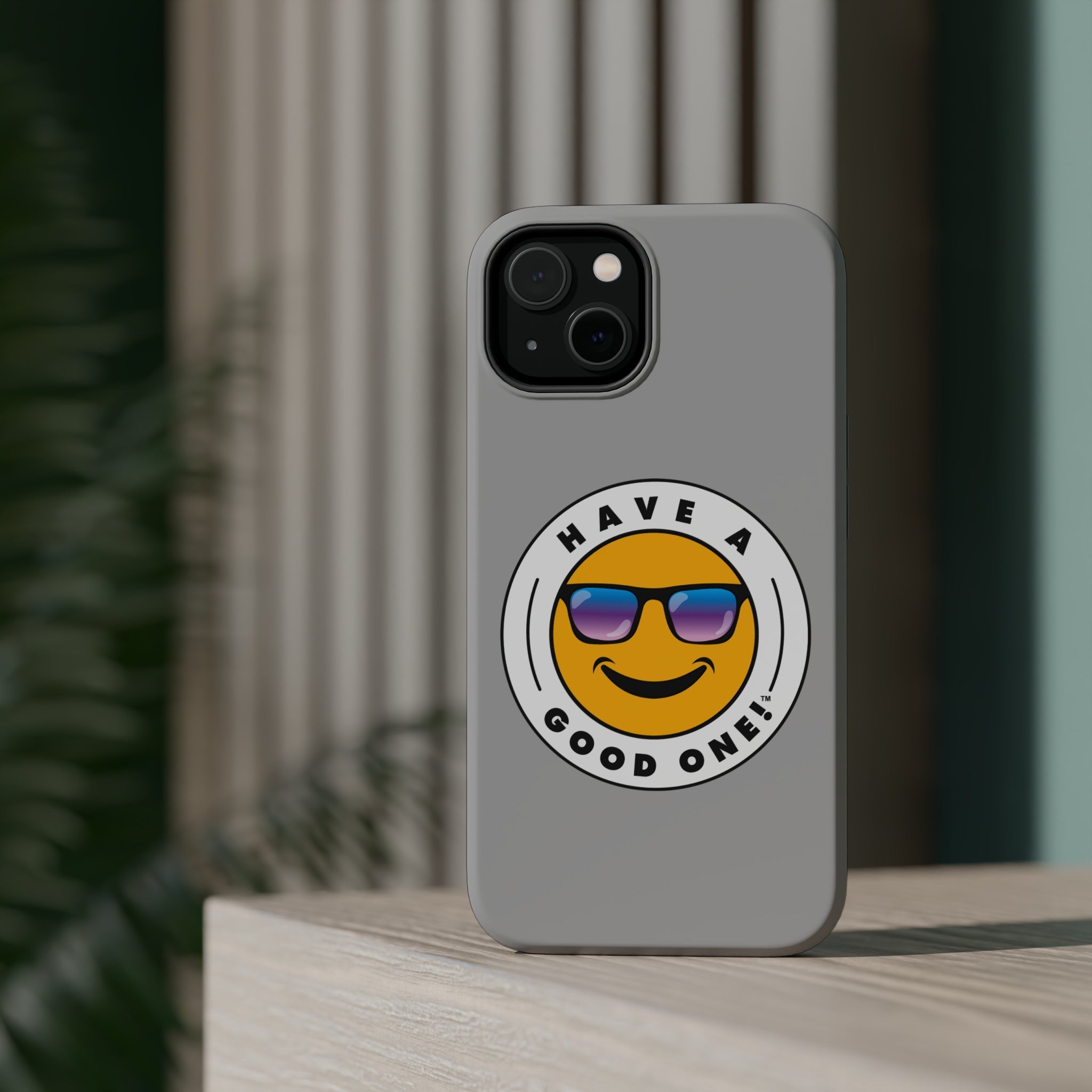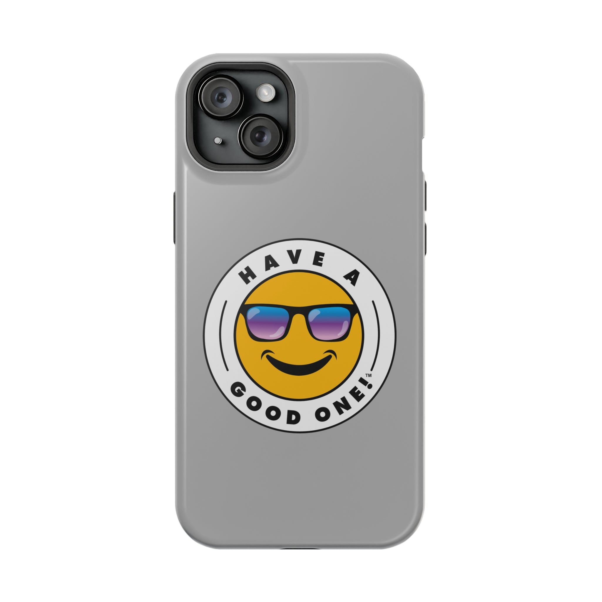 Fun On The Run MagSafe Tough Phone Case - Light Grey Color With Blue Purple Have a Good One! Logo