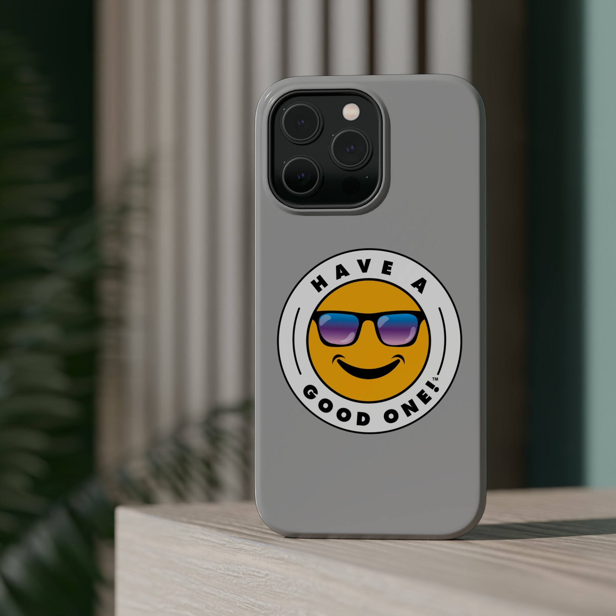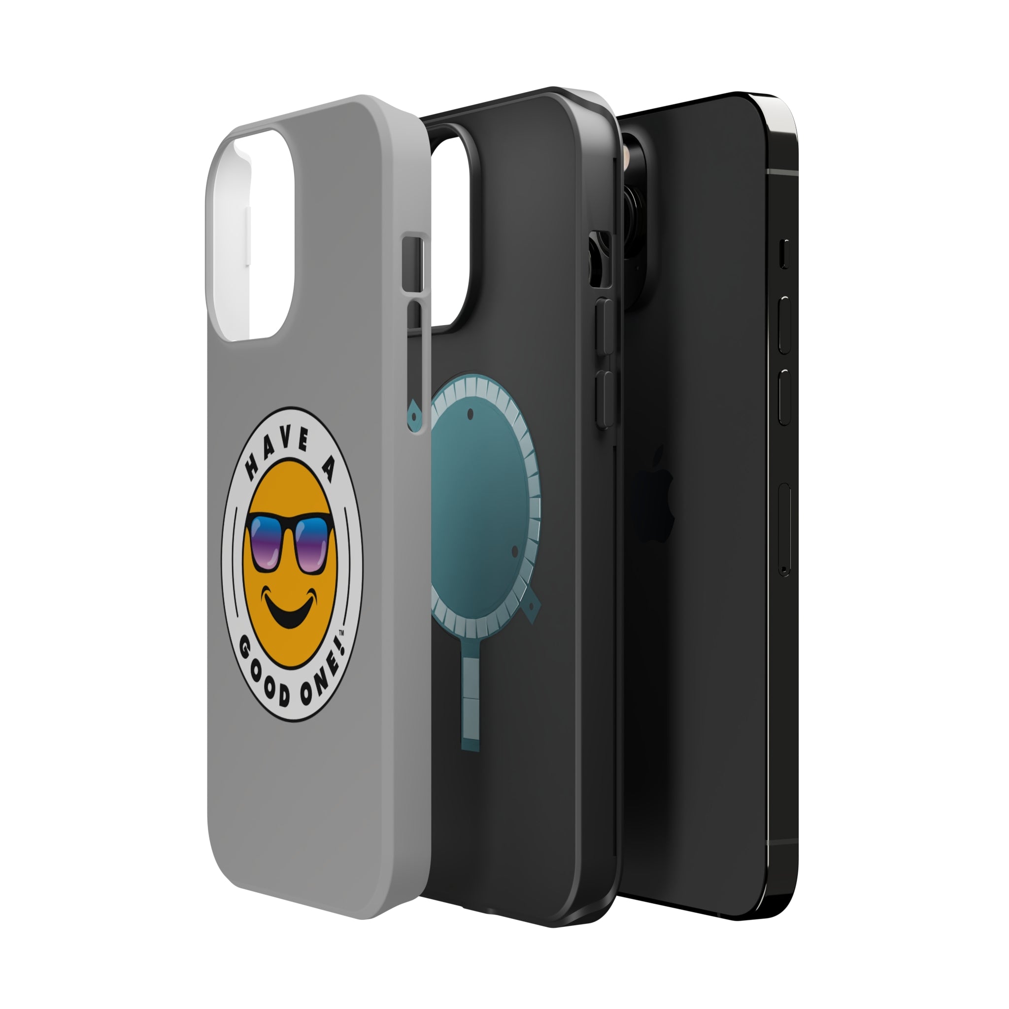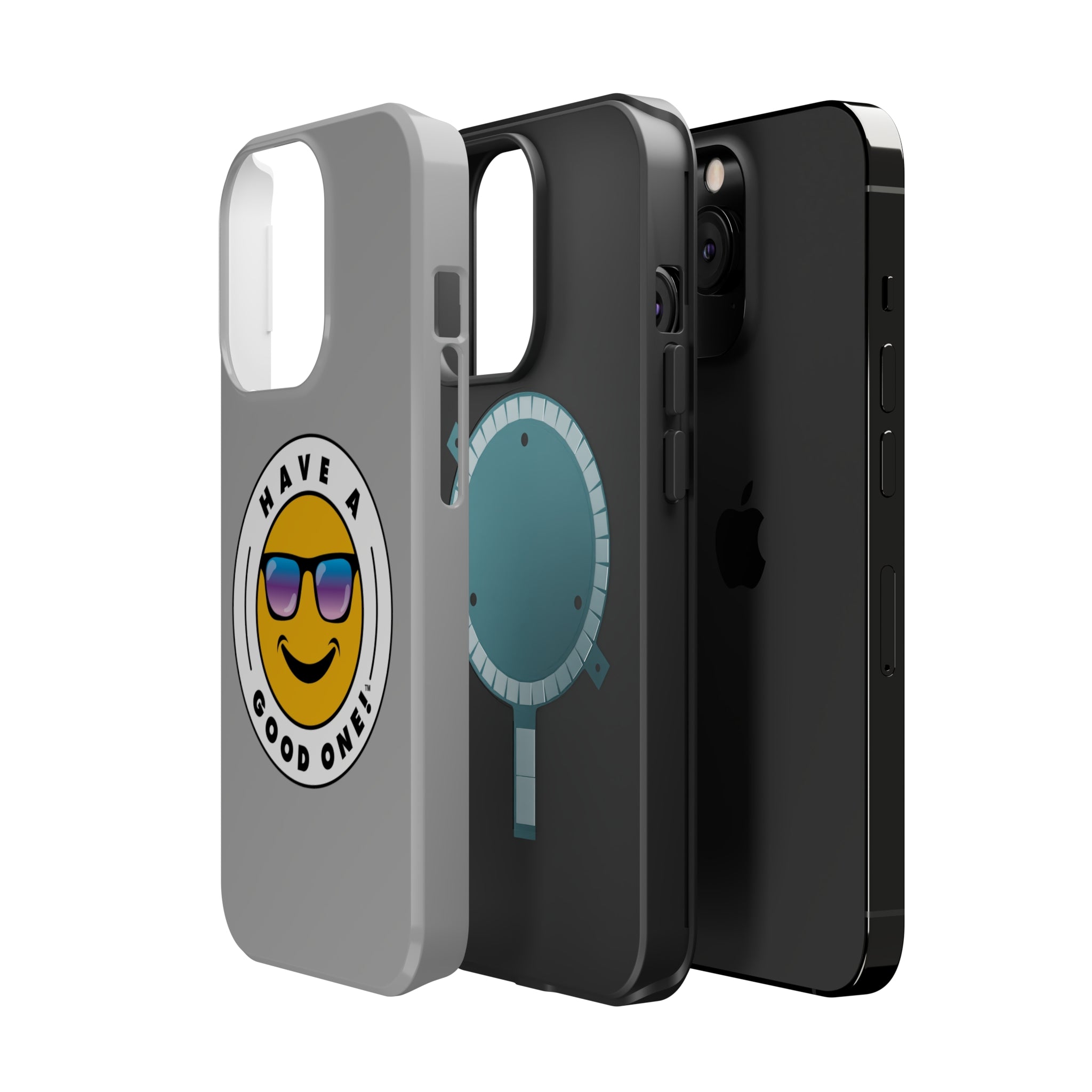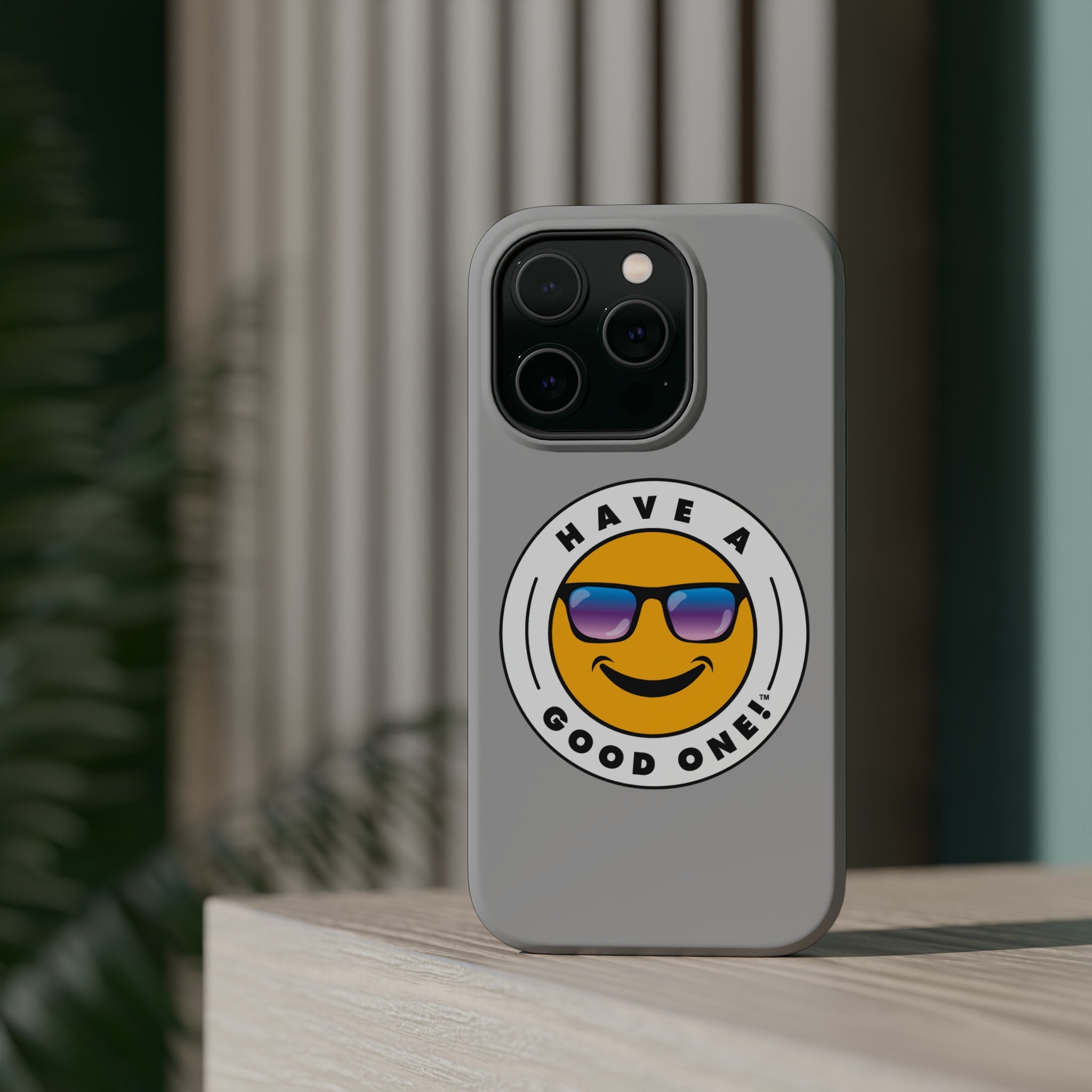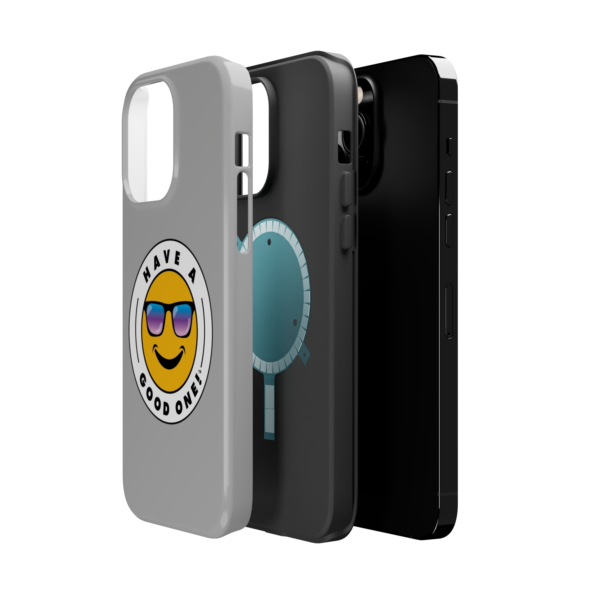 Have fun on the run with our Have A Good One phone cases! Wherever you go this phone case is sure to brighten your day and bring a smile to your face! This is where aesthetics meet function with our MagSafe case. This case delivers impeccable phone protection thanks to its durable, flexible, impact-resistant nature. It has an outer polycarbonate shell and inner black lining to protect against scratches and minor bumps. Each case comes with an embedded magnet to enhance compatibility with Apple MagSafe accessories. The case is available in glossy or matte finish so you can select which one you prefer. We have all of the popular sizes so you are sure to find the best fit for your phone. Lots of vibrant and fun colors to choose from which will surely make you feel the Have A Good One vibe every time you use it!