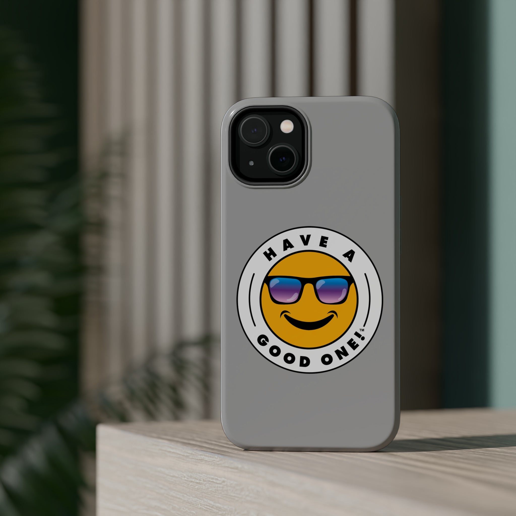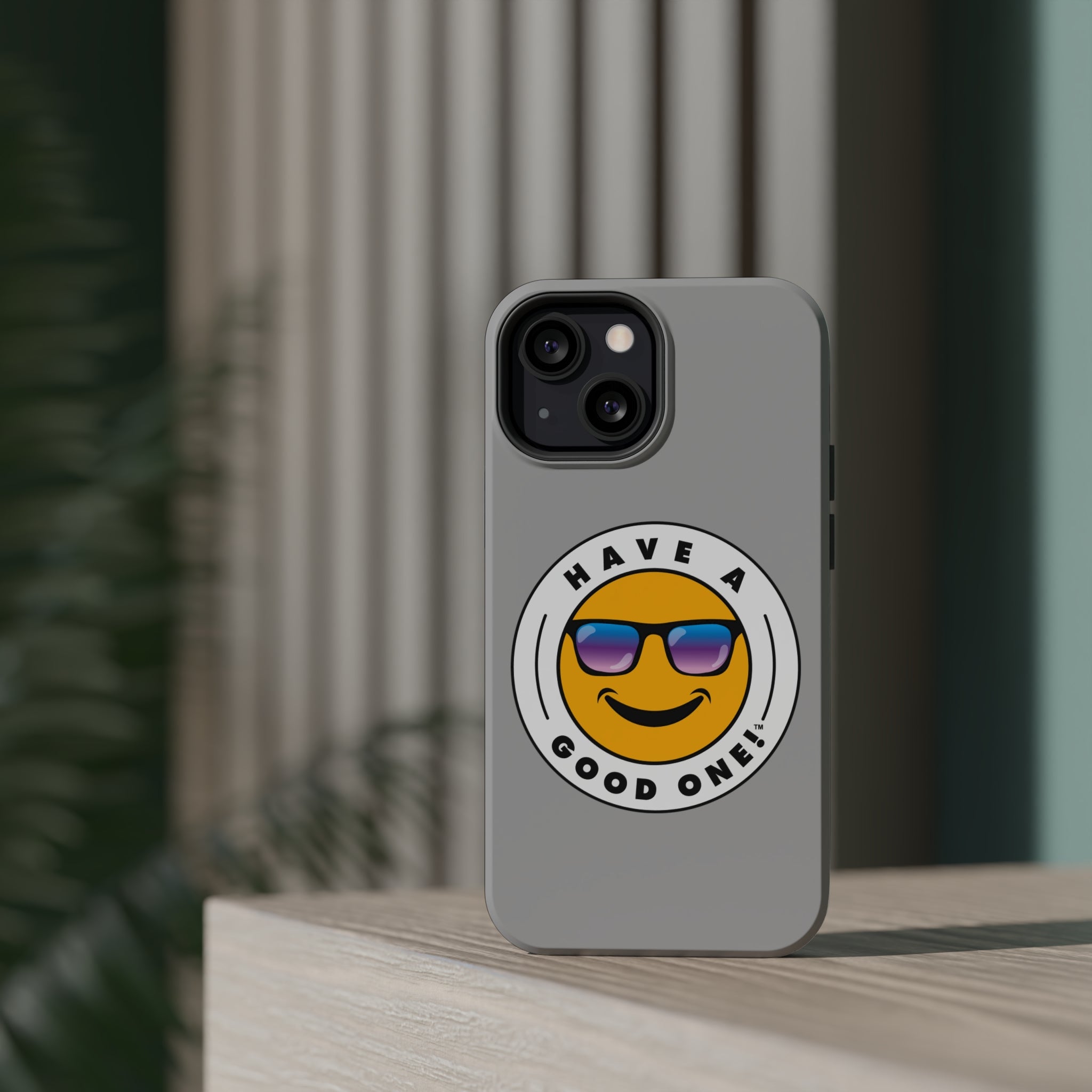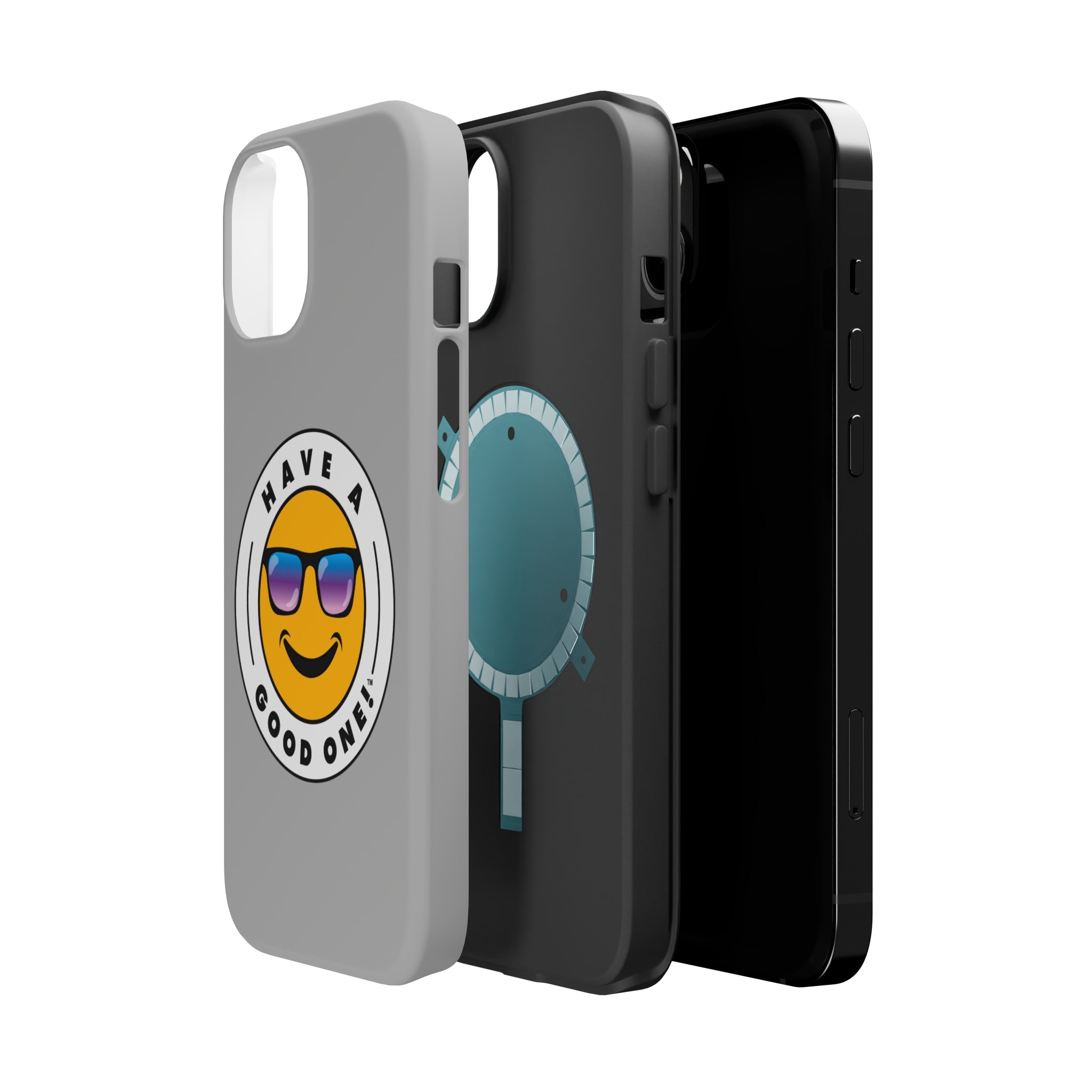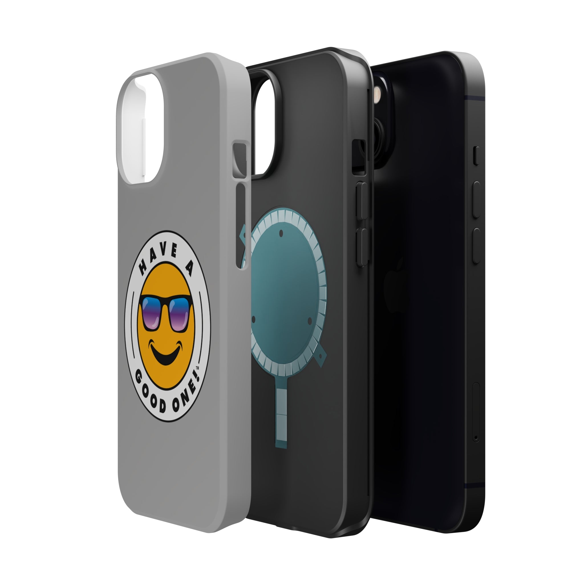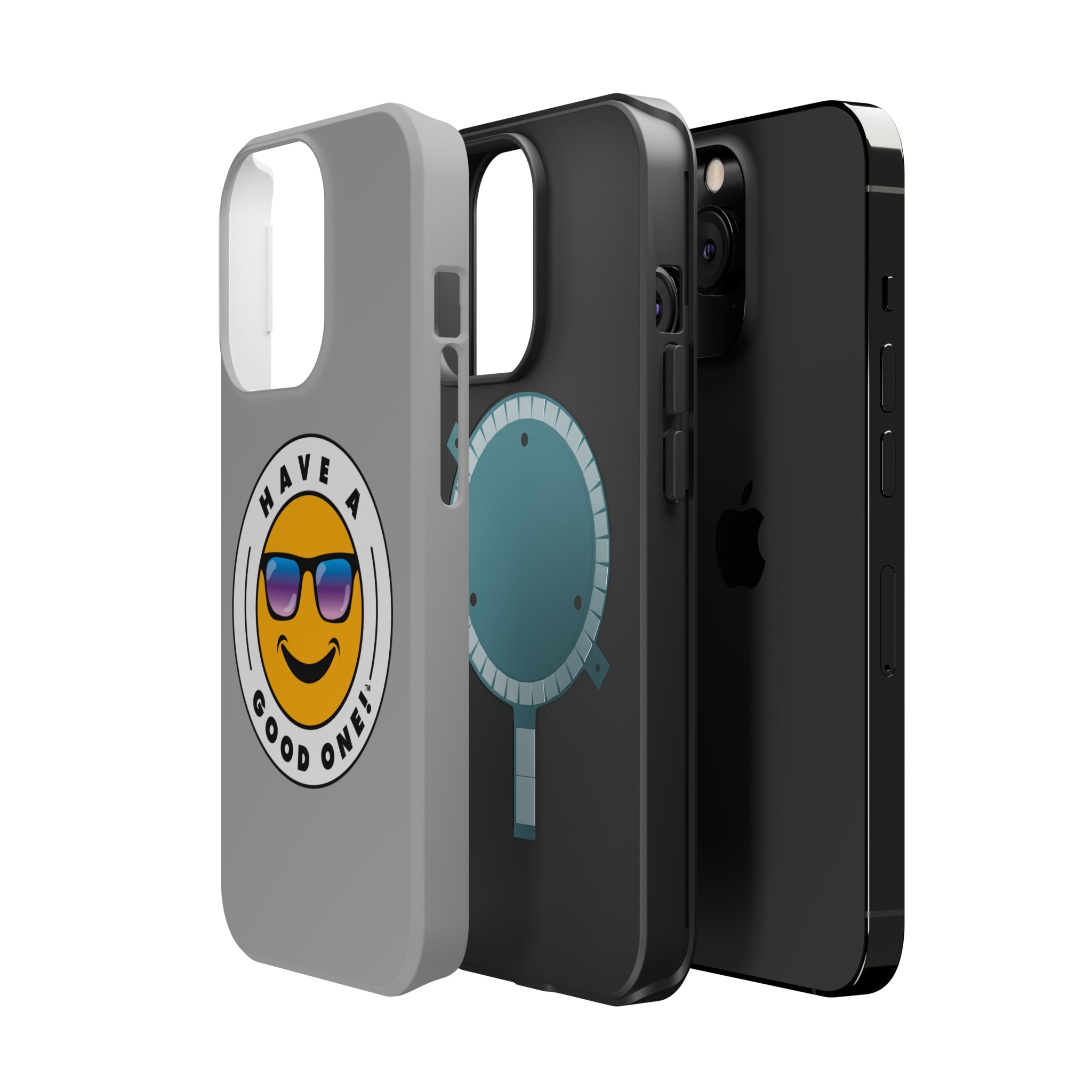 Have fun on the run with our Have A Good One phone cases! Wherever you go this phone case is sure to brighten your day and bring a smile to your face! This is where aesthetics meet function with our MagSafe case. This case delivers impeccable phone protection thanks to its durable, flexible, impact-resistant nature. It has an outer polycarbonate shell and inner black lining to protect against scratches and minor bumps. Each case comes with an embedded magnet to enhance compatibility with Apple MagSafe accessories. The case is available in glossy or matte finish so you can select which one you prefer. We have all of the popular sizes so you are sure to find the best fit for your phone. Lots of vibrant and fun colors to choose from which will surely make you feel the Have A Good One vibe every time you use it!
