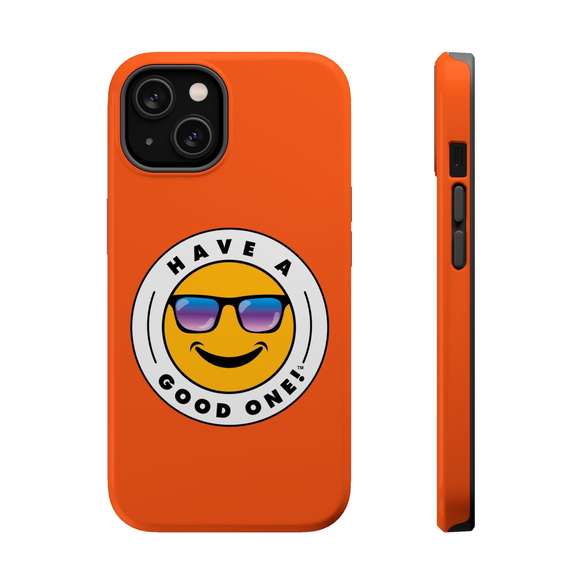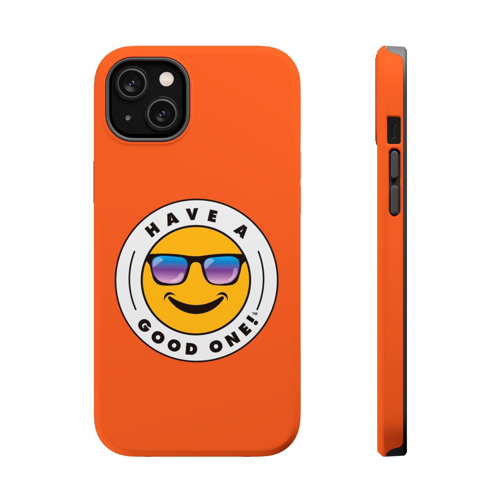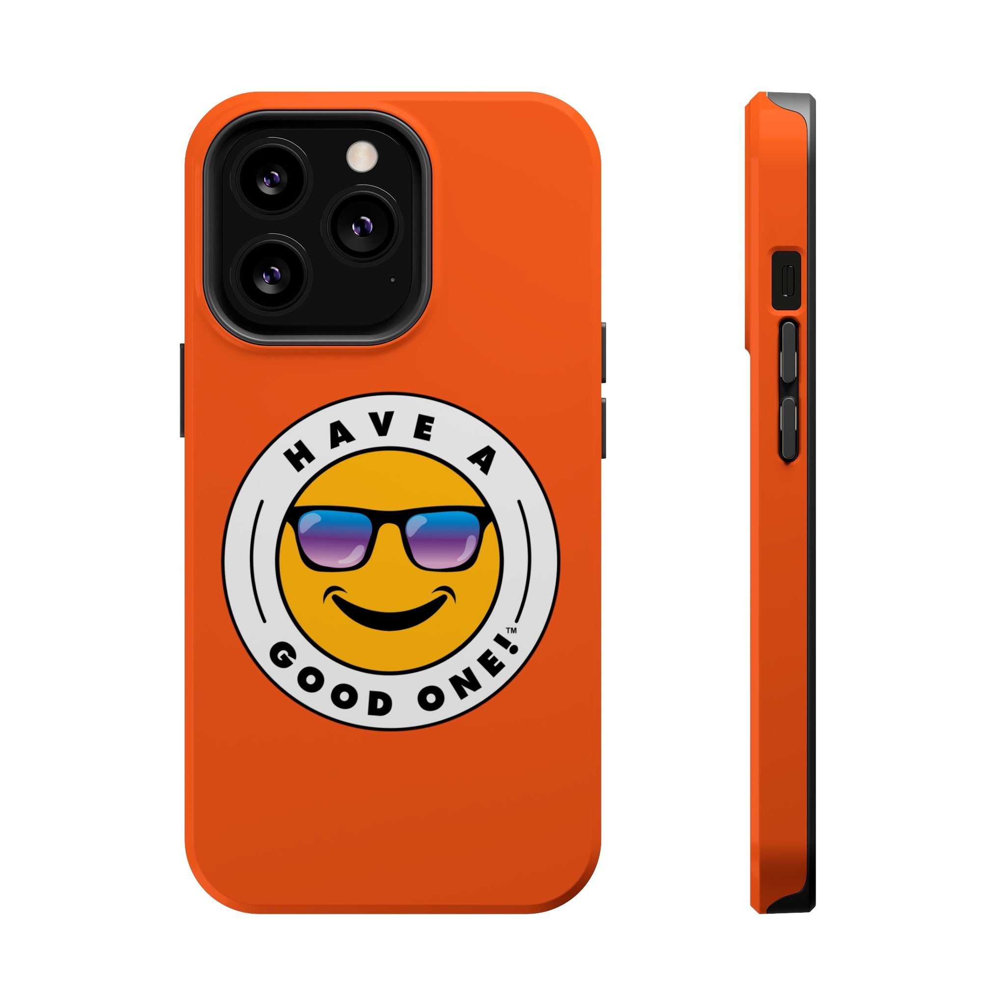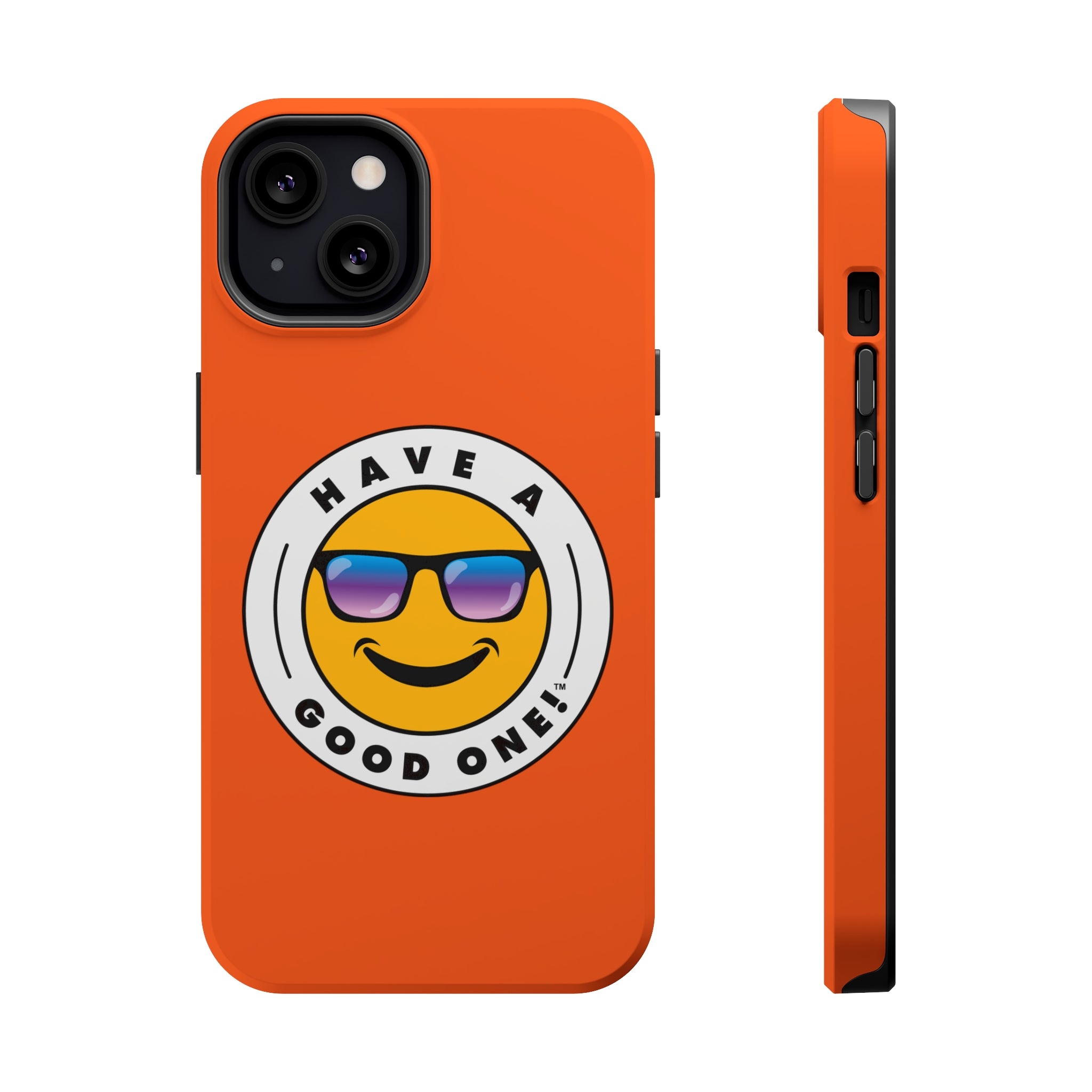 Fun On The Run MagSafe Tough Phone Case - Orange Color With Blue Purple Have a Good One! Logo
