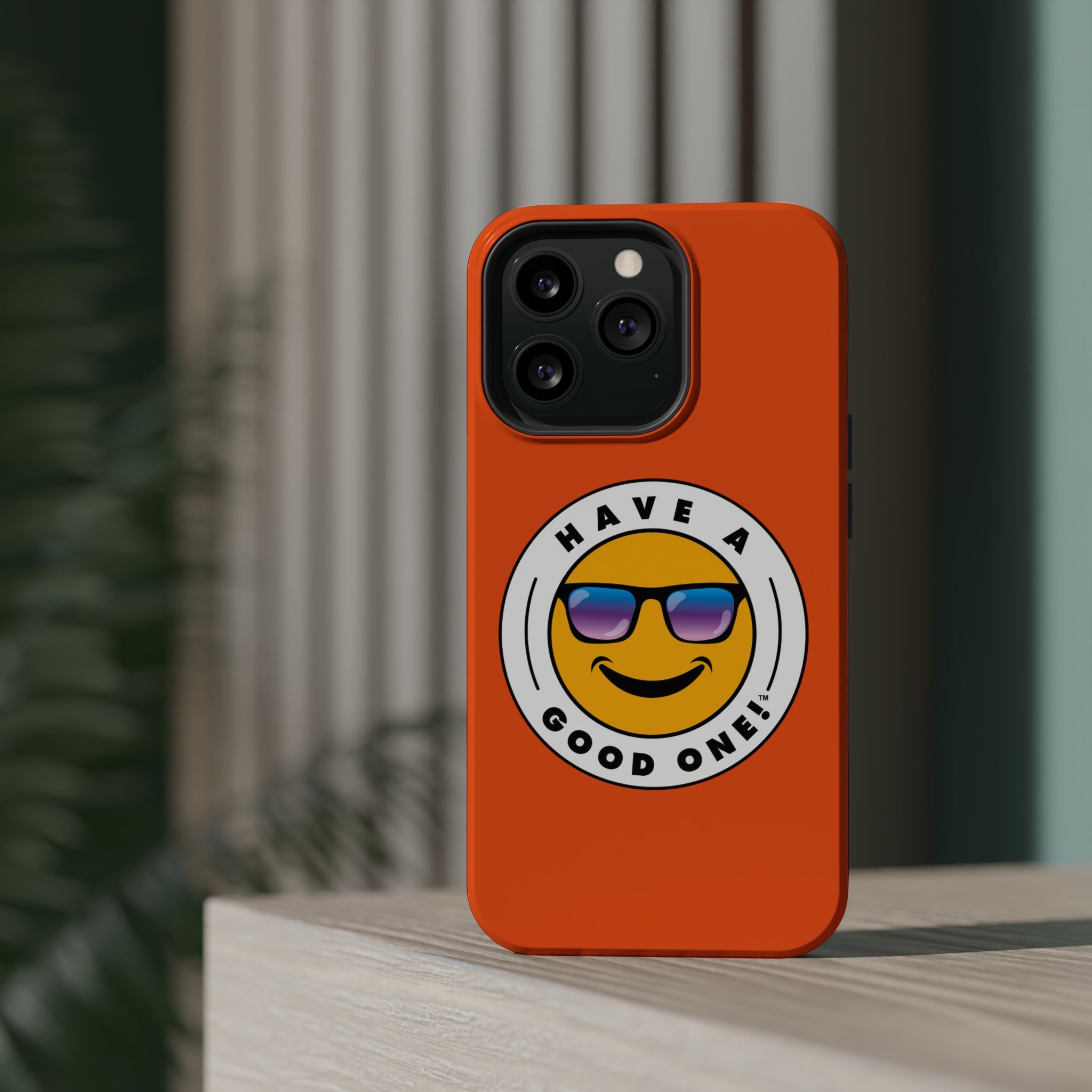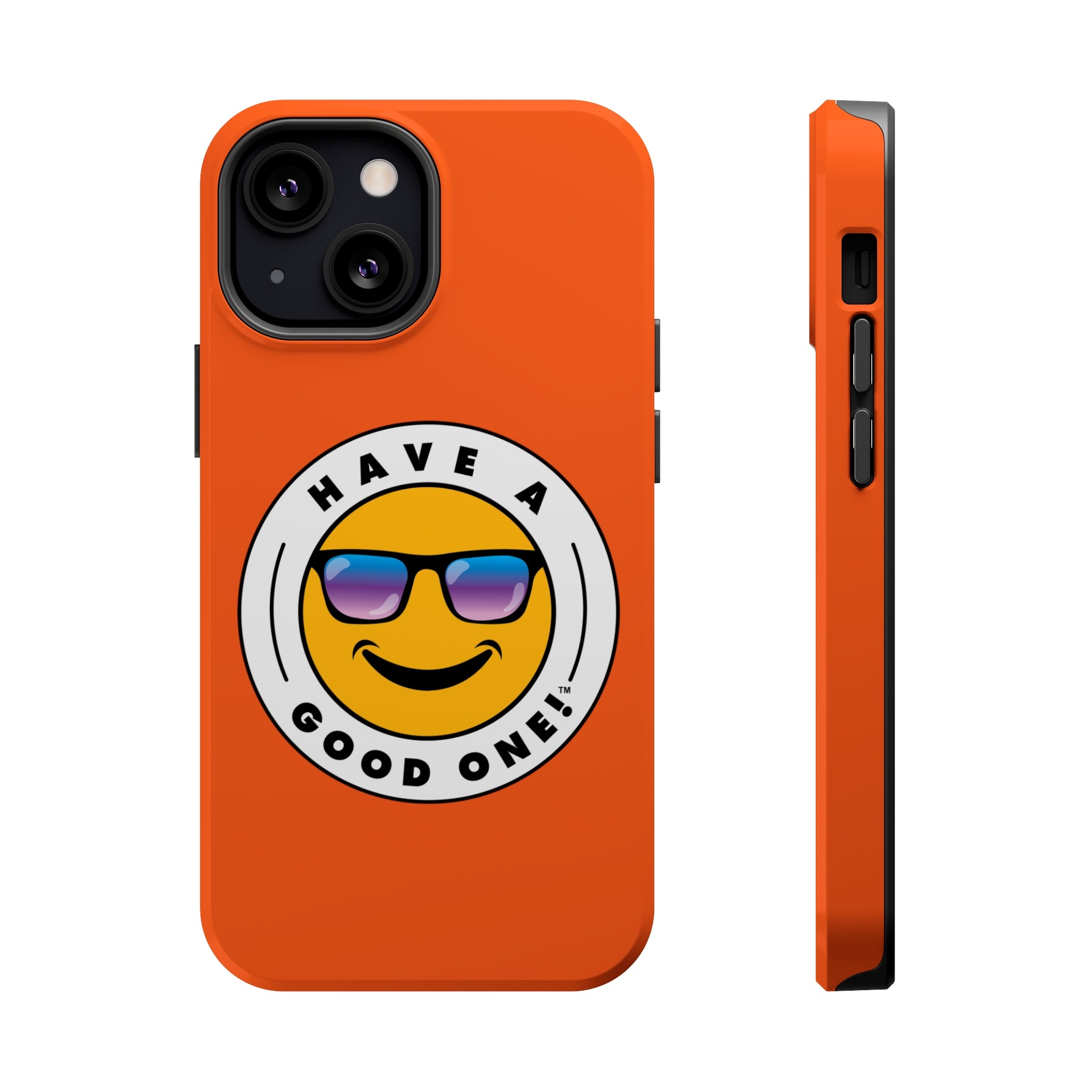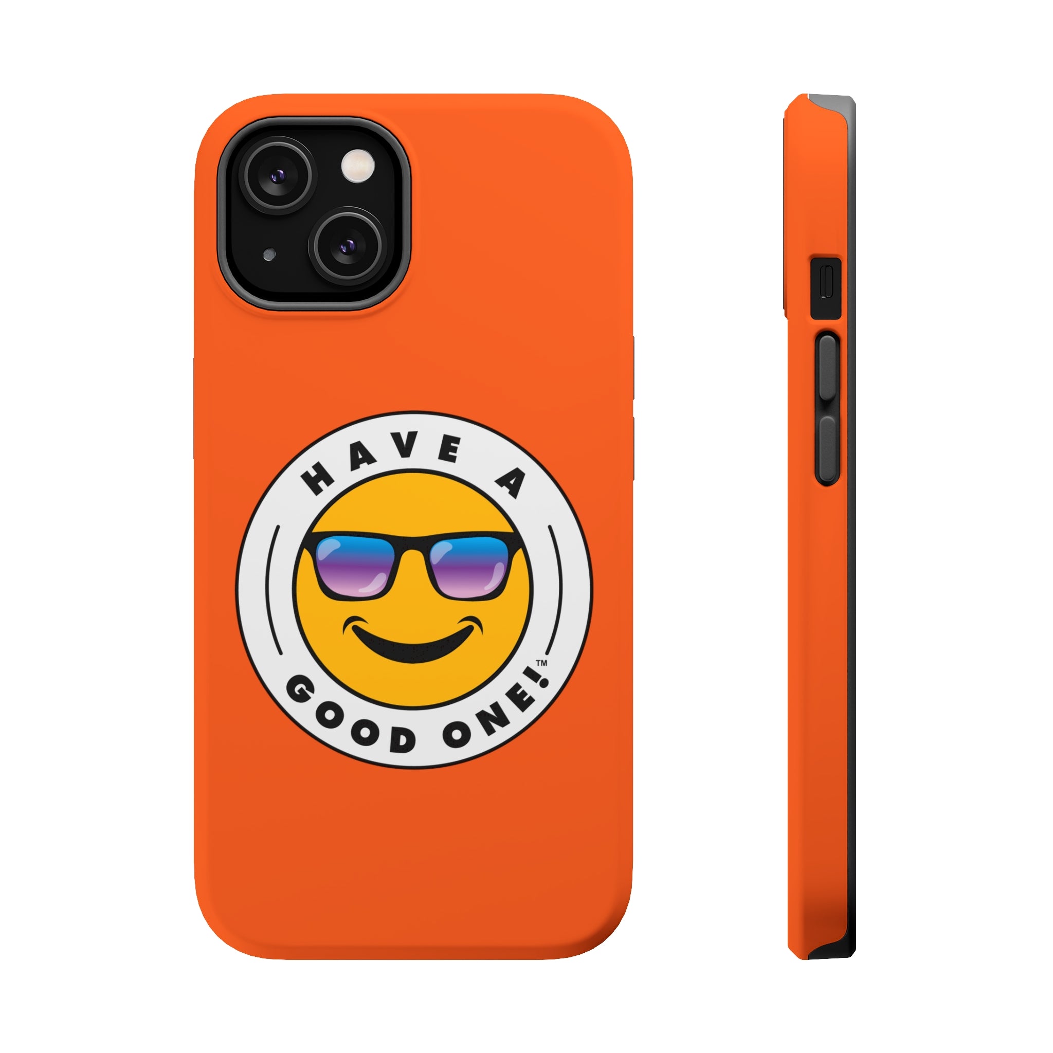 Fun On The Run MagSafe Tough Phone Case - Orange Color With Blue Purple Have a Good One! Logo