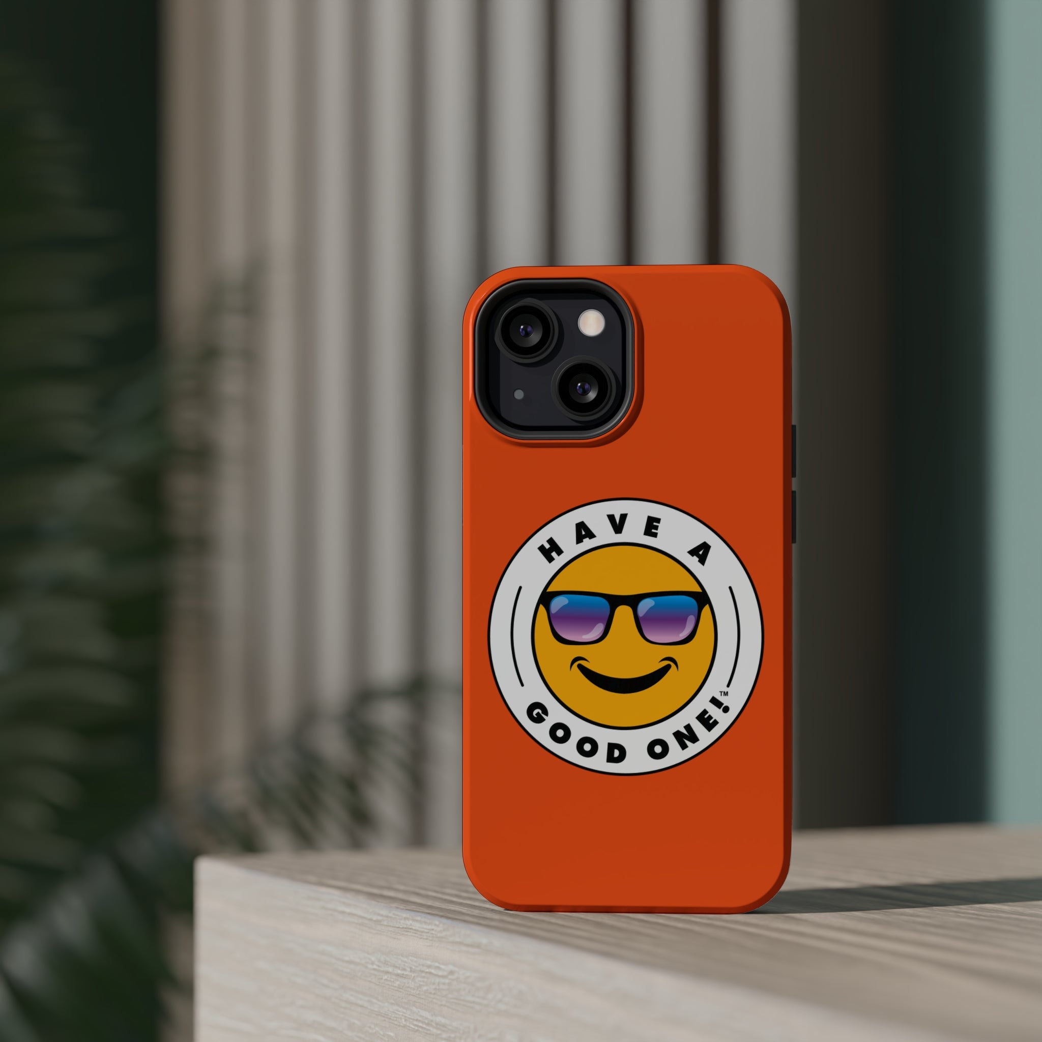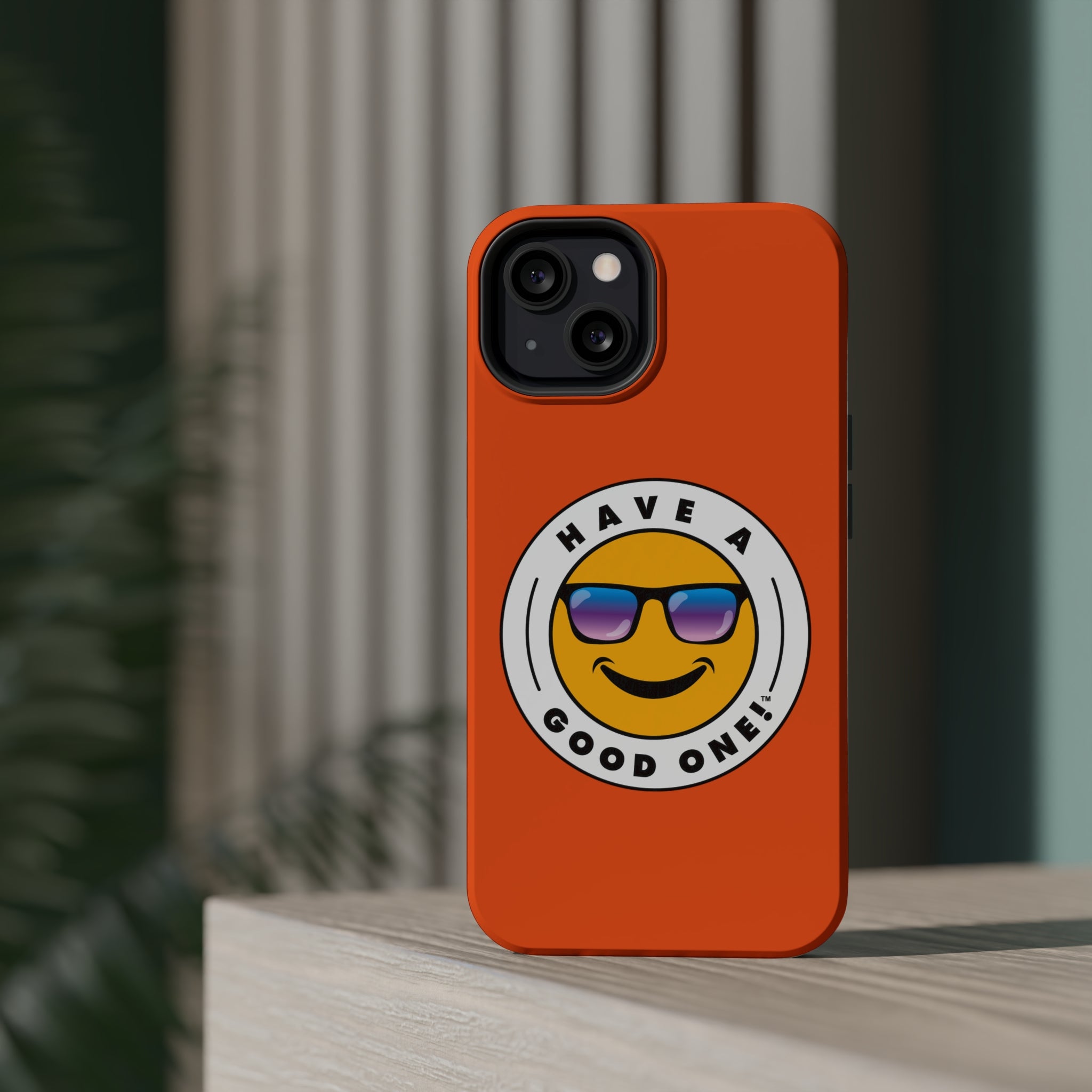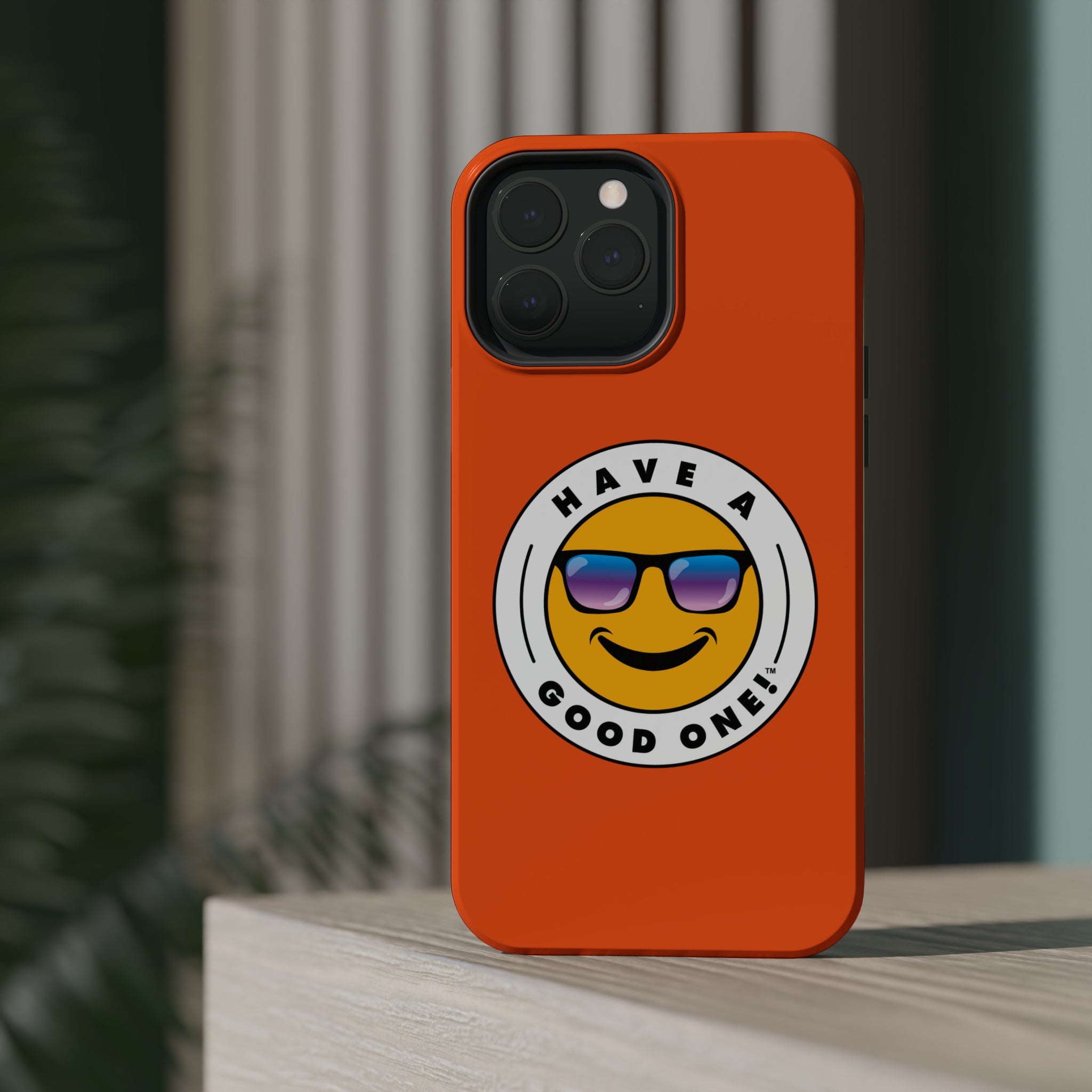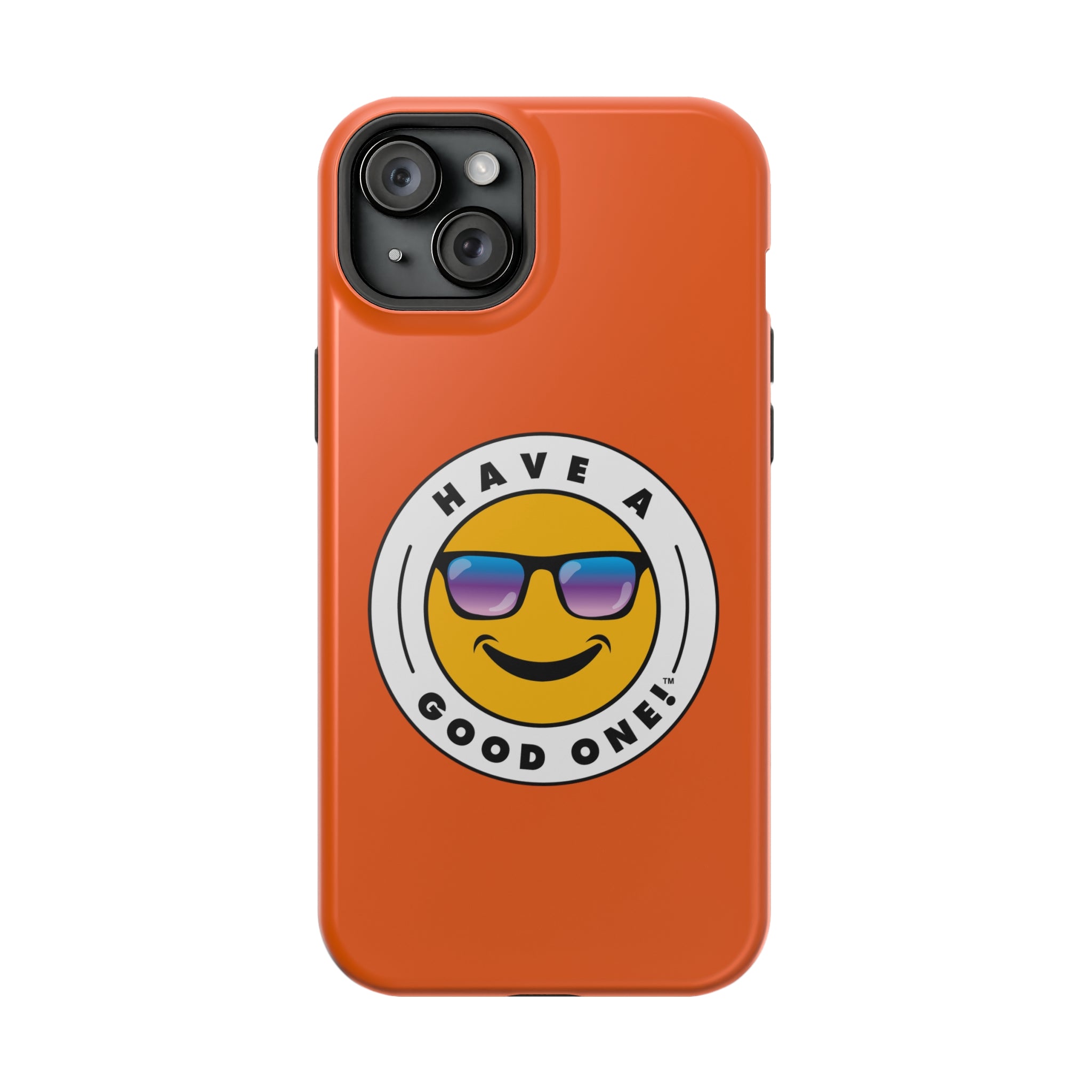 Fun On The Run MagSafe Tough Phone Case - Orange Color With Blue Purple Have a Good One! Logo