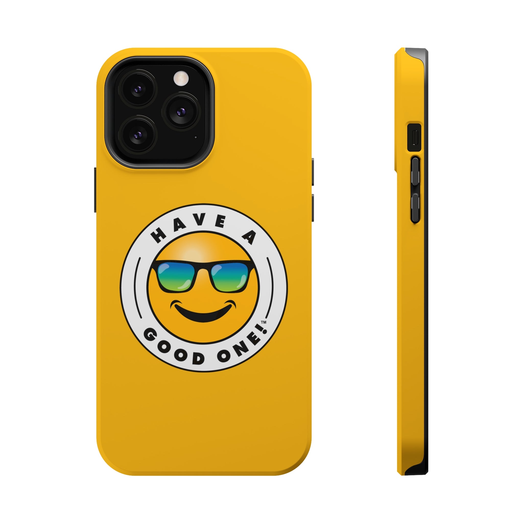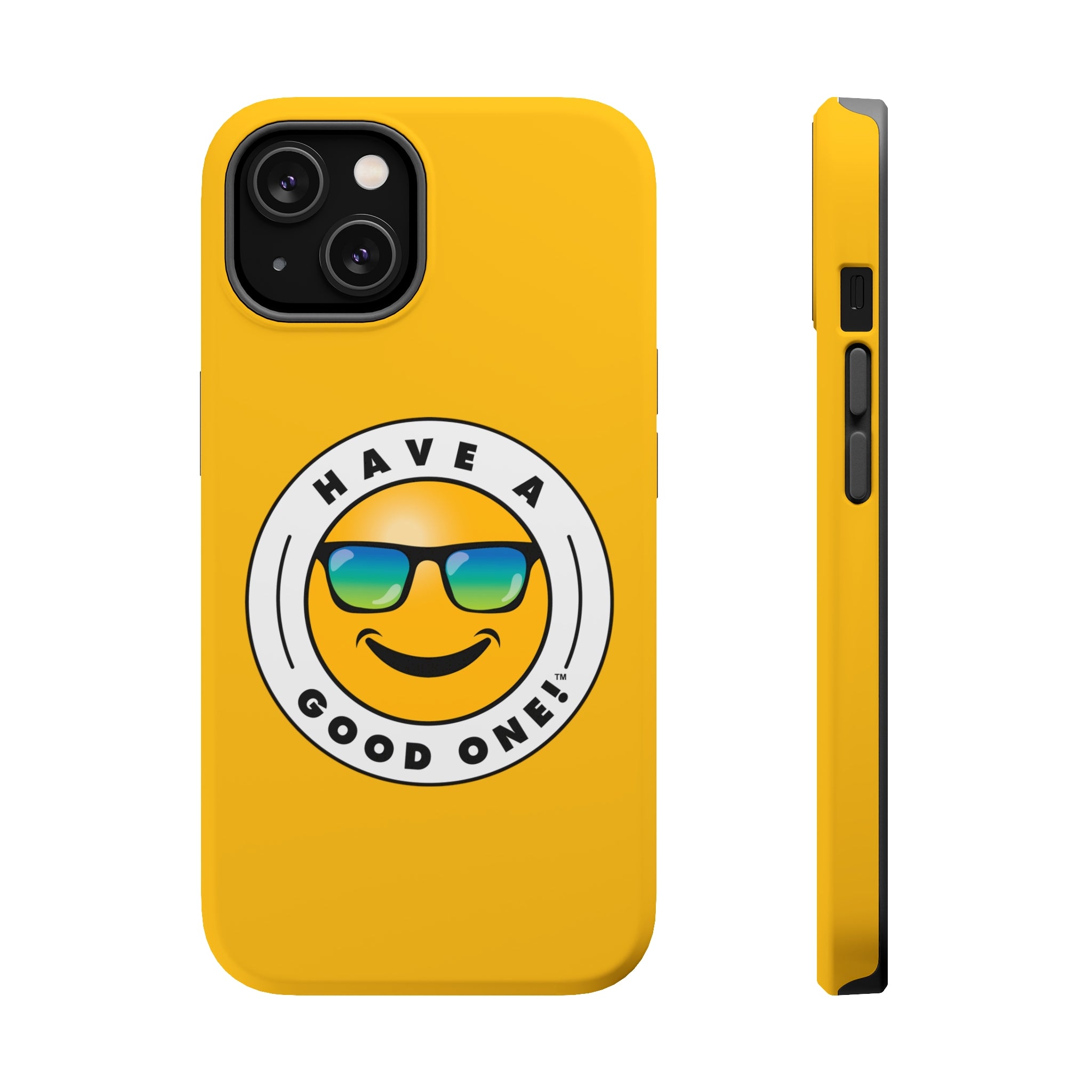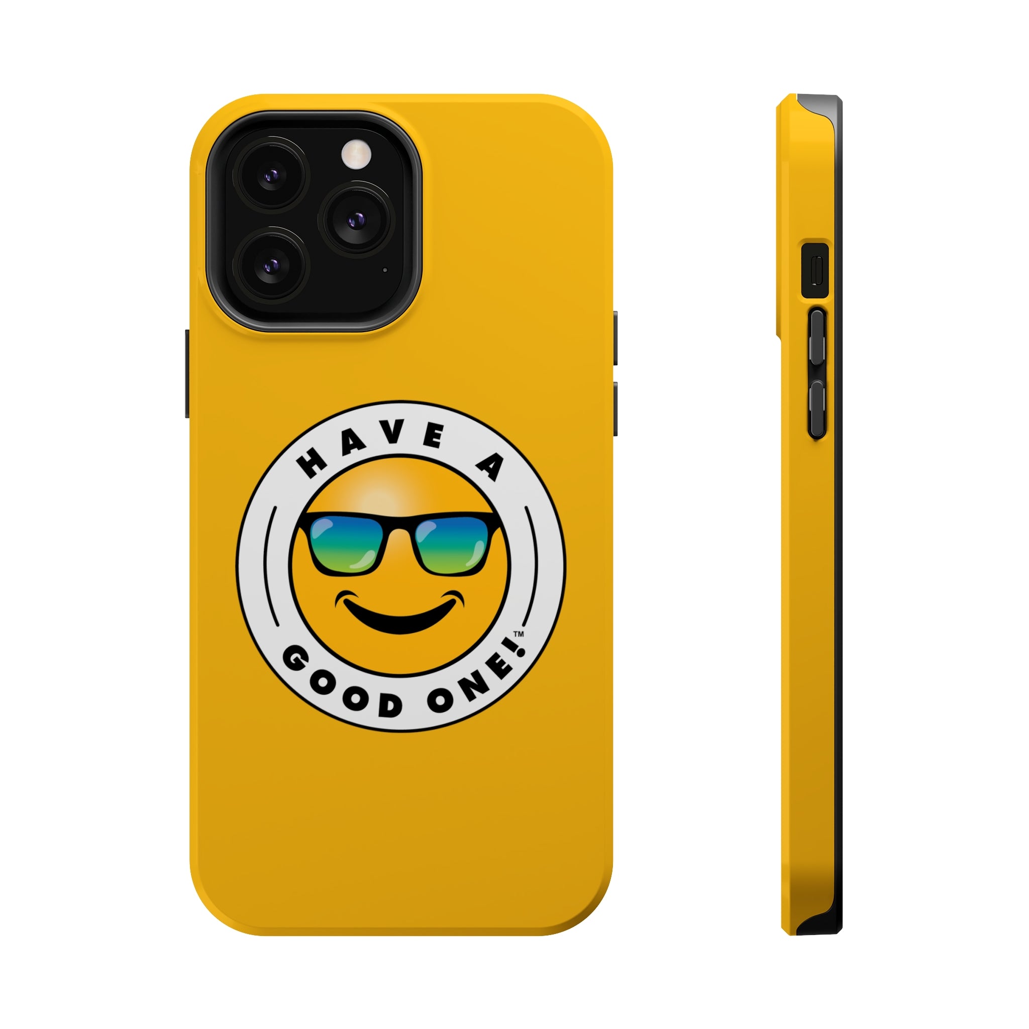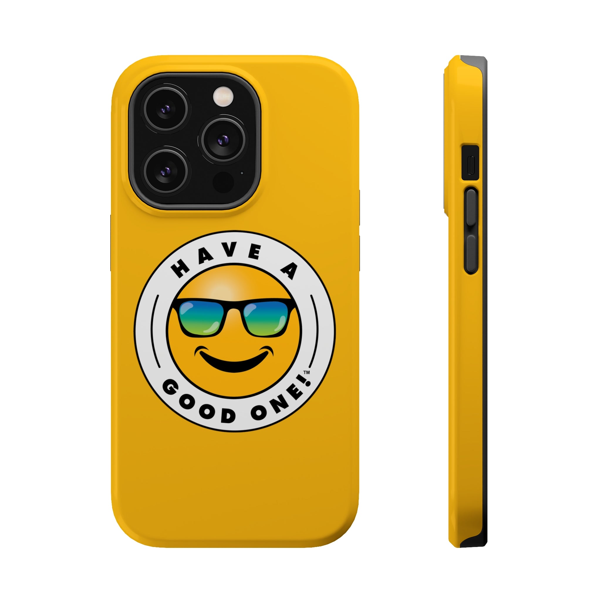Have fun on the run with our Have A Good One phone cases! Wherever you go this phone case is sure to brighten your day and bring a smile to your face! This is where aesthetics meet function with our MagSafe case. This case delivers impeccable phone protection thanks to its durable, flexible, impact-resistant nature. It has an outer polycarbonate shell and inner black lining to protect against scratches and minor bumps. Each case comes with an embedded magnet to enhance compatibility with Apple MagSafe accessories. The case is available in glossy or matte finish so you can select which one you prefer. We have all of the popular sizes so you are sure to find the best fit for your phone. Lots of vibrant and fun colors to choose from which will surely make you feel the Have A Good One vibe every time you use it!
