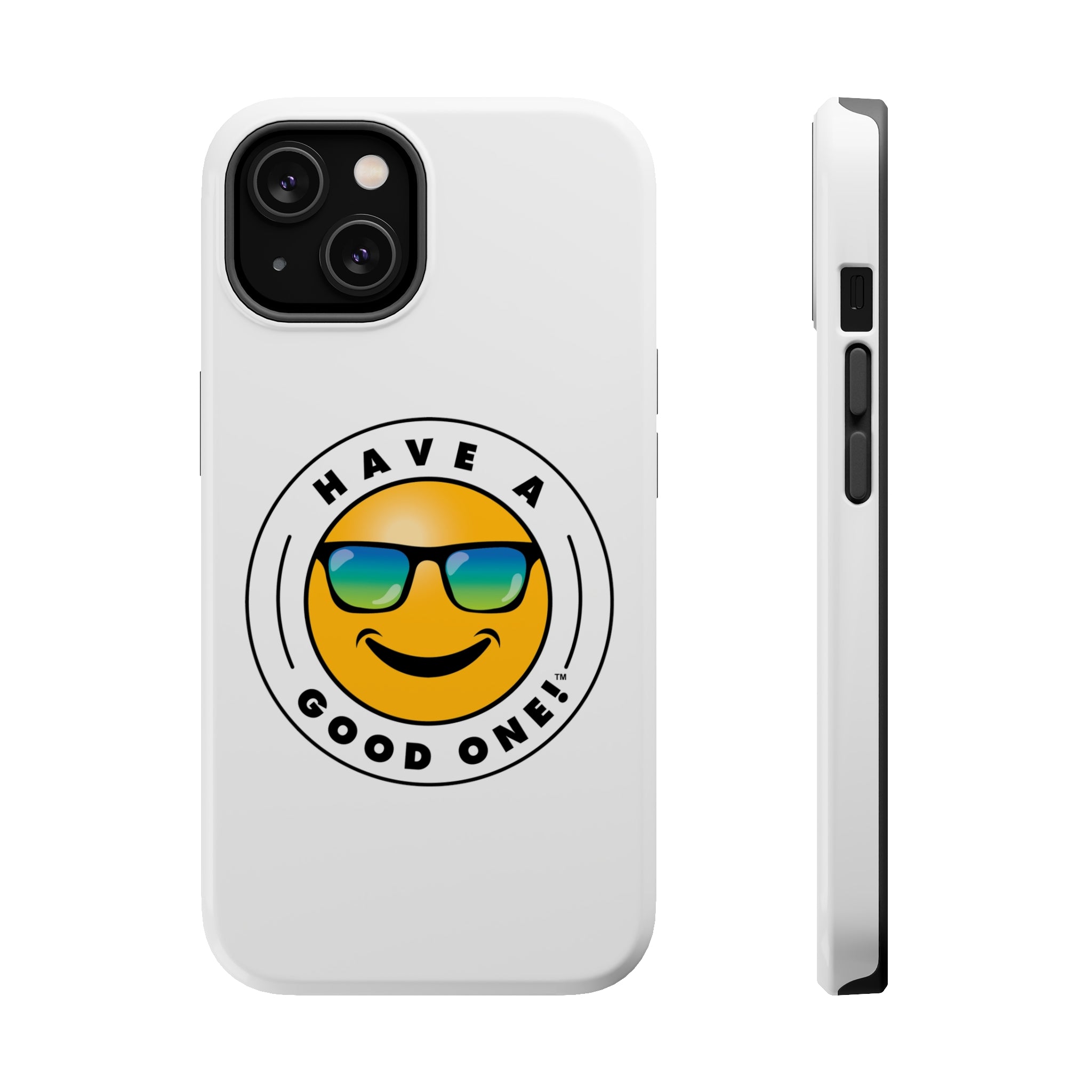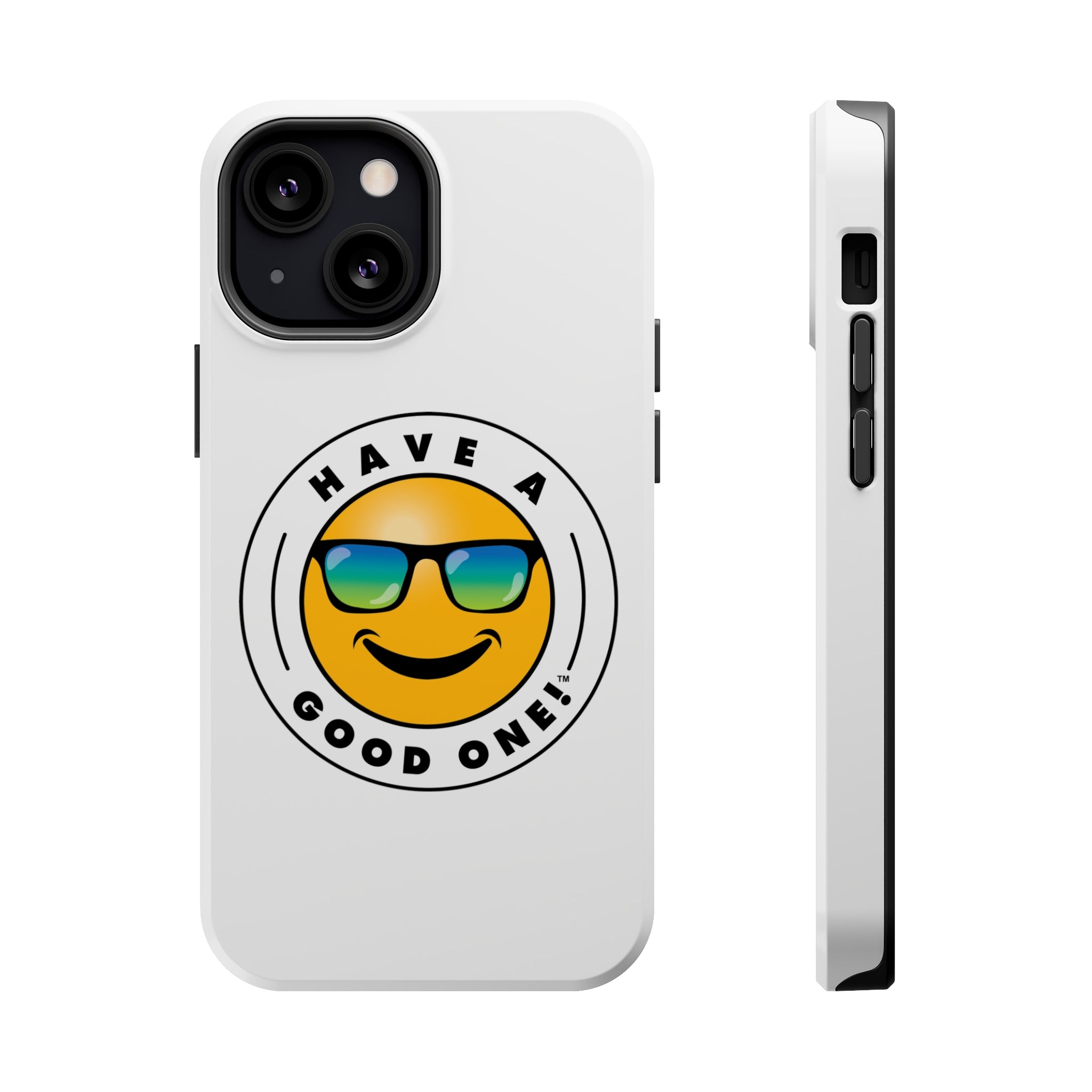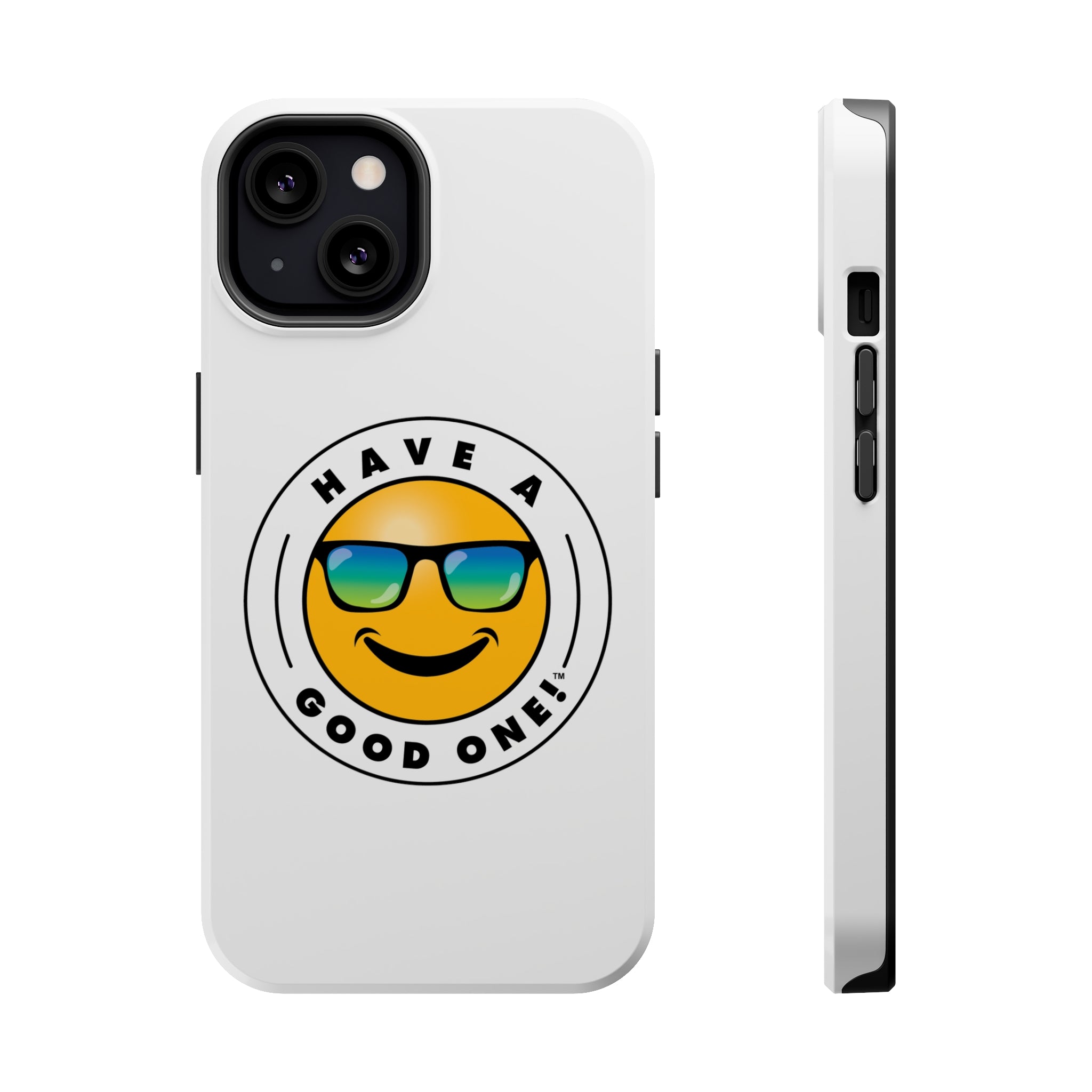 Fun On The Run MagSafe Tough Phone Case - White Color With Blue Green Have a Good One! Logo