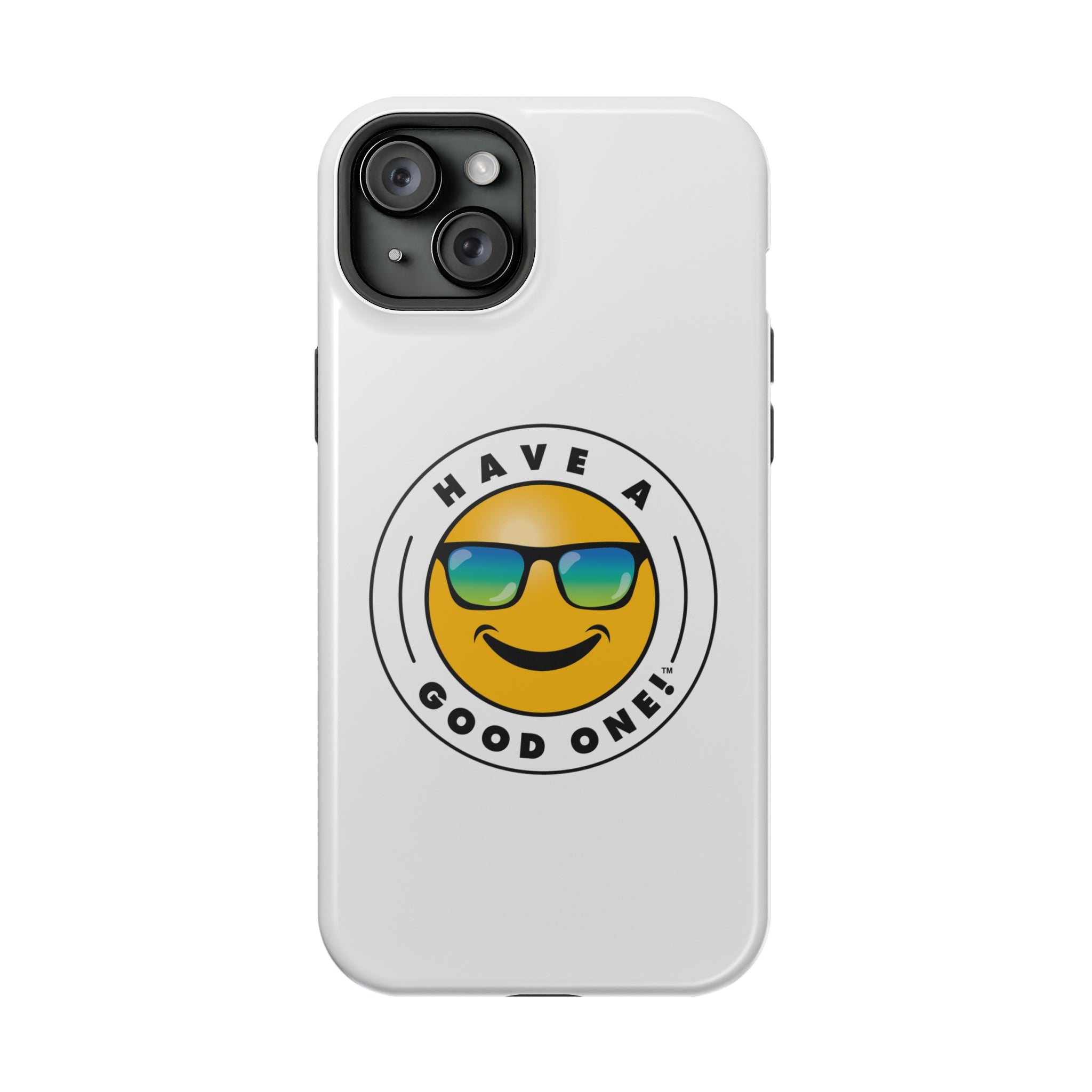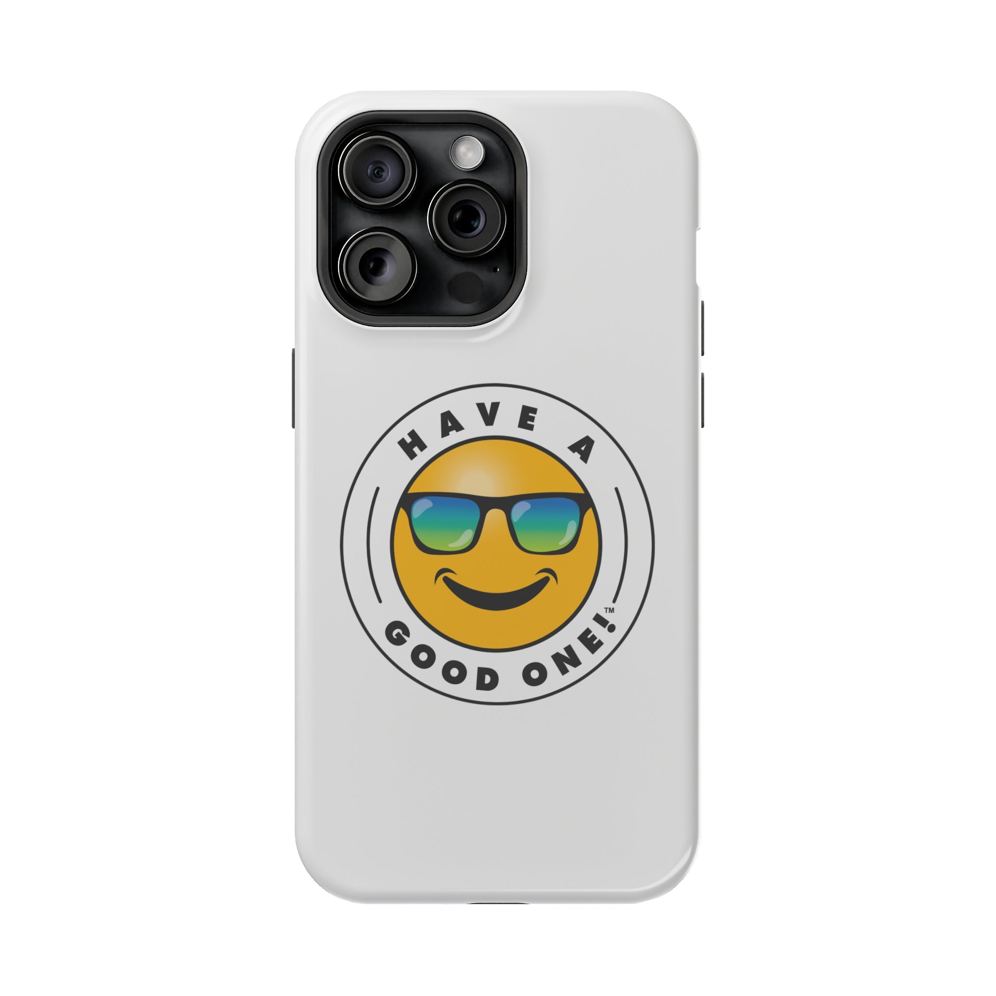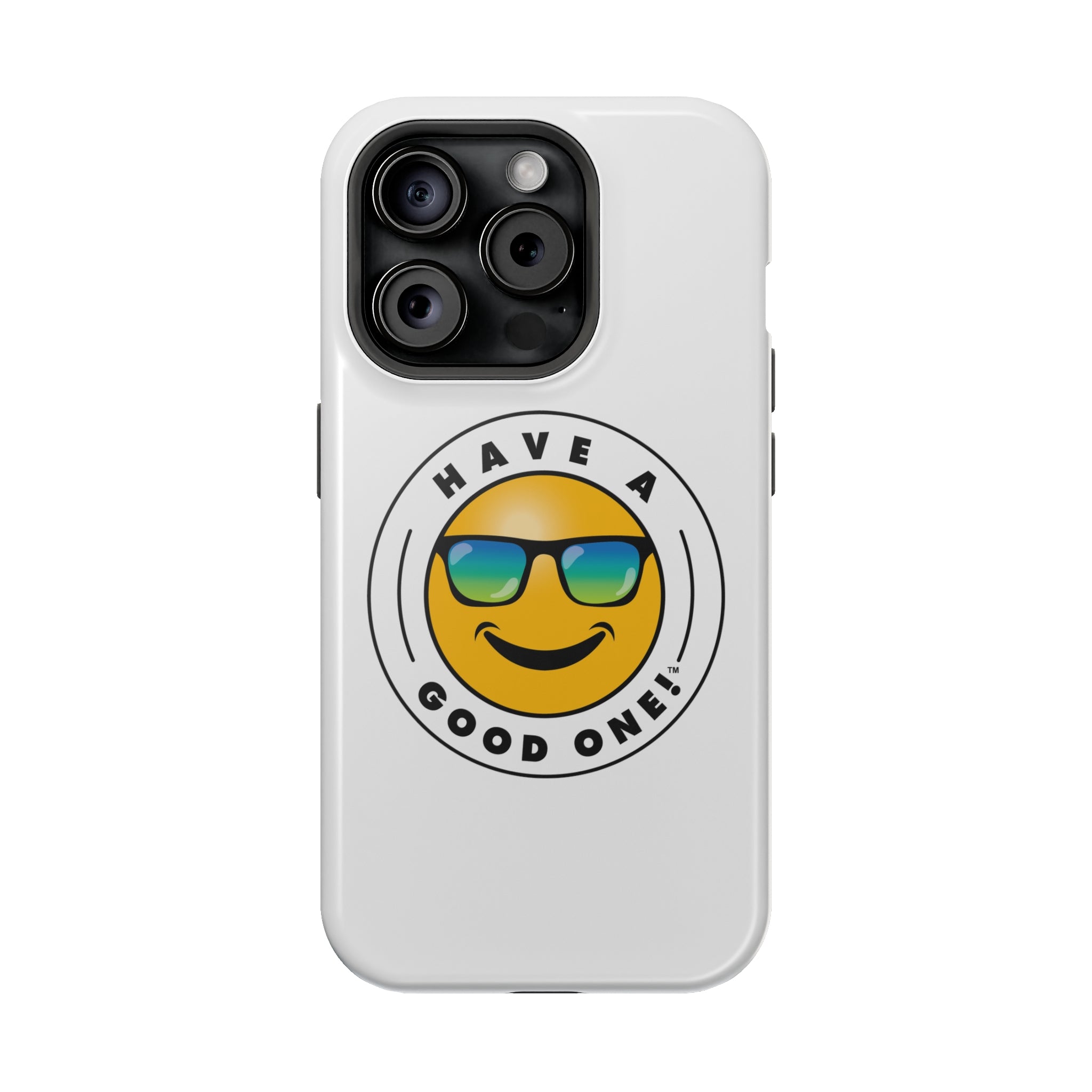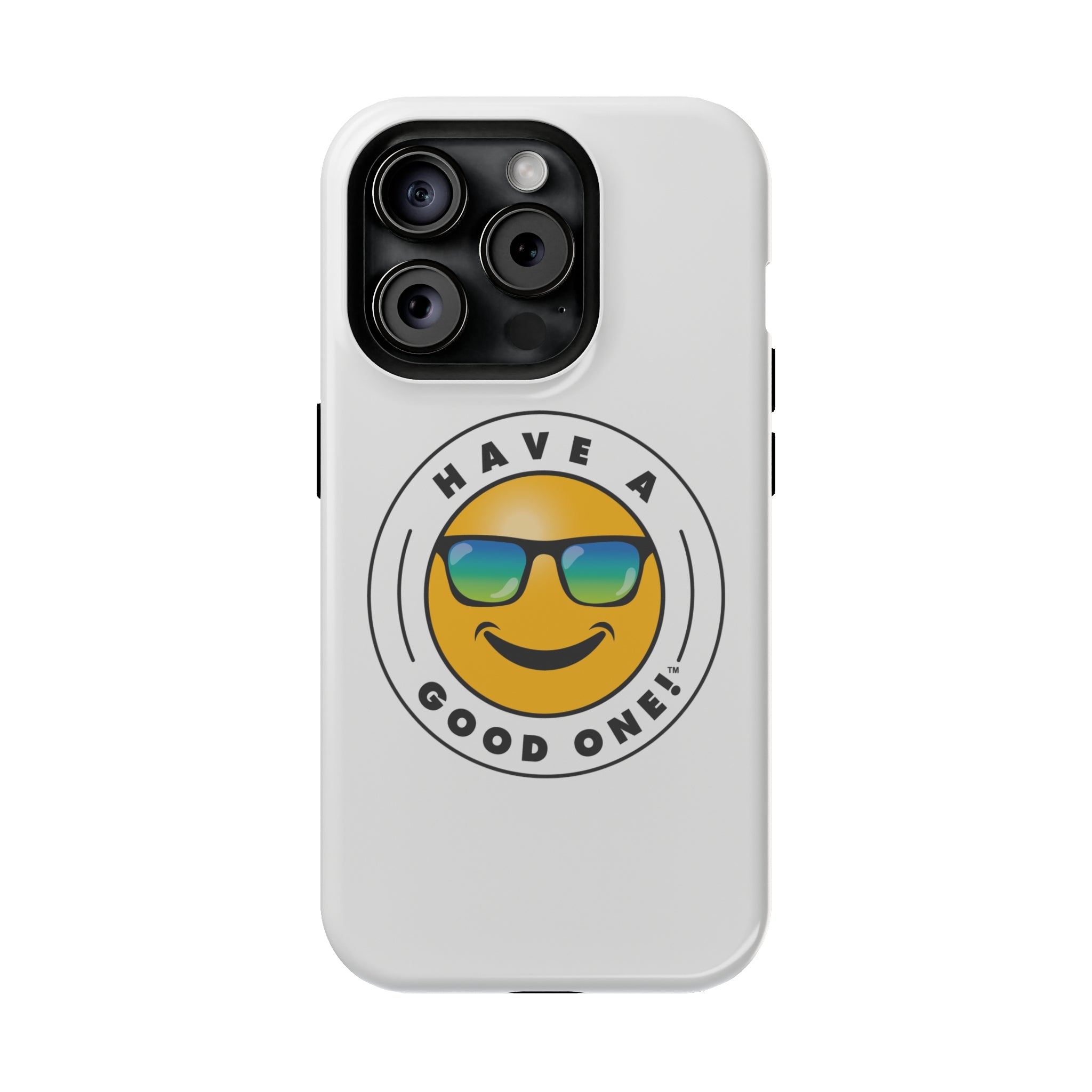 Fun On The Run MagSafe Tough Phone Case - White Color With Blue Green Have a Good One! Logo