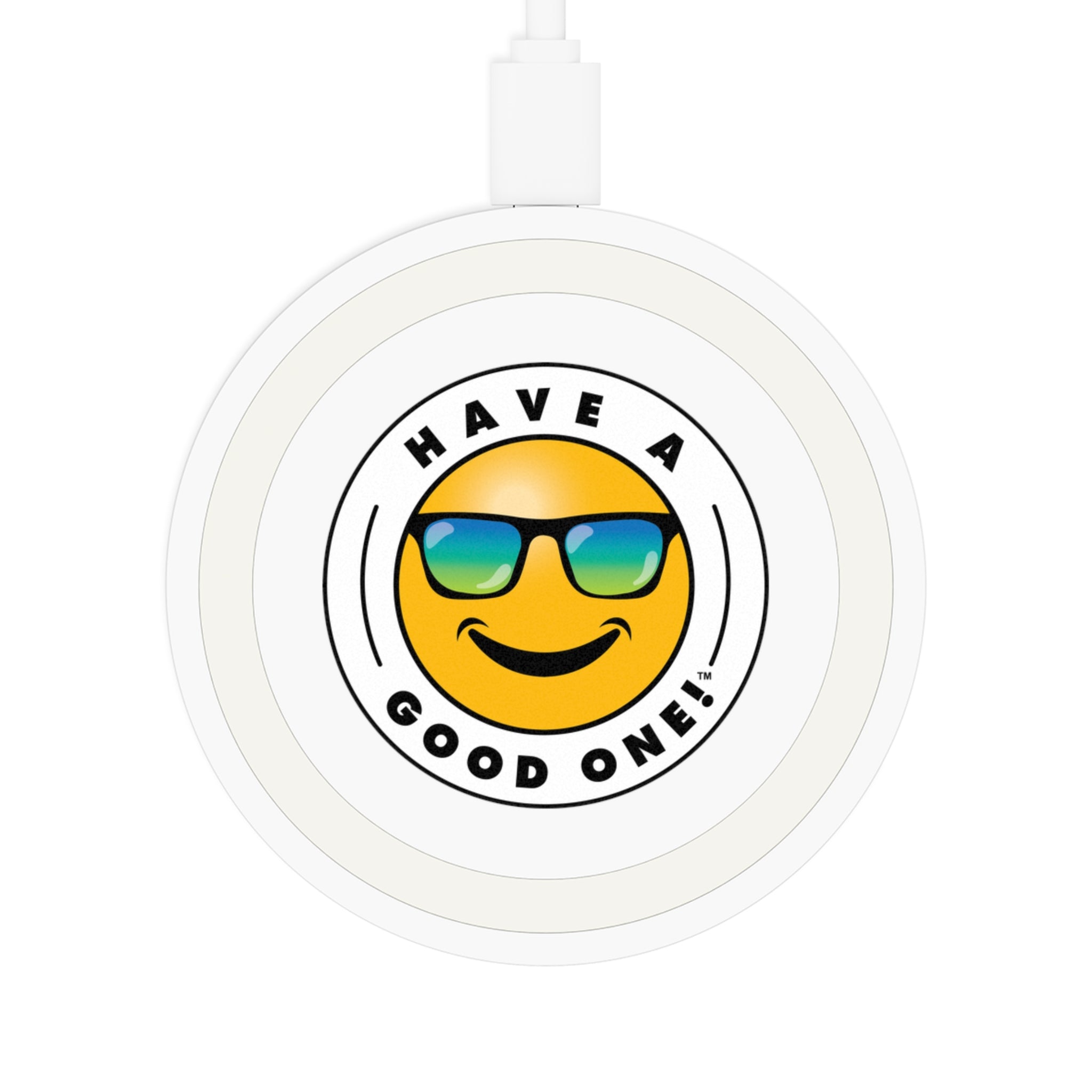 This Have A Good One! charger was designed for our tech-savvy customers who wanted a charging pad they'll love! The wireless charging pad is made with highly durable, double-wall plastic, and supports 5W wireless charging that is compatible with iPhones and various Android smartphones. Each pad includes one 11.8" USB to Micro USB cable for standard charging as well. It weighs only 3.2 ounces so you can take it with you wherever you go! Your mobile phone is sure to have a smile and Have A Good One! each time it gets charged!
