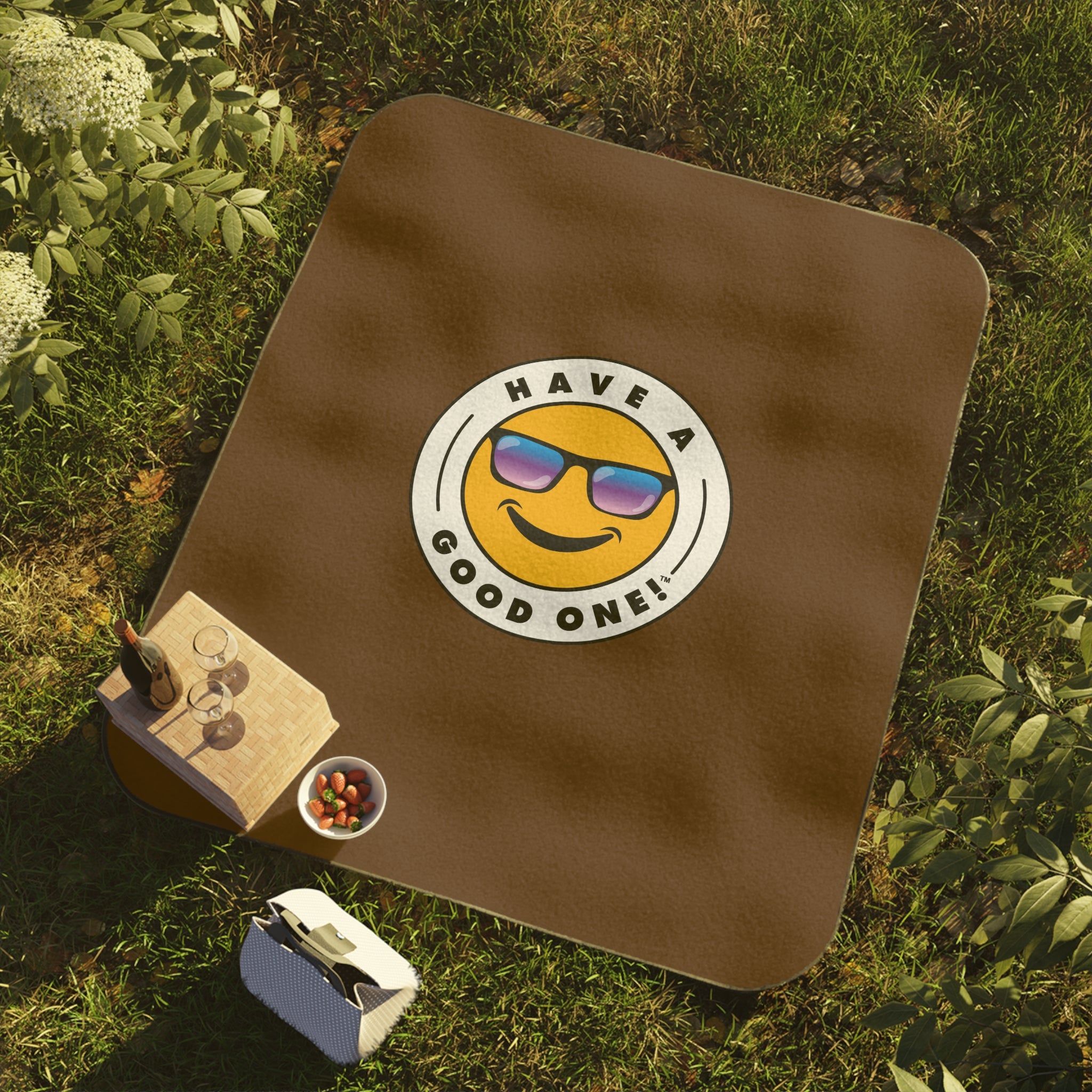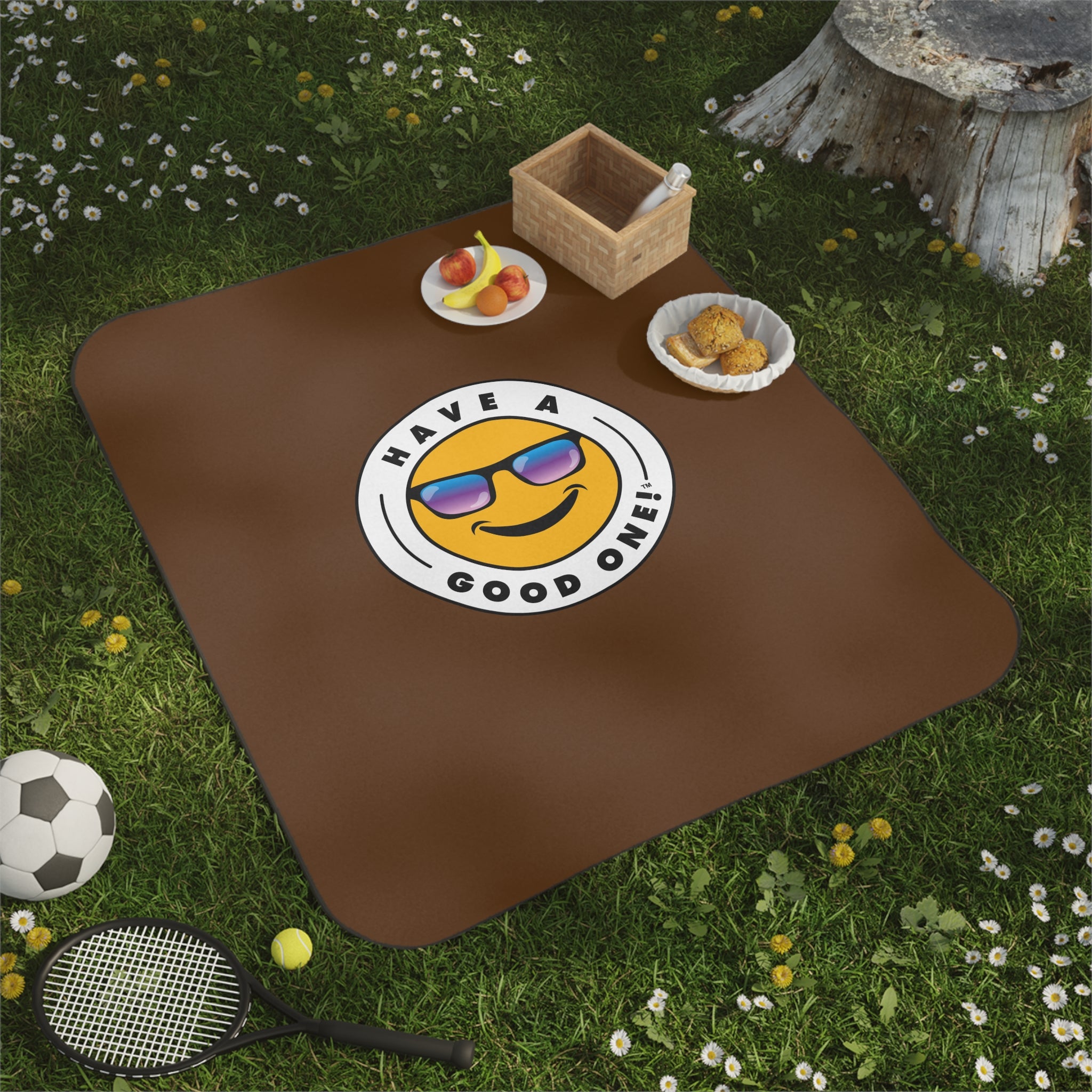 Grab N’ Go Picnic Blanket – Brown Color With Blue Purple Have A Good One! Logo