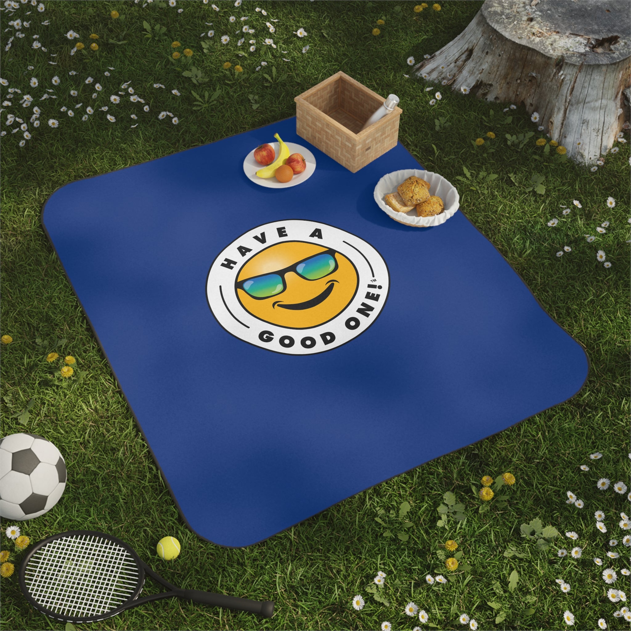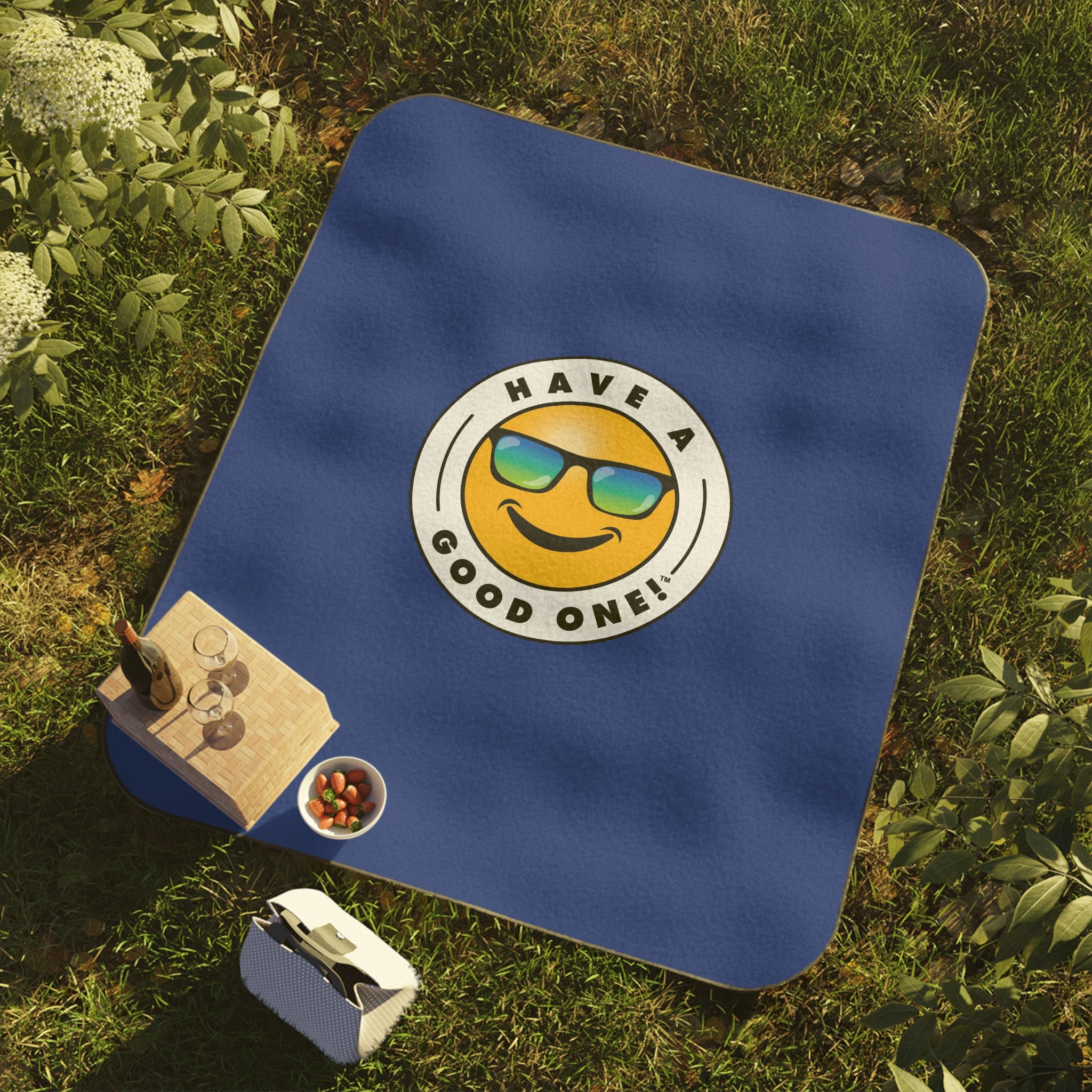 Grab N’ Go Picnic Blanket – Dark Blue Color With Blue Green Have A Good One! Logo