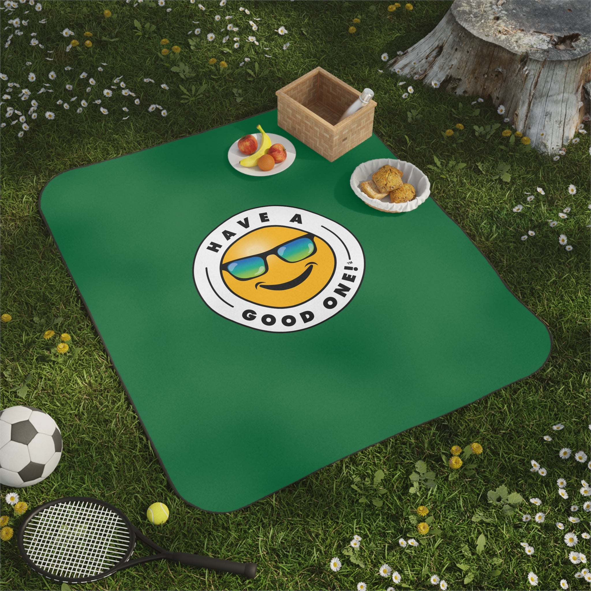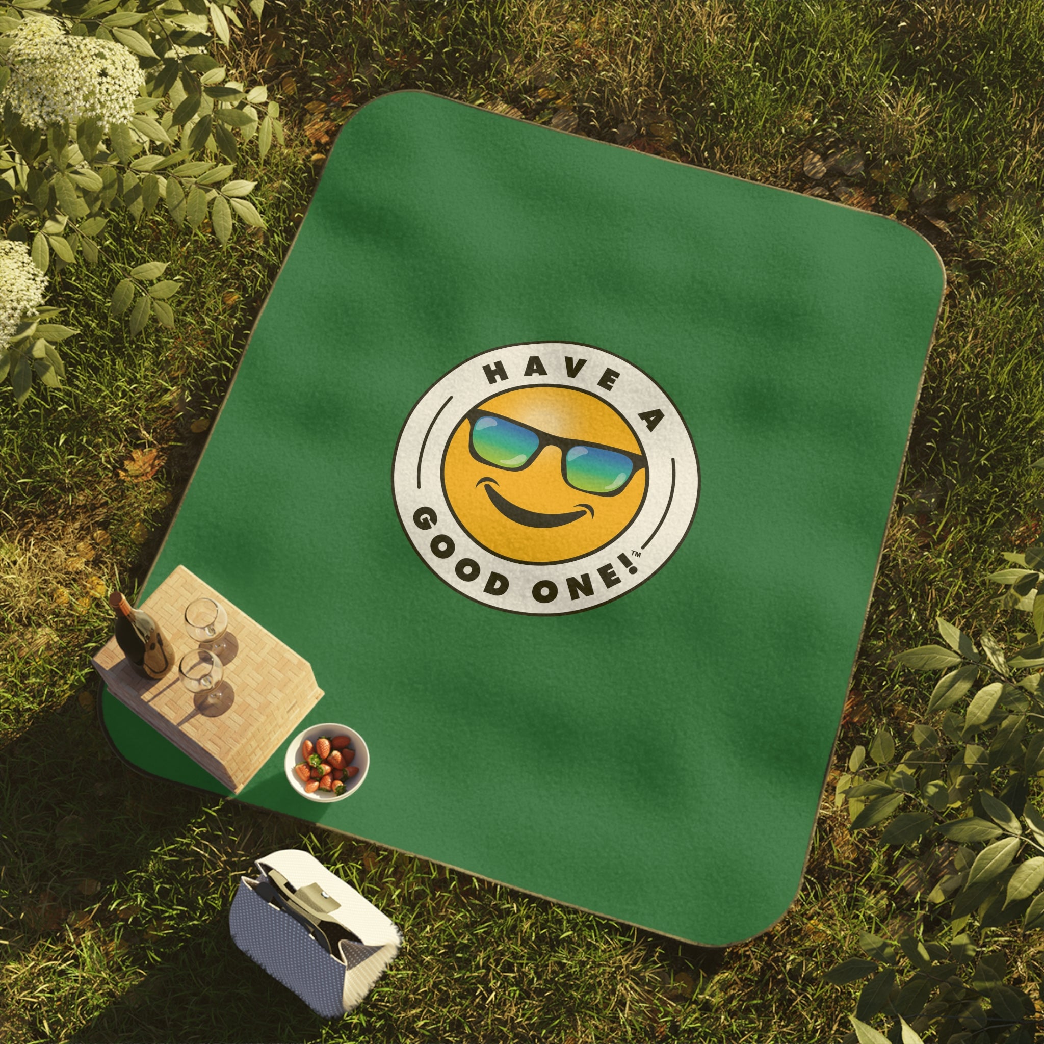 Grab N’ Go Picnic Blanket – Dark Green Color With Blue Green Have A Good One! Logo