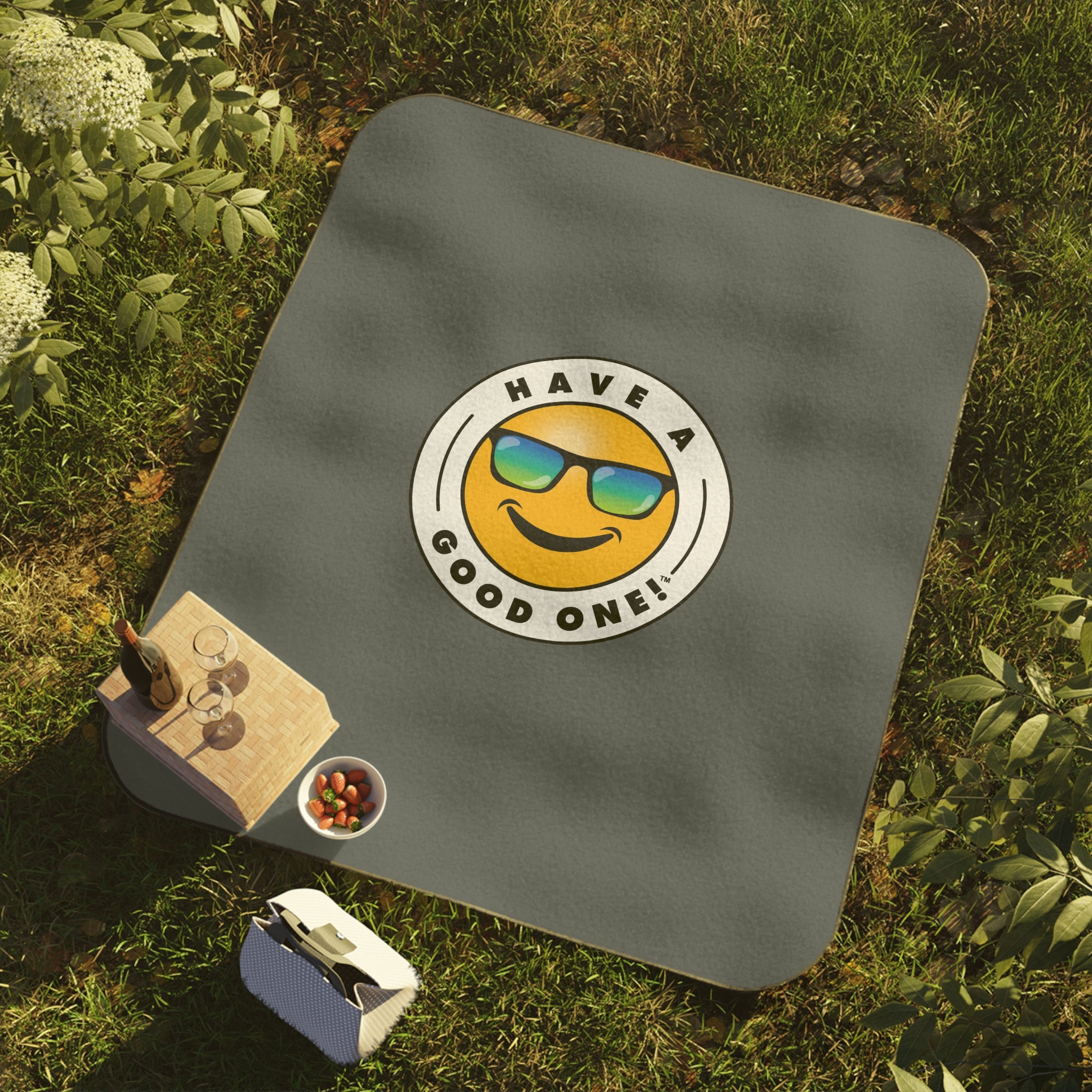 Grab N’ Go Picnic Blanket – Dark Grey Color With Blue Green Have A Good One! Logo