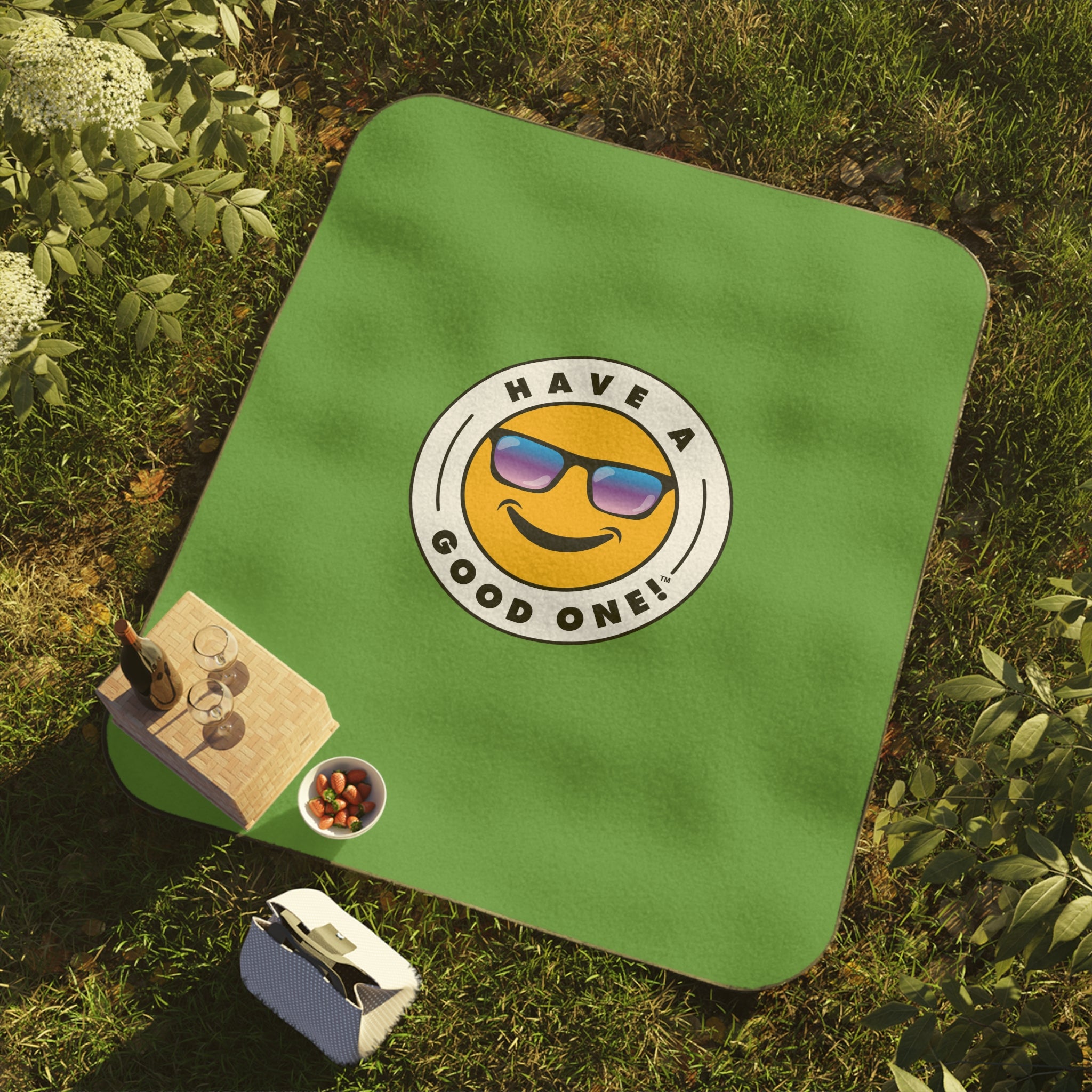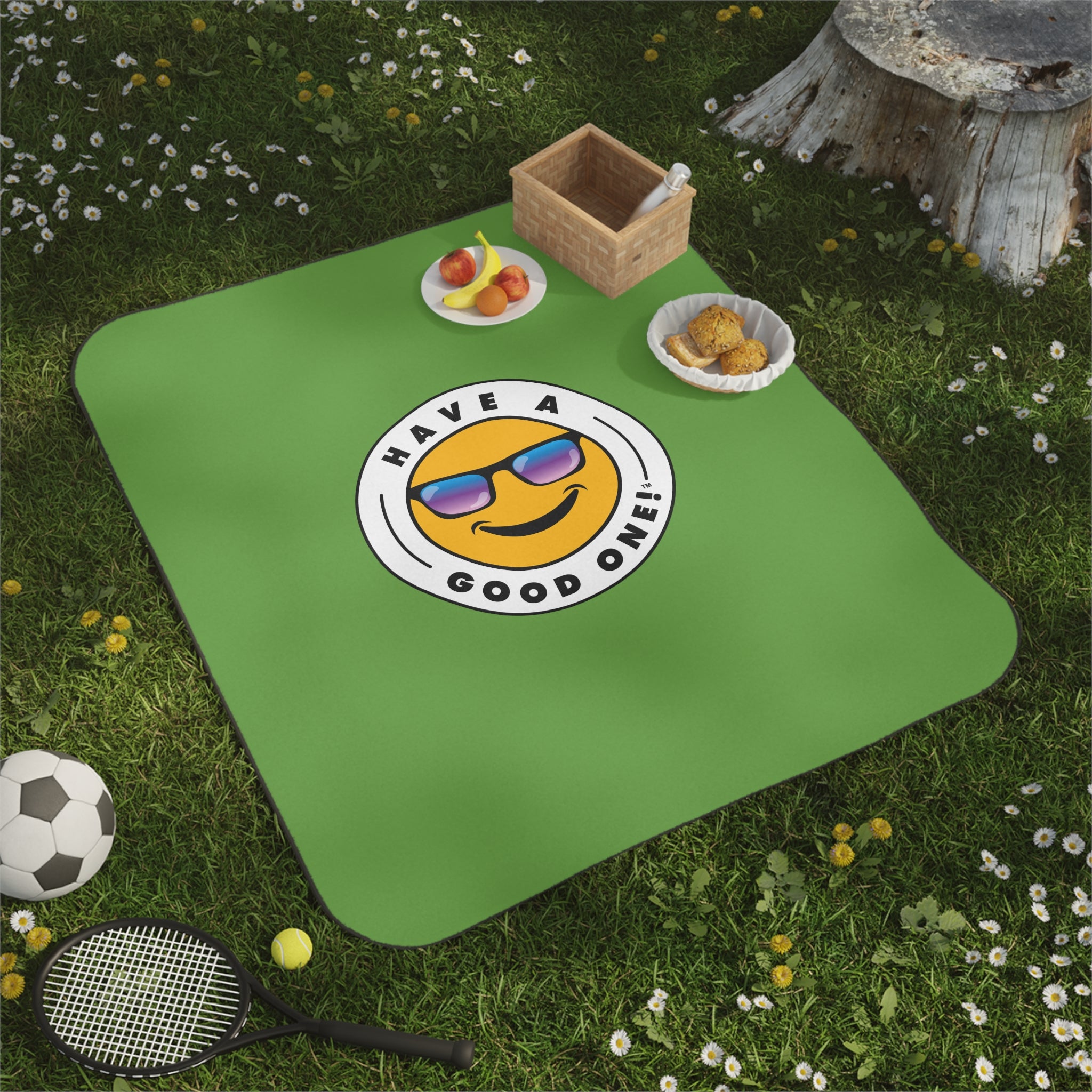 Grab N’ Go Picnic Blanket – Green Color With Blue Purple Have A Good One! Logo
