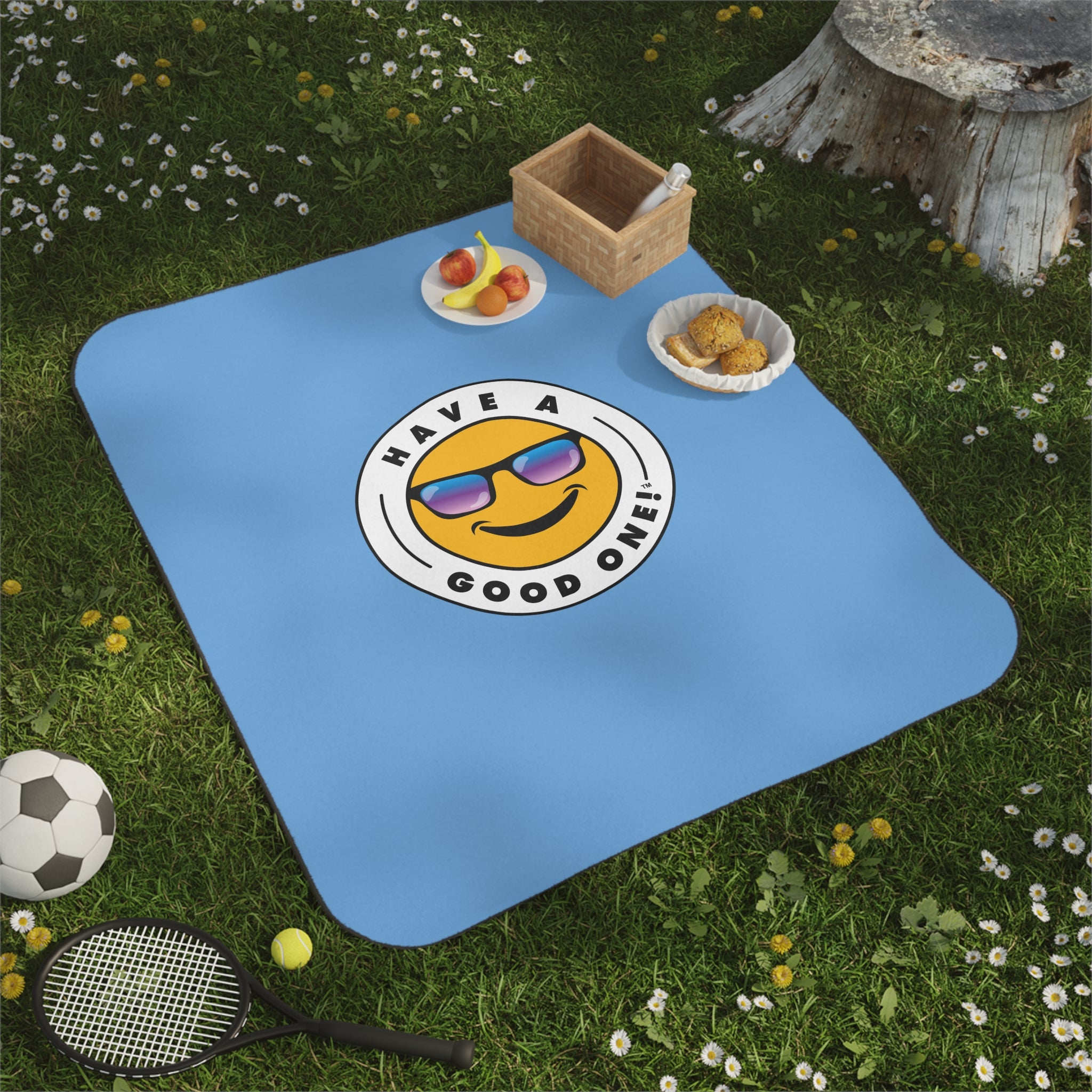 Grab N’ Go Picnic Blanket – Light Blue Color With Blue Purple Have A Good One! Logo