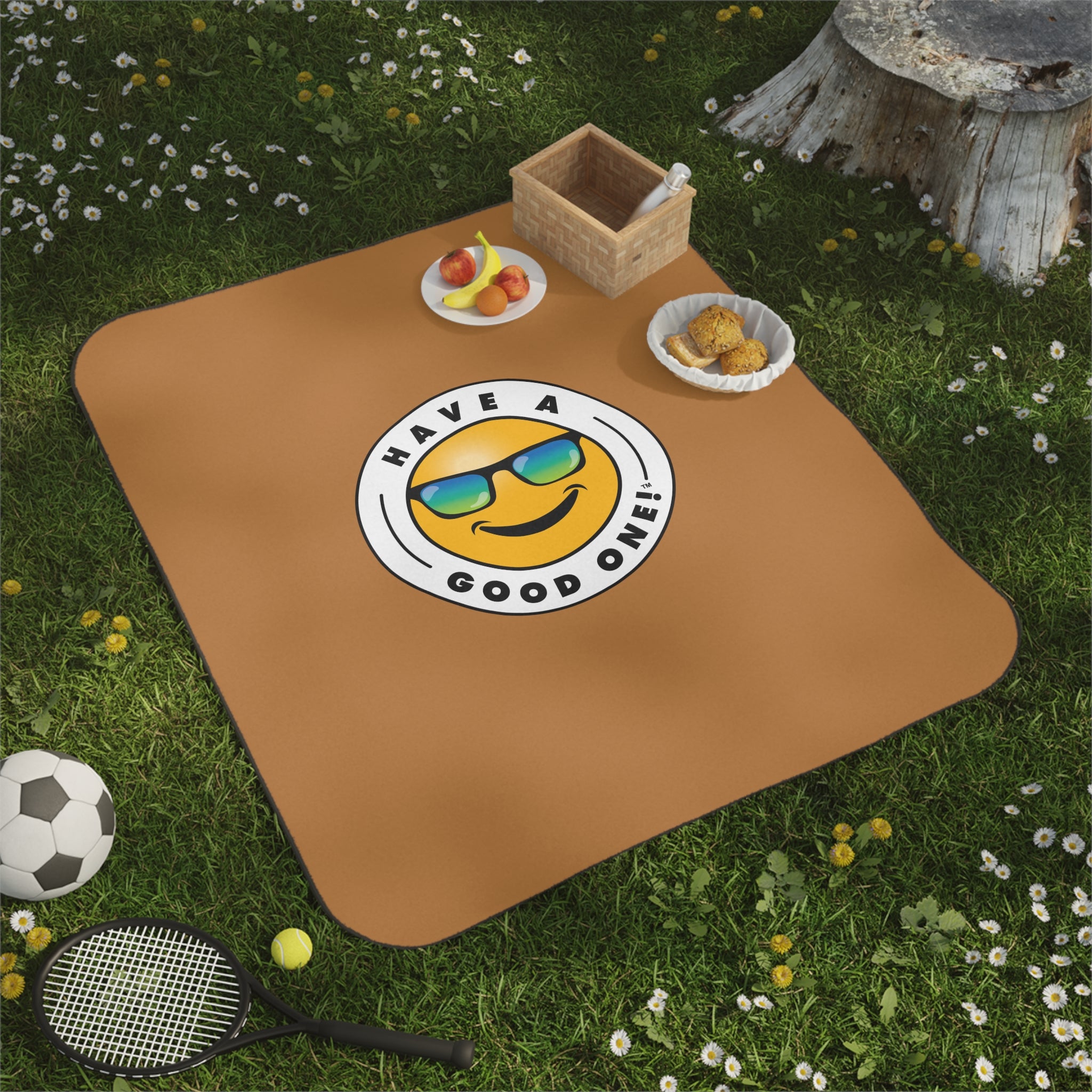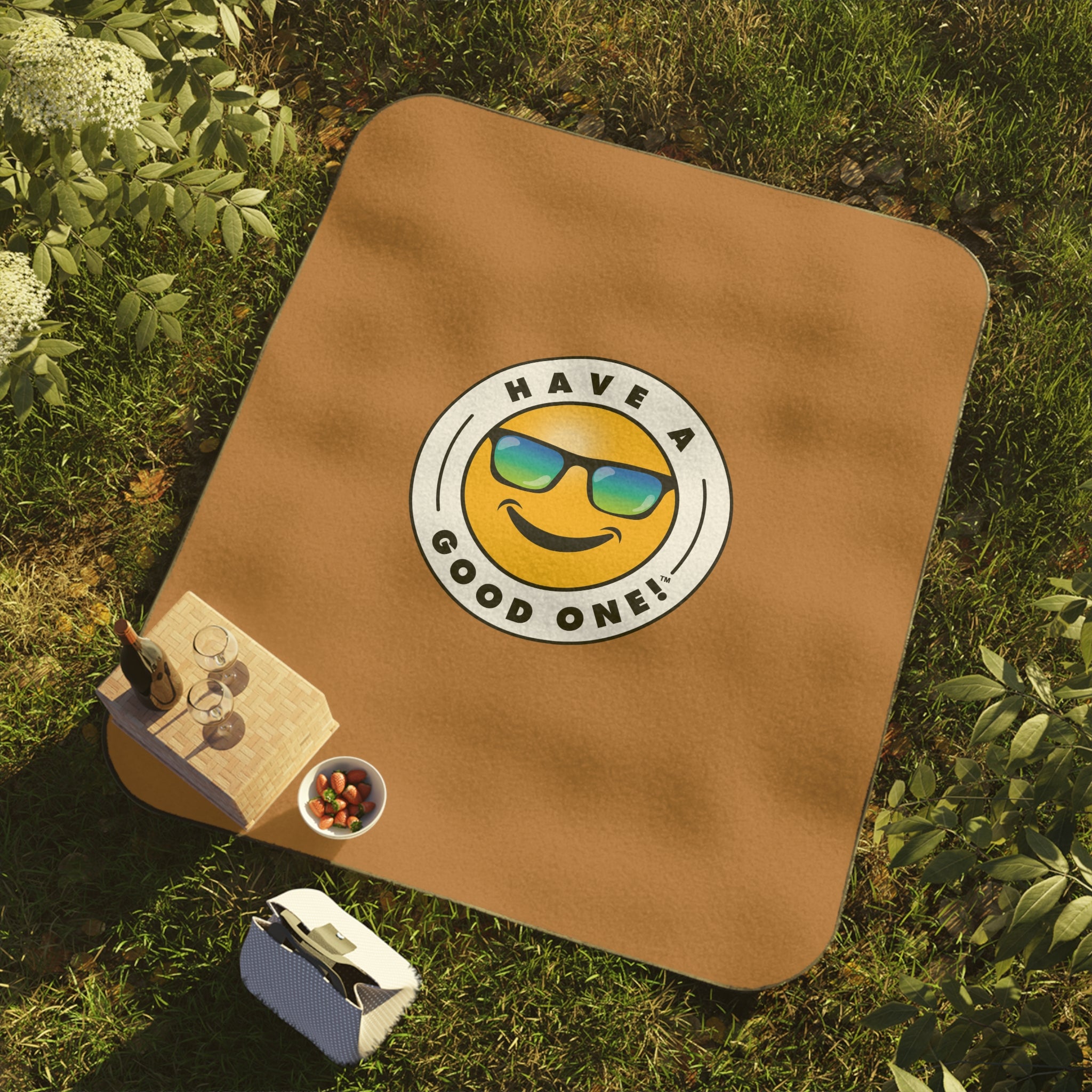 Grab N’ Go Picnic Blanket – Light Brown Color With Blue Green Have A Good One! Logo