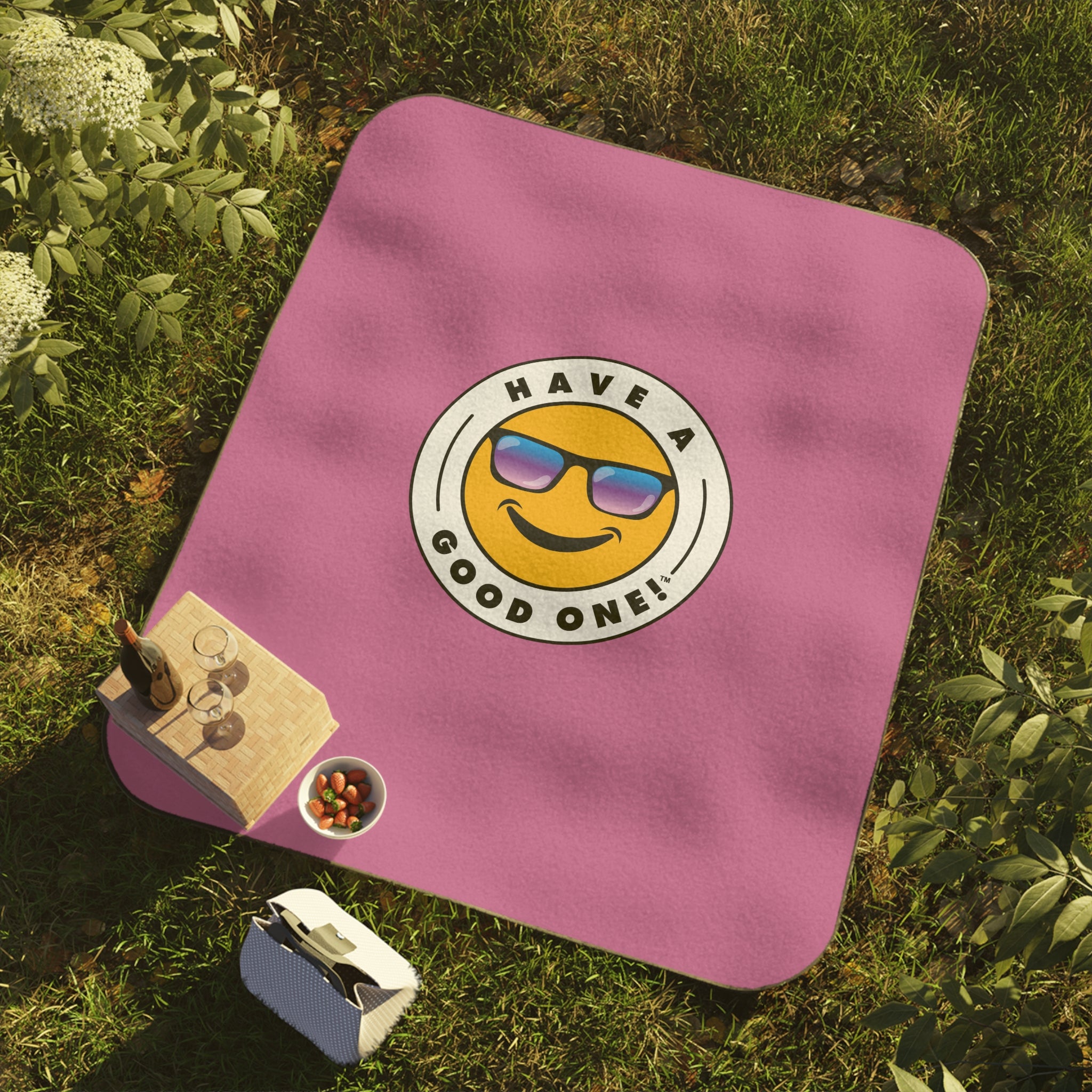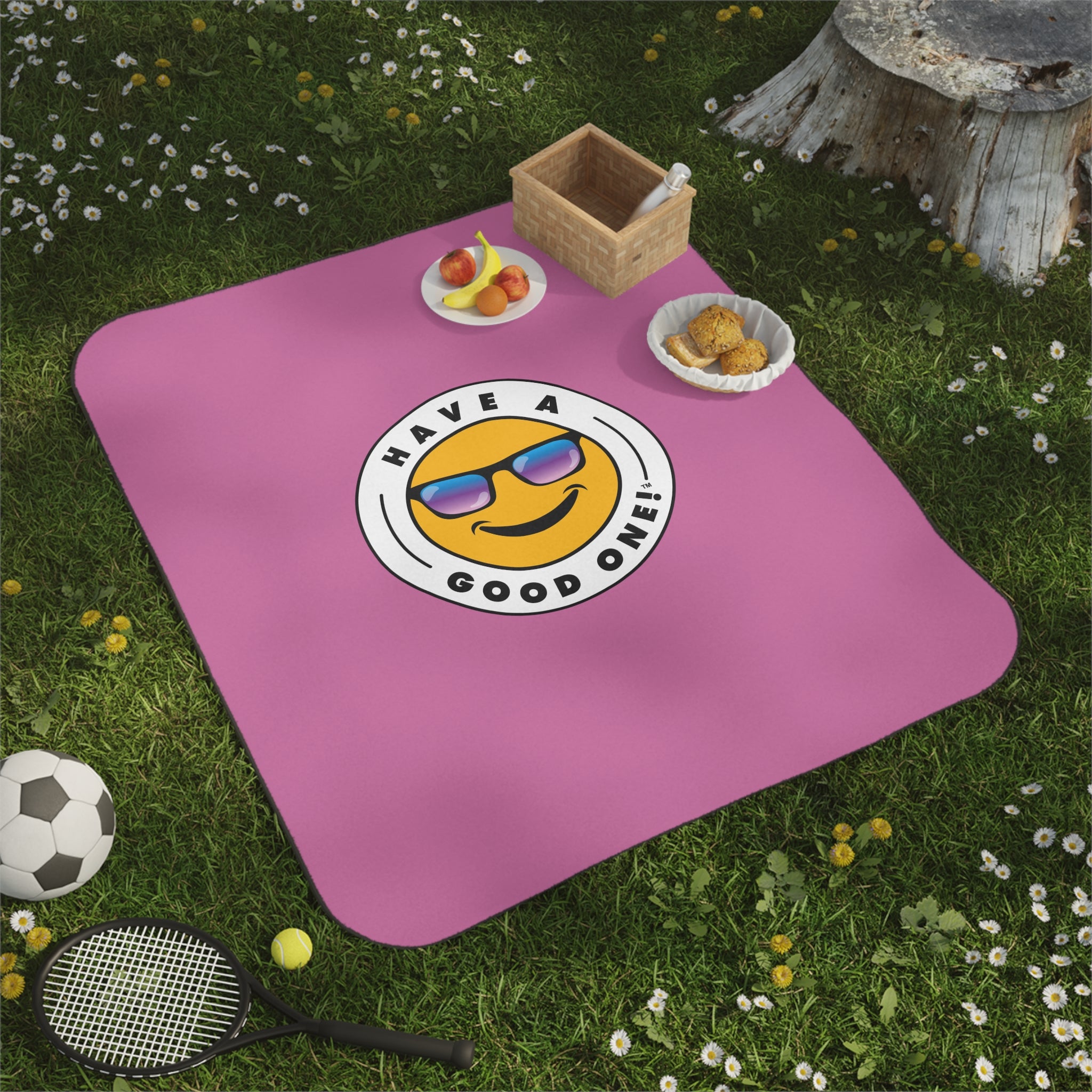 Grab N’ Go Picnic Blanket – Light Pink Color With Blue Purple Have A Good One! Logo