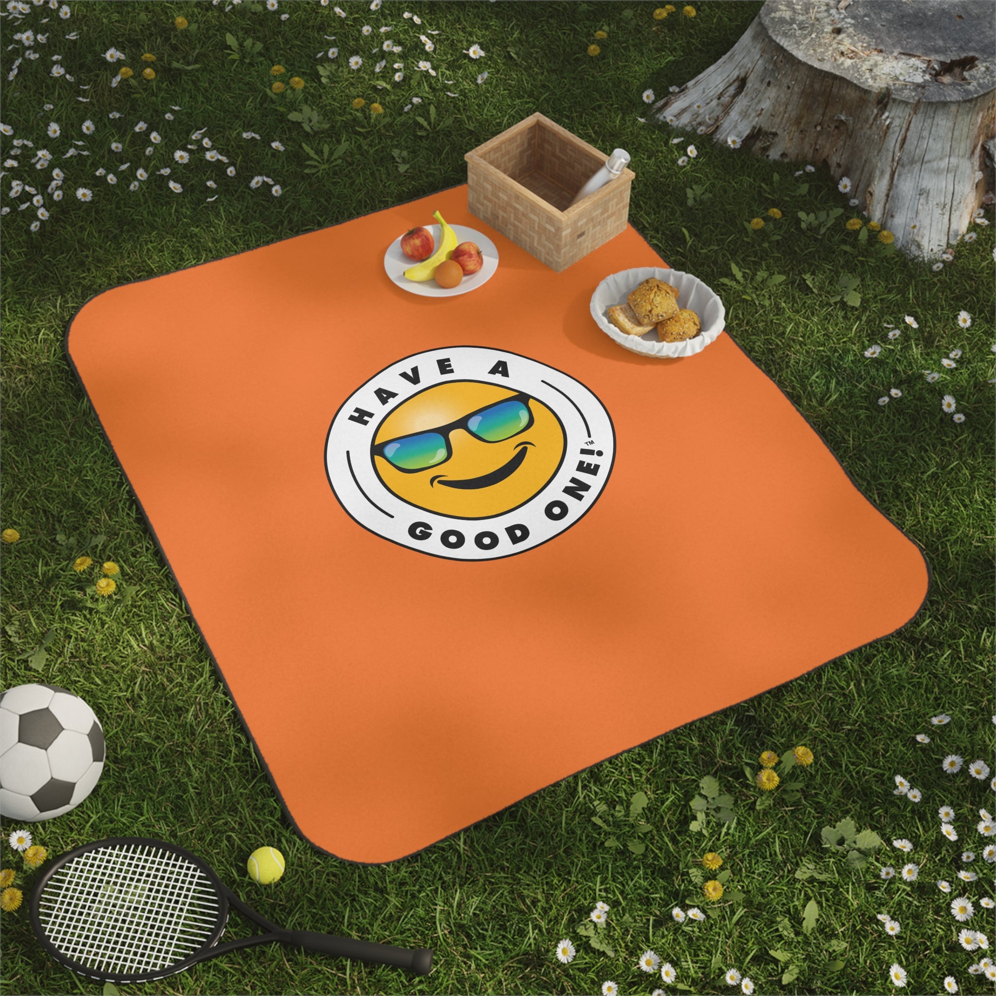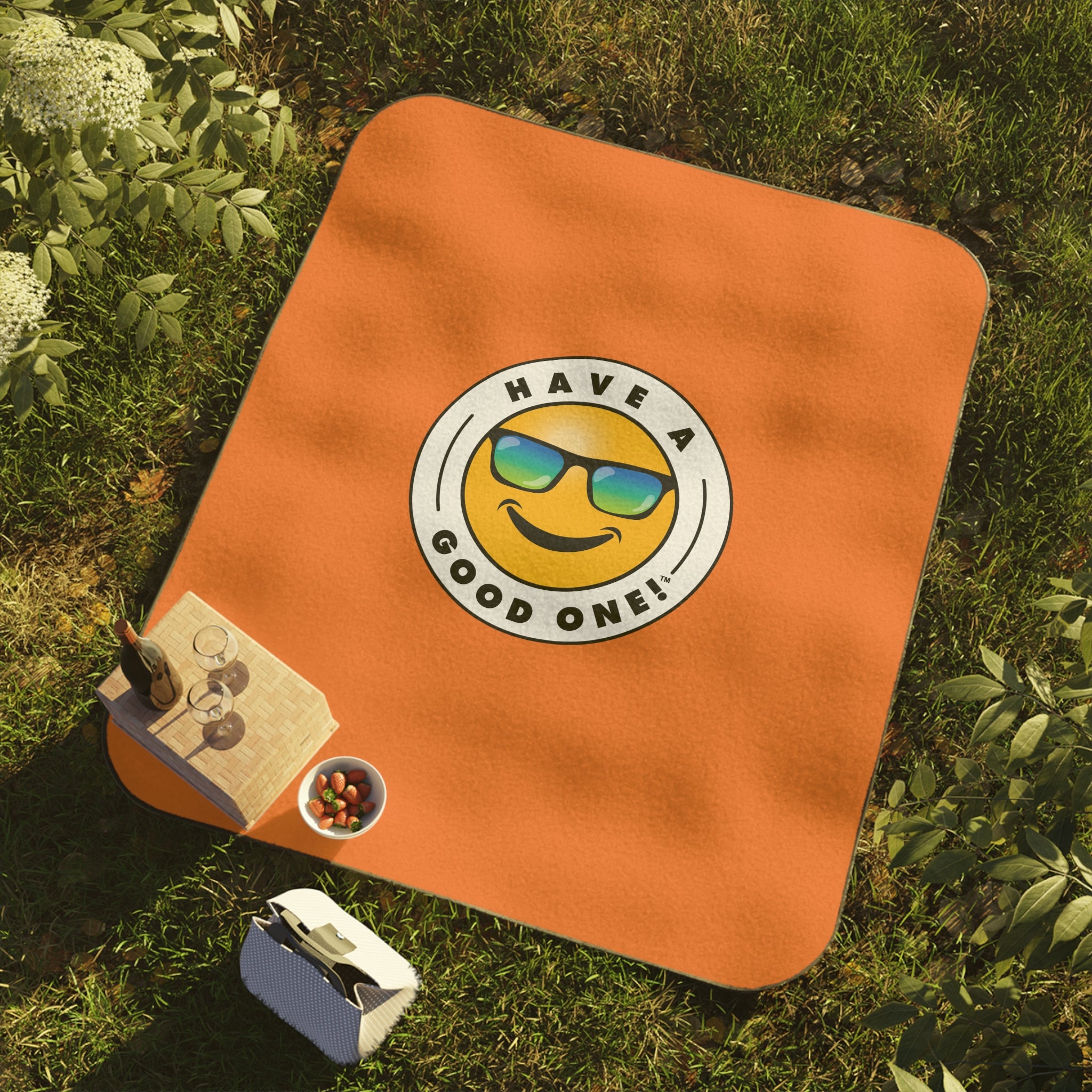 Grab N’ Go Picnic Blanket – Orange Color With Blue Green Have A Good One! Logo