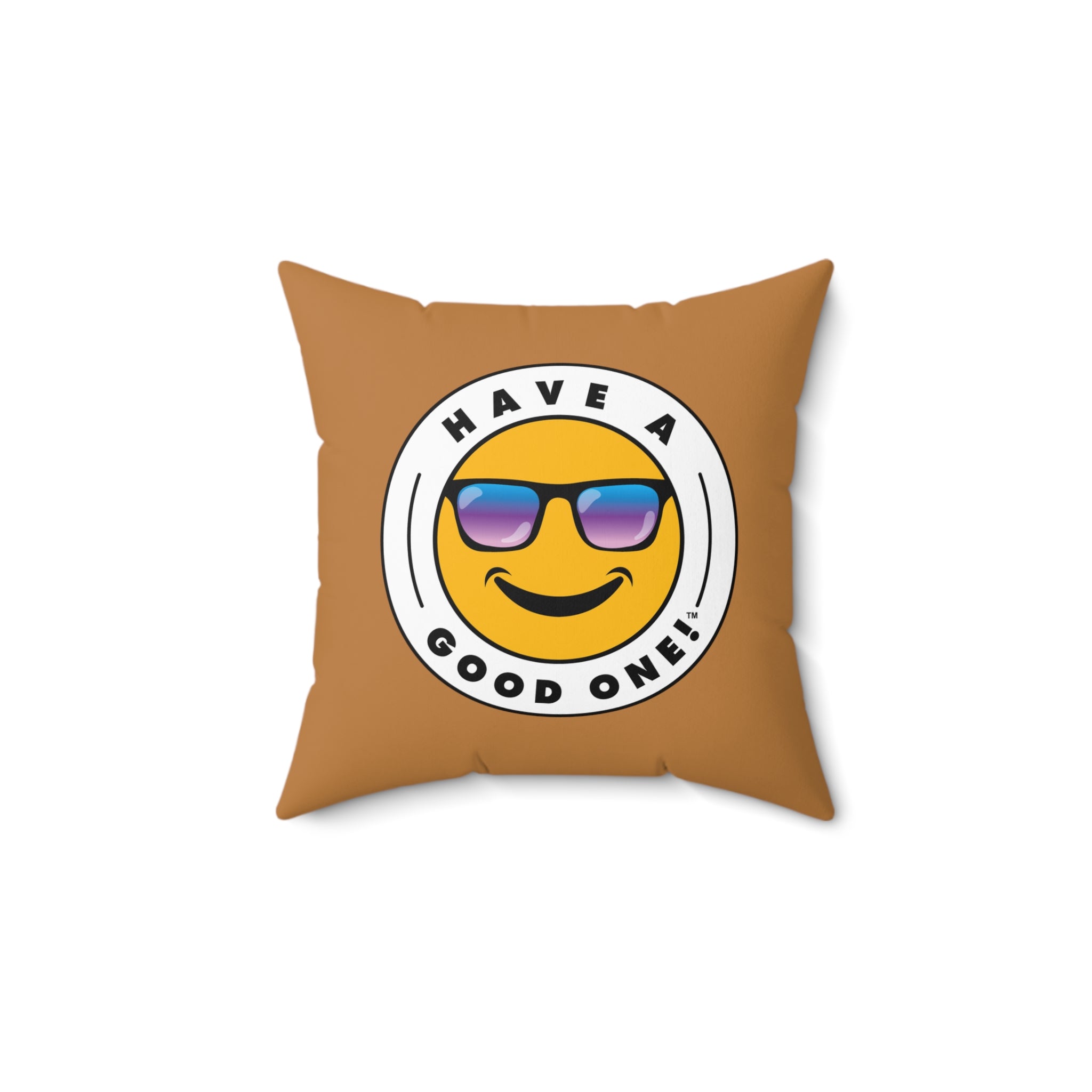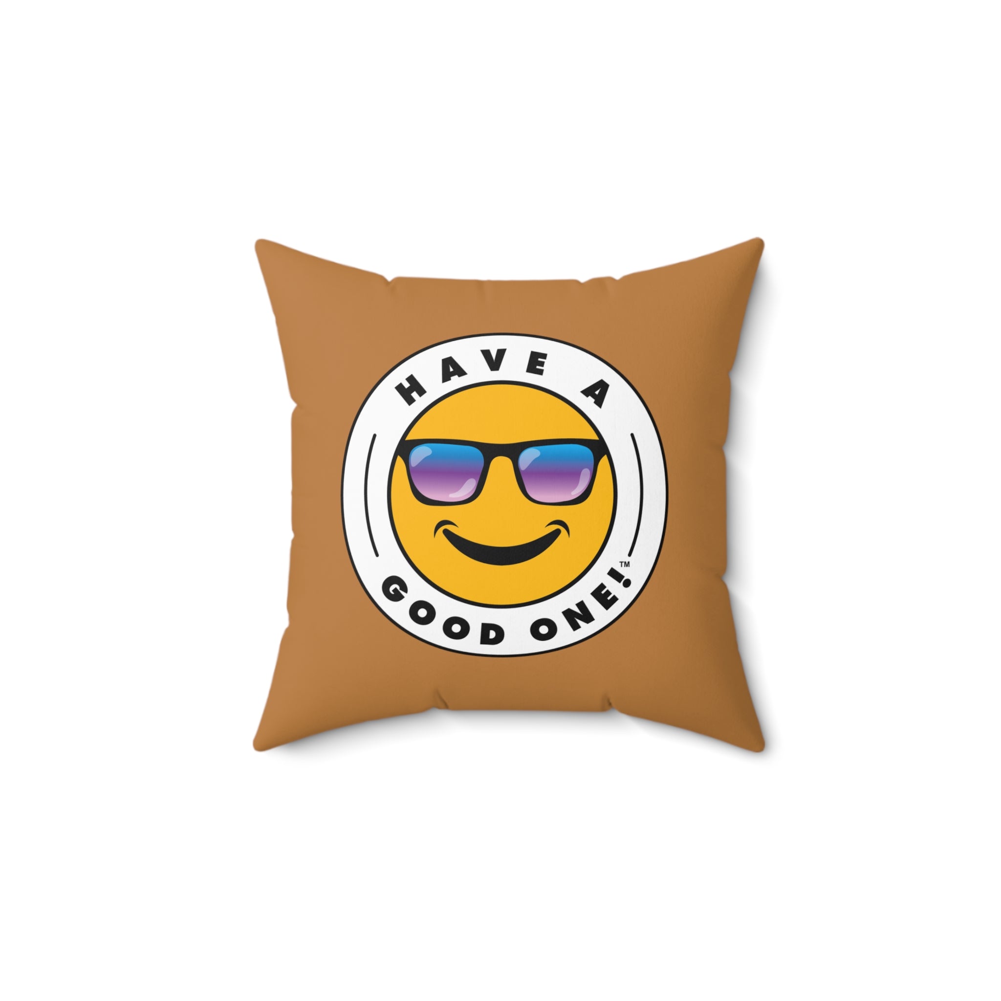 Square Home Accent Pillow - Light Brown Color With Blue and Purple Have A Good One Logo!