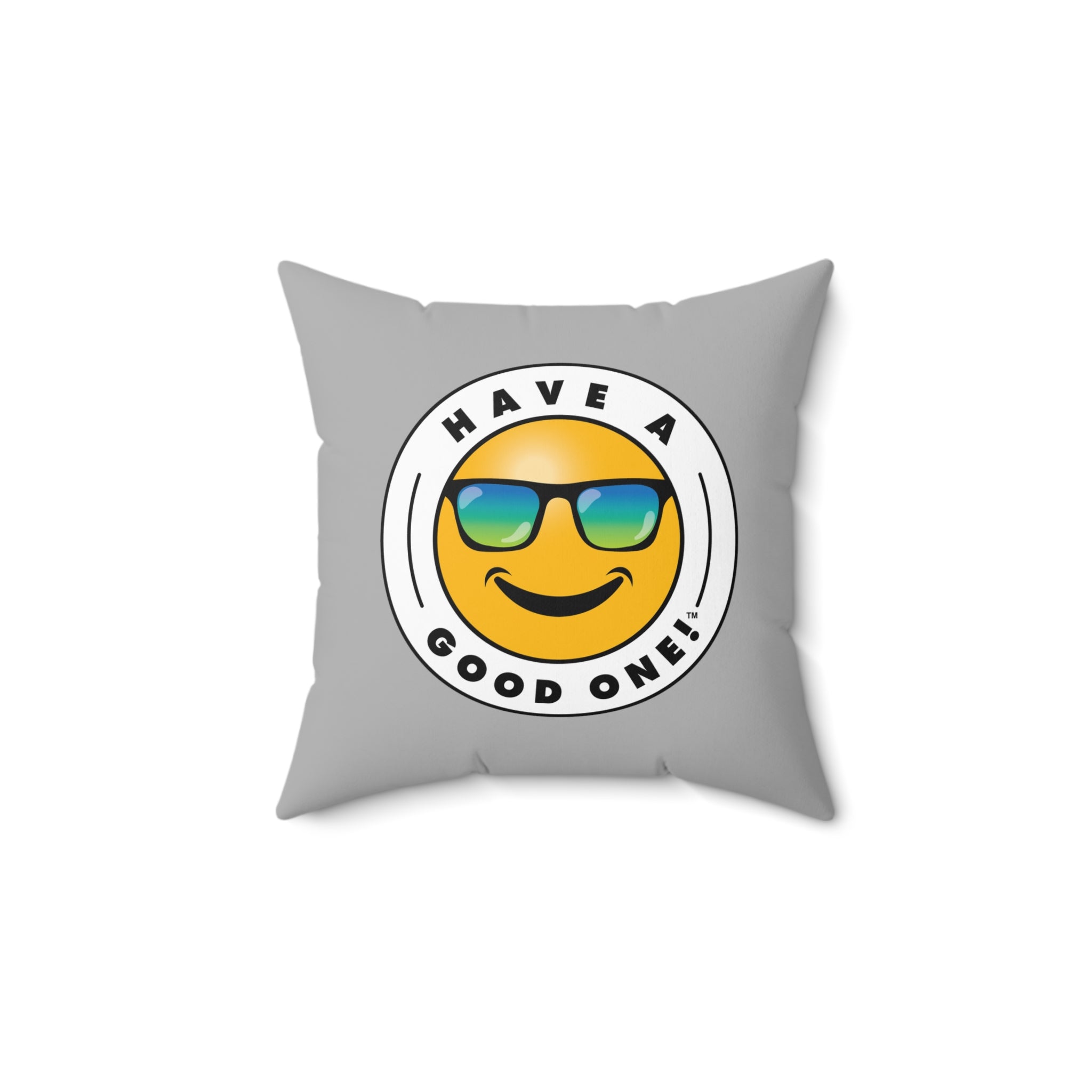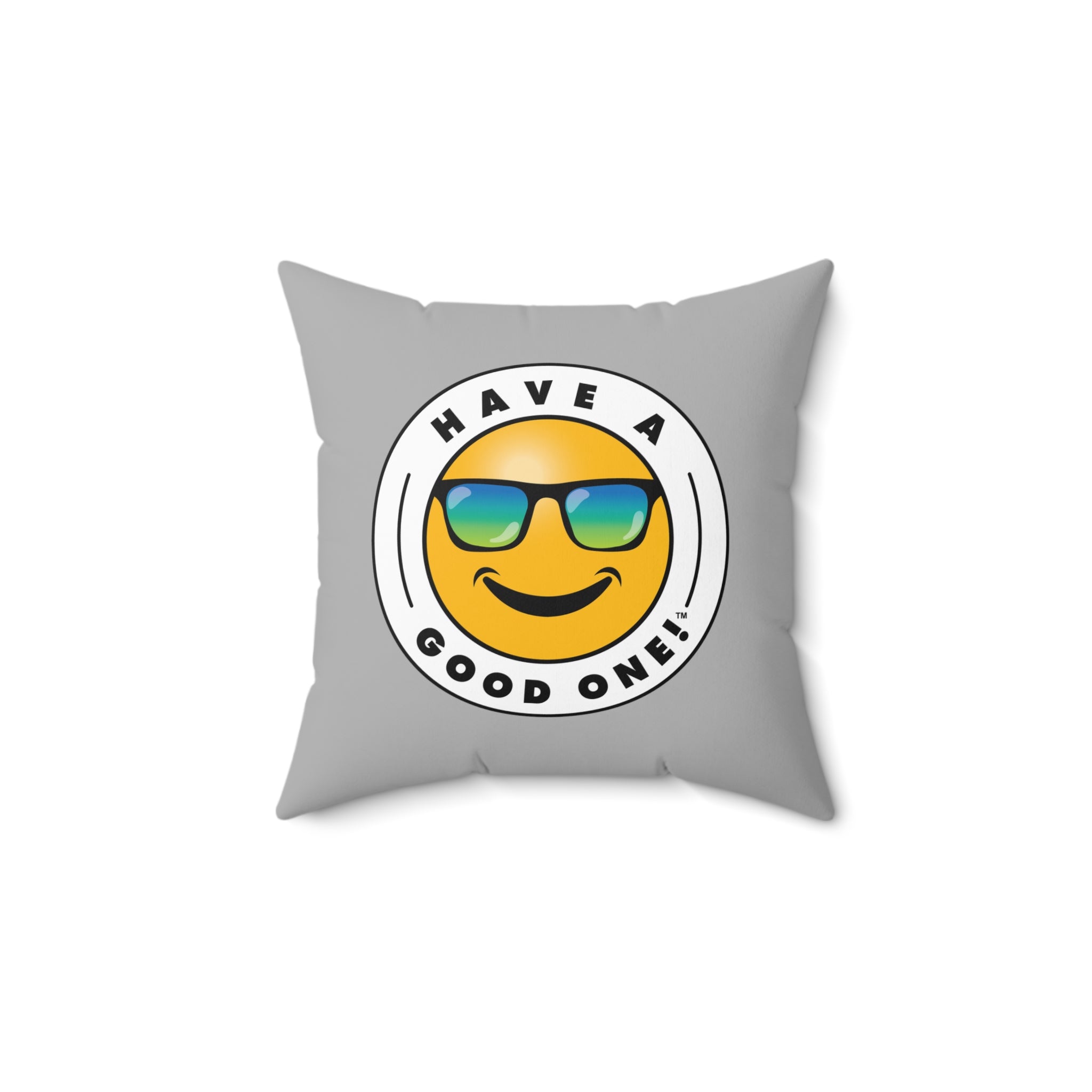 Square Pillow - Light Grey Color With Blue and Green Have A Good One! Logo