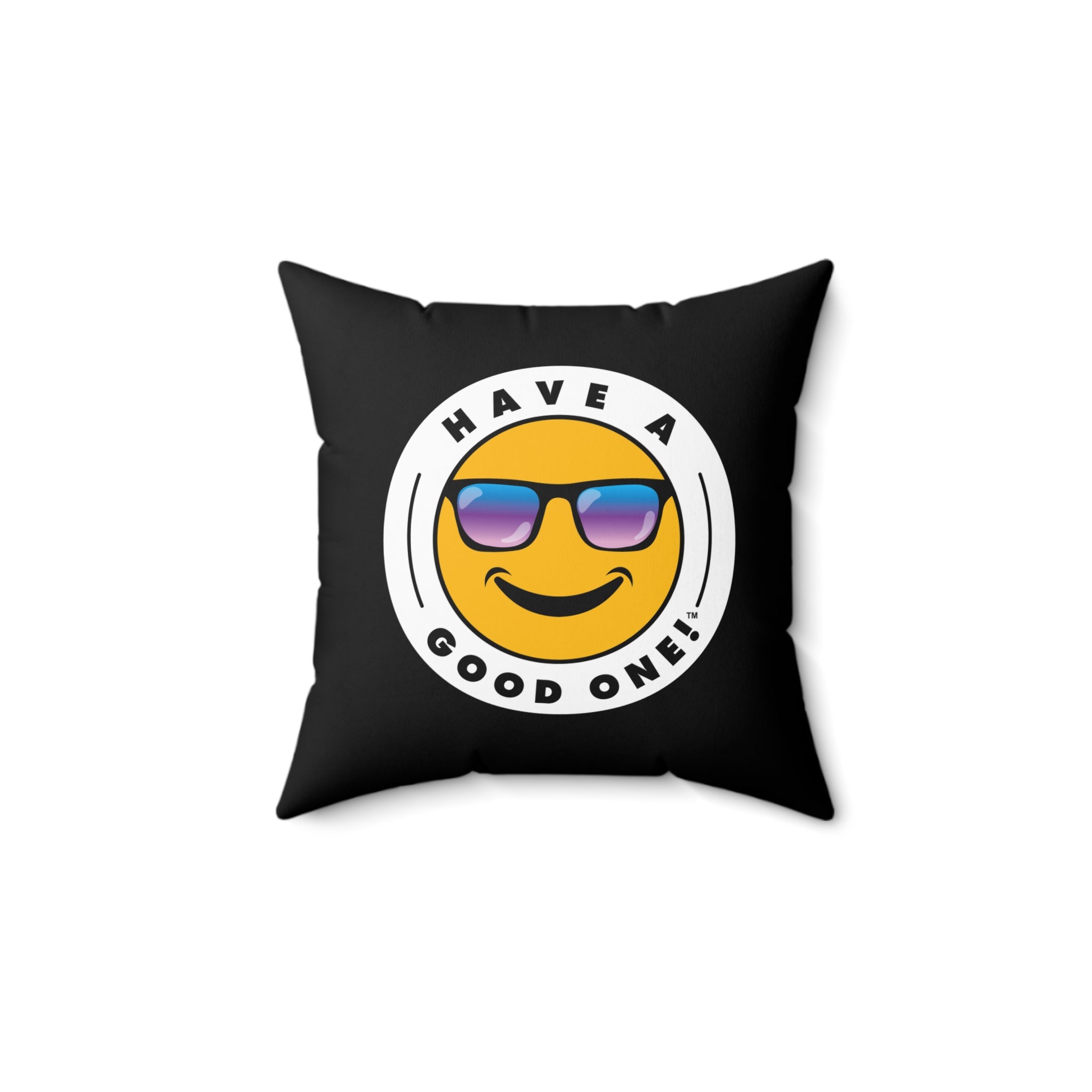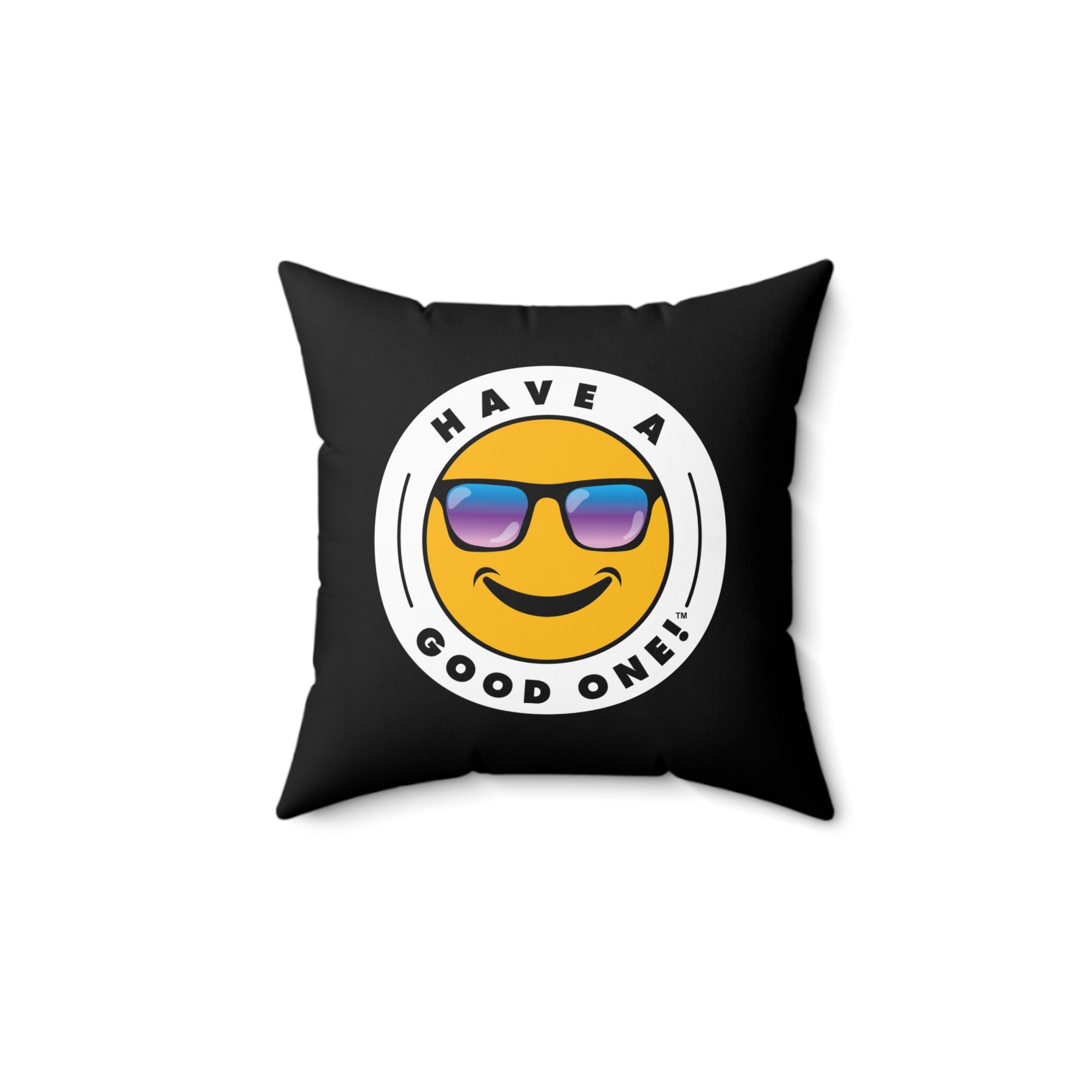Square Pillow - Black Color With Blue and Purple Have A Good One! Logo