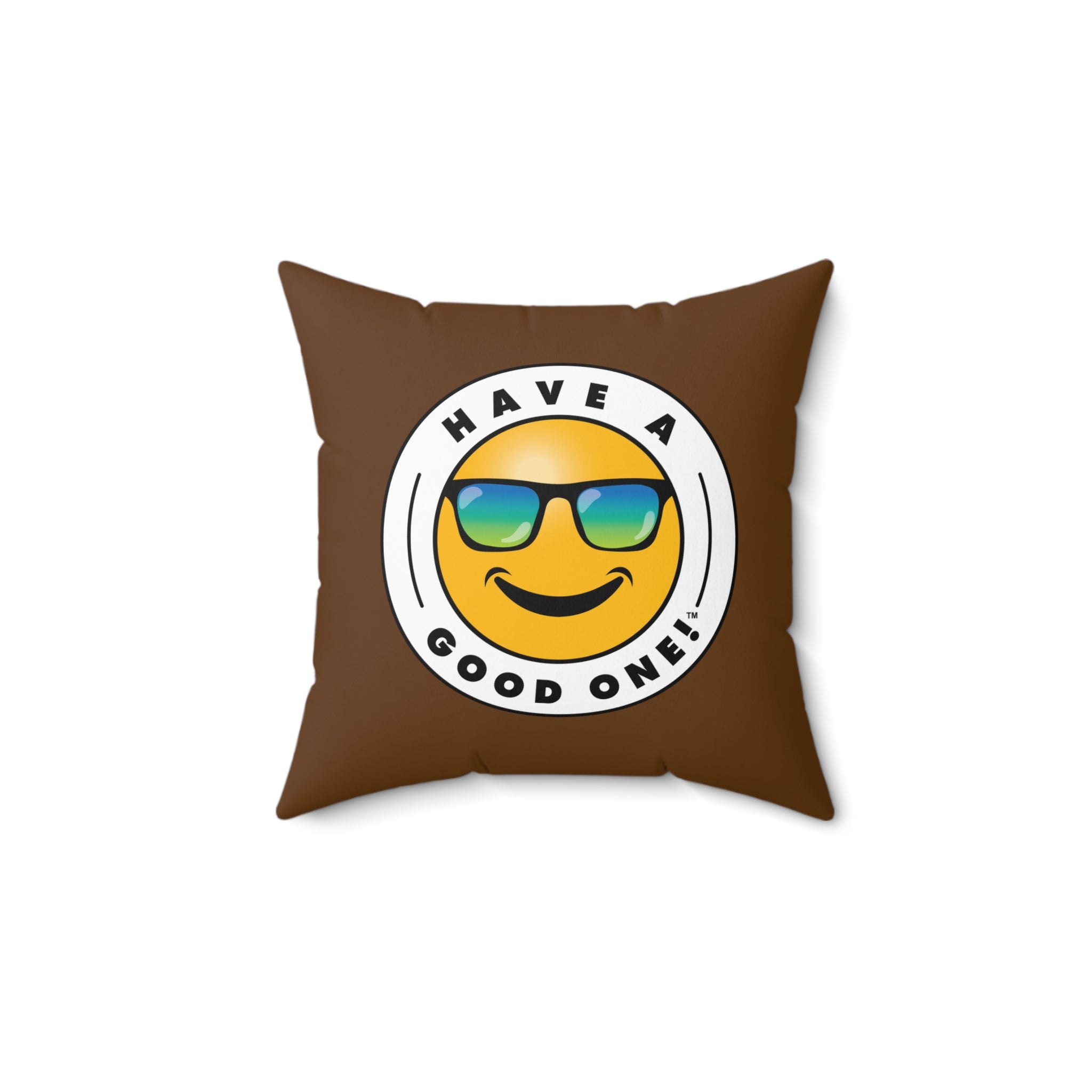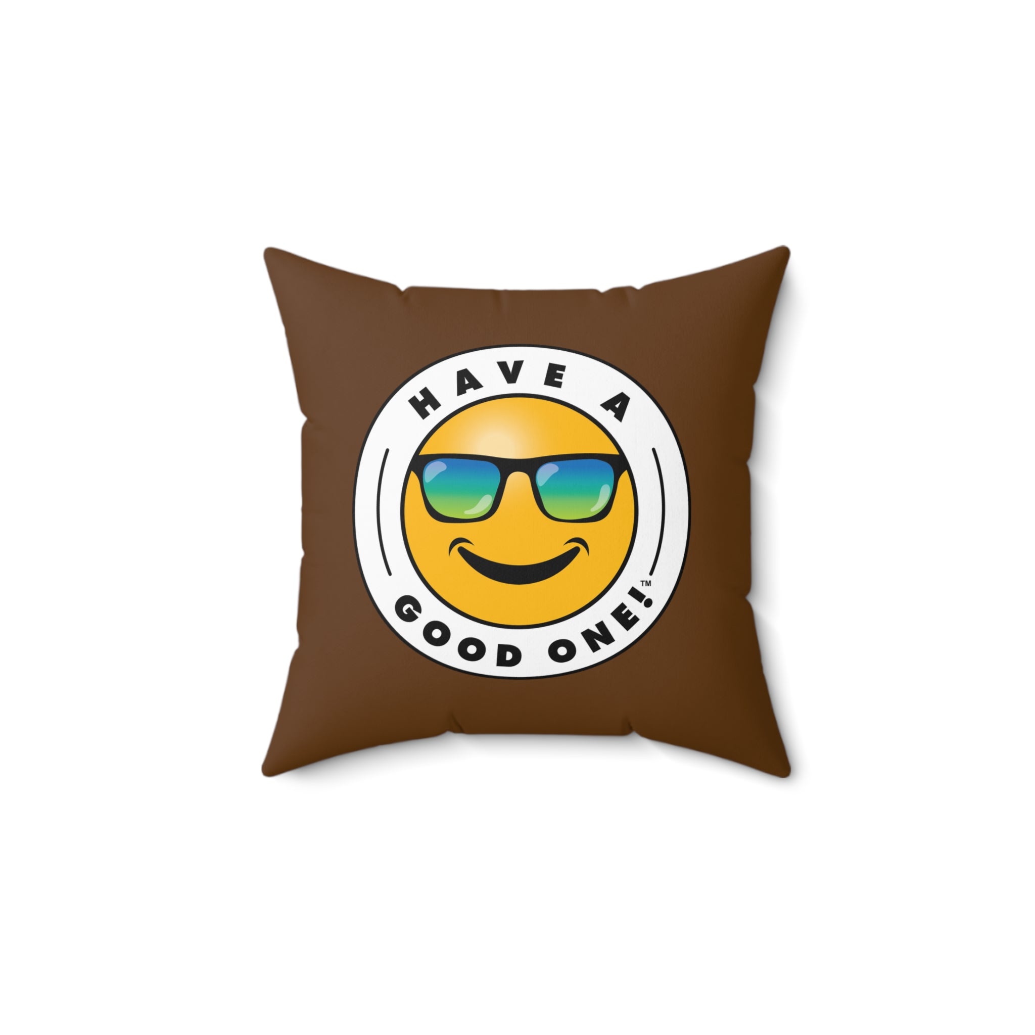 Square Pillow - Brown Color With Blue and Green Have A Good One! Logo