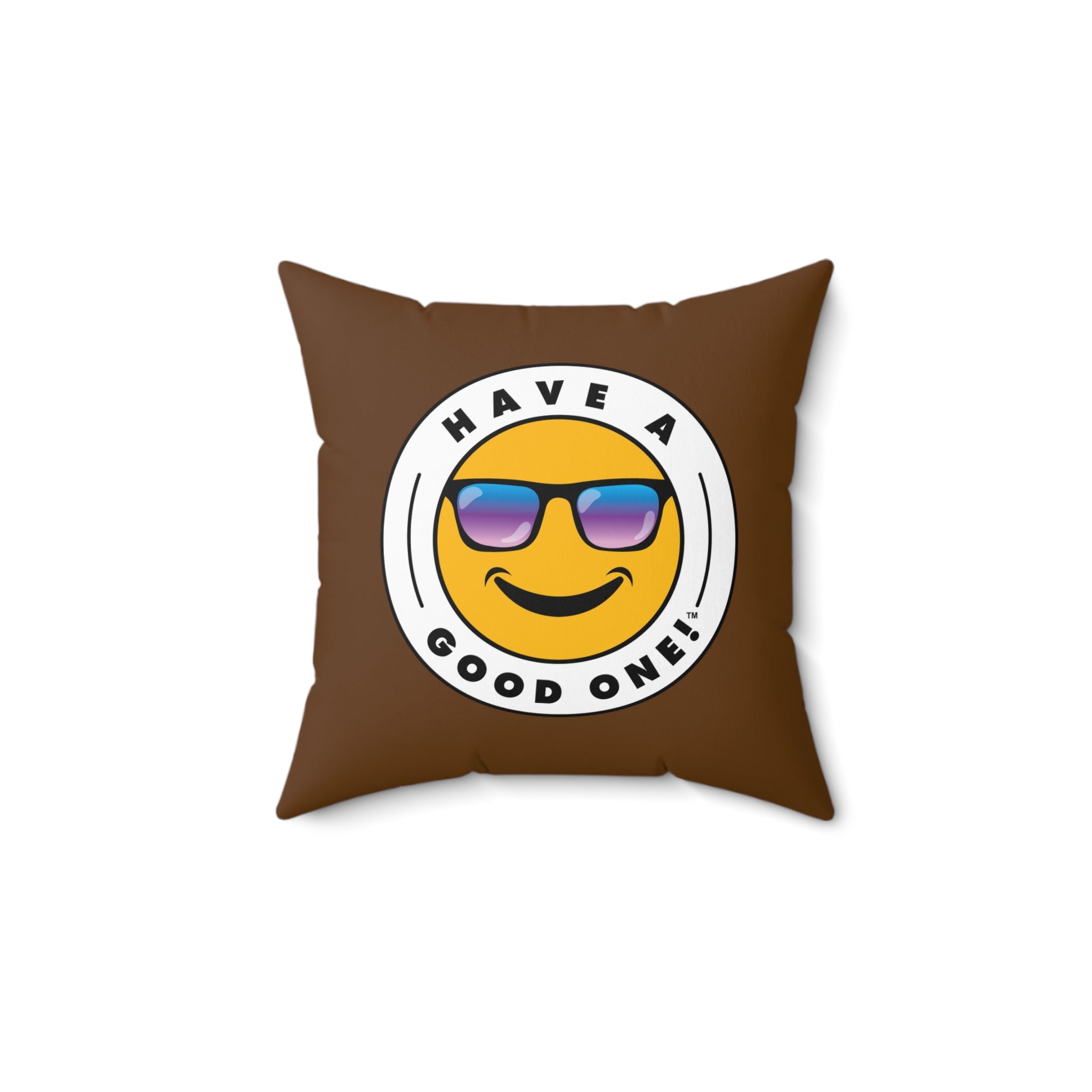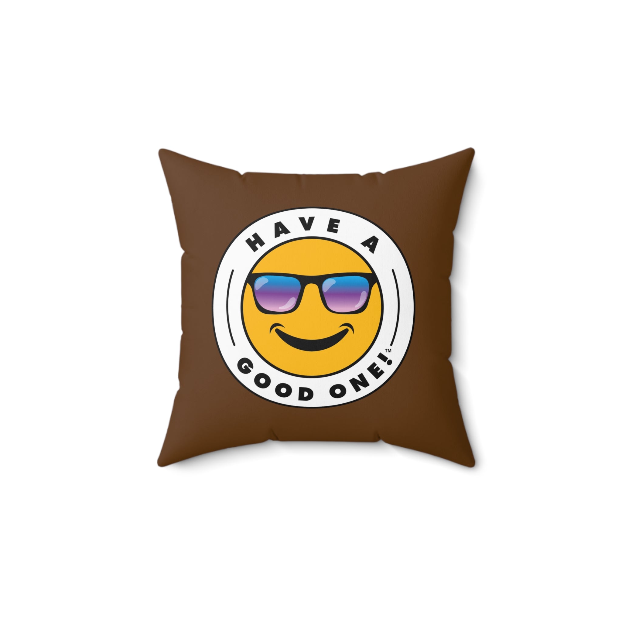 Square Pillow - Brown Color With Blue and Purple Have A Good One! Logo