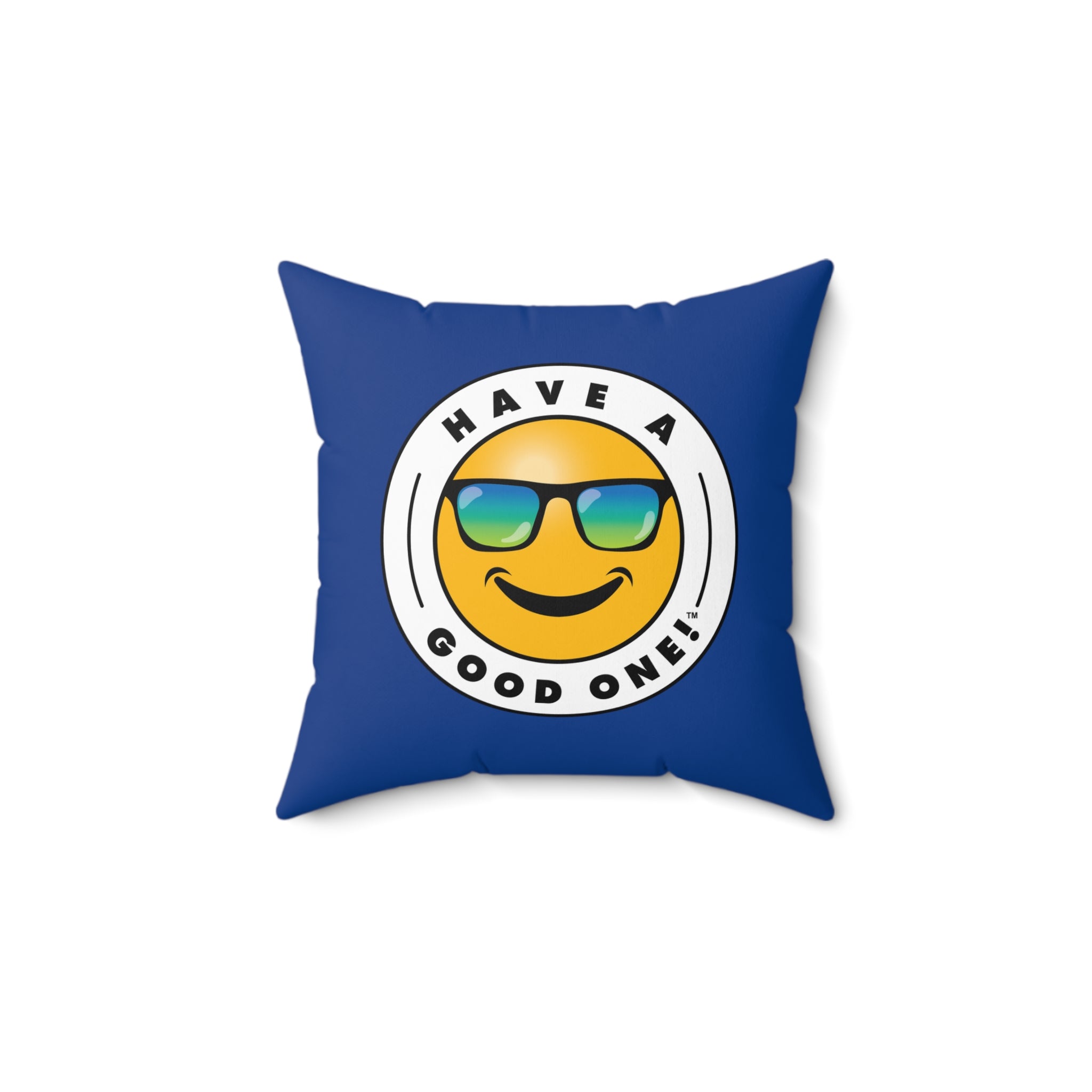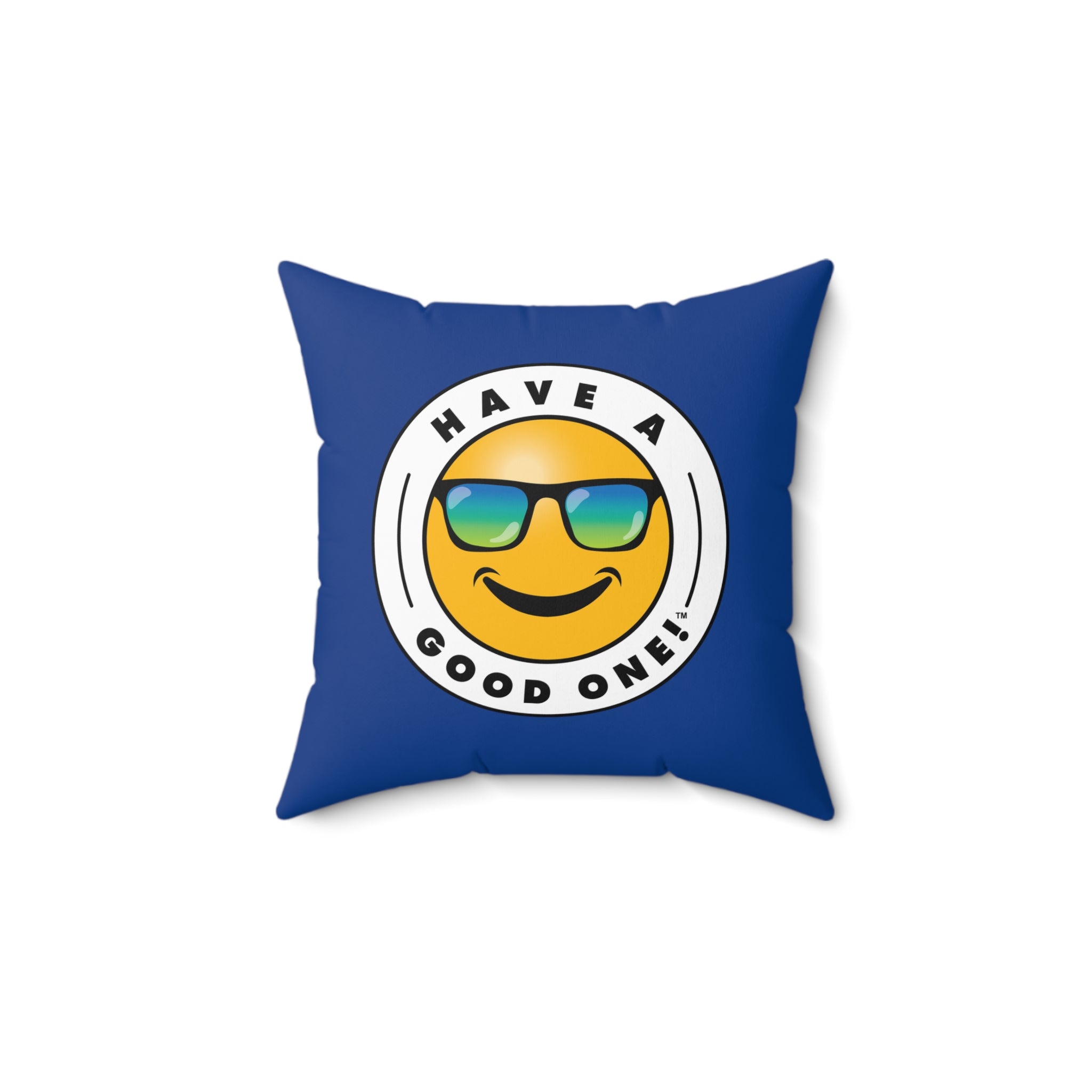 Square Pillow - Dark Blue Color With Blue and Green Have A Good One! Logo