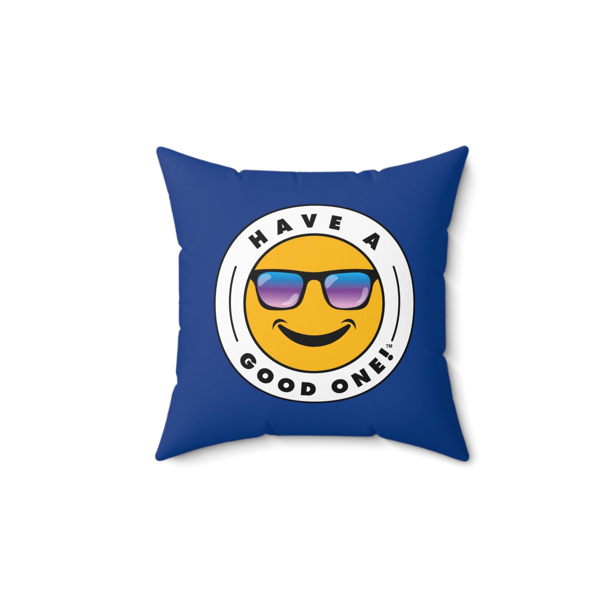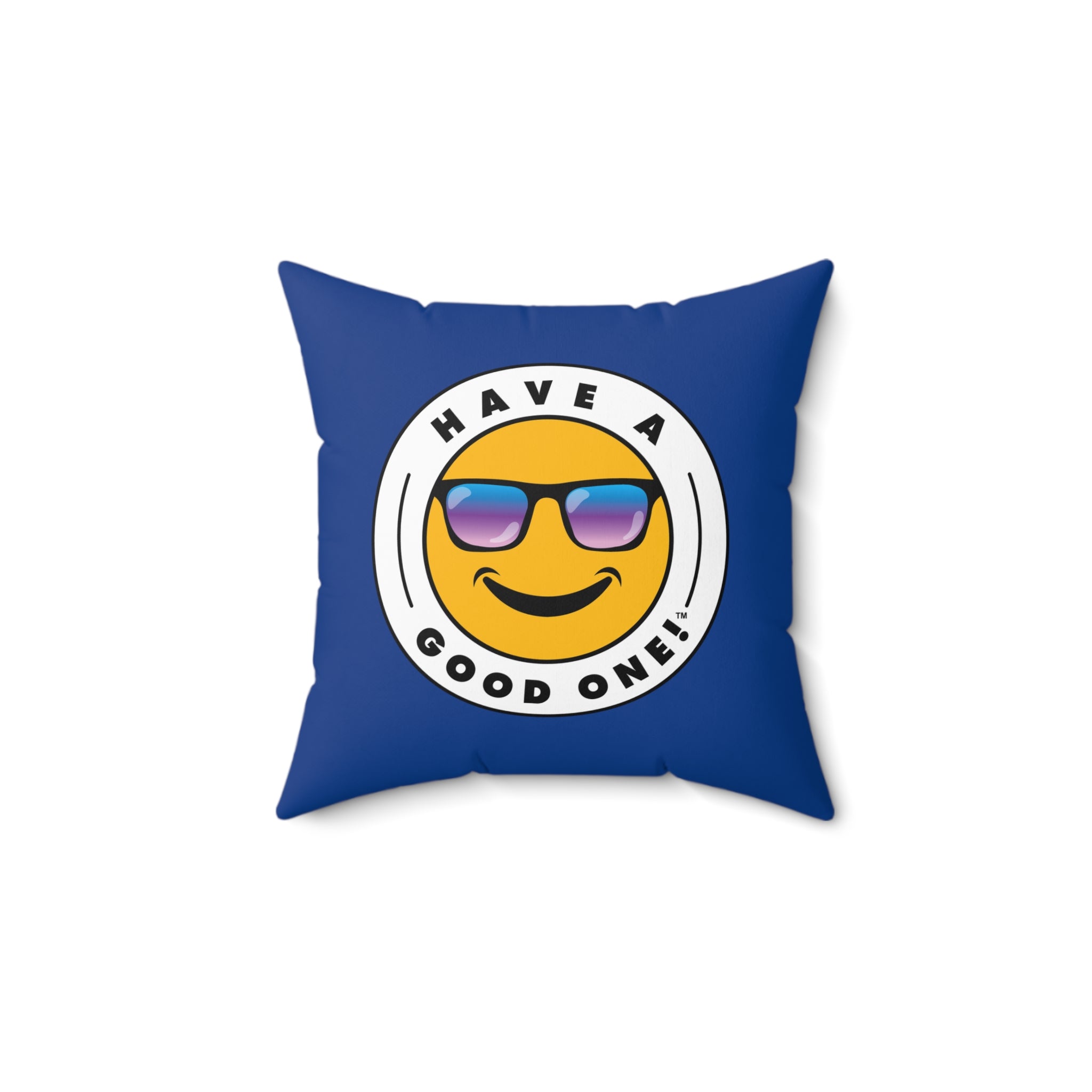 Square Pillow - Dark Blue Color With Blue and Purple Have A Good One! Logo