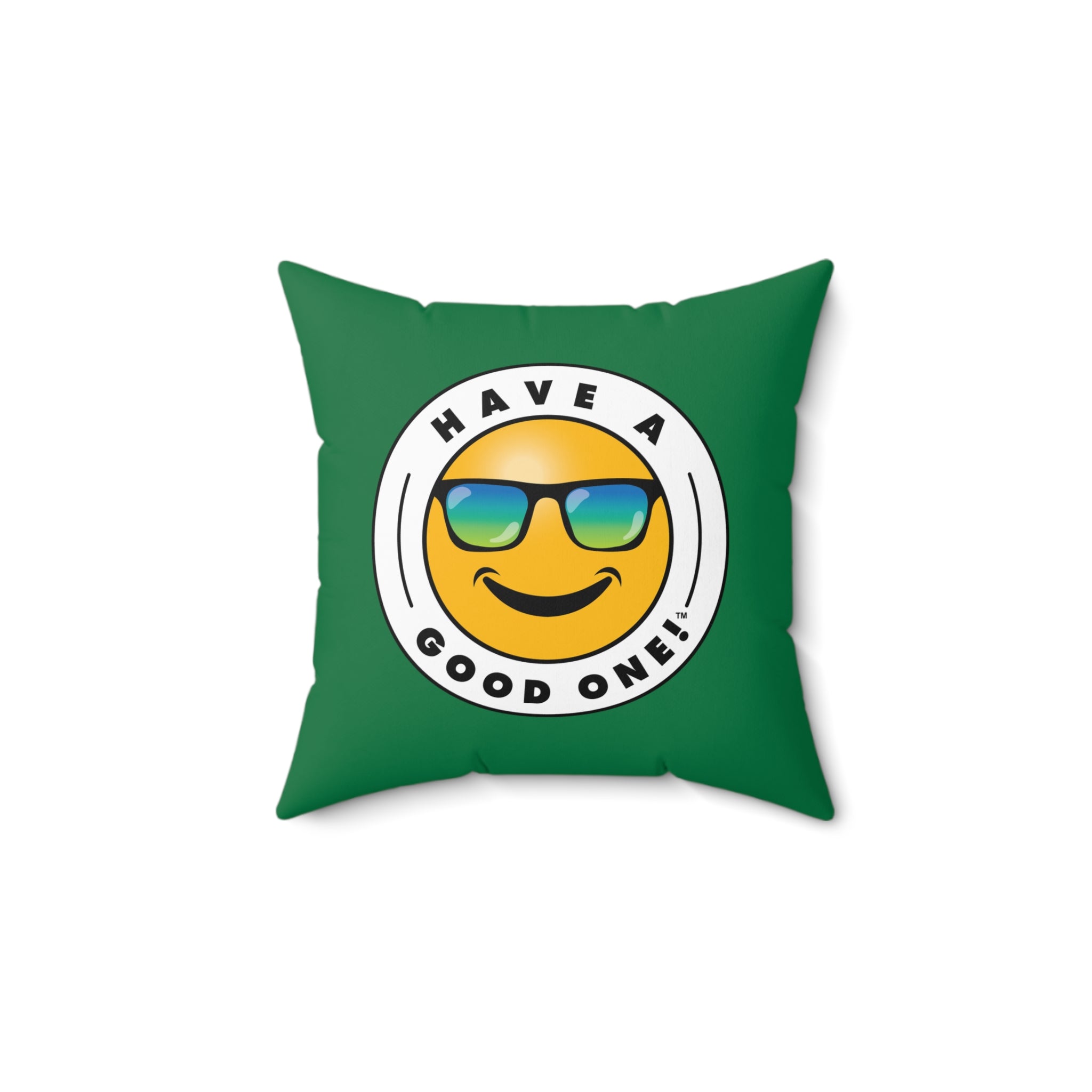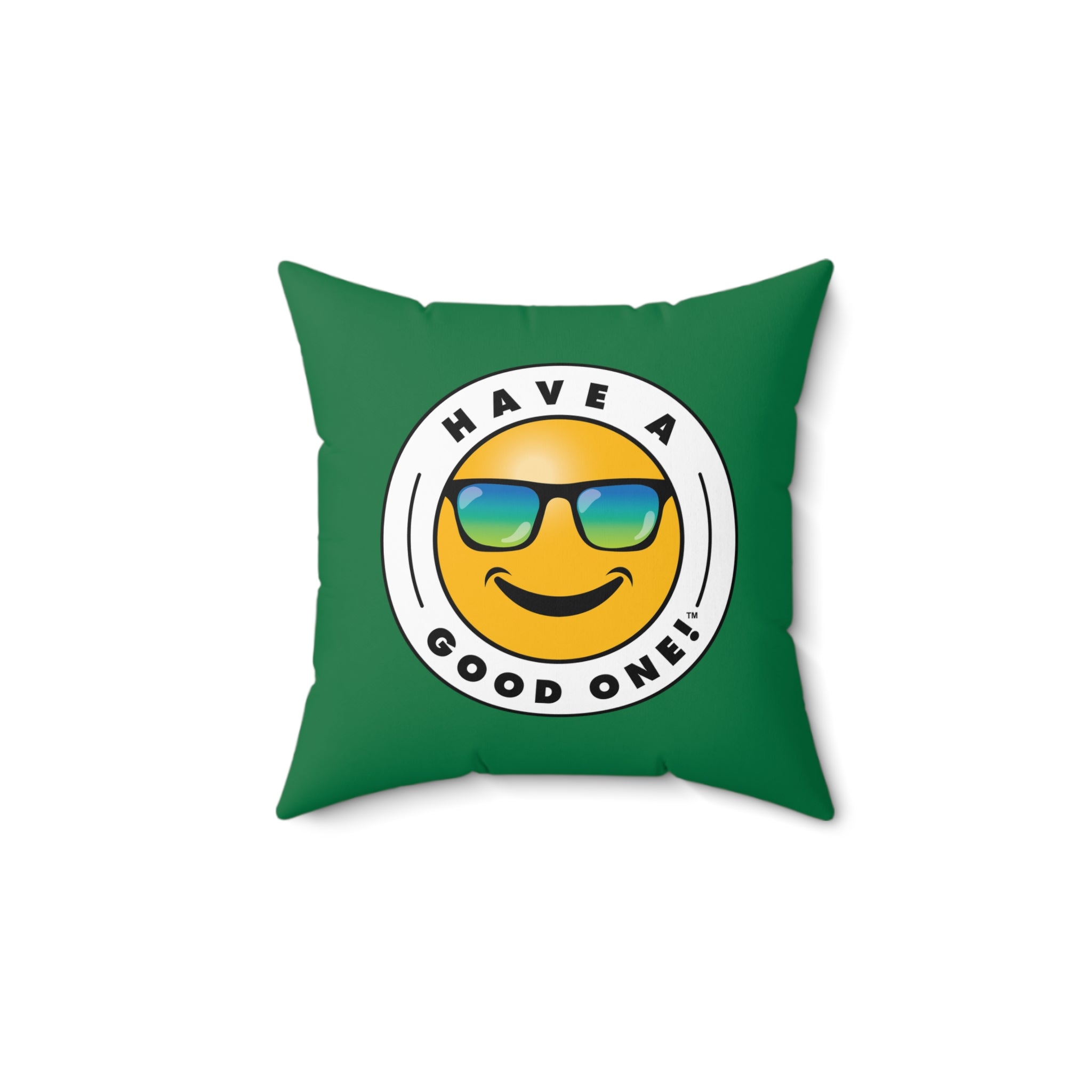 Square Pillow - Dark Green Color With Blue and Green Have A Good One! Logo