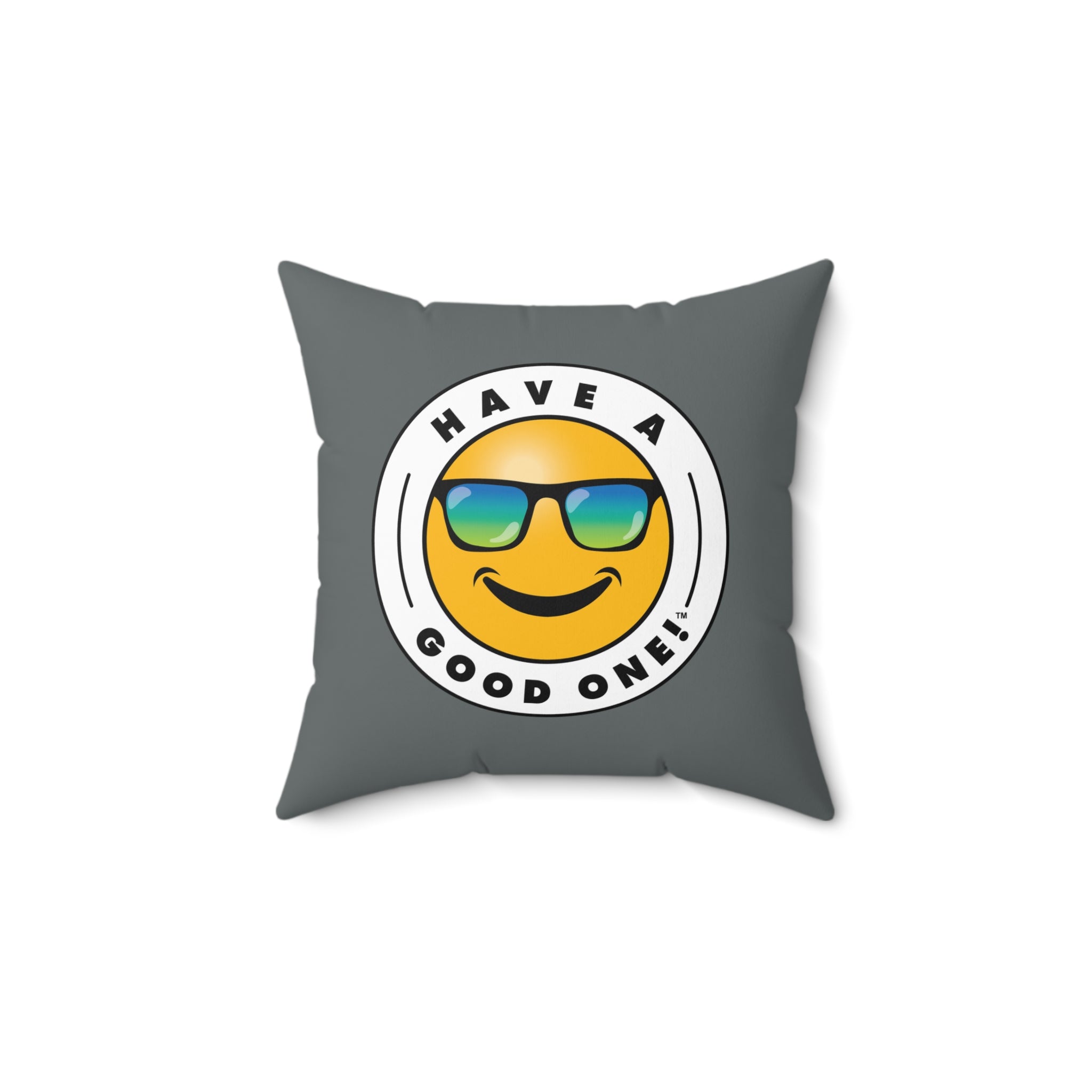 Square Pillow - Dark Grey Color With Blue and Green Have A Good One! Logo