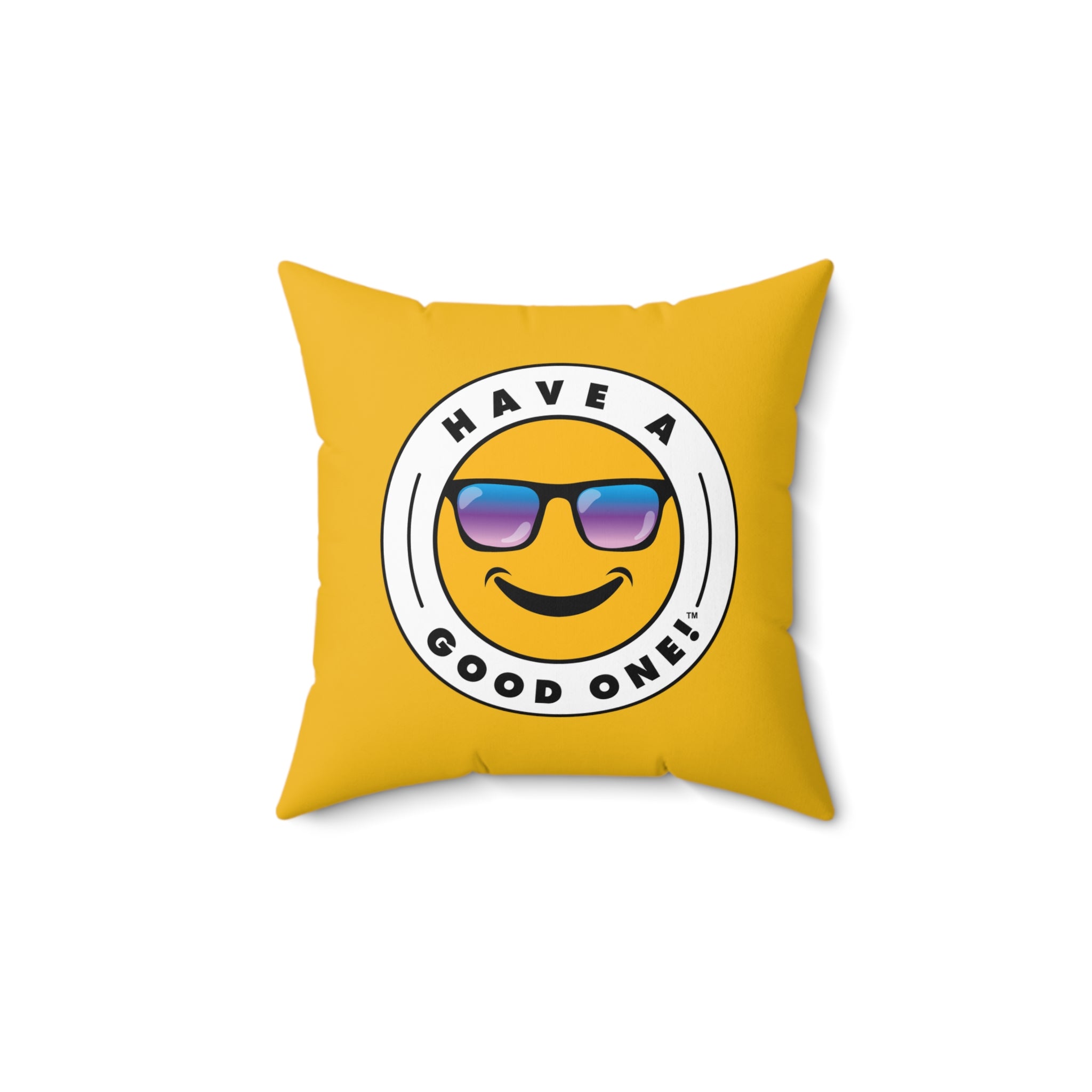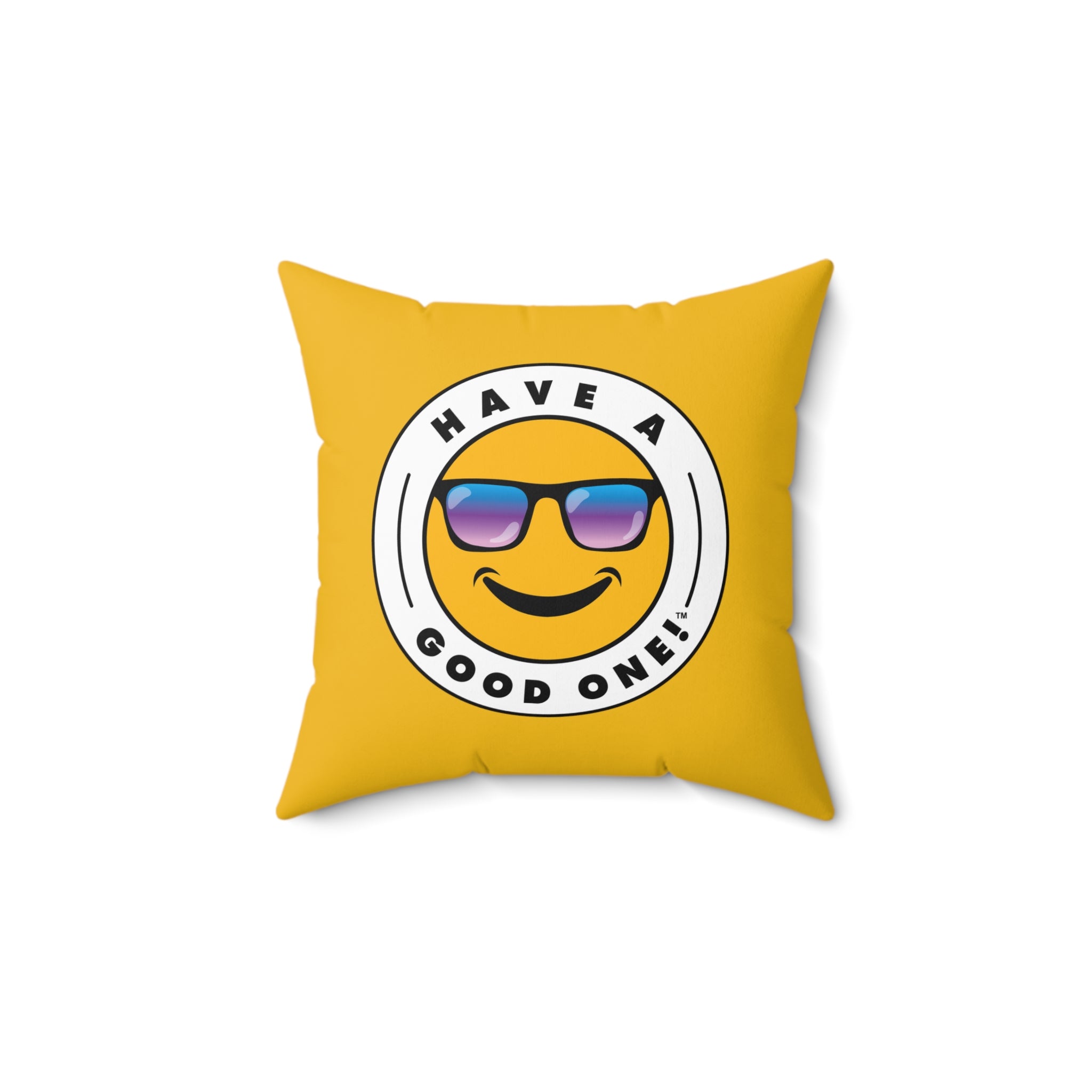 Square Pillow - Yellow Color With Blue and Purple Have A Good One! Logo