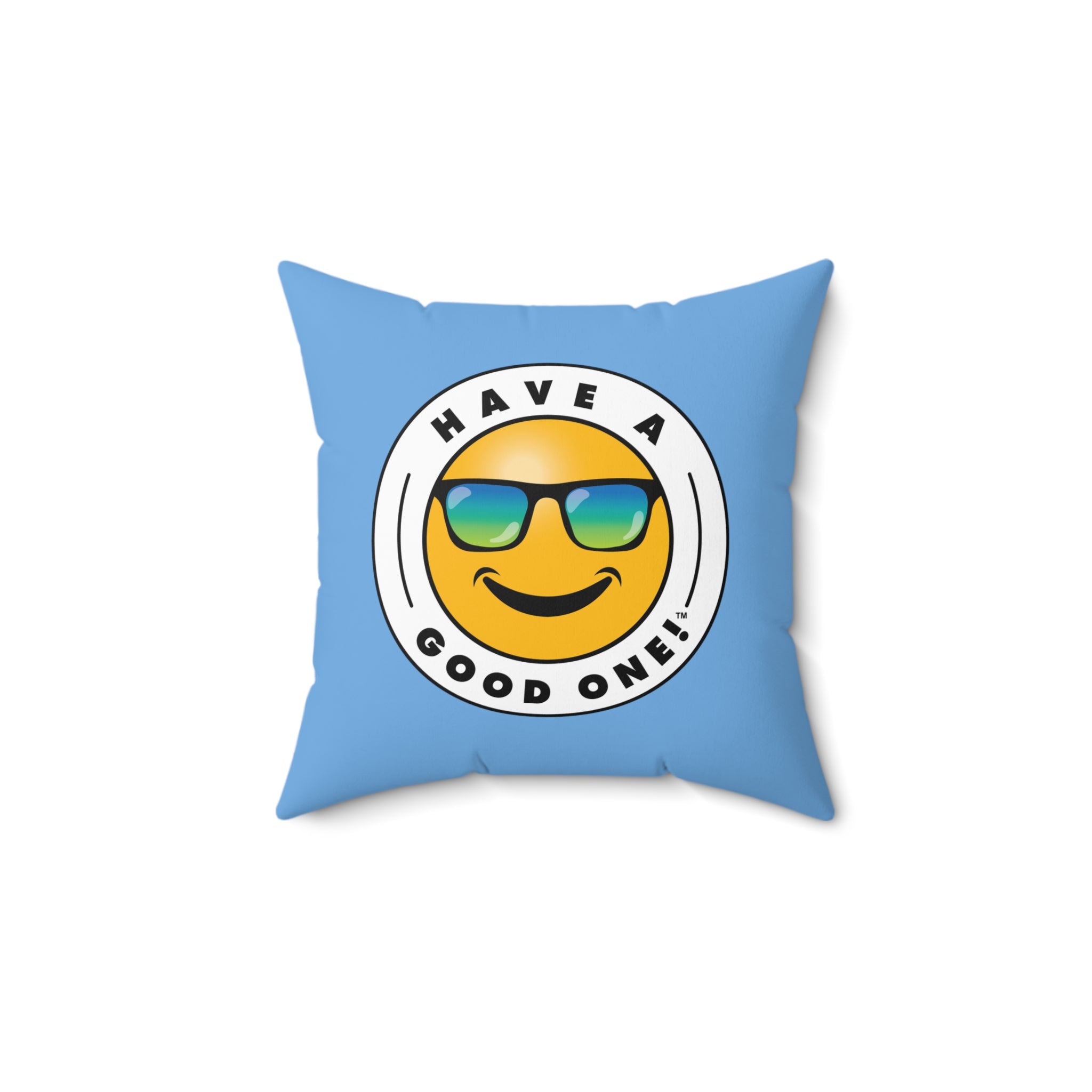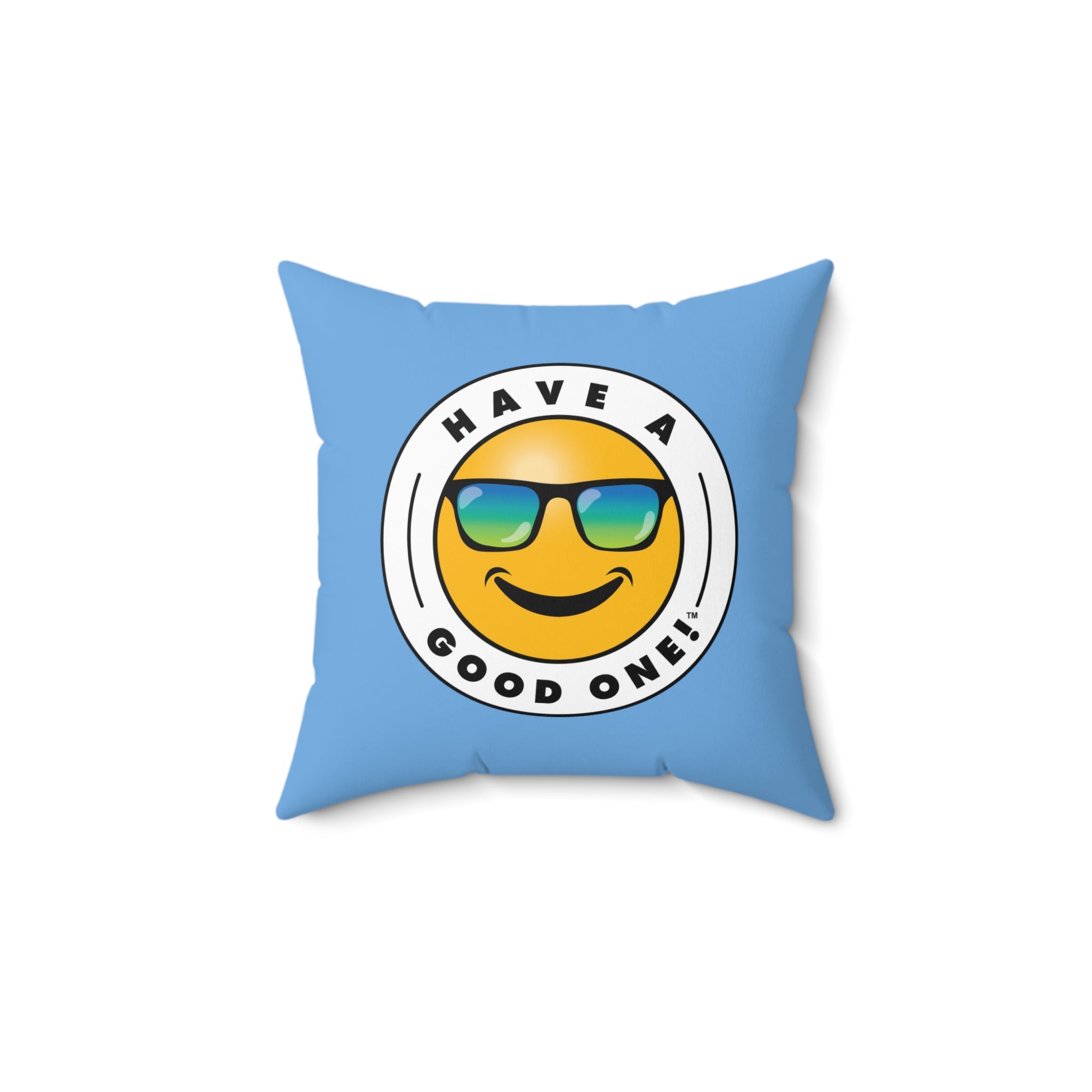 Square Pillow - Light Blue Color With Blue and Green Have A Good One! Logo