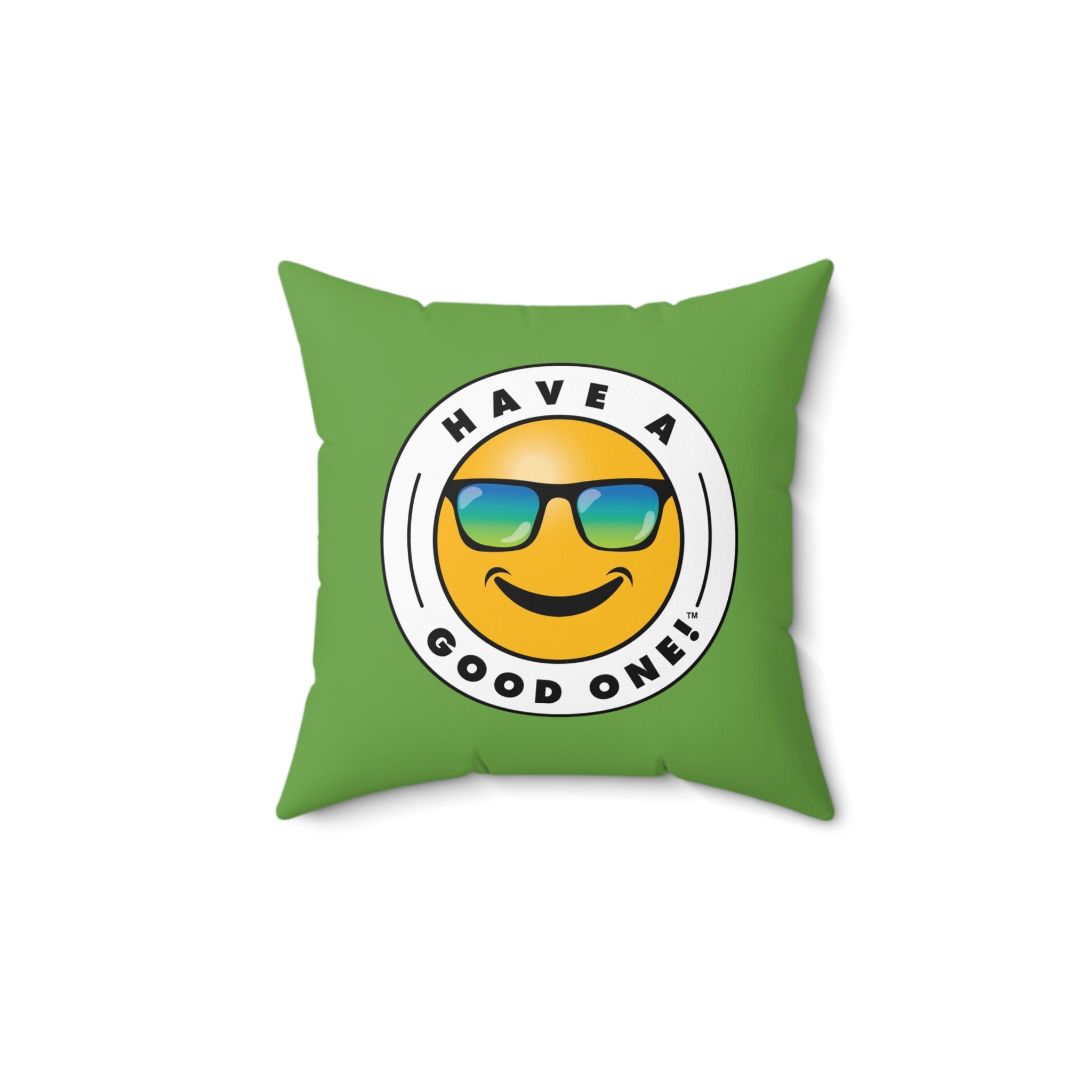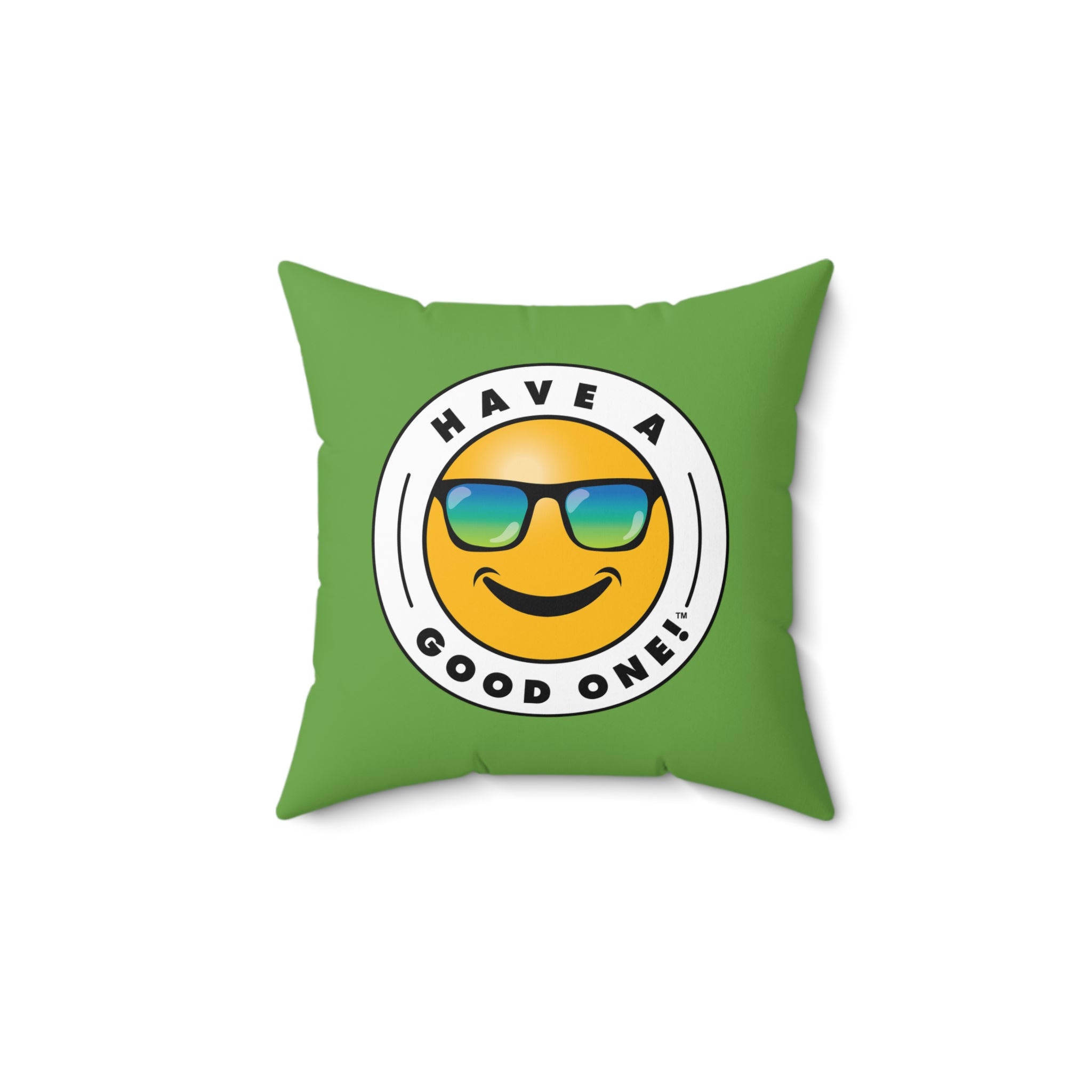 Square Pillow - Light Green Color With Blue and Green Have A Good One! Logo