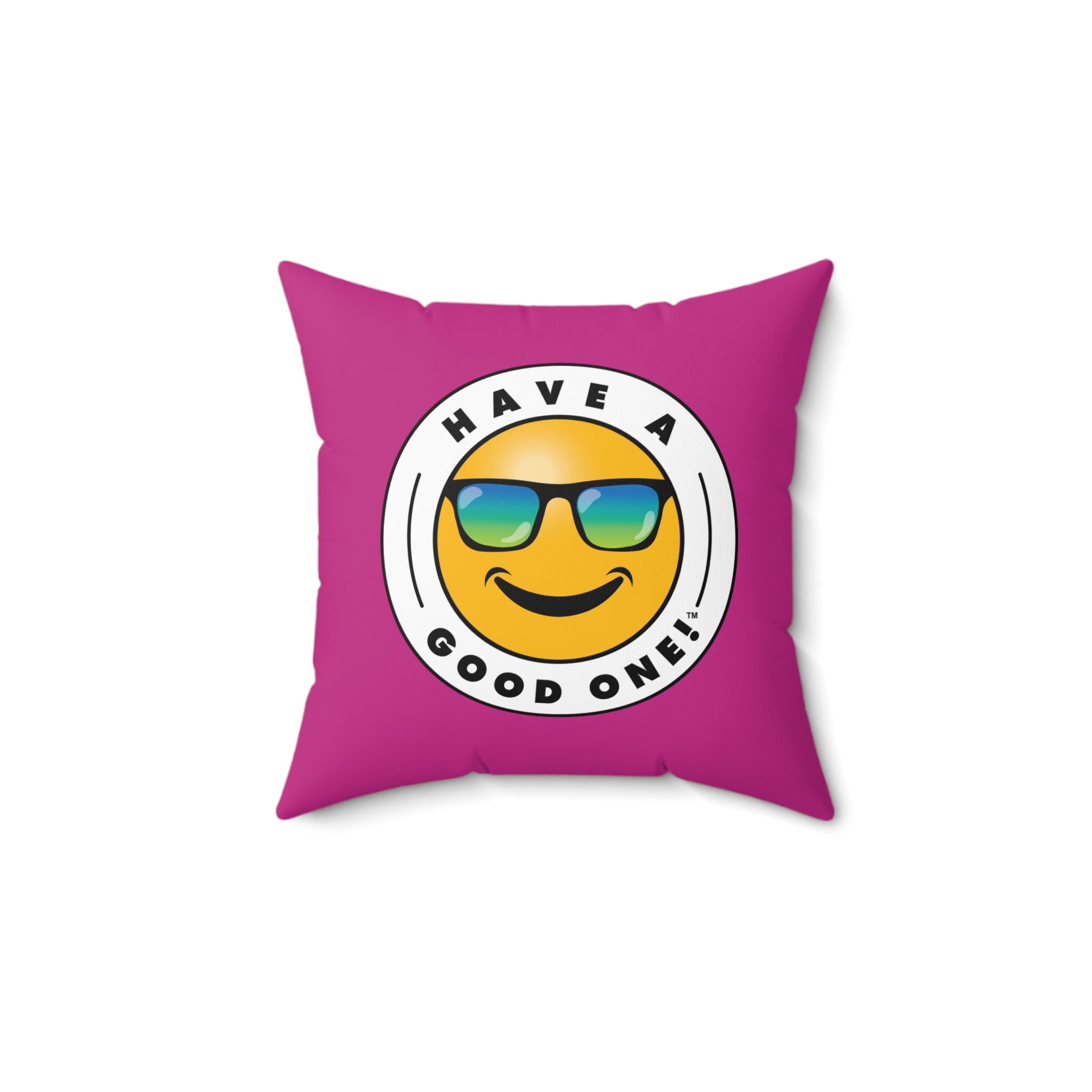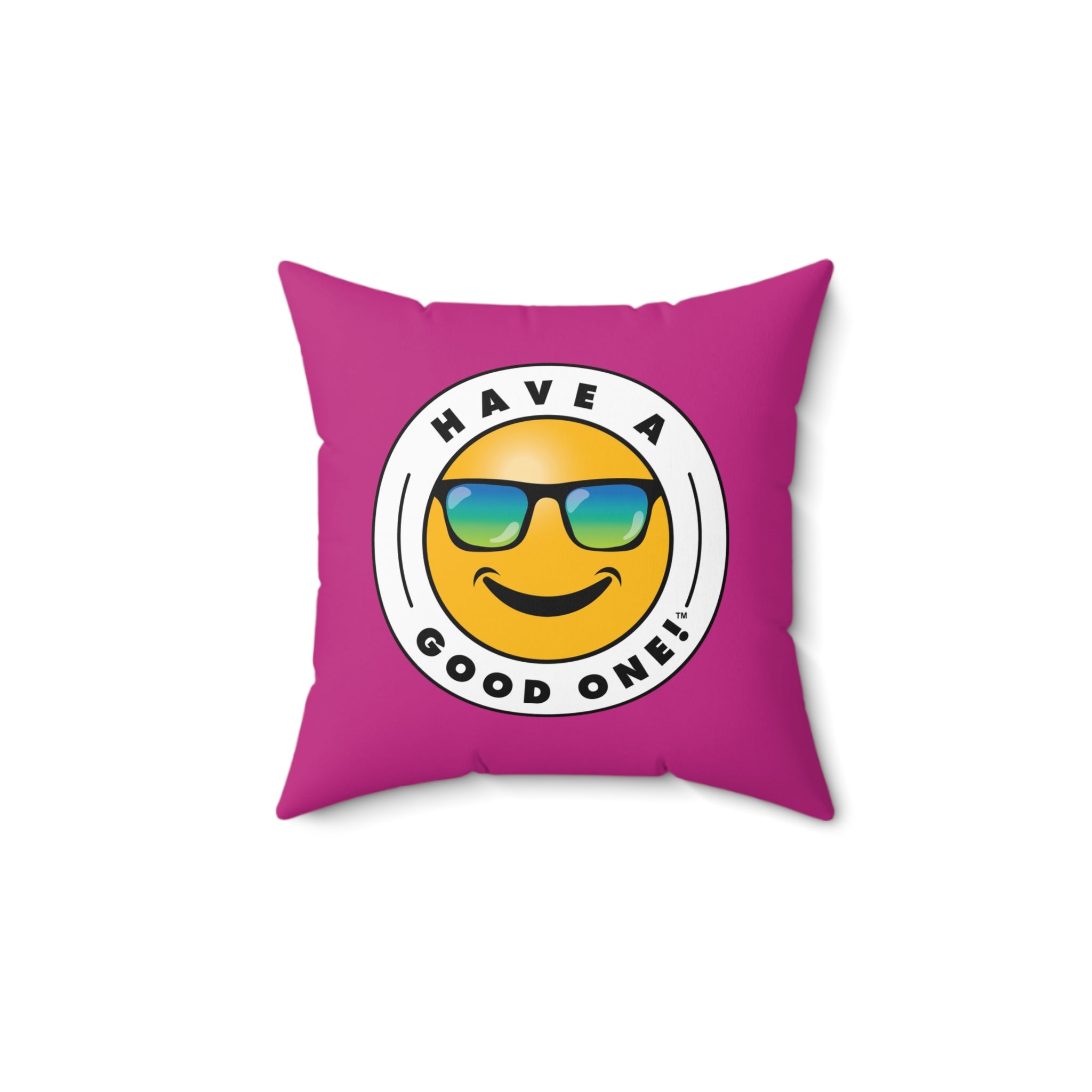 Square Pillow - Pink Color With Blue and Green Have A Good One! Logo