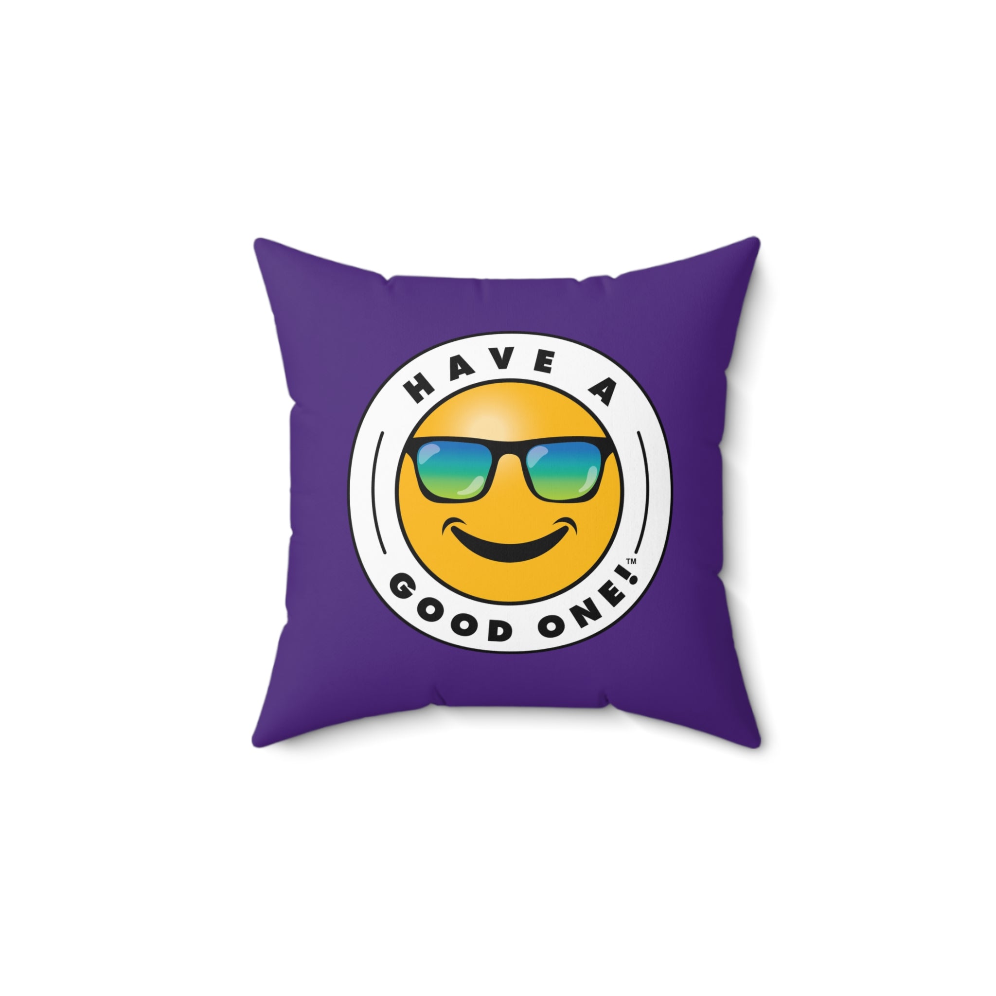 Square Pillow - Purple Color With Blue and Green Have A Good One! Logo