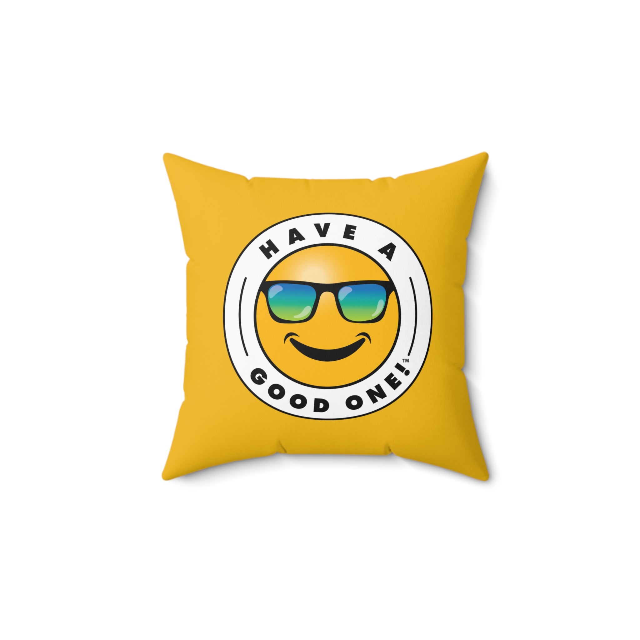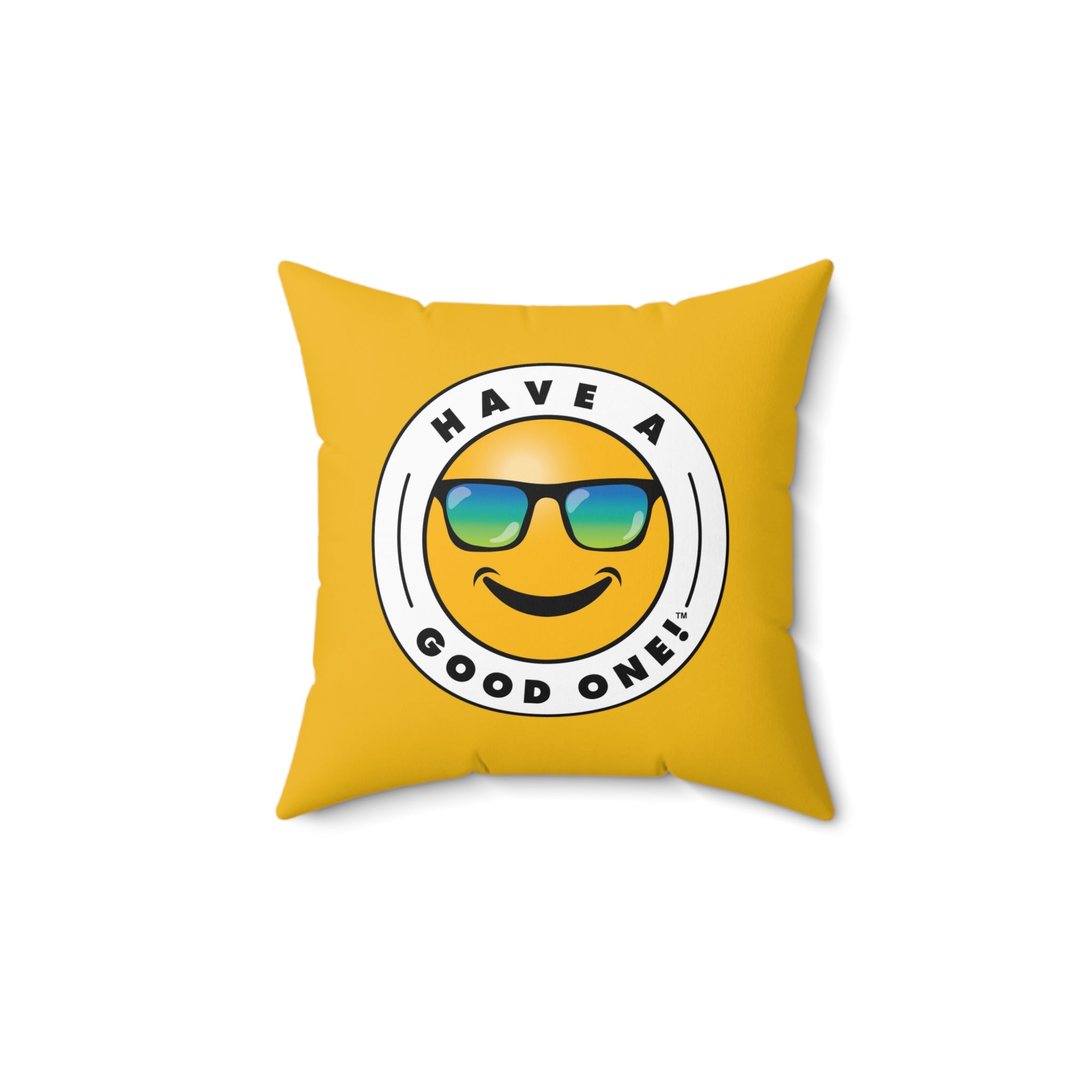 Square Pillow - Yellow Color With Blue and Green Have A Good One! Logo