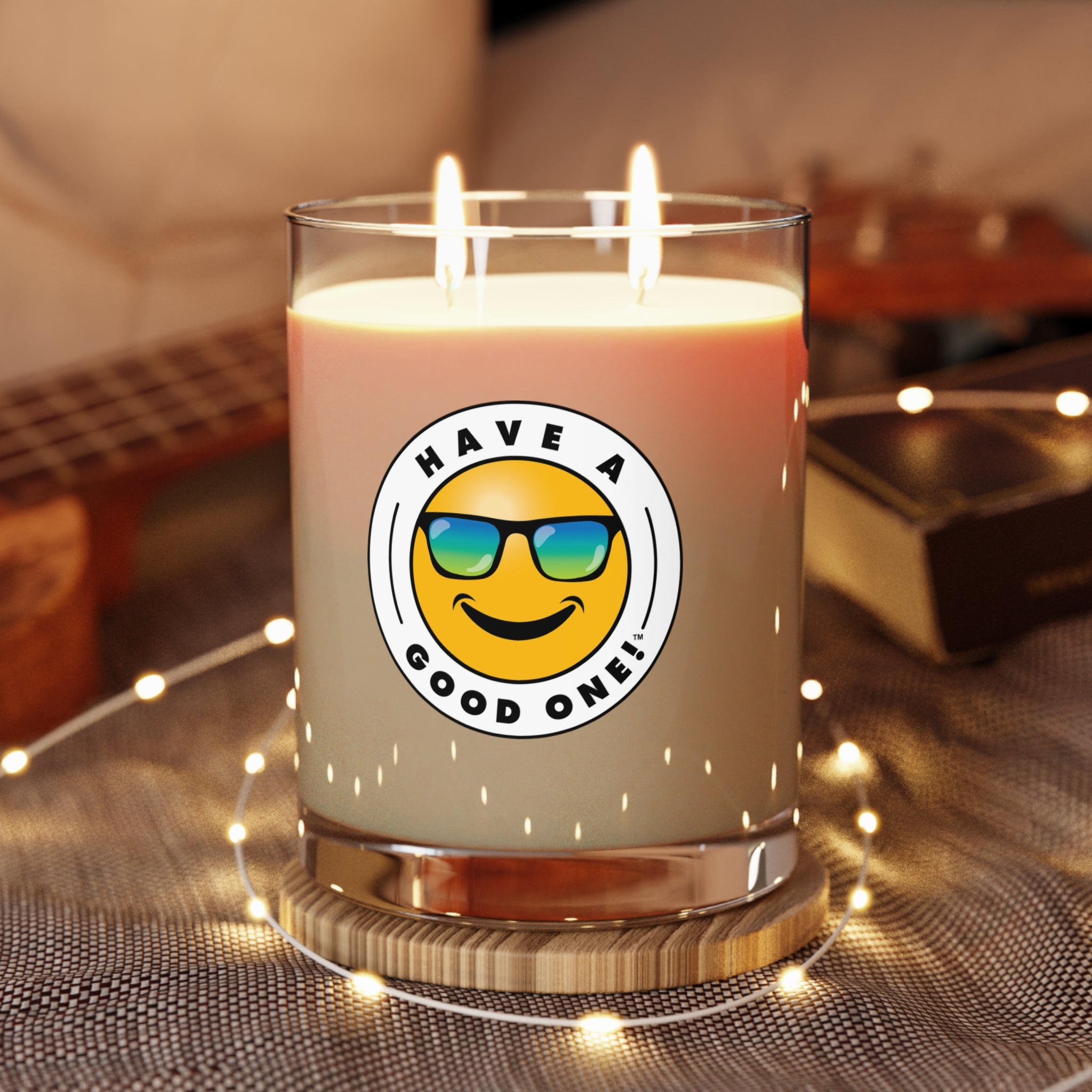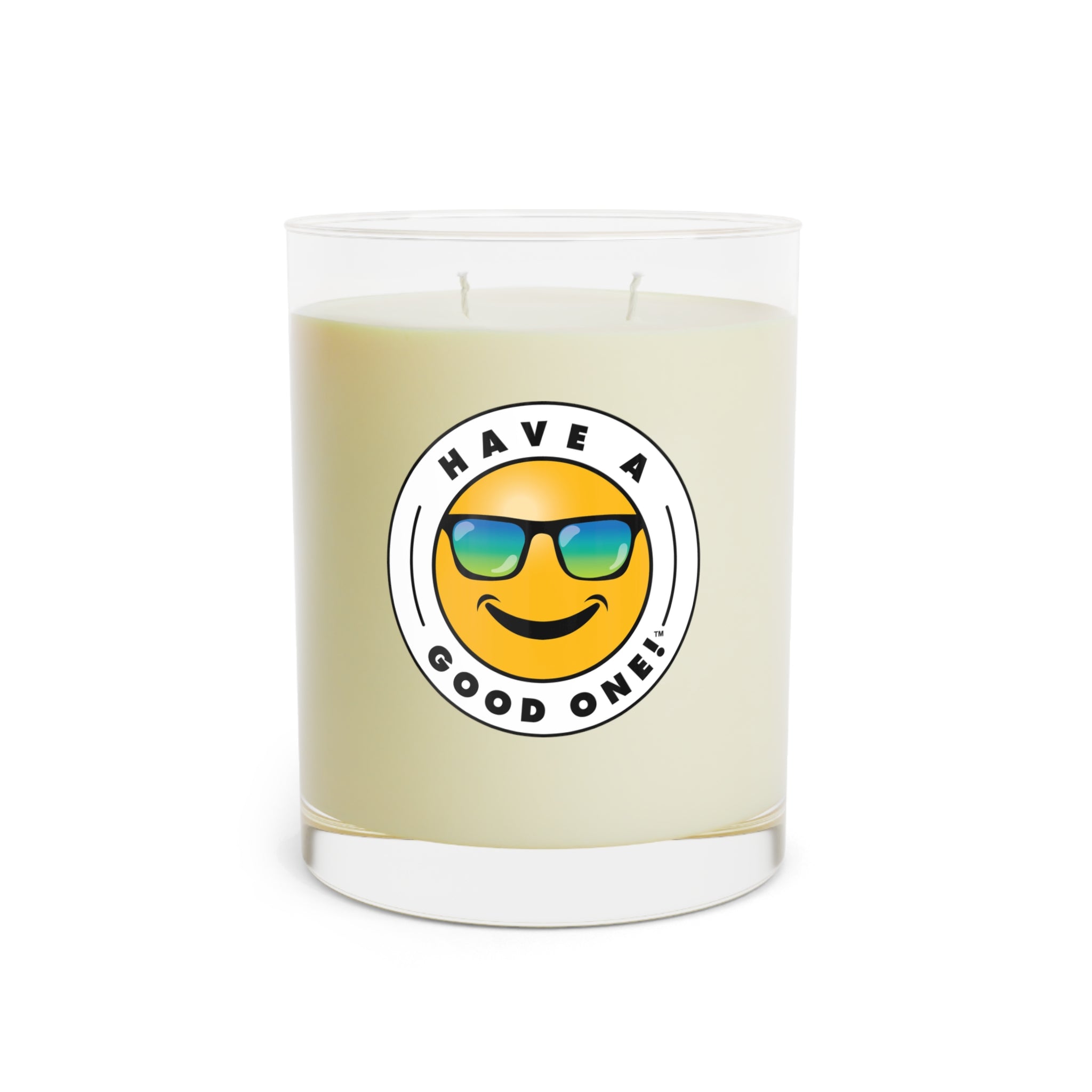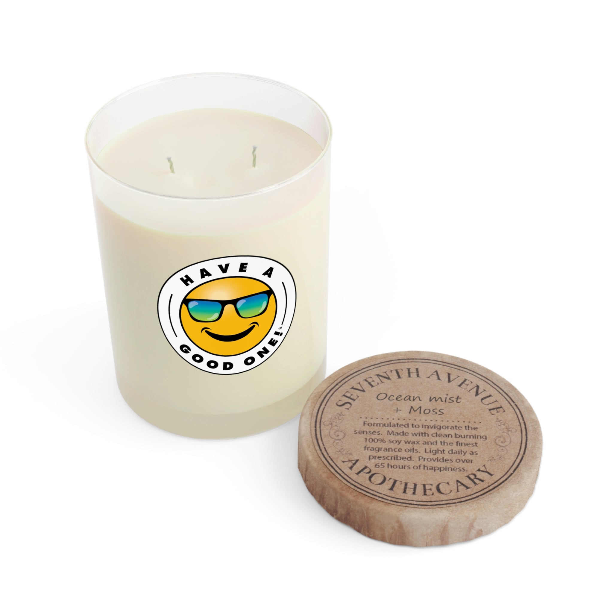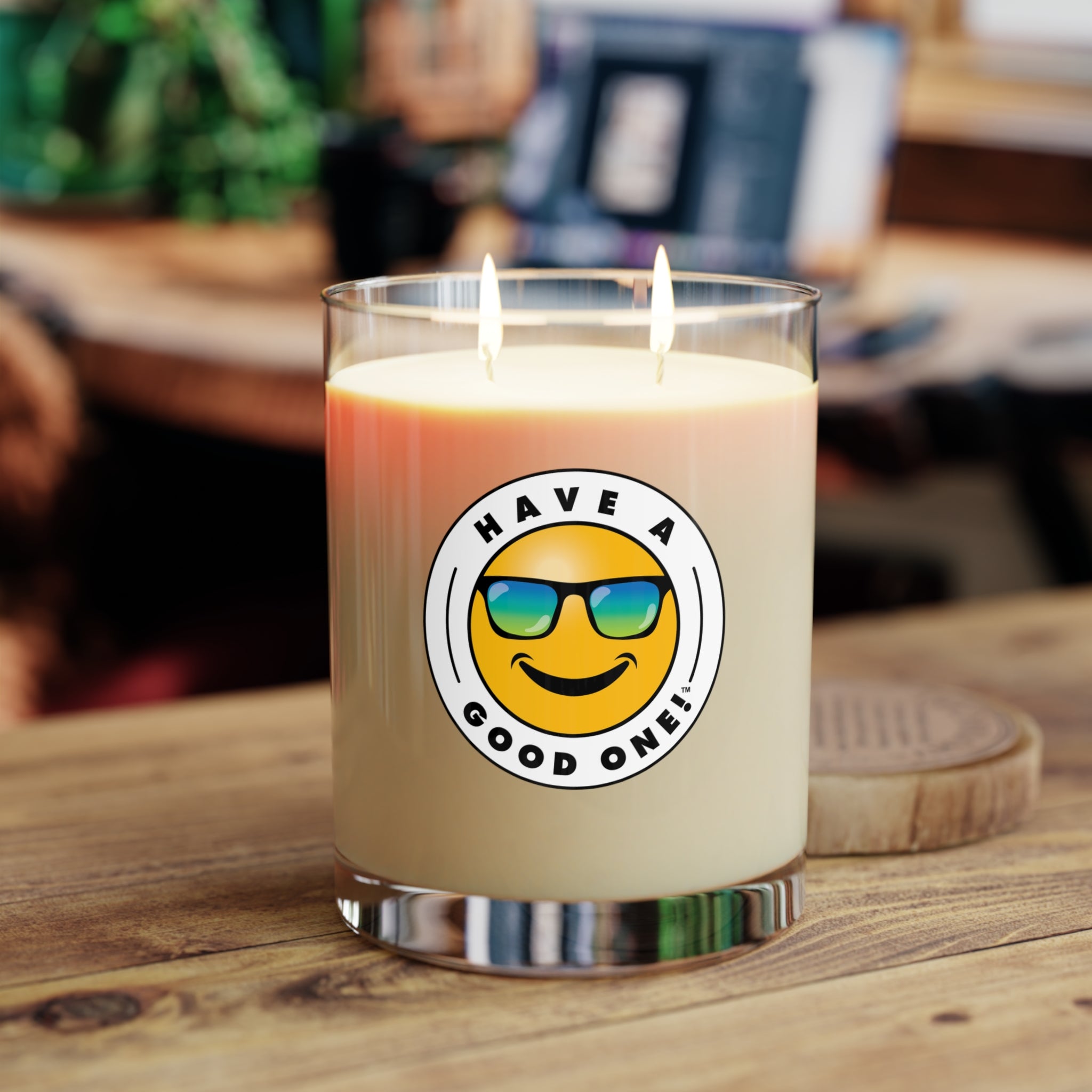 Our beautiful and fun scented candles will add a hip, cool vibe to any room! They are made with 100% food-grade soy wax and the finest fragrance oils. They have delightful natural aromas which make them wonderful aromatherapy candles. These custom candles are also Phthalate and Lead–free. Our deluxe candles have two cotton wicks and are made with premium glass with our logo printed directly on the glass. These candles have a long burn time of 65 hours and are great for parties, bath time, entertaining or just relaxing at home to set the mood. They also make wonderful gifts! These cool vibe candles will light up any room for any occasion so you can Have A Good One wherever you are! We offer these premium candles in three delightful scents; White Tea & Fig, Lavender & Sage and Ocean Mist & Moss.